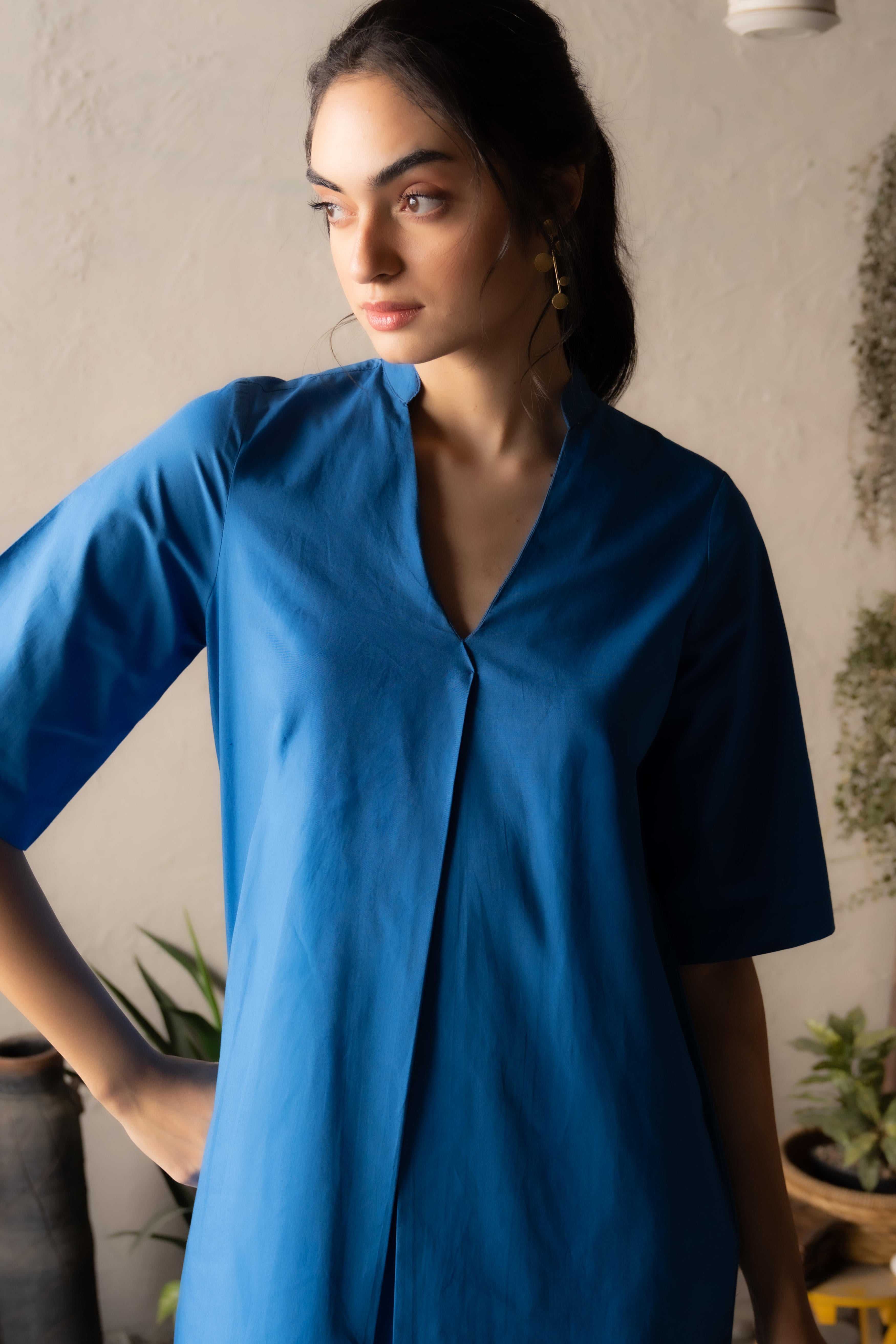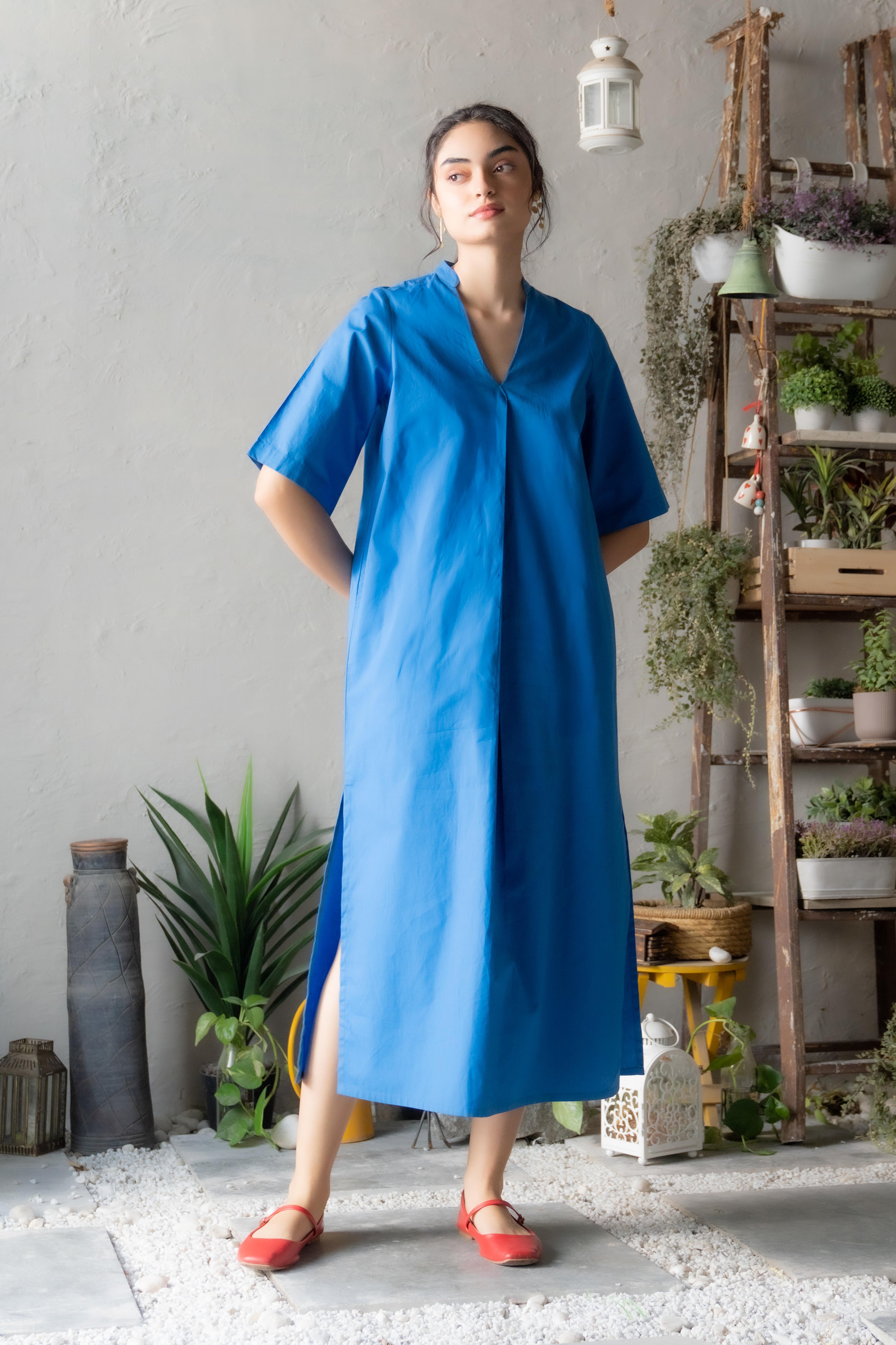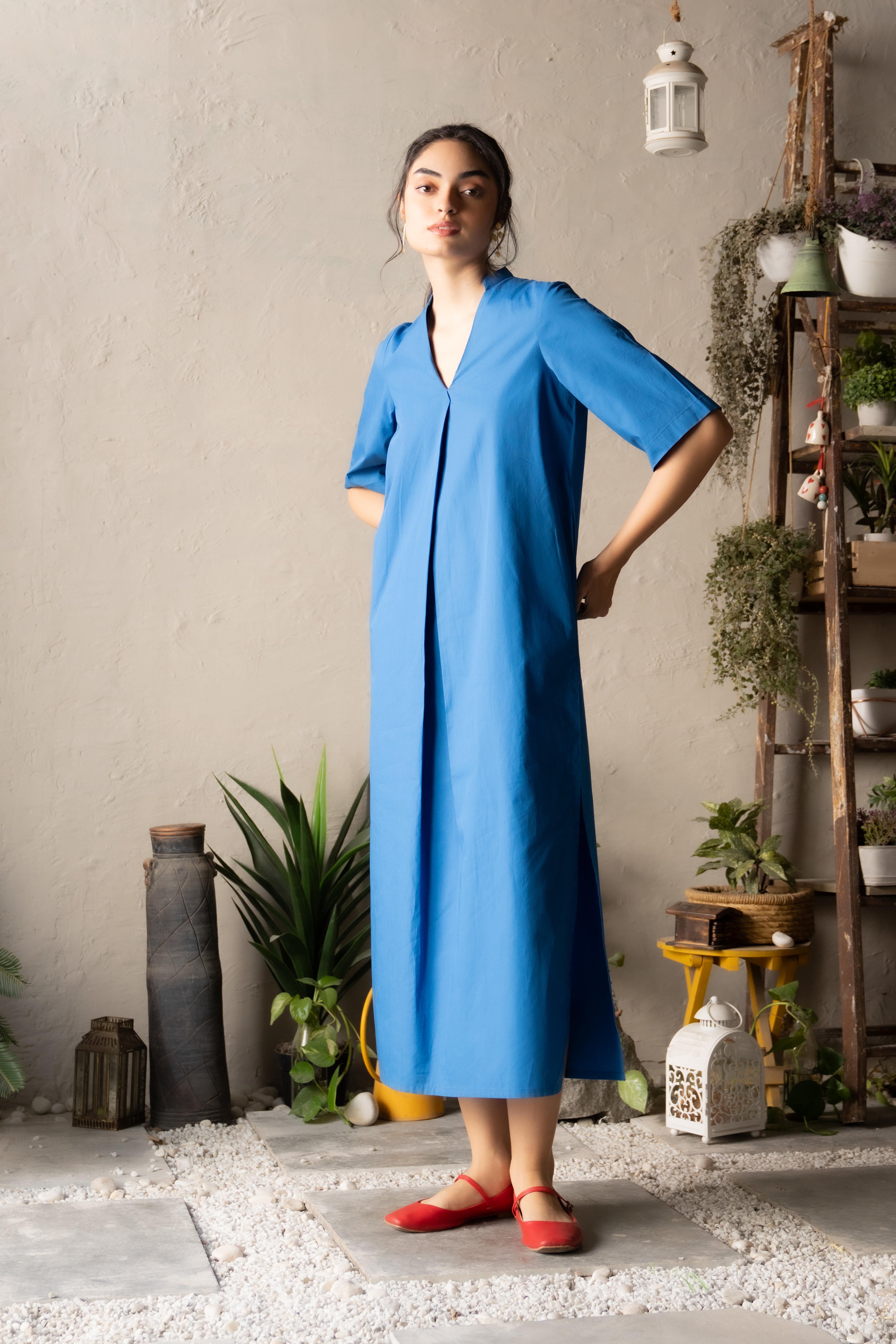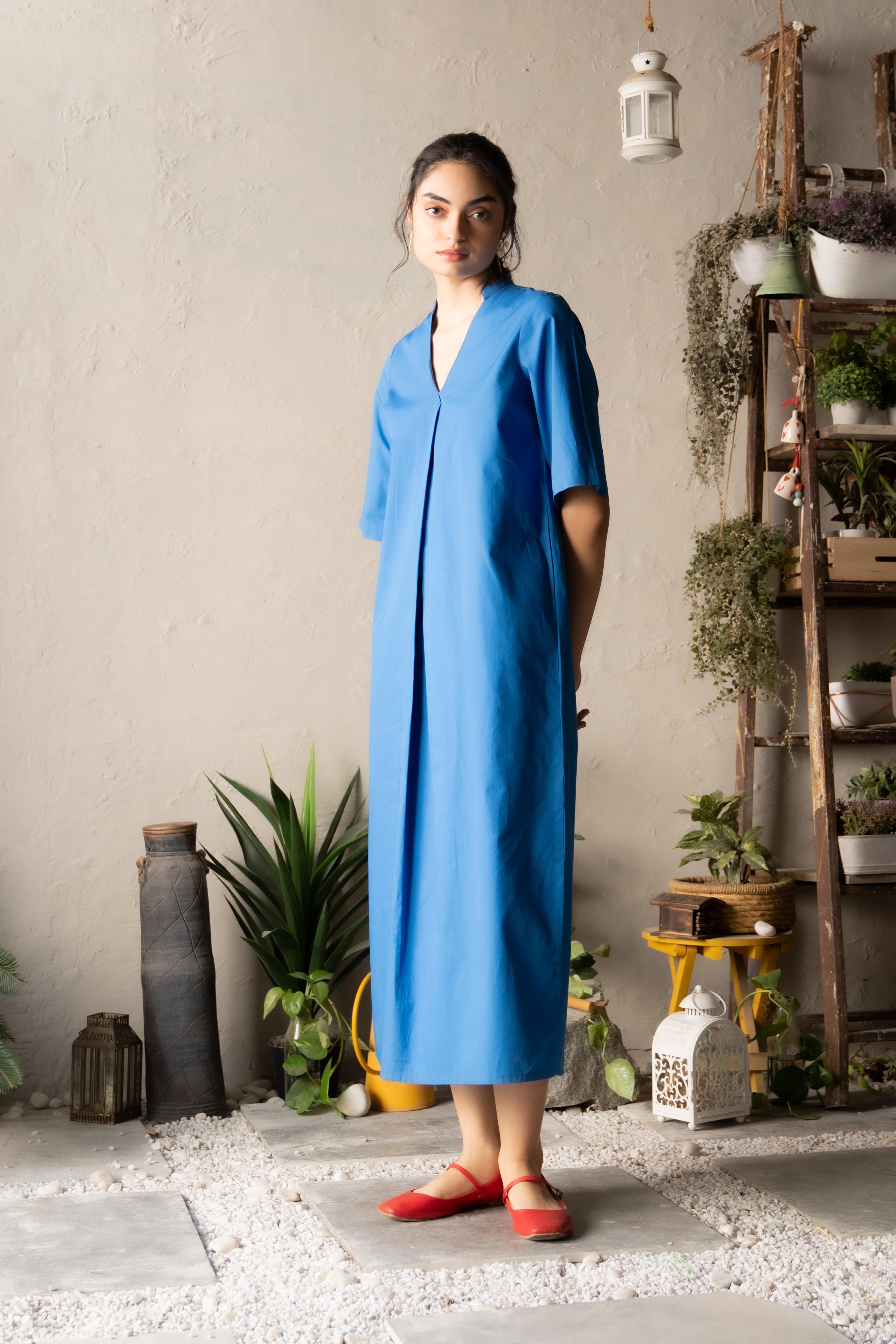 Inspired by the tranquility and mystery of the night, the Nocturne Dress combines effortless elegance with practicality. Crafted in a stunning cobalt blue, it features a straight silhouette accented with front pleats and functional side slits for ease and comfort. Designed with convenient side pockets, this versatile piece offers both style and utility. Perfect for casual outings, evenings out, or days when you want to embrace modern sophistication with minimal effort.