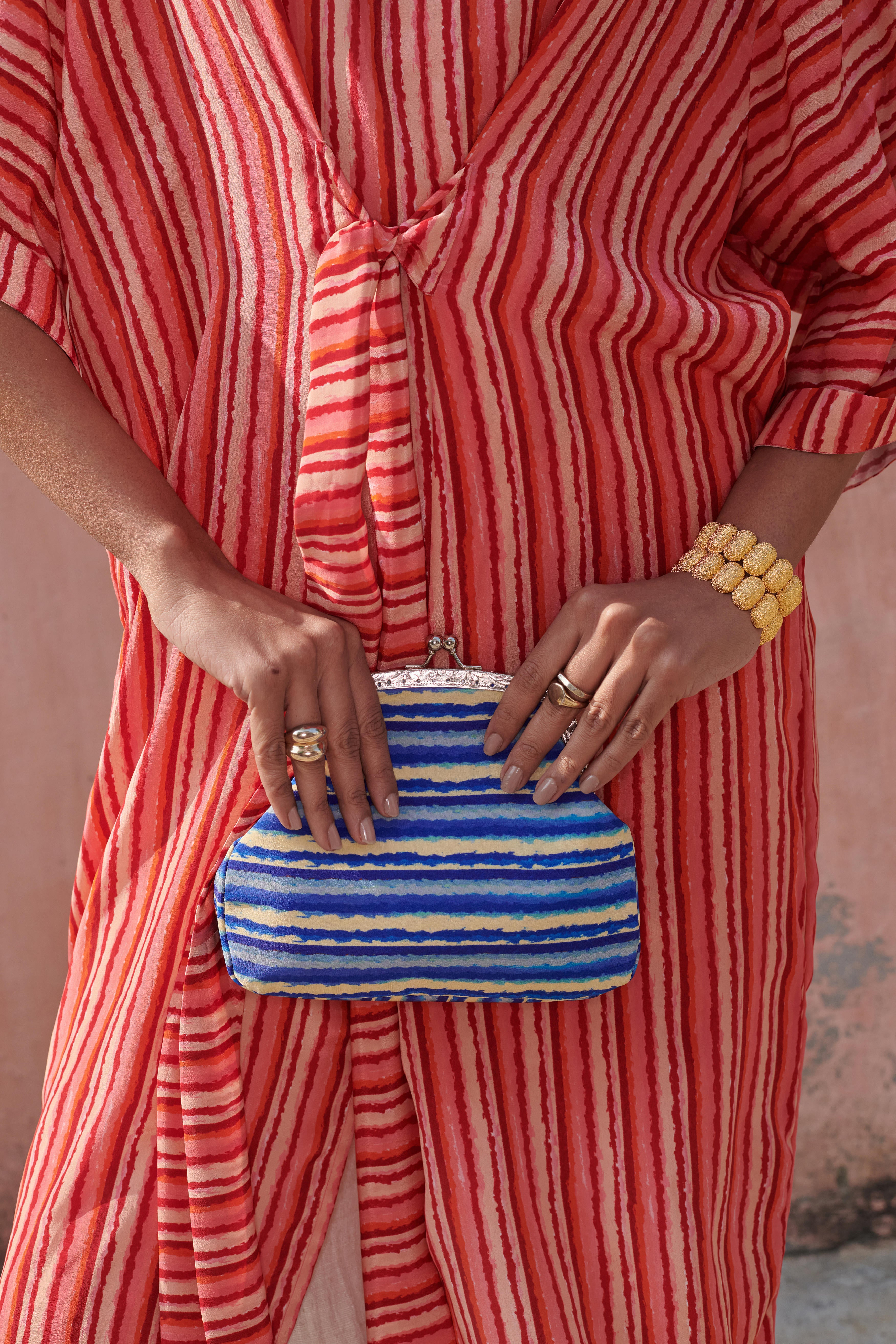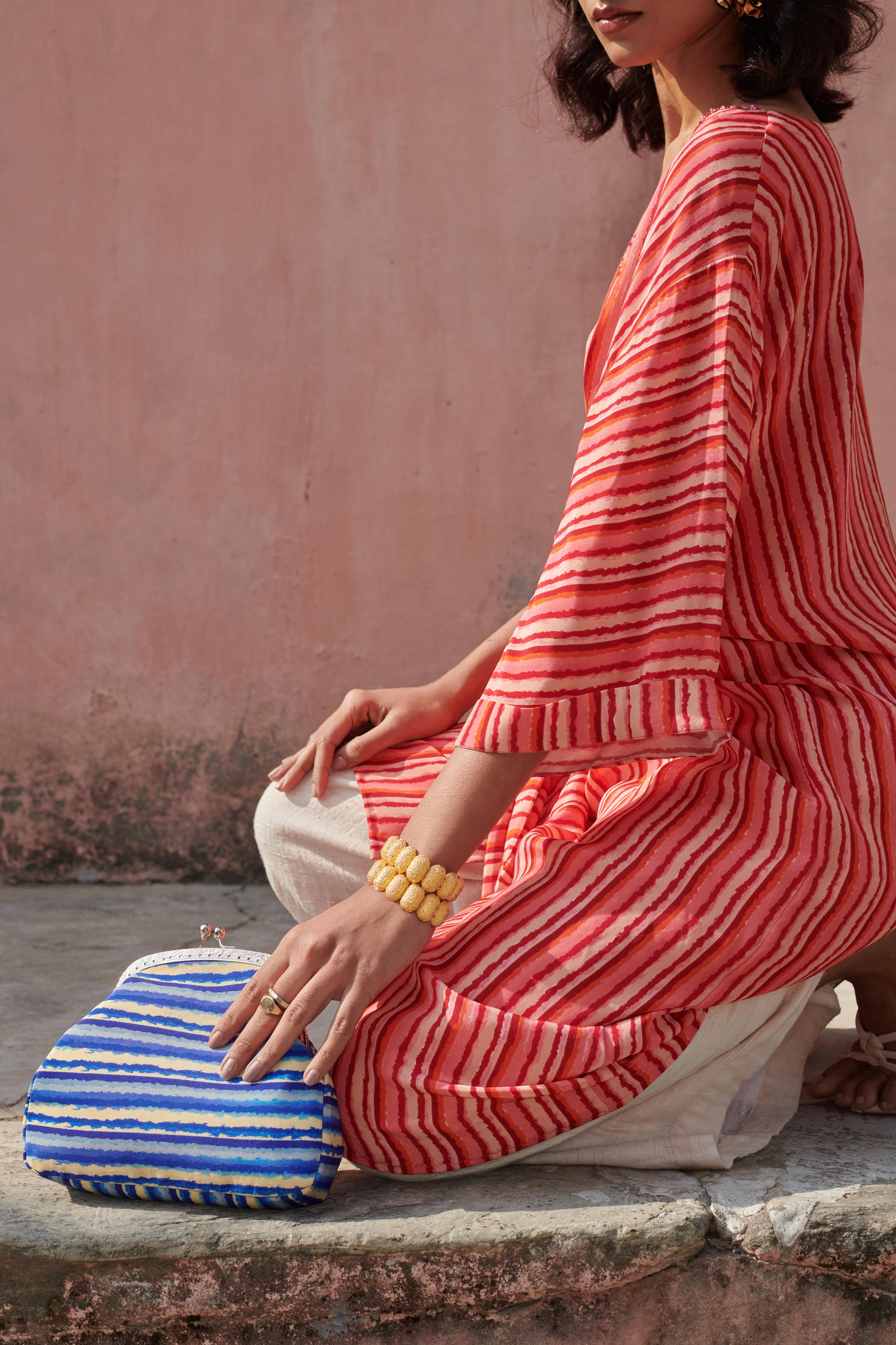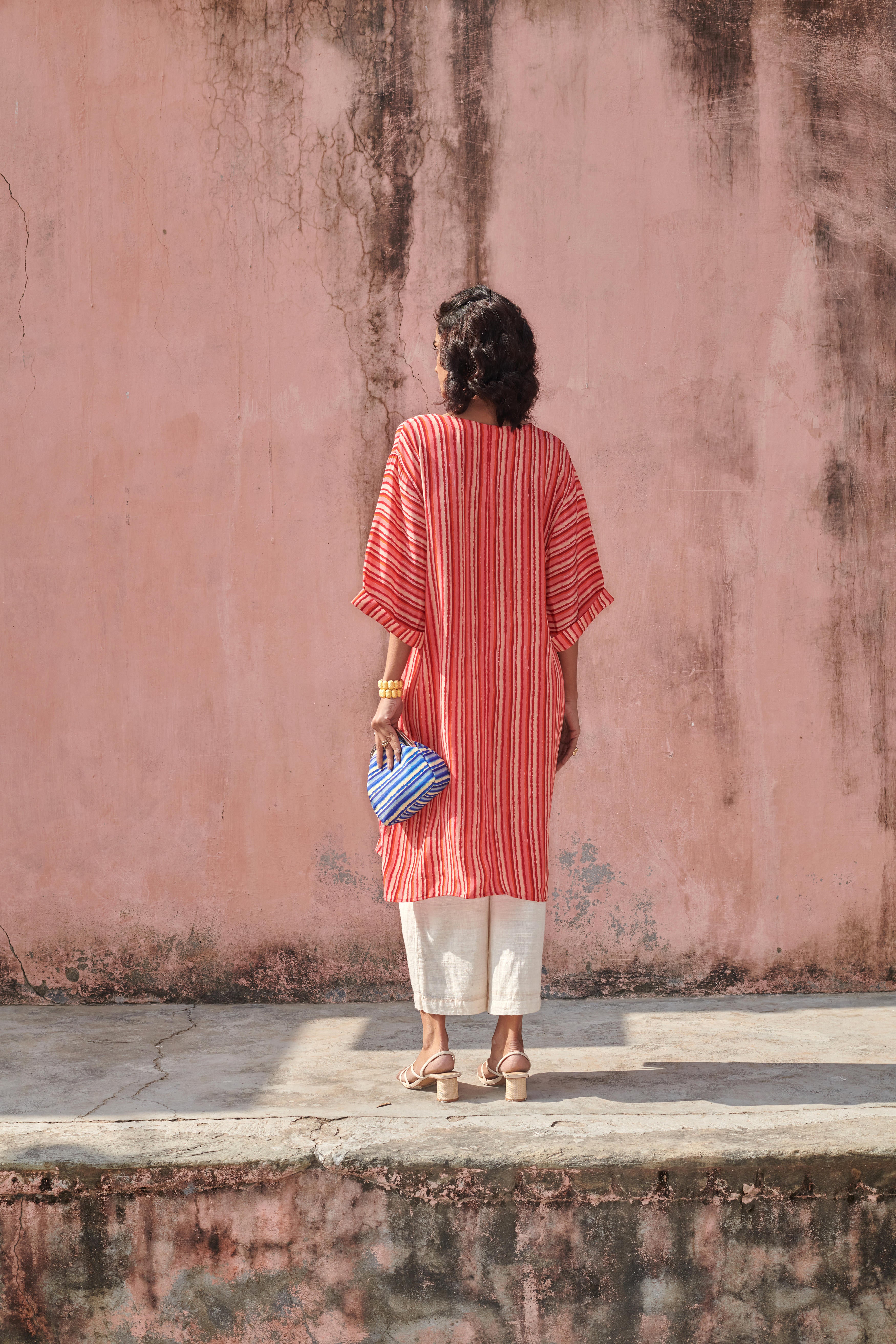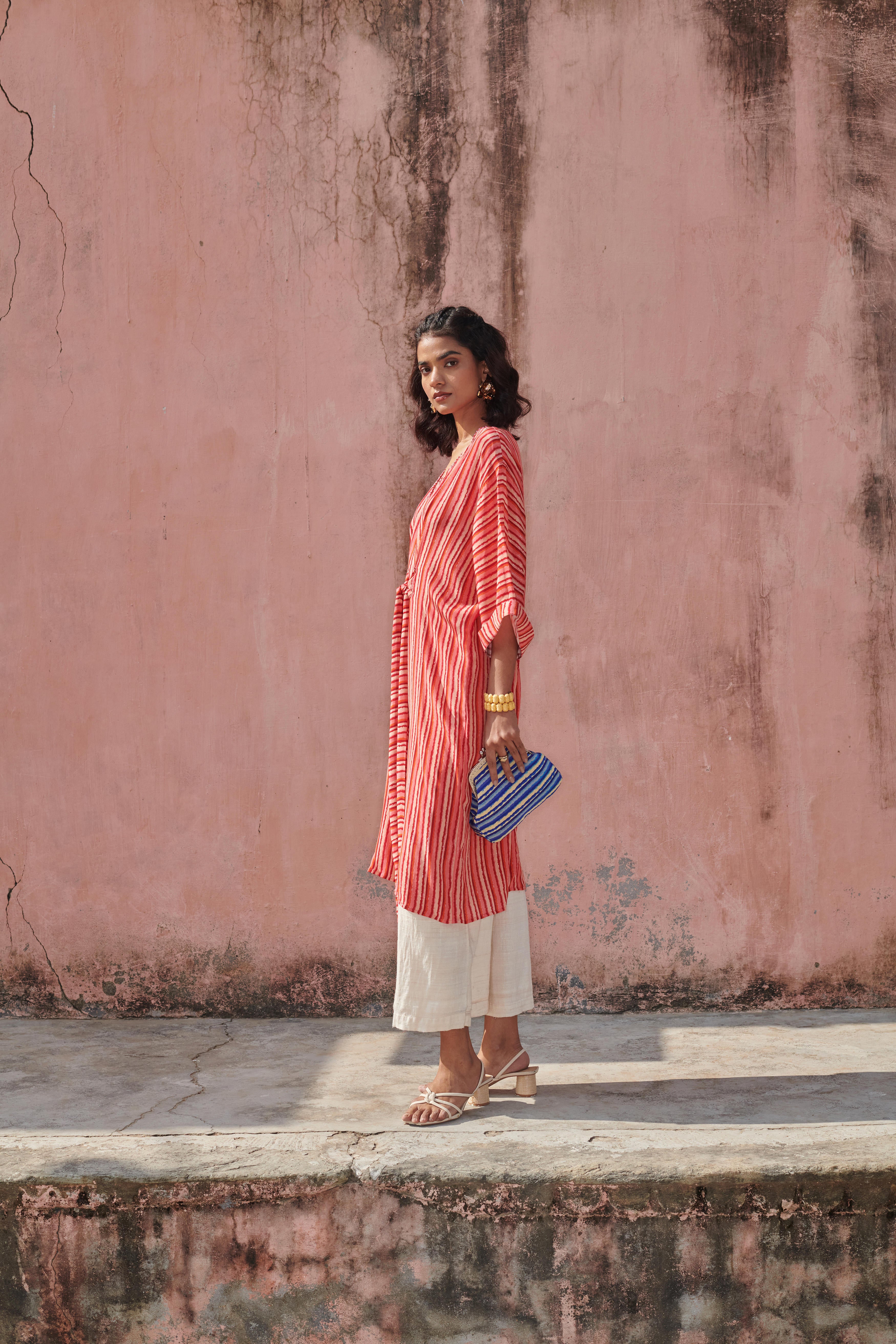 The tunic crafted from our Blush rush print for a comfortable look. The tunic is designed with knot detail in the front, drop down shoulder and side inseam pockets. The tunic is adorned with hand detailing on front neck. Tunic Length: 42"