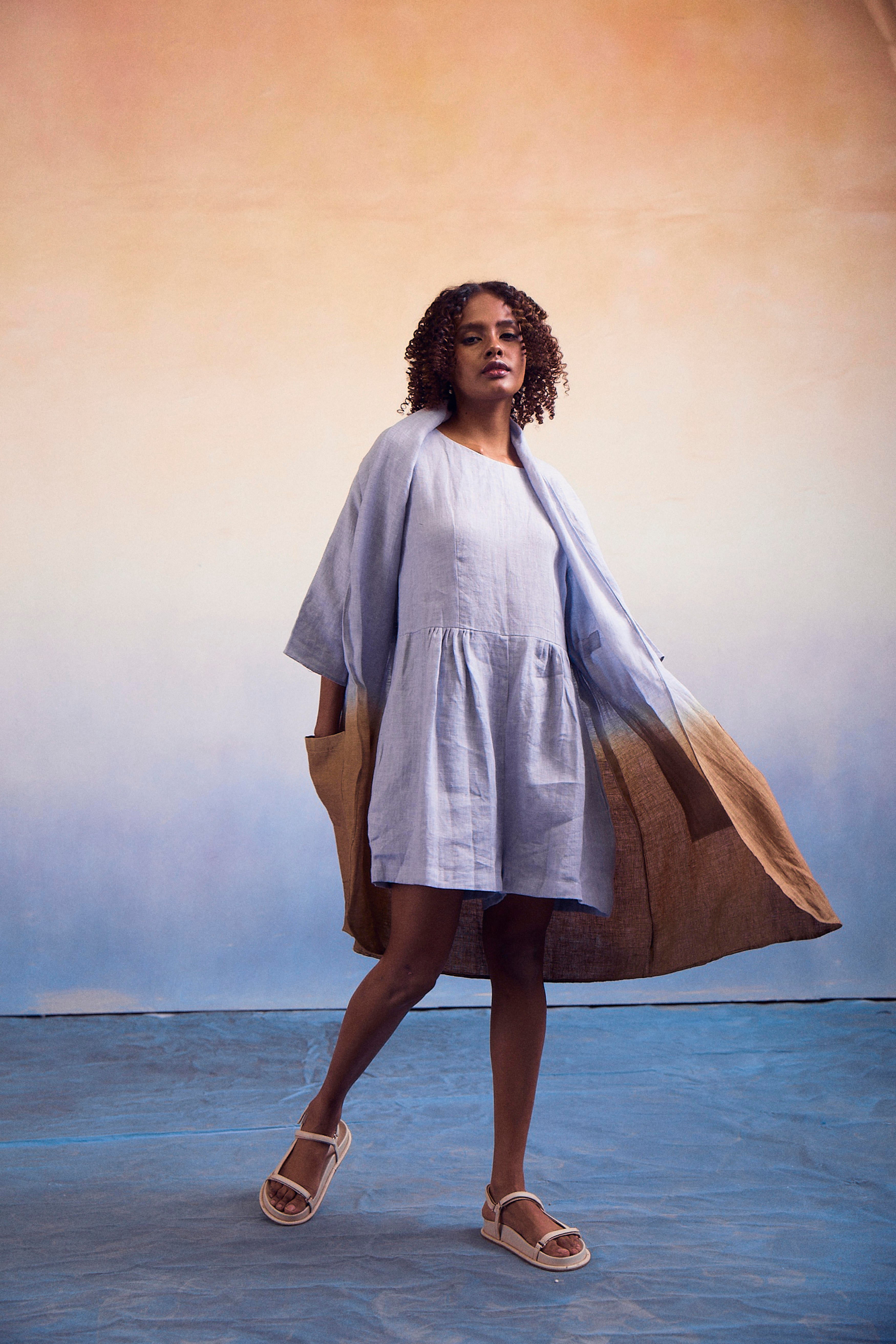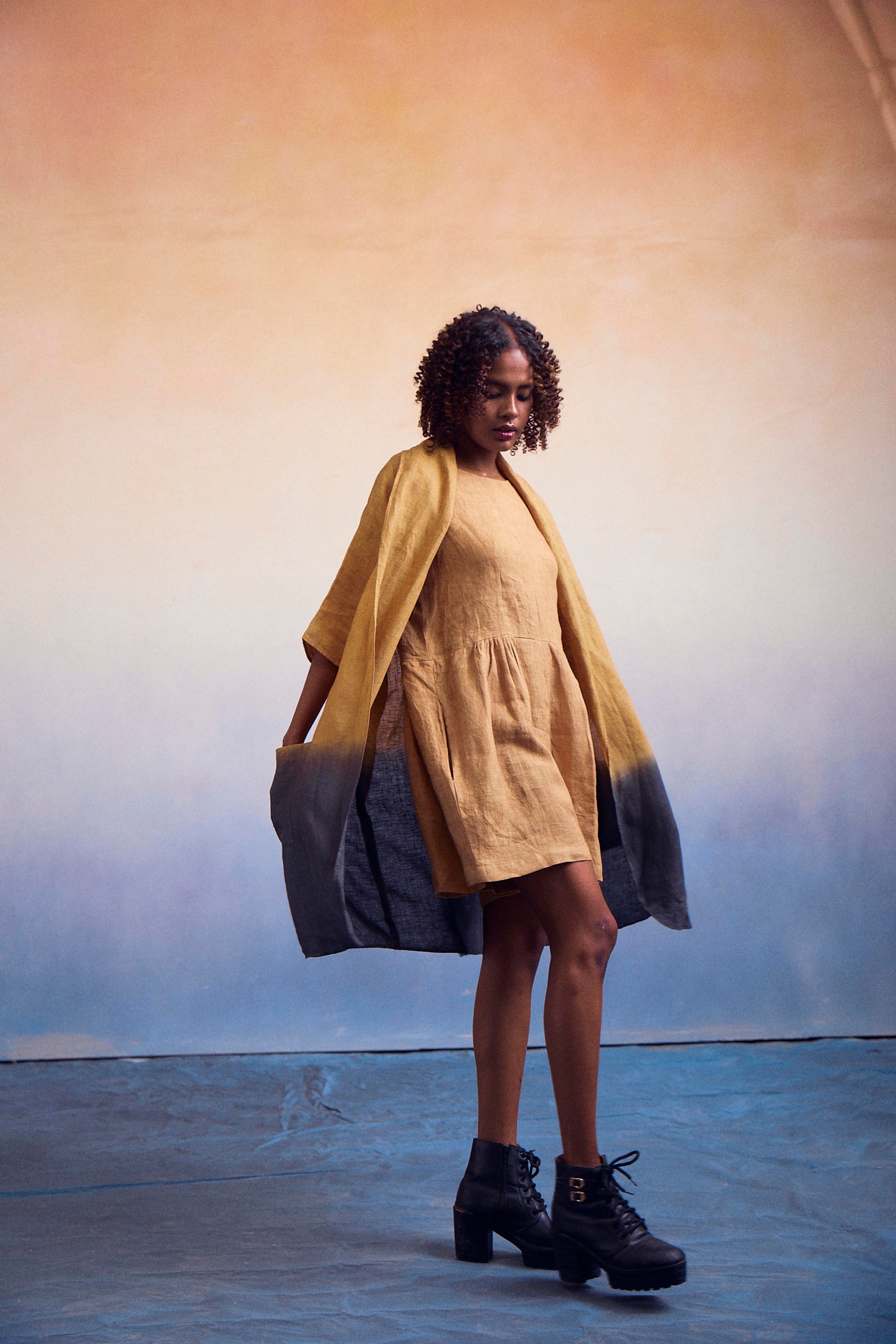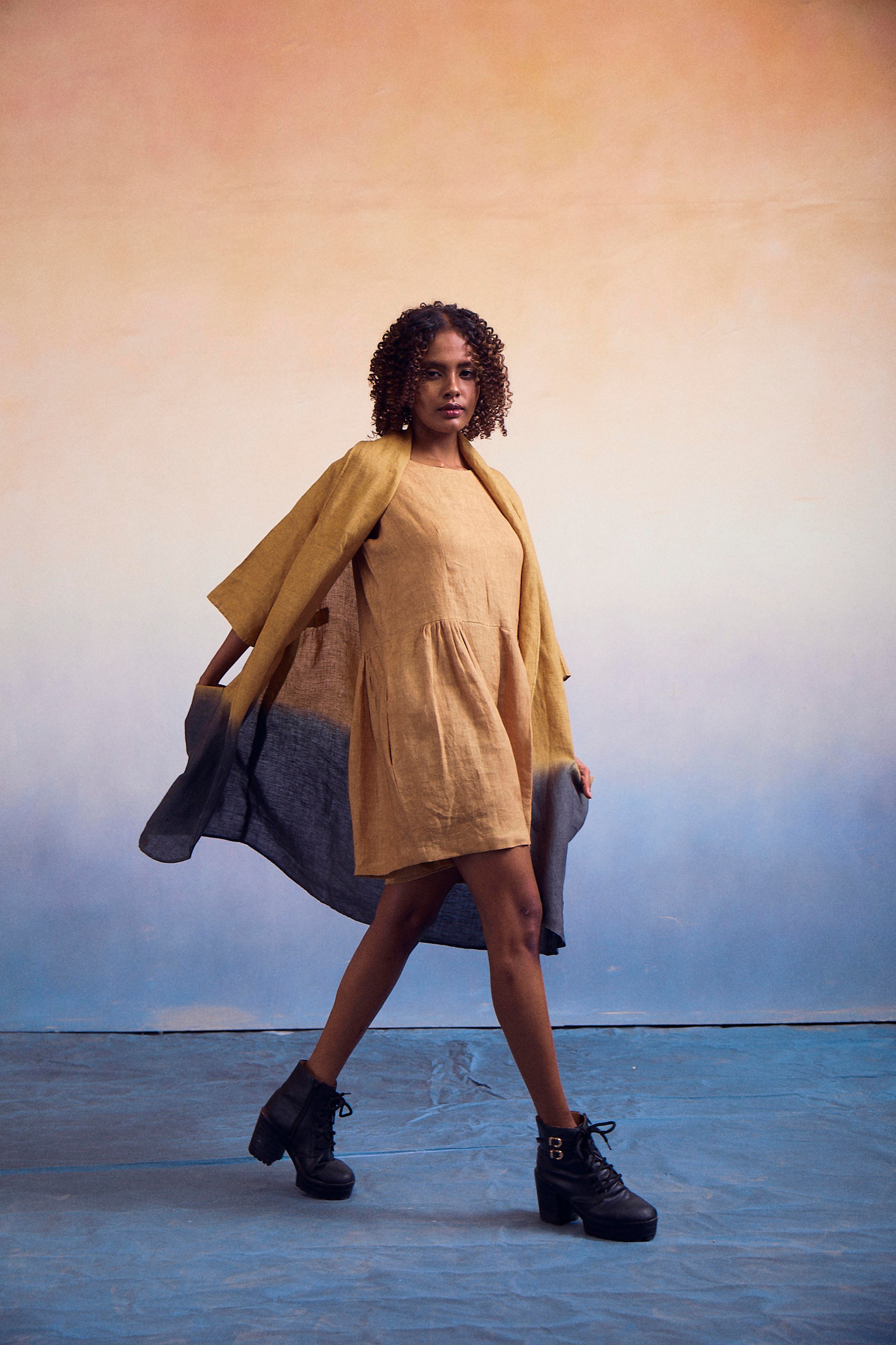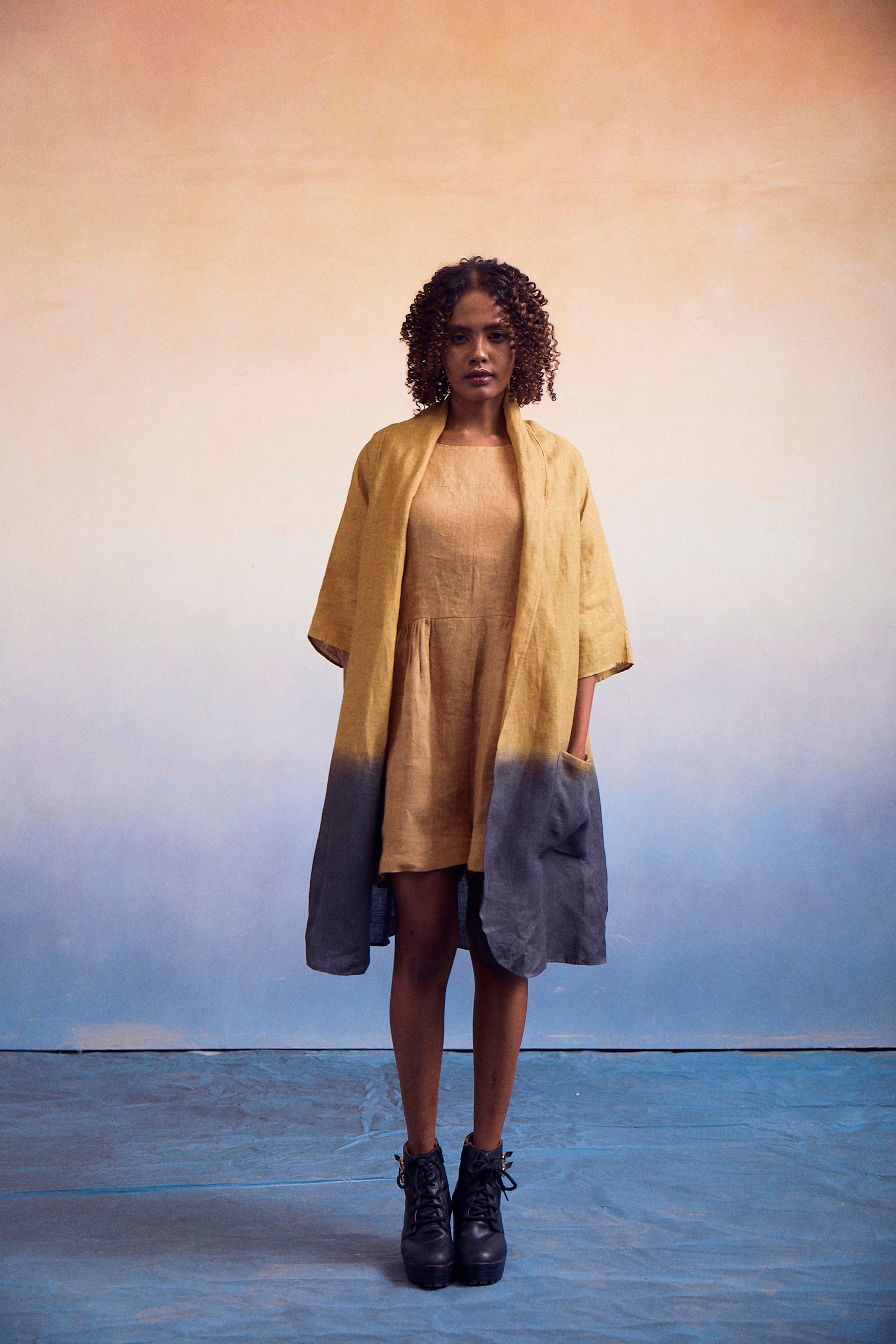A 2 PC jumpsuit with overlay, which gives freedom and playfulness as well as a style statement. A short length with wide legs boy jumpsuit which brings comfort and a long jacket accompanies to add a statement that makes the entire two-piece outfit as a formal evening wear. Collection: Ocean of ombre