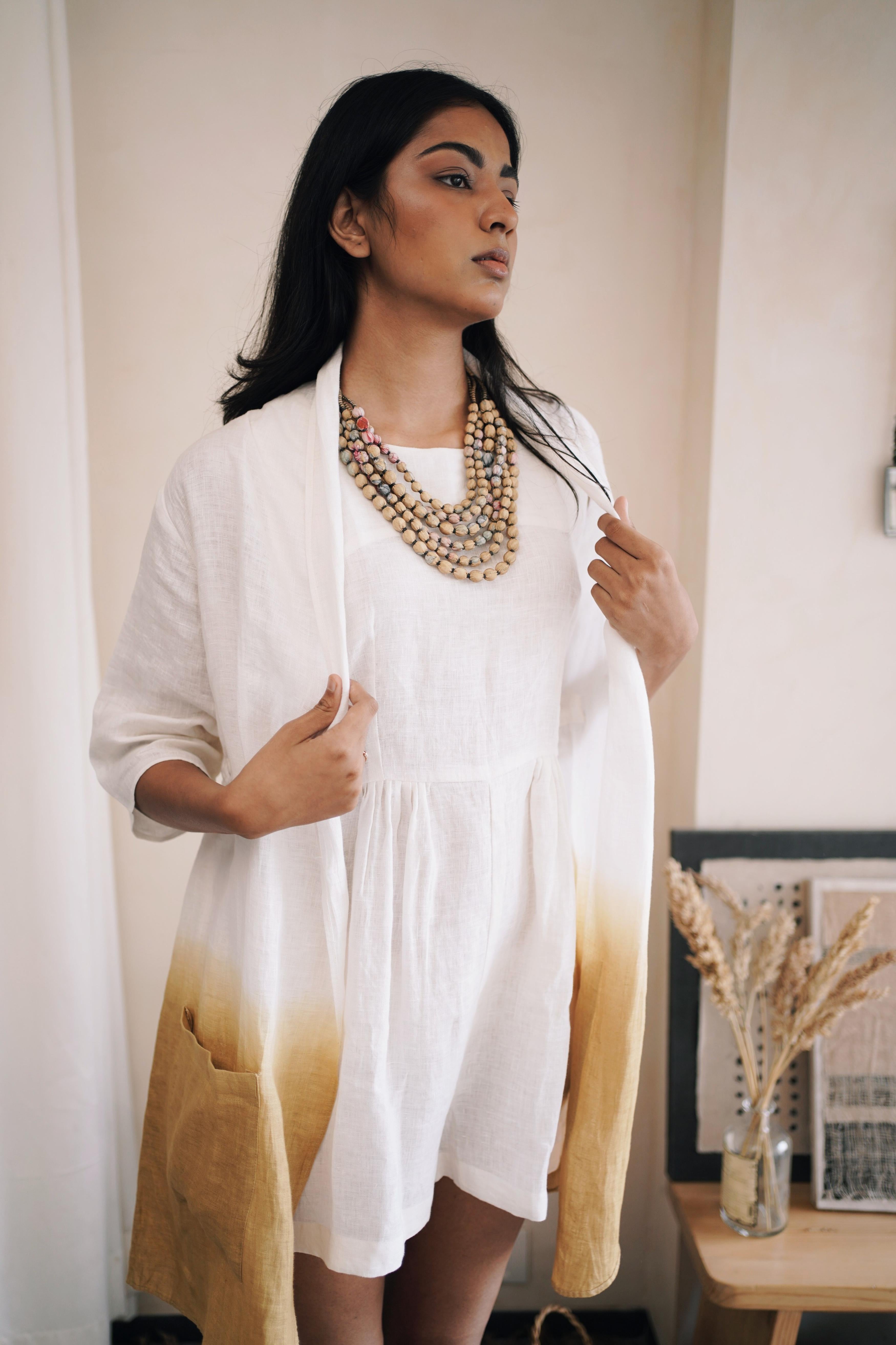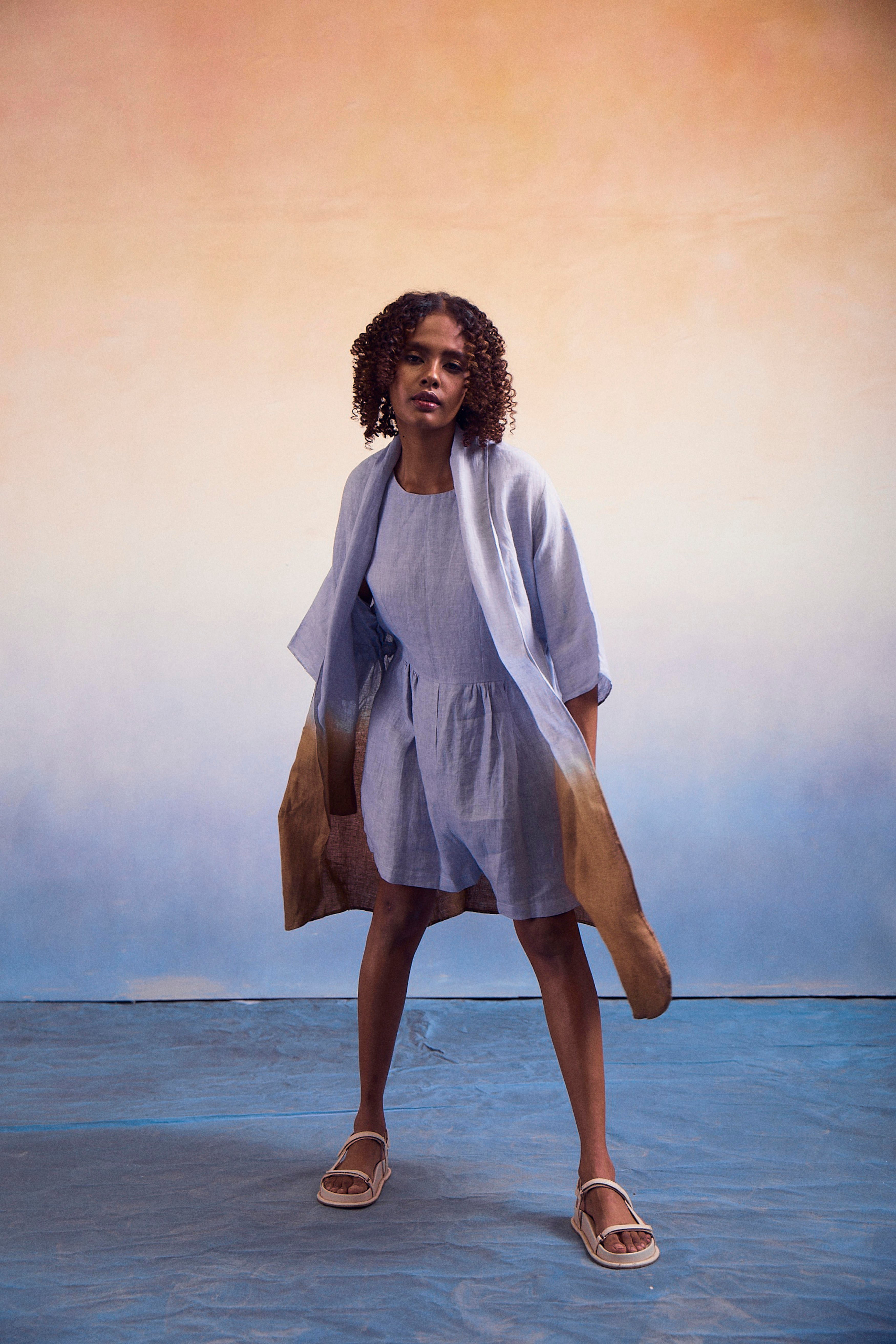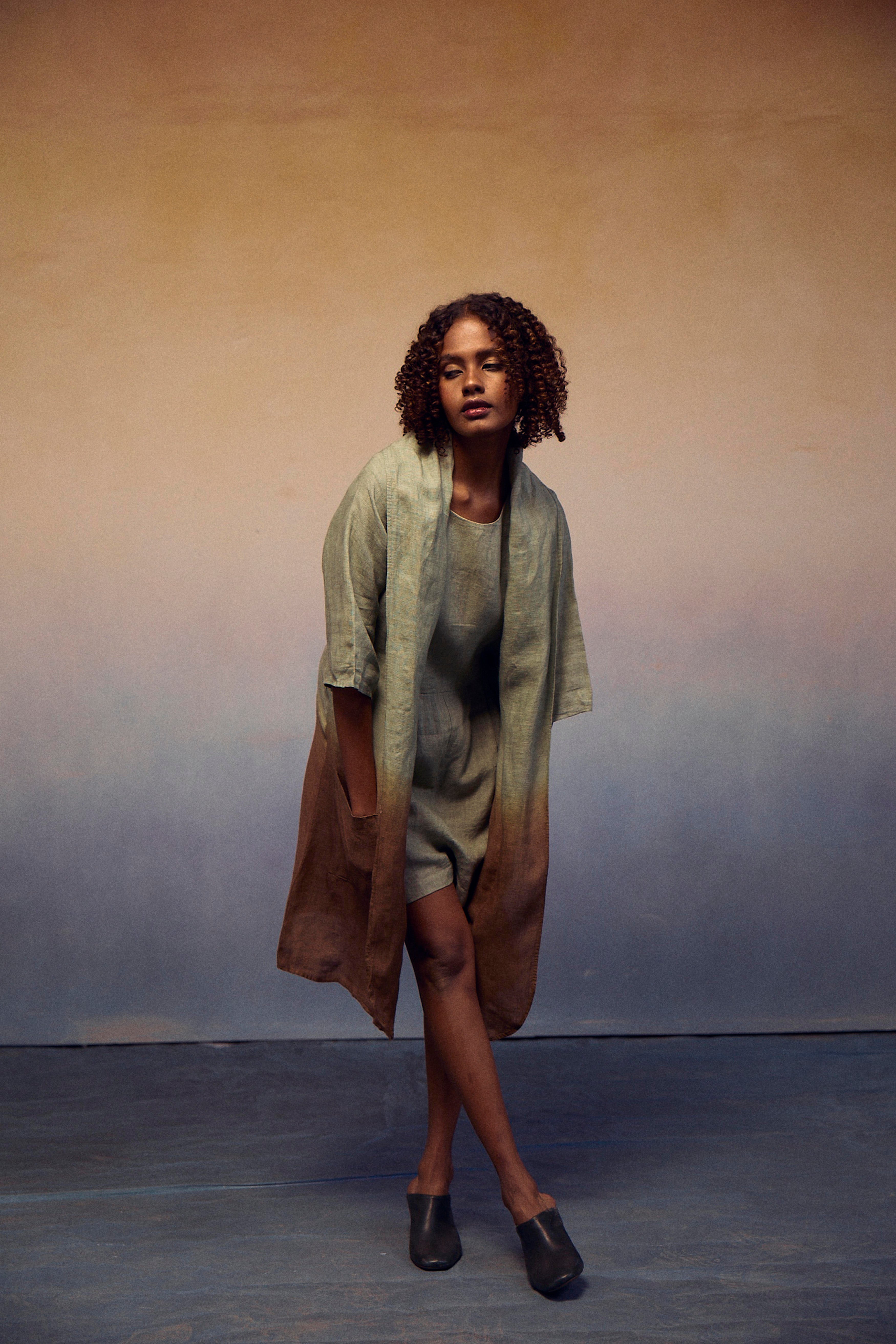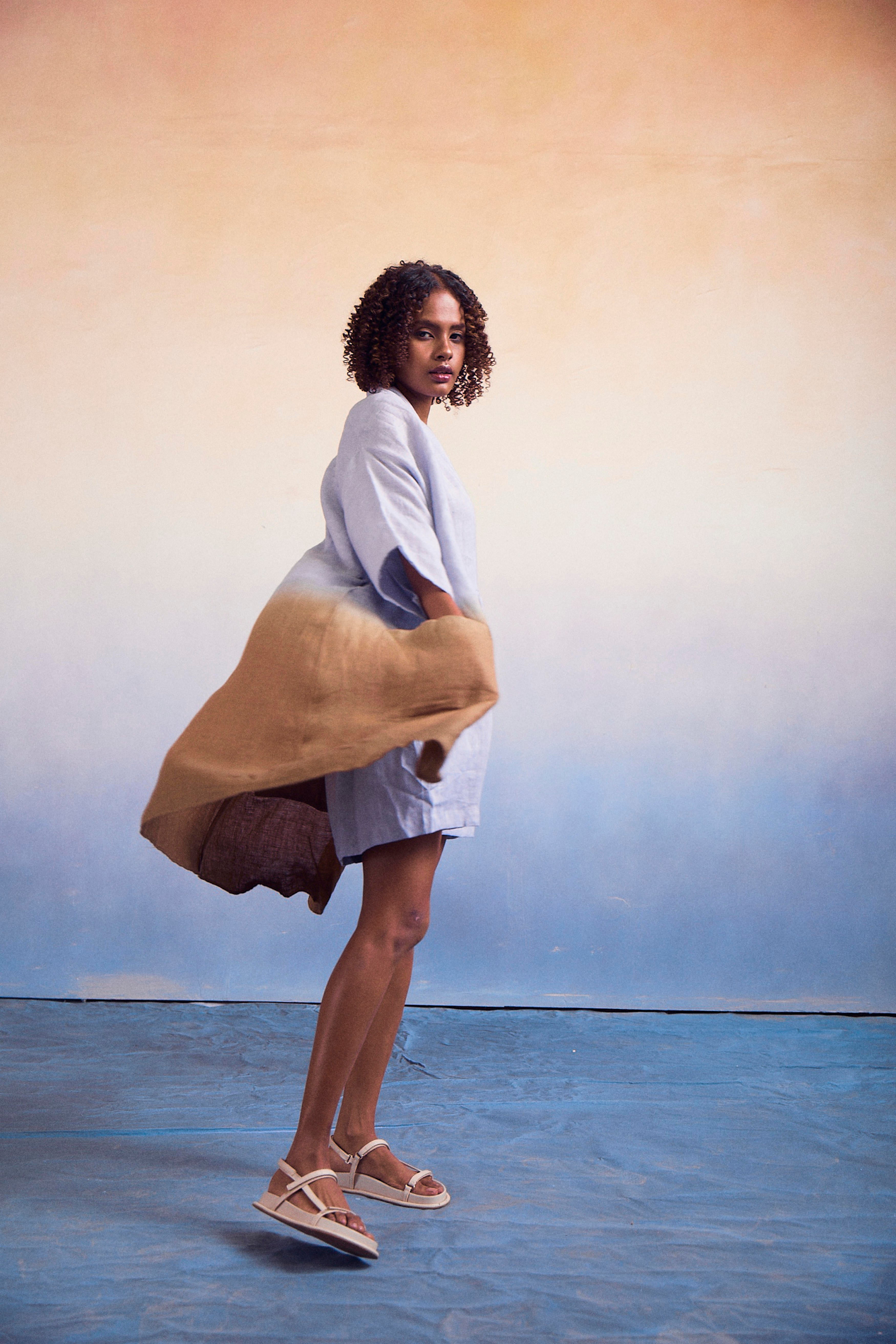 A 2 PC jumpsuit with overlay, which gives freedom and playfulness as well as a style statement. A short length with wide legs boy jumpsuit which brings comfort and a long jacket accompanies to add a statement that makes the entire two-piece outfit as a formal evening wear. Collection: Ocean of ombre