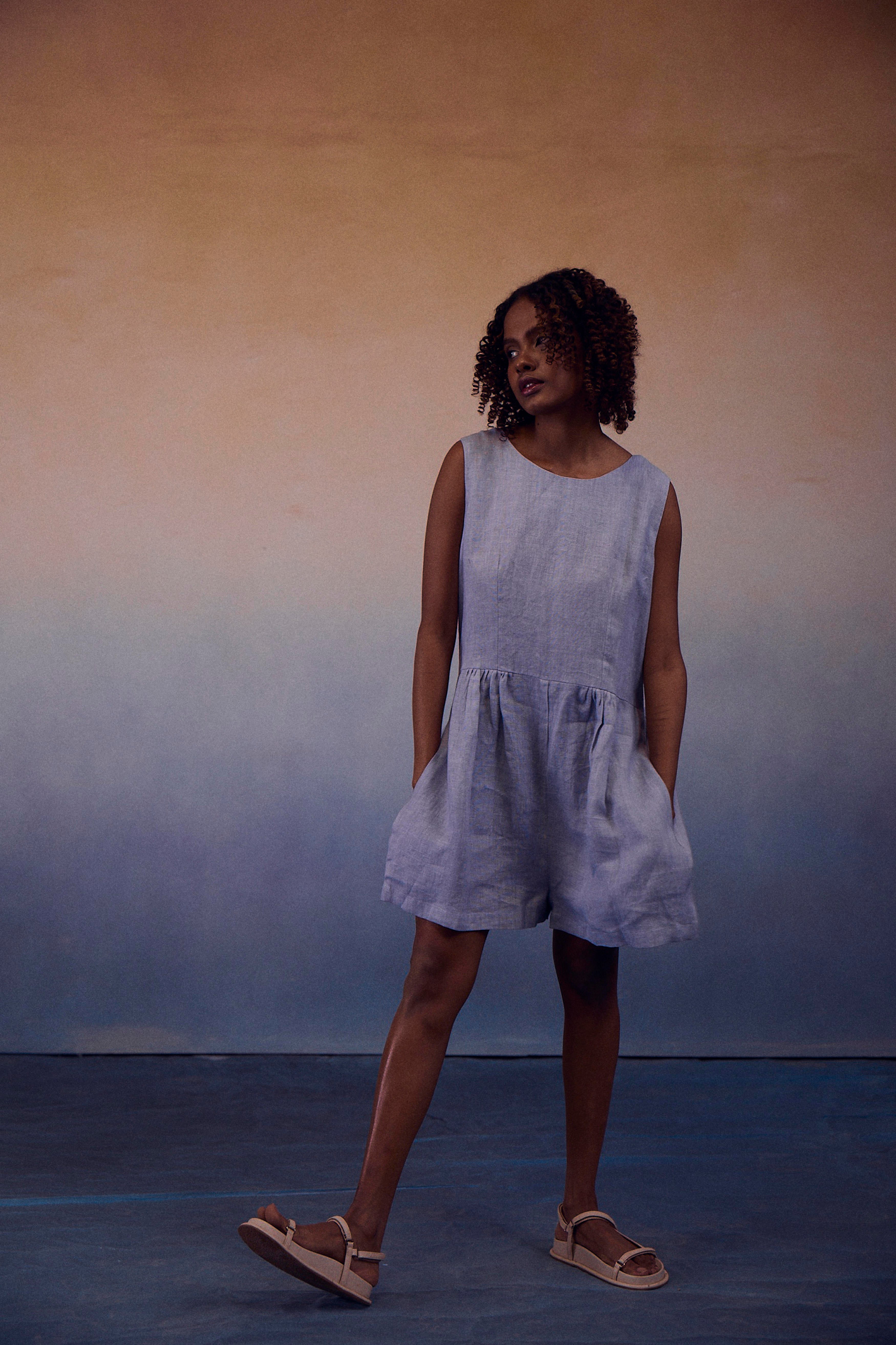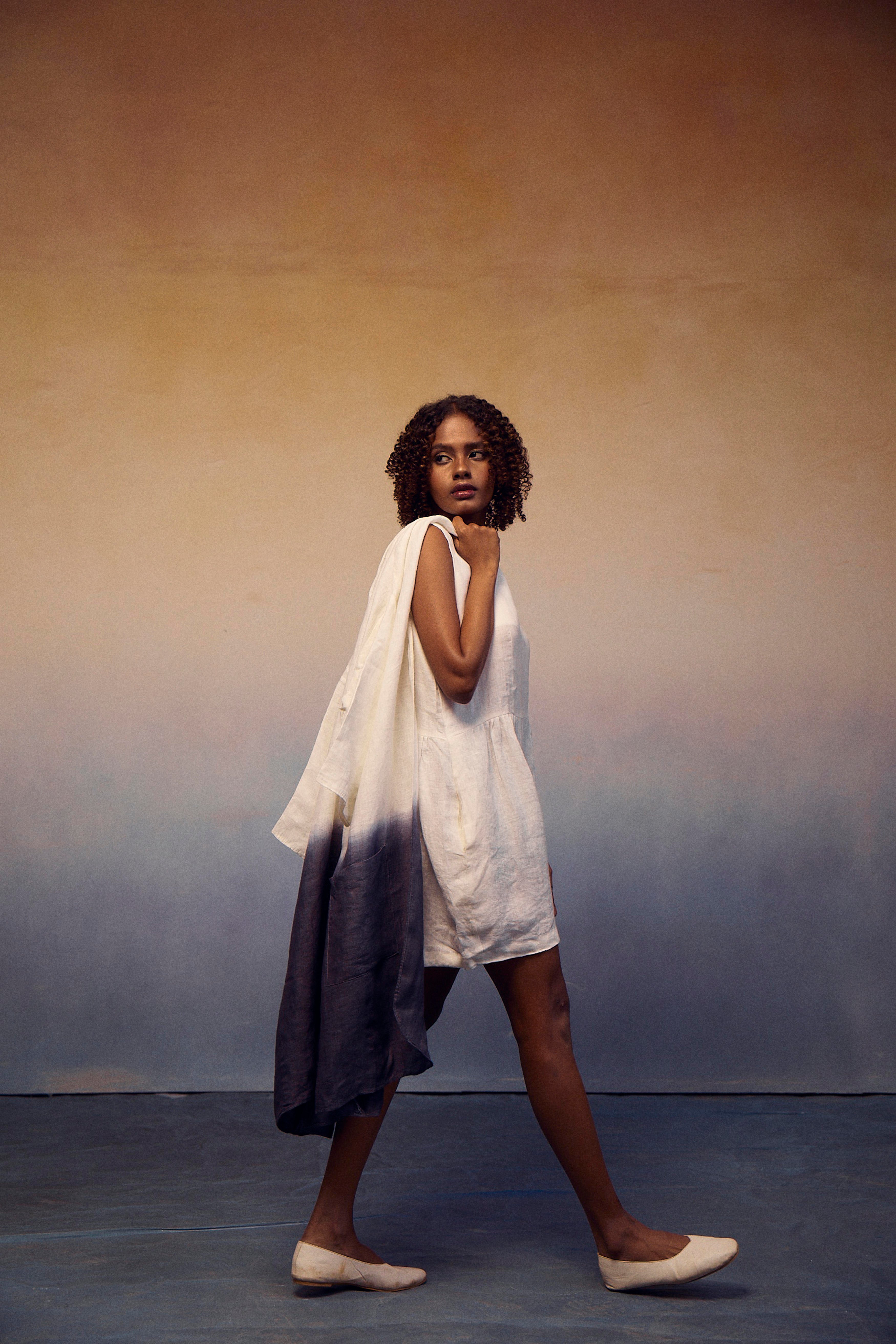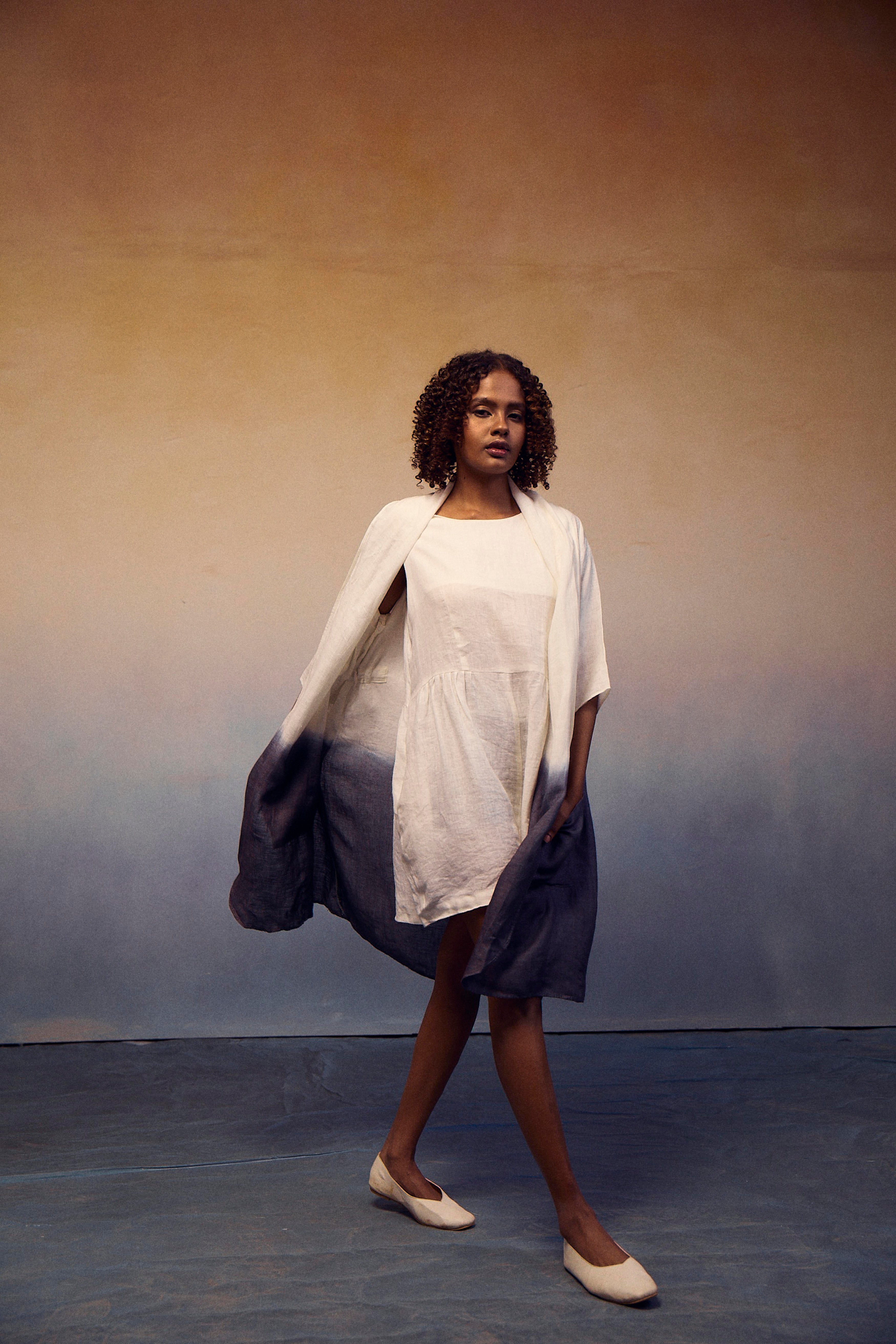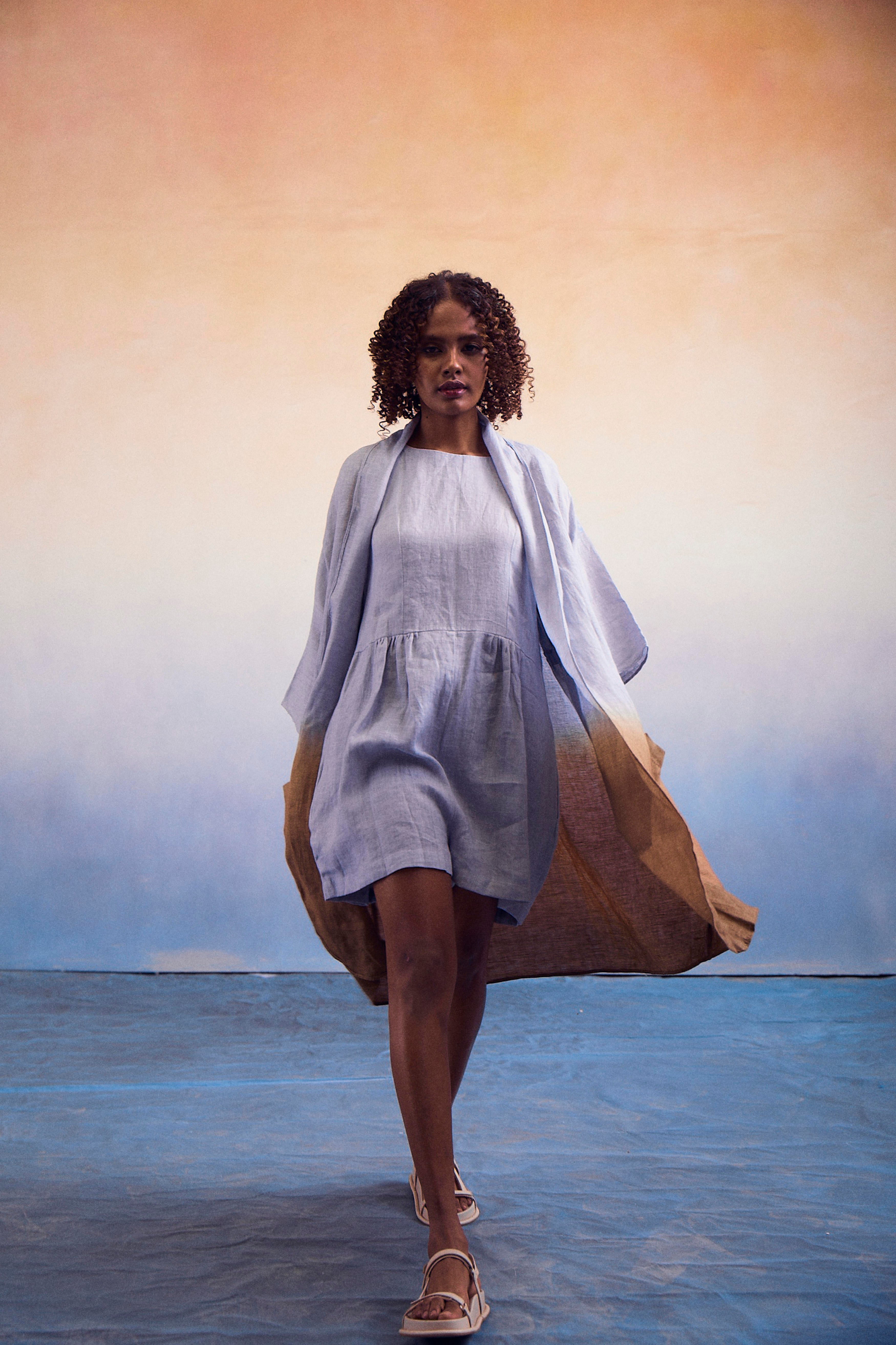 A 2 PC jumpsuit with overlay, which gives freedom and playfulness as well as a style statement. A short length with wide legs boy jumpsuit which brings comfort and a long jacket accompanies to add a statement that makes the entire two-piece outfit as a formal evening wear. Collection: Ocean of ombre