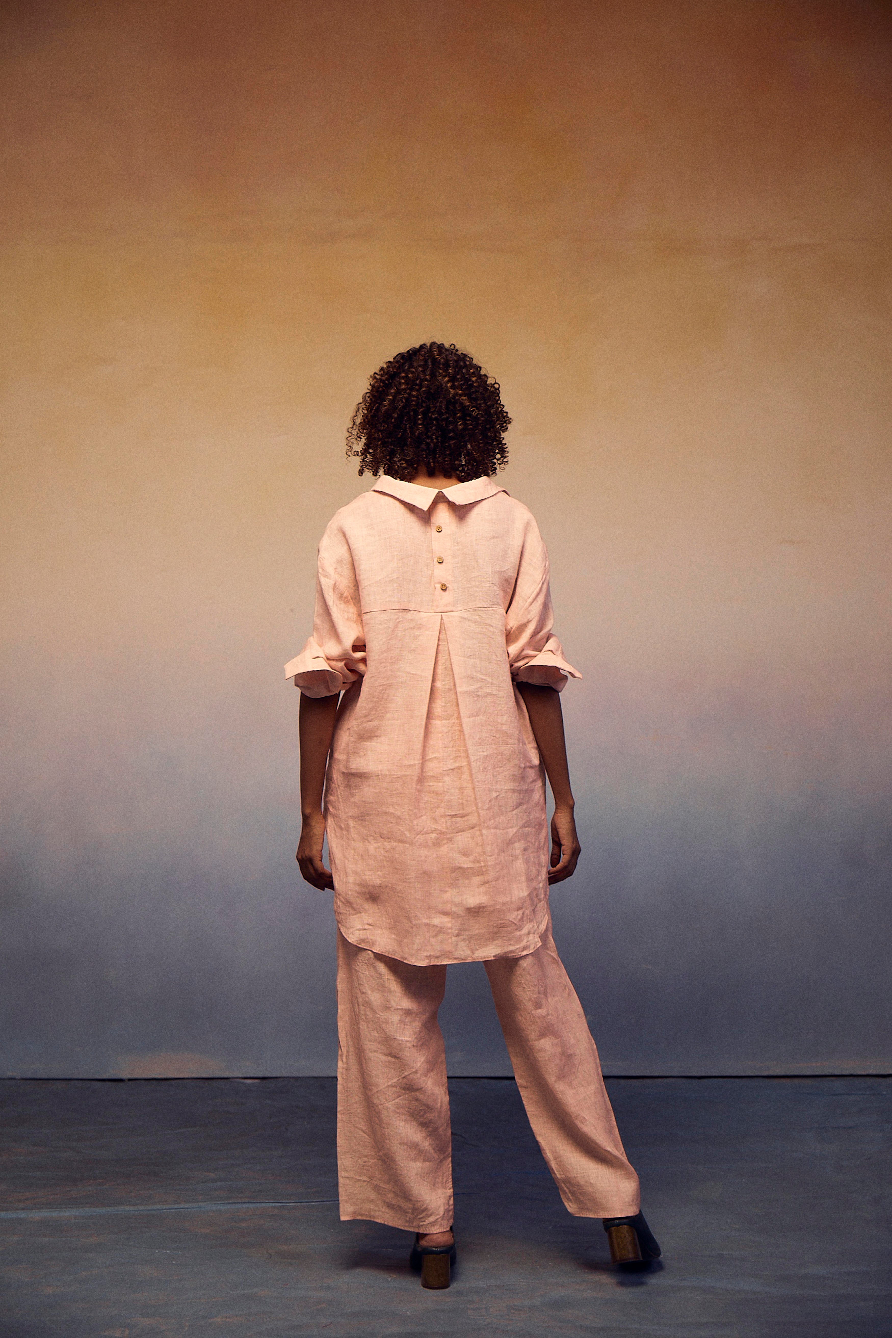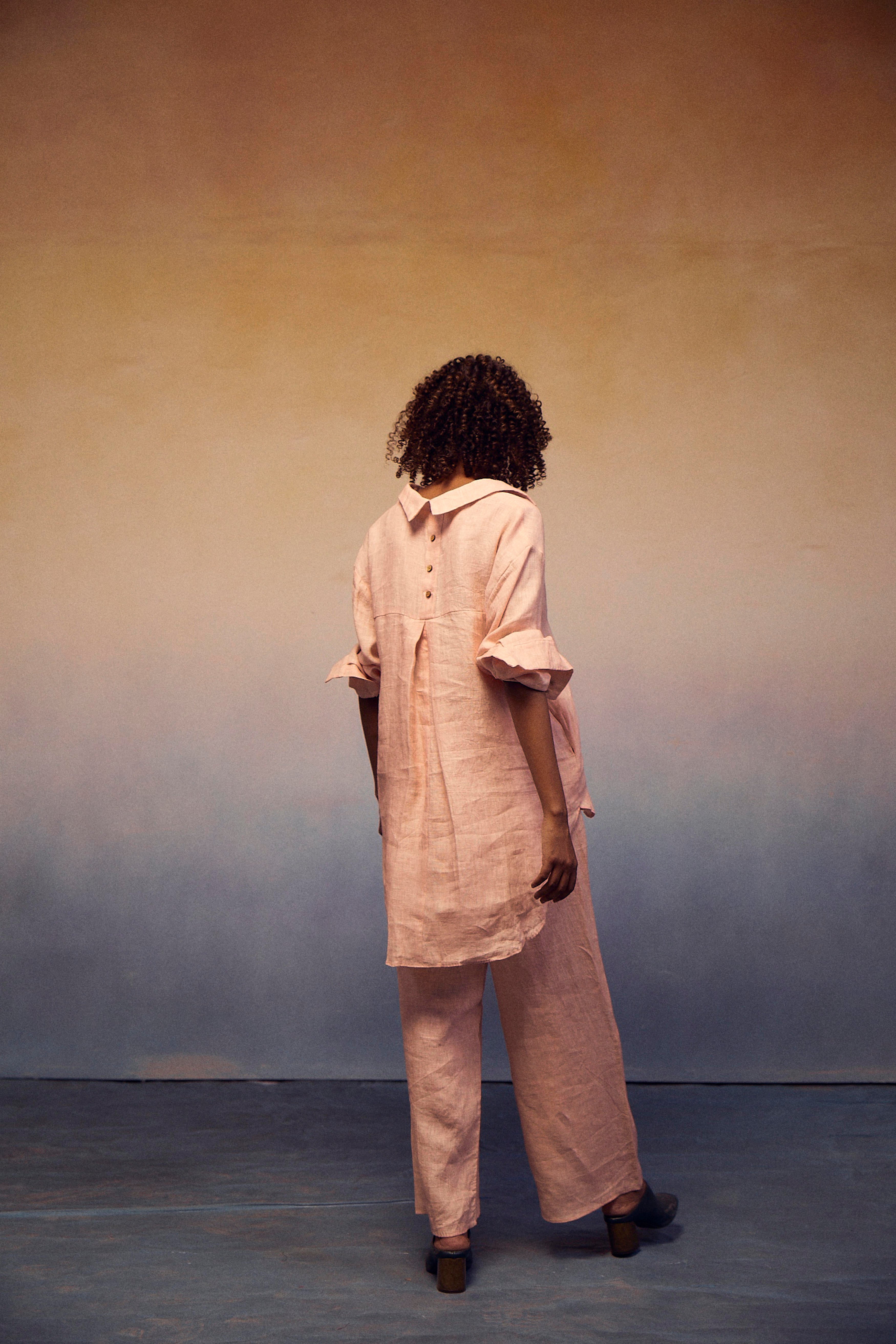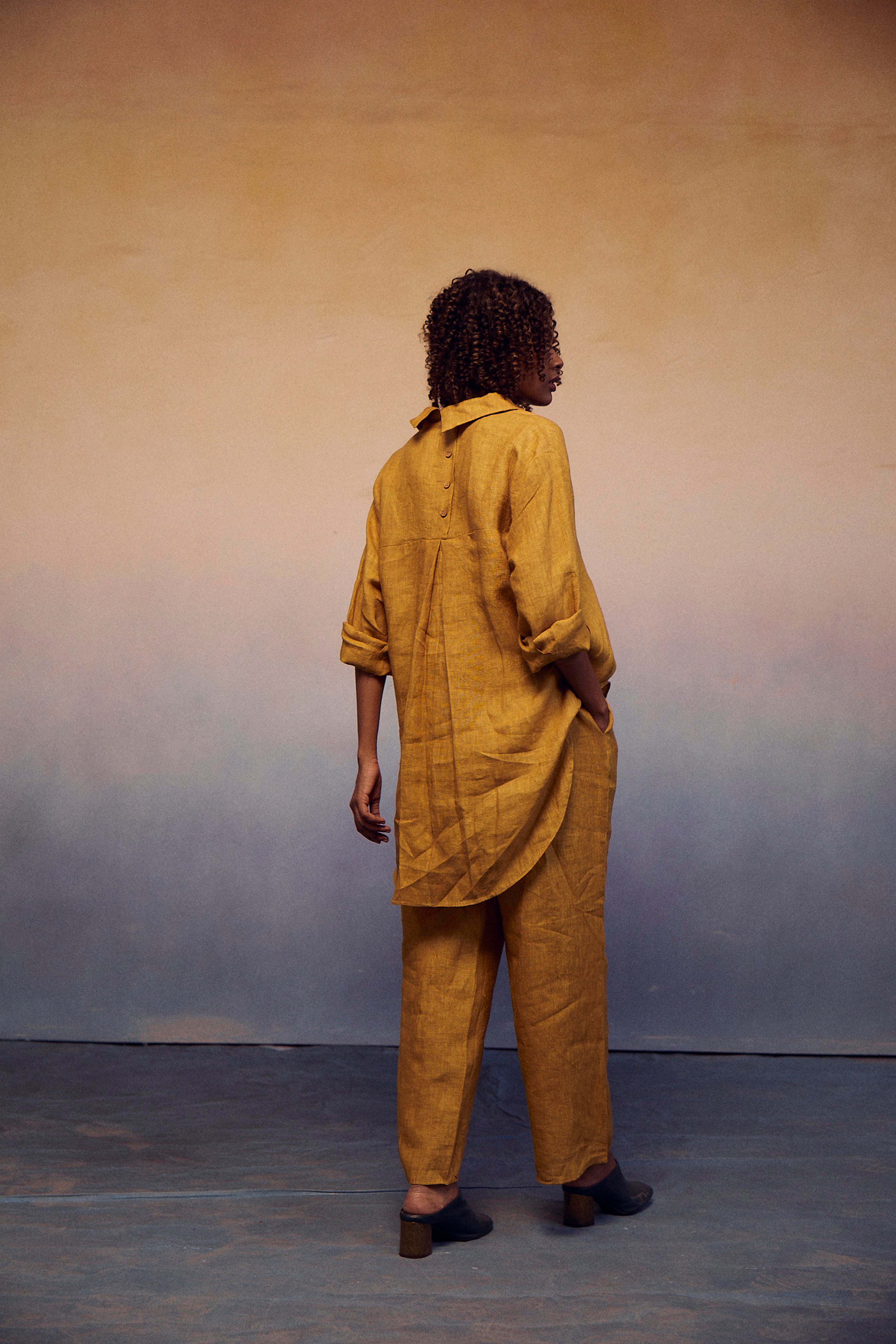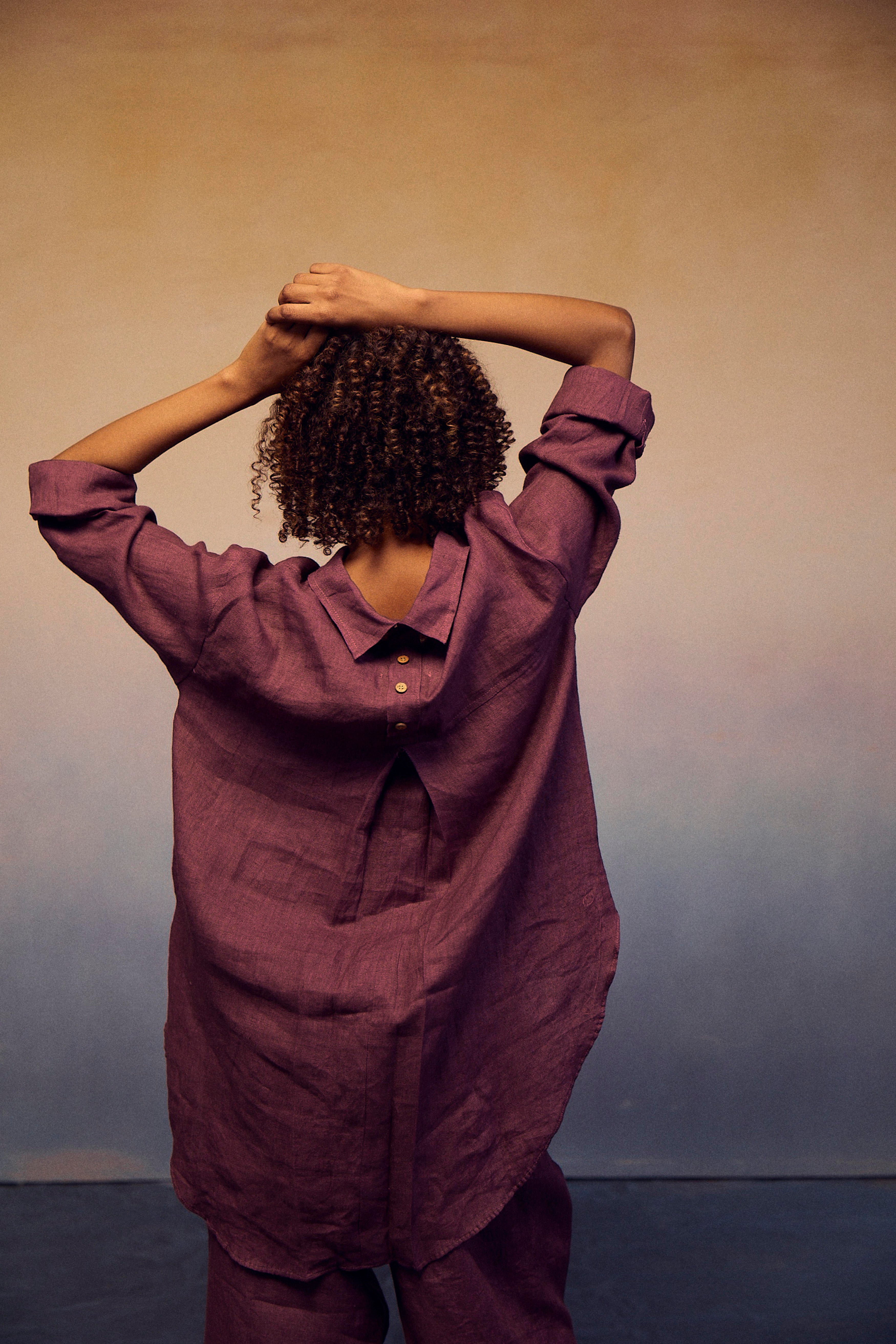 The oversized full button shirt beautifully fits a variety of sizes from small to large. The neck has a classic & soft collar. The back has extended yoke with button and an inverted box pleat to give the back roomy fit. A timeless staple for your wardrobe. You can team it up with denims, formal pants, shorts or just as an overlay.
