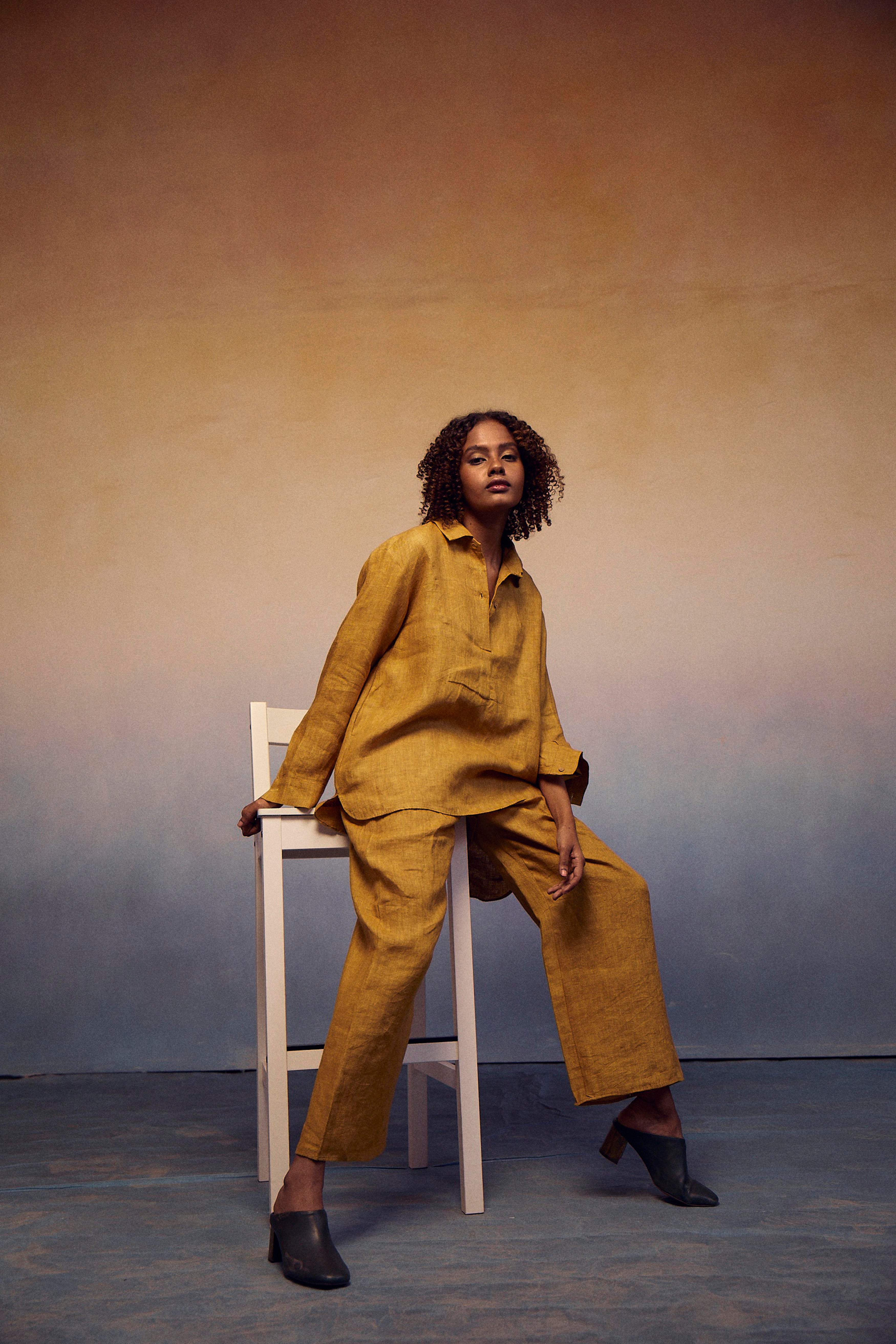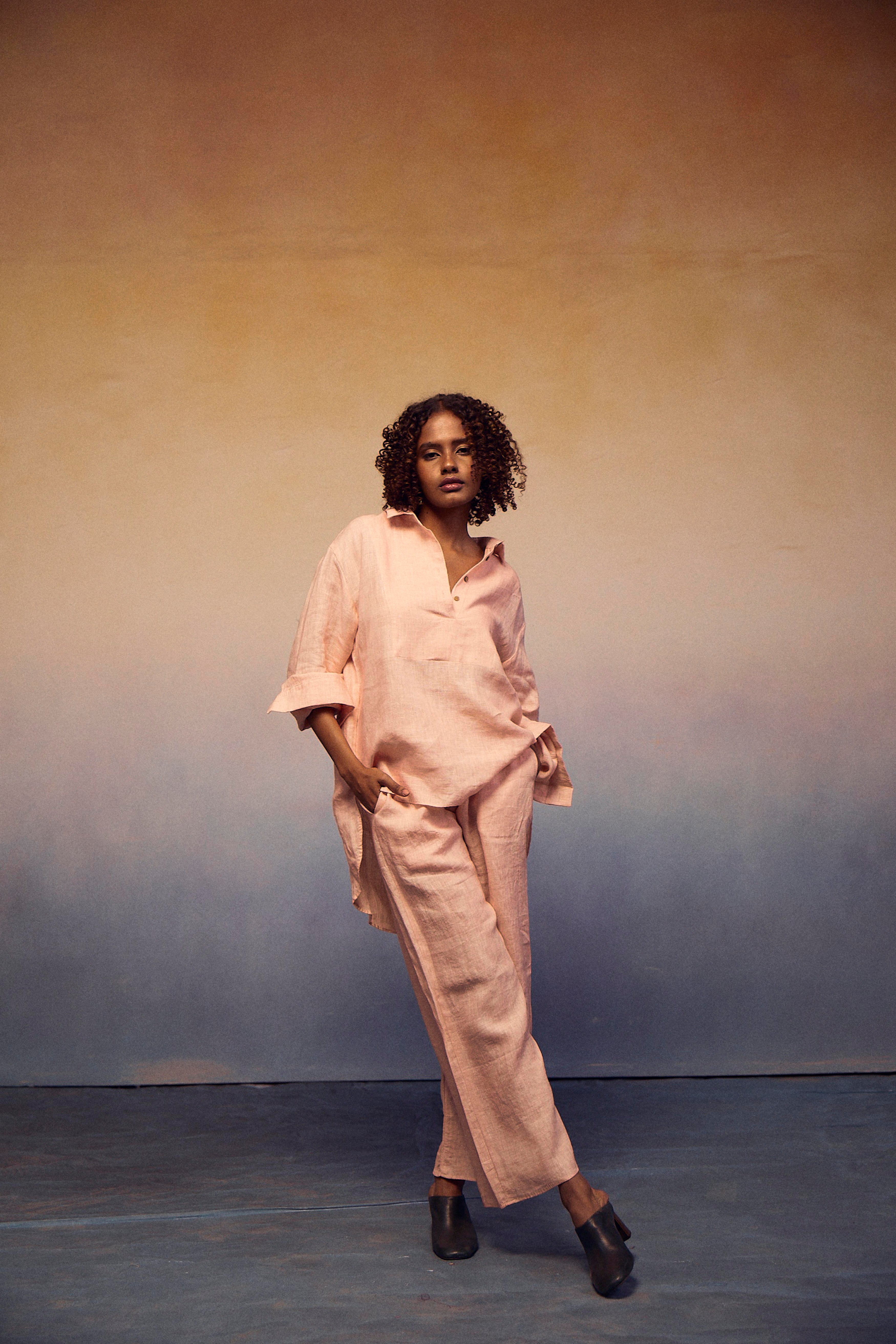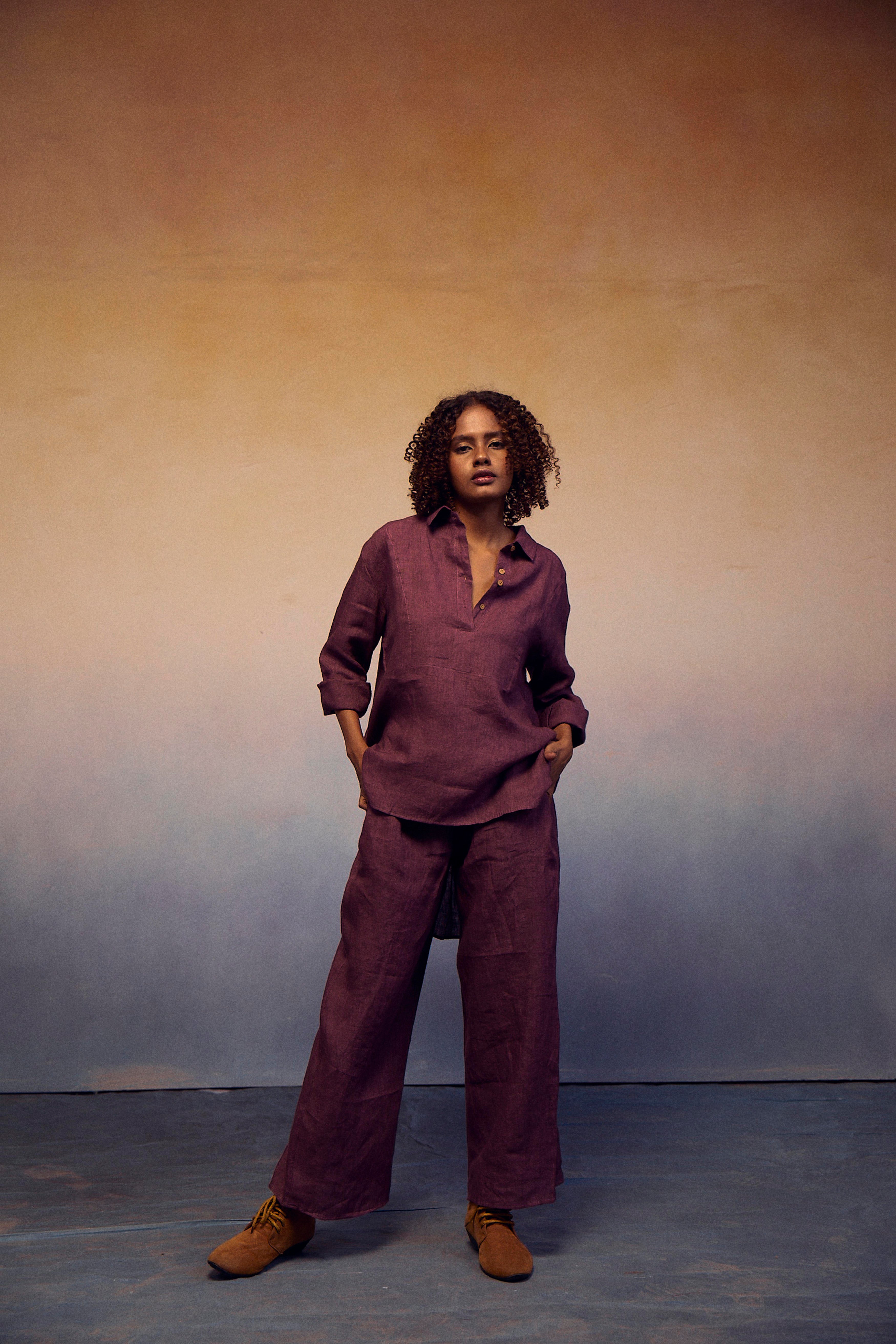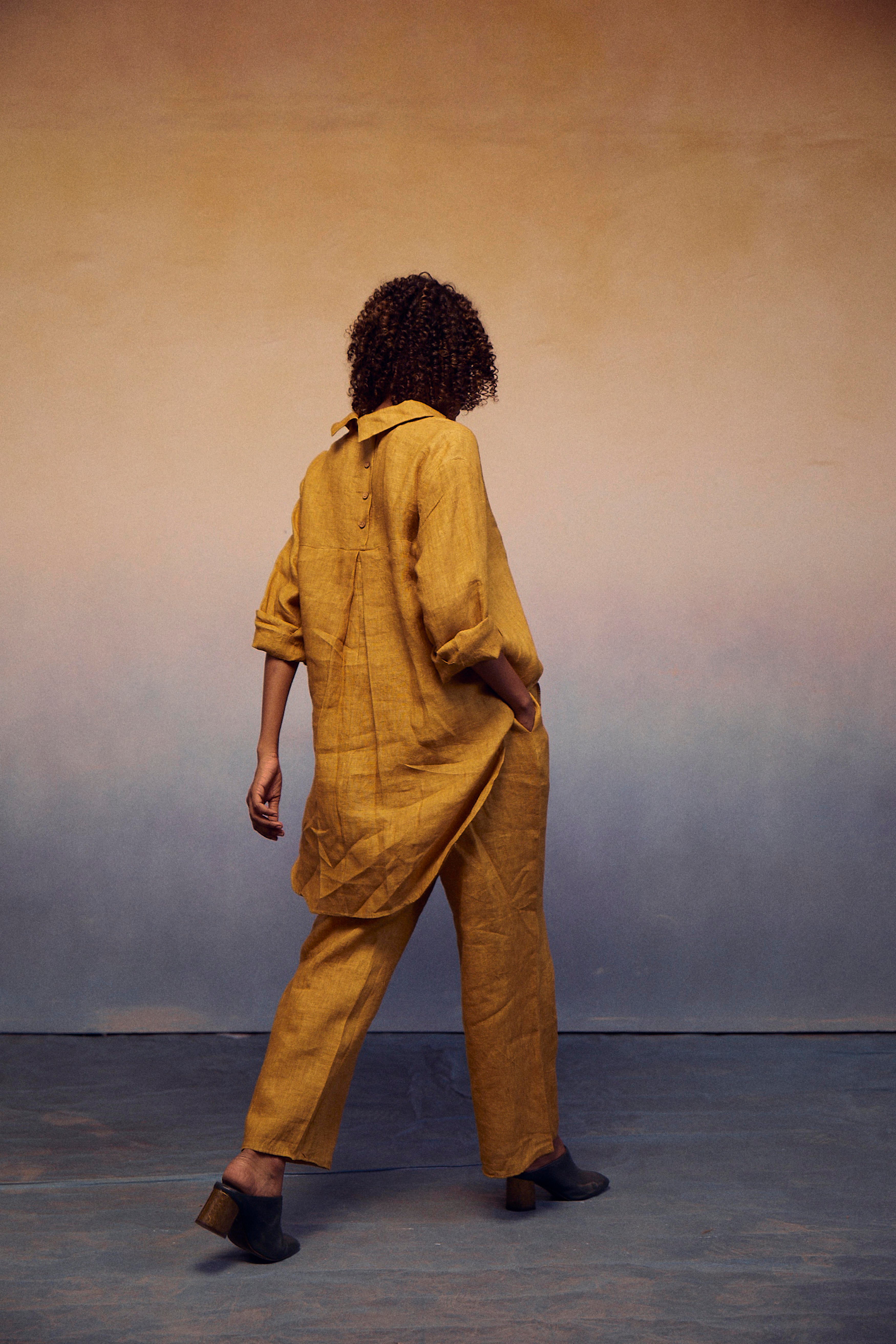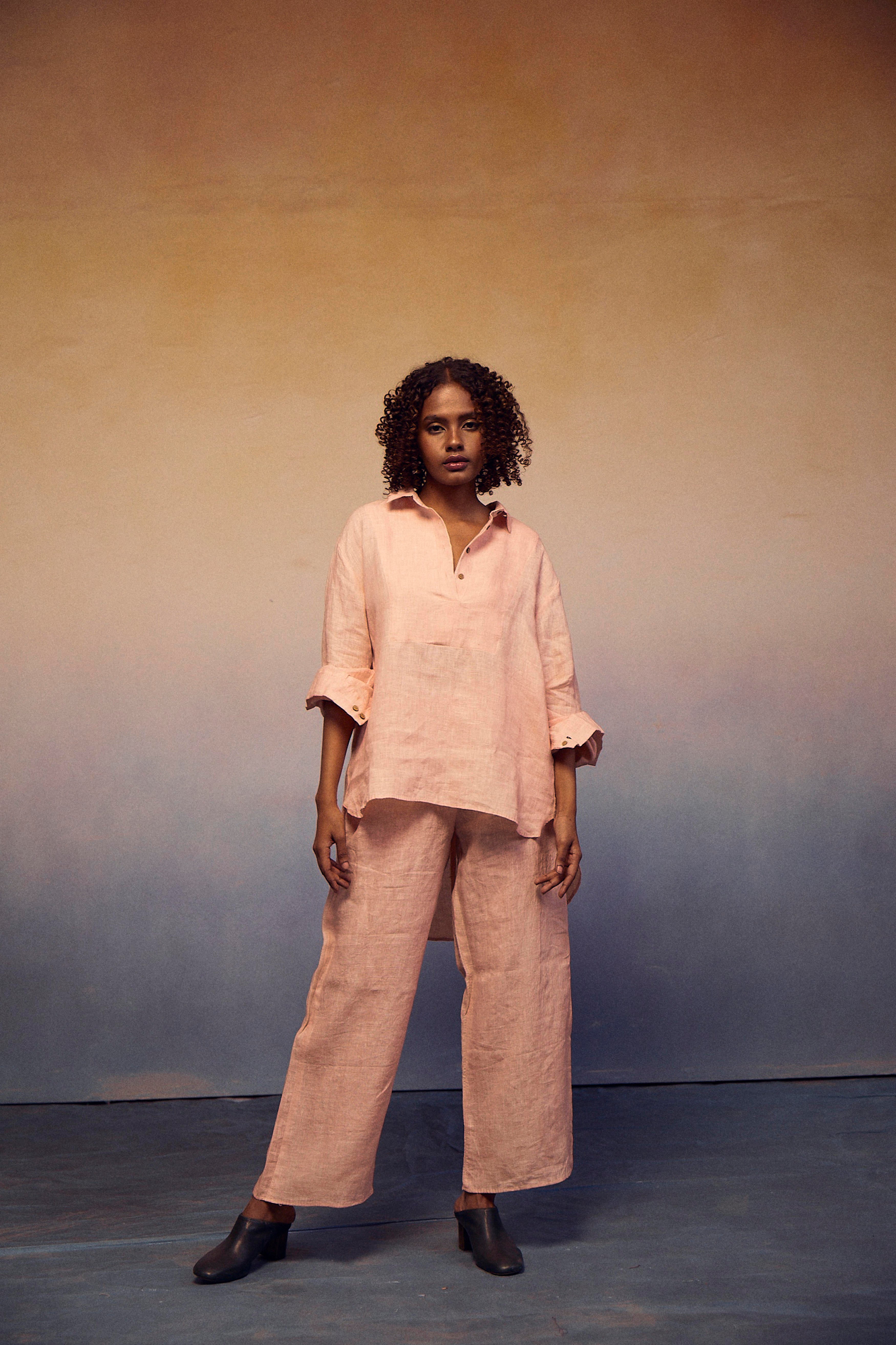 The oversized full button shirt beautifully fits a variety of sizes from small to large. The neck has a classic & soft collar. The back has extended yoke with button and an inverted box pleat to give the back roomy fit. A timeless staple for your wardrobe. You can team it up with denims, formal pants, shorts or just as an overlay.
