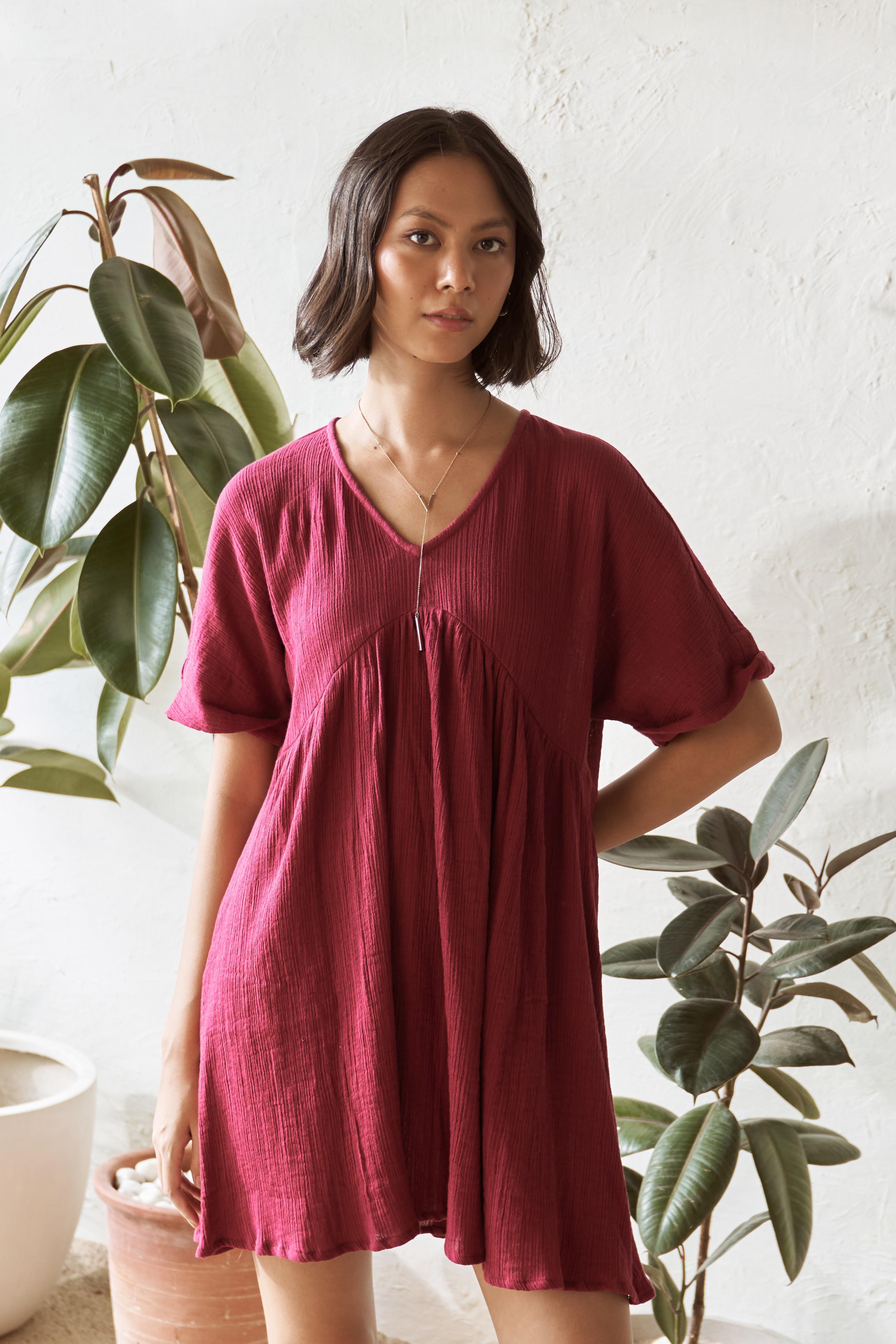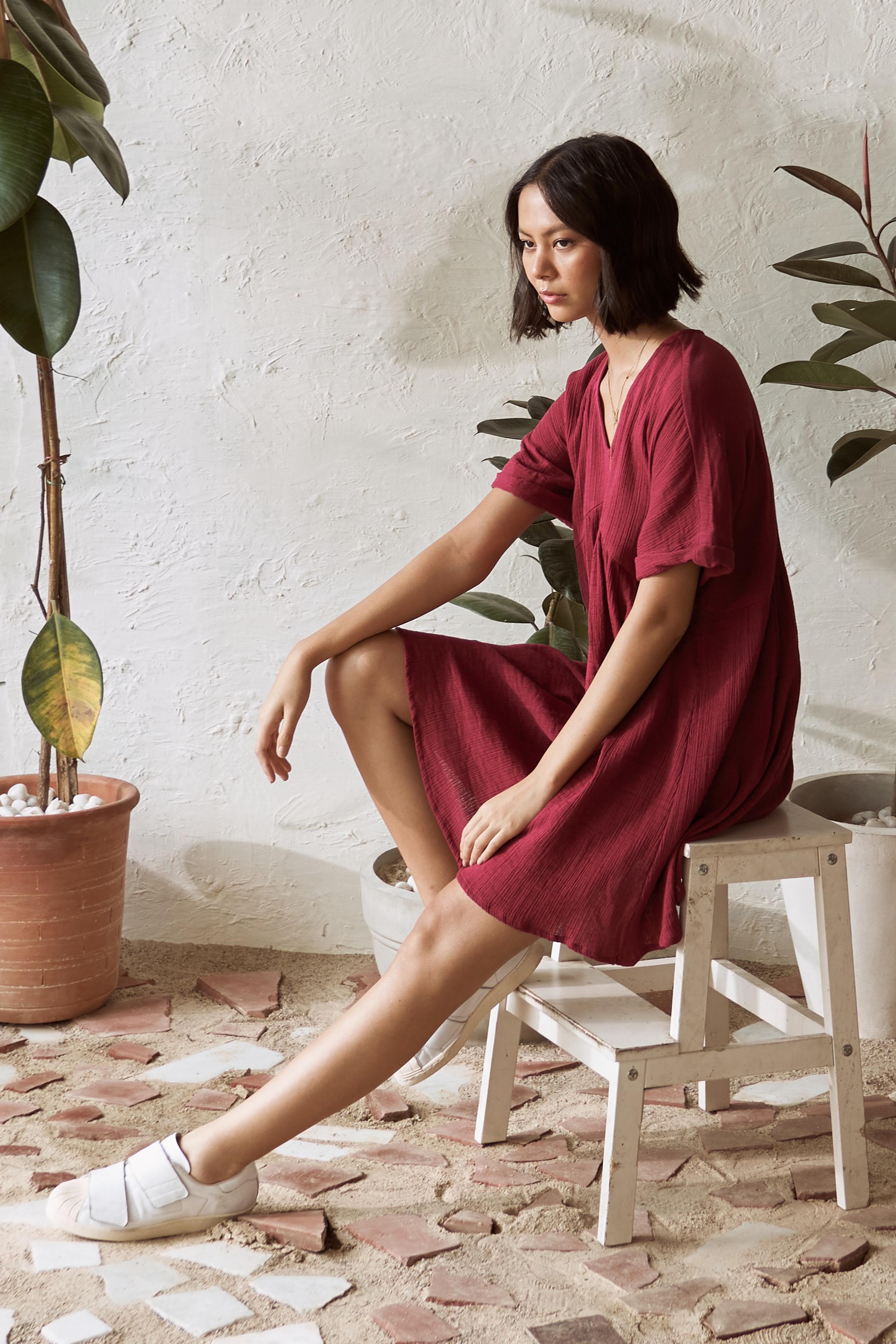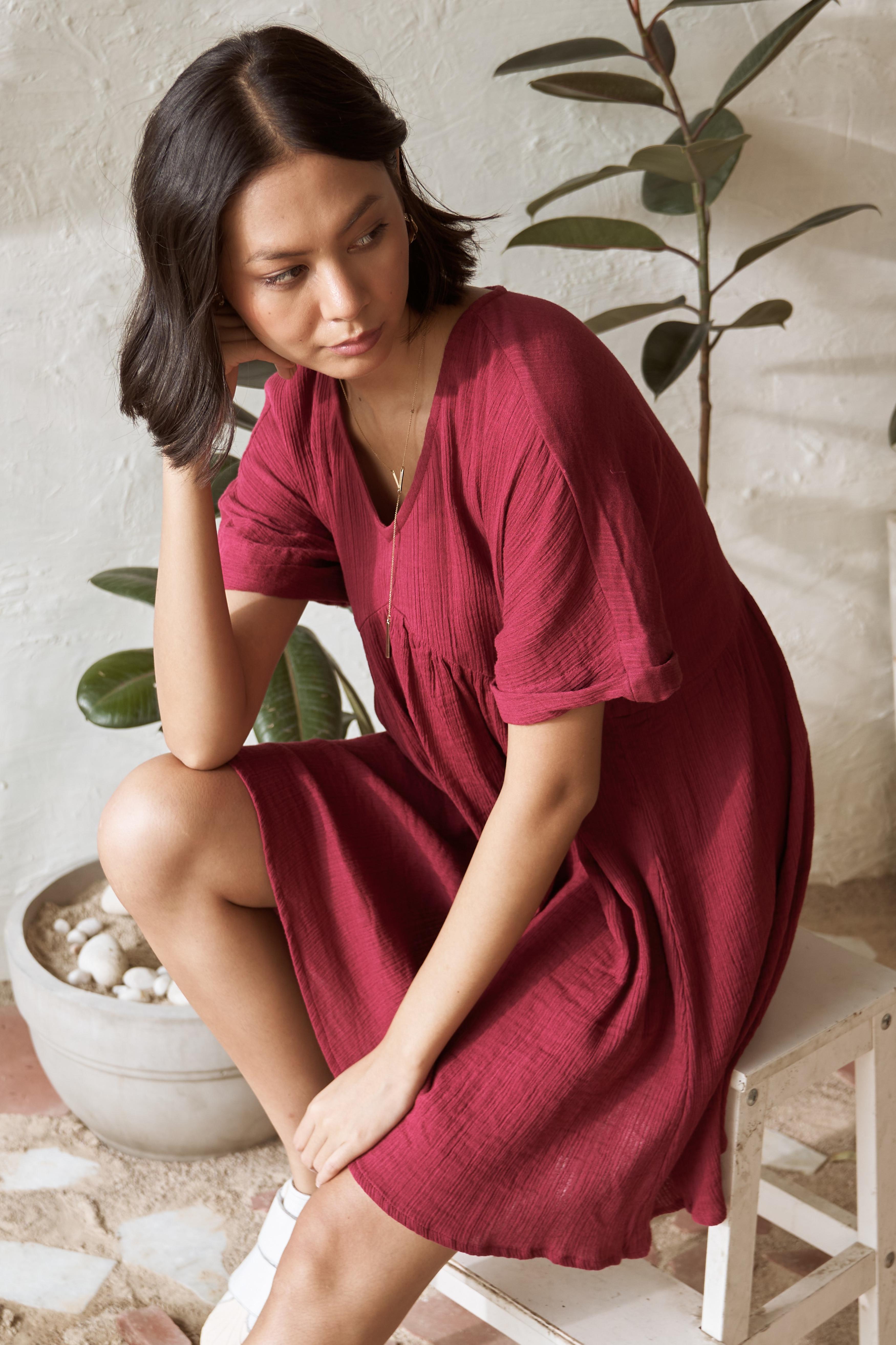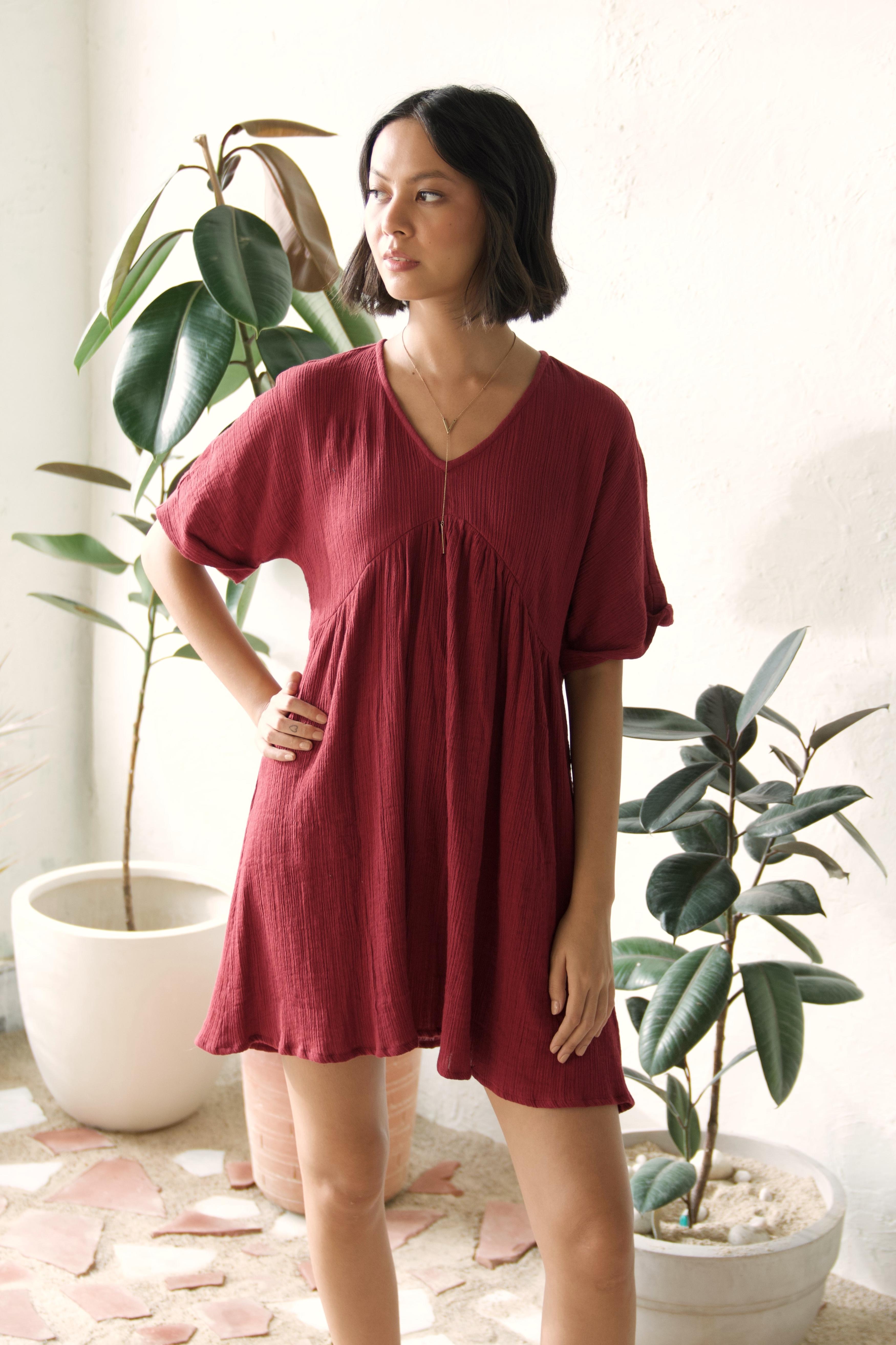 This short dress offers an easy-breezy fit, making it perfect for days when you want to look put-together with minimal effort. Just slip it on, and you're ready to go, whether you're running errands or enjoying a casual day out. Designed for comfort and style, the simple yet smart design of this dress makes it a must-have wardrobe staple. Embrace the combination of comfort and chic with the Canoopi Crimson Dress, perfect for everyday explorations.