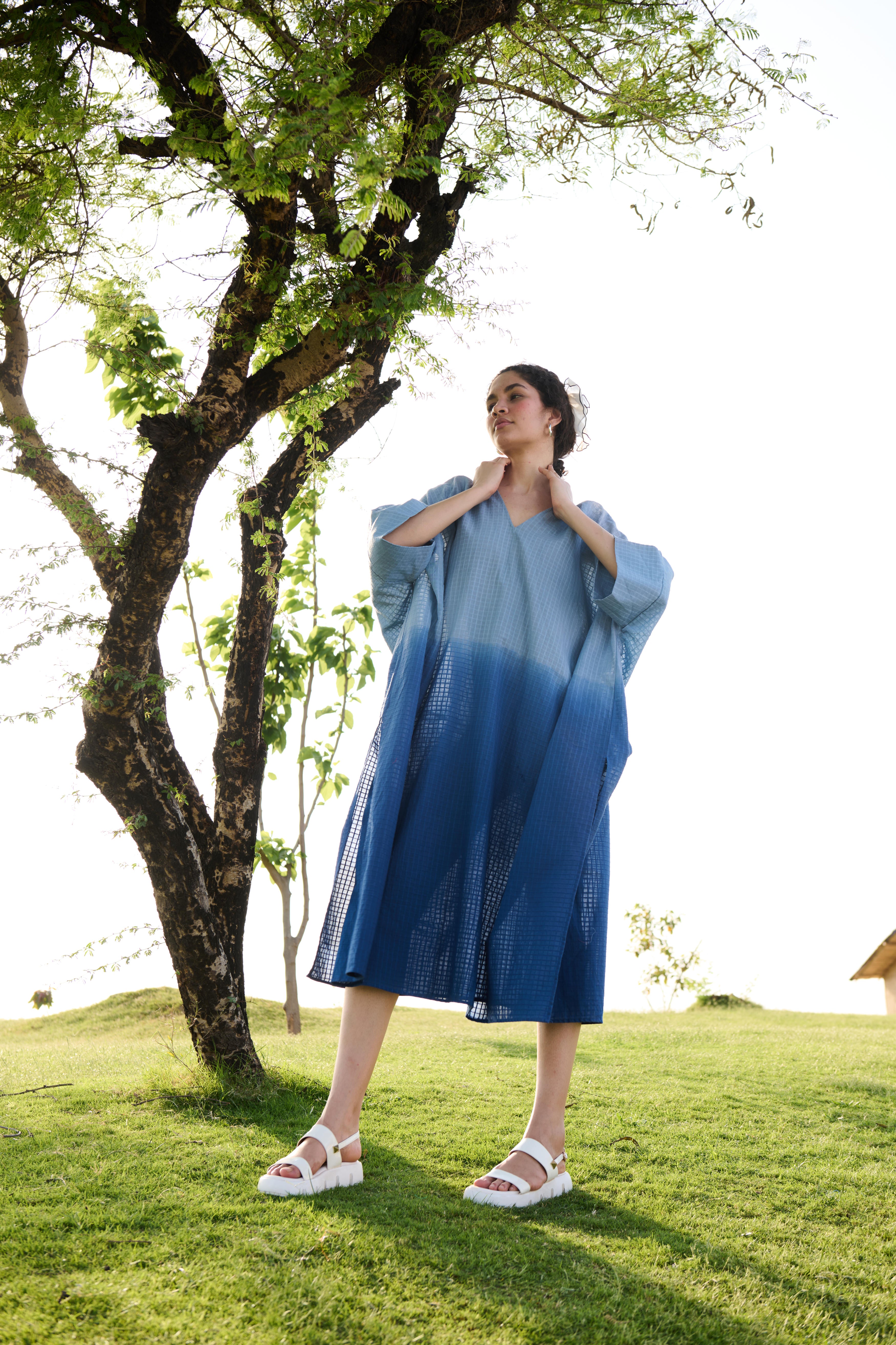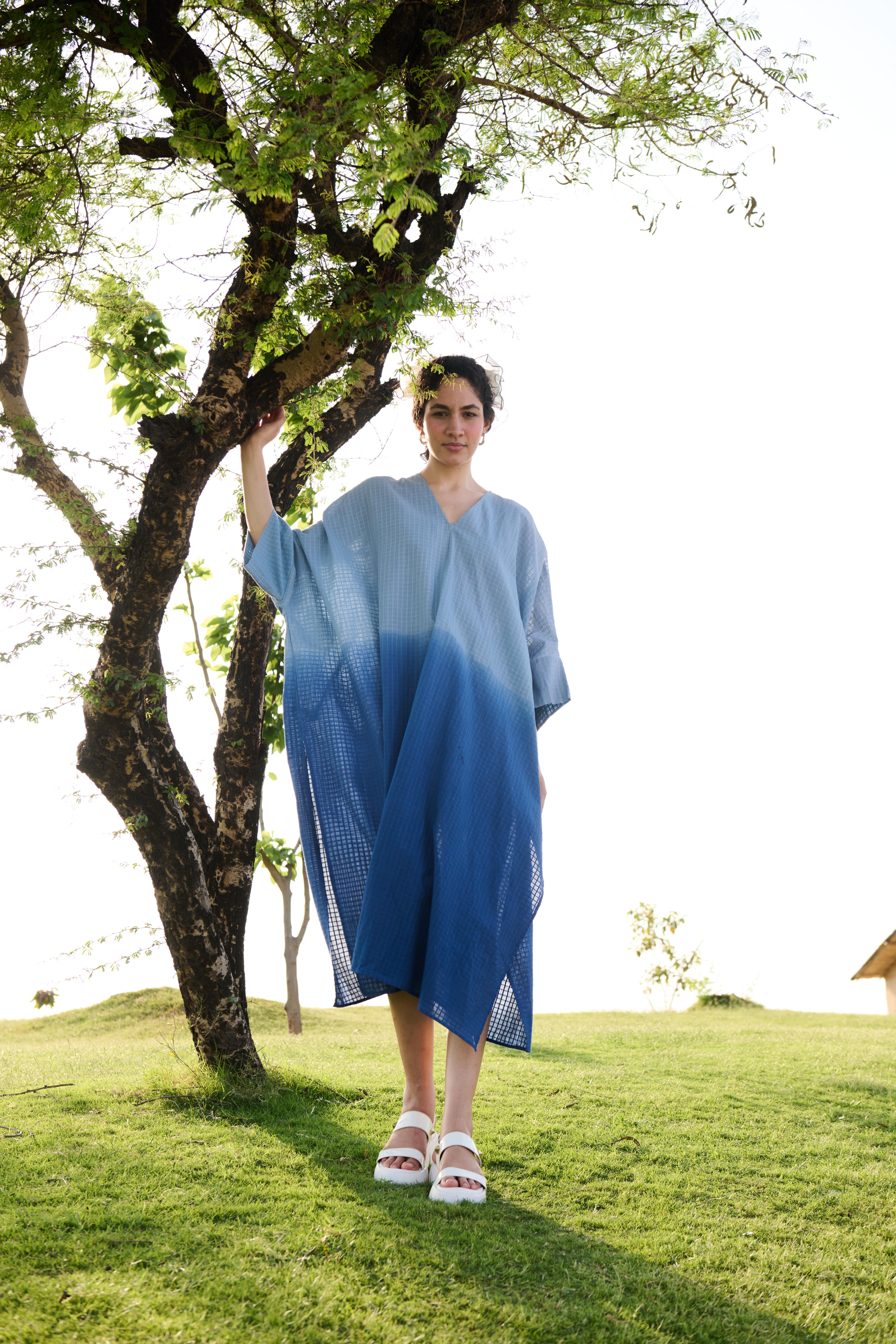 The Angela relaxed fit Kaftan is crafted with checkred cotton fabric with ombre azo free dyeing in the shades of summer.