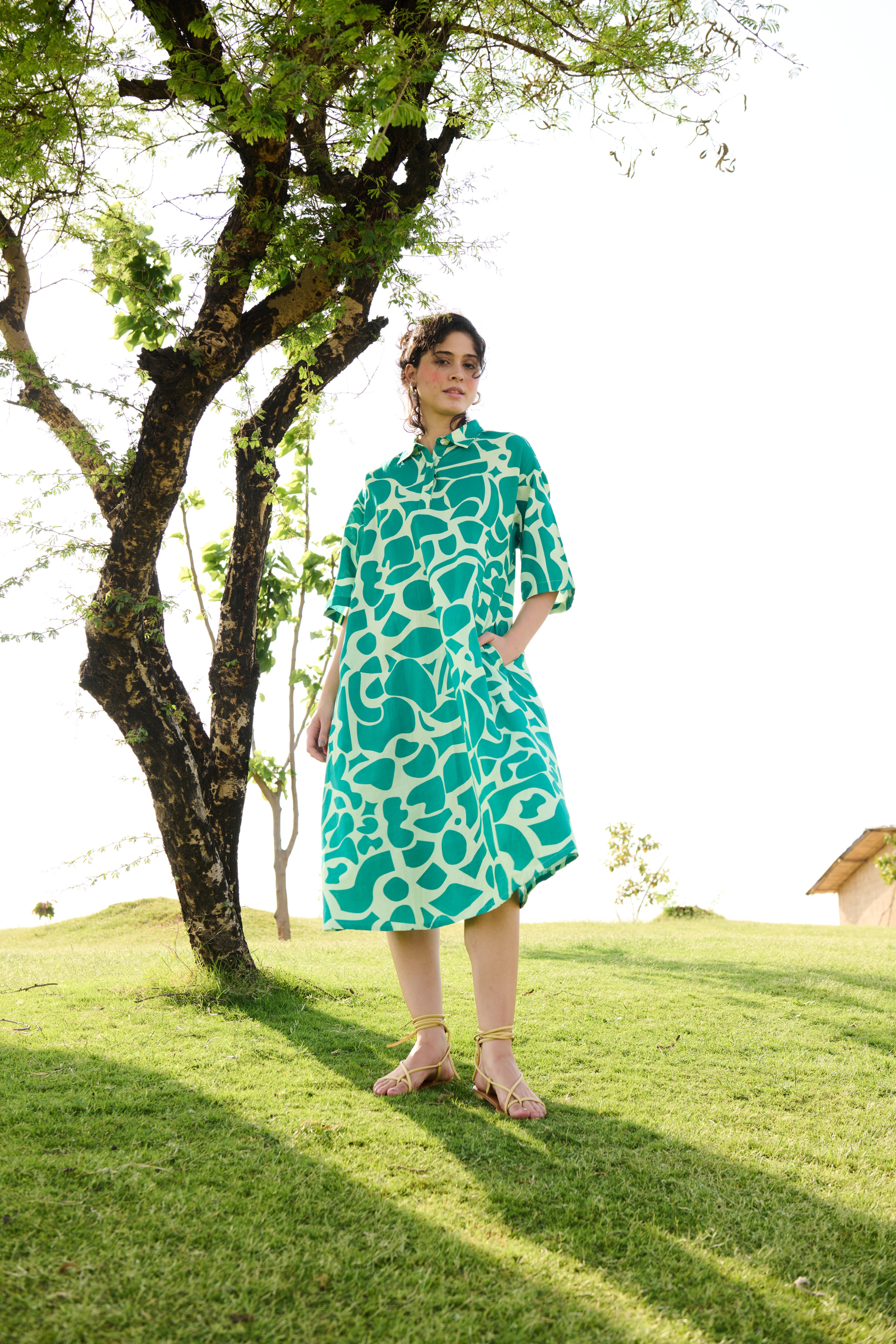 The Madame dress is crafted from our linen cotton fabrication. This oversized dress has shirt collar with pockets.
