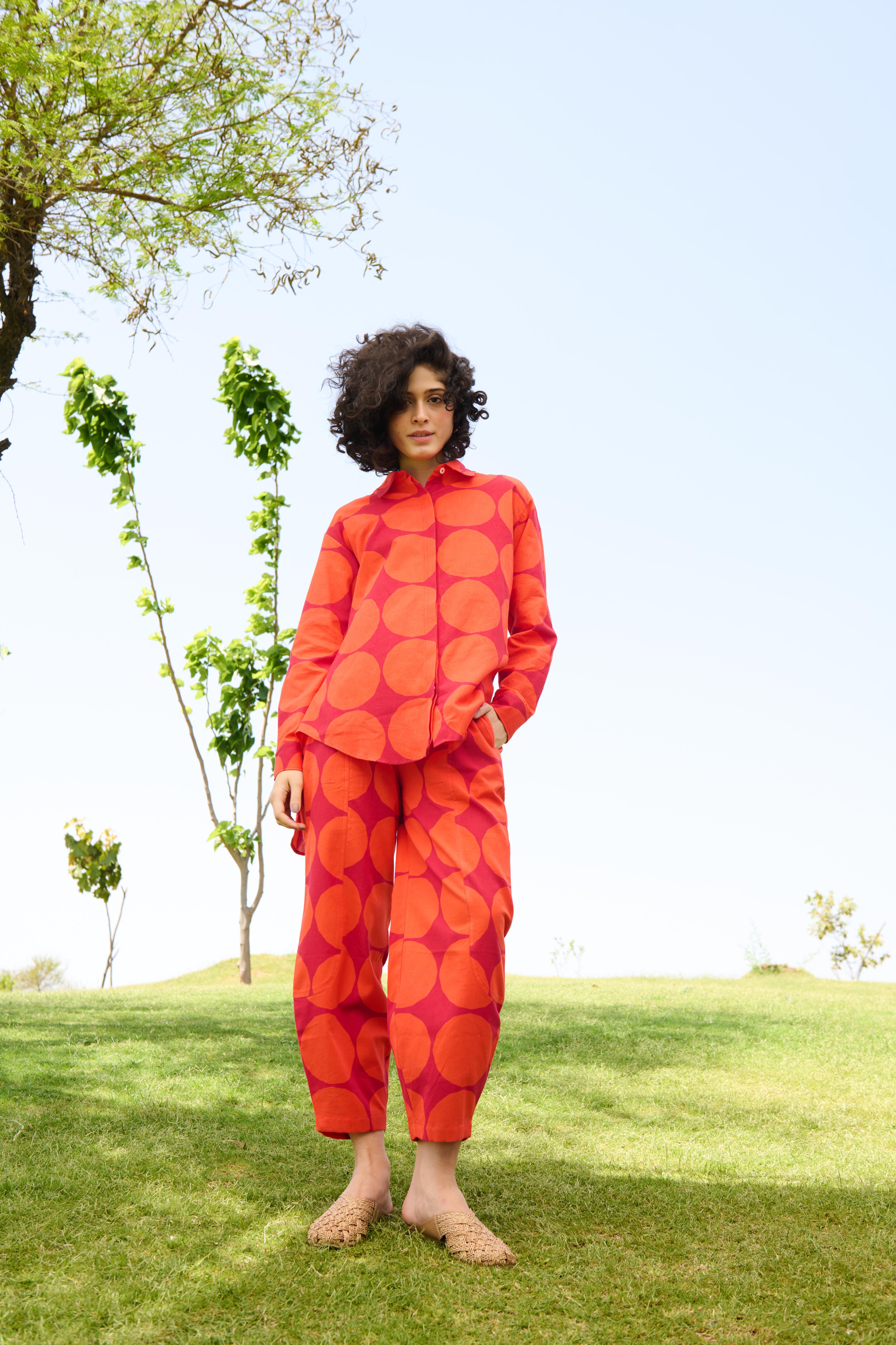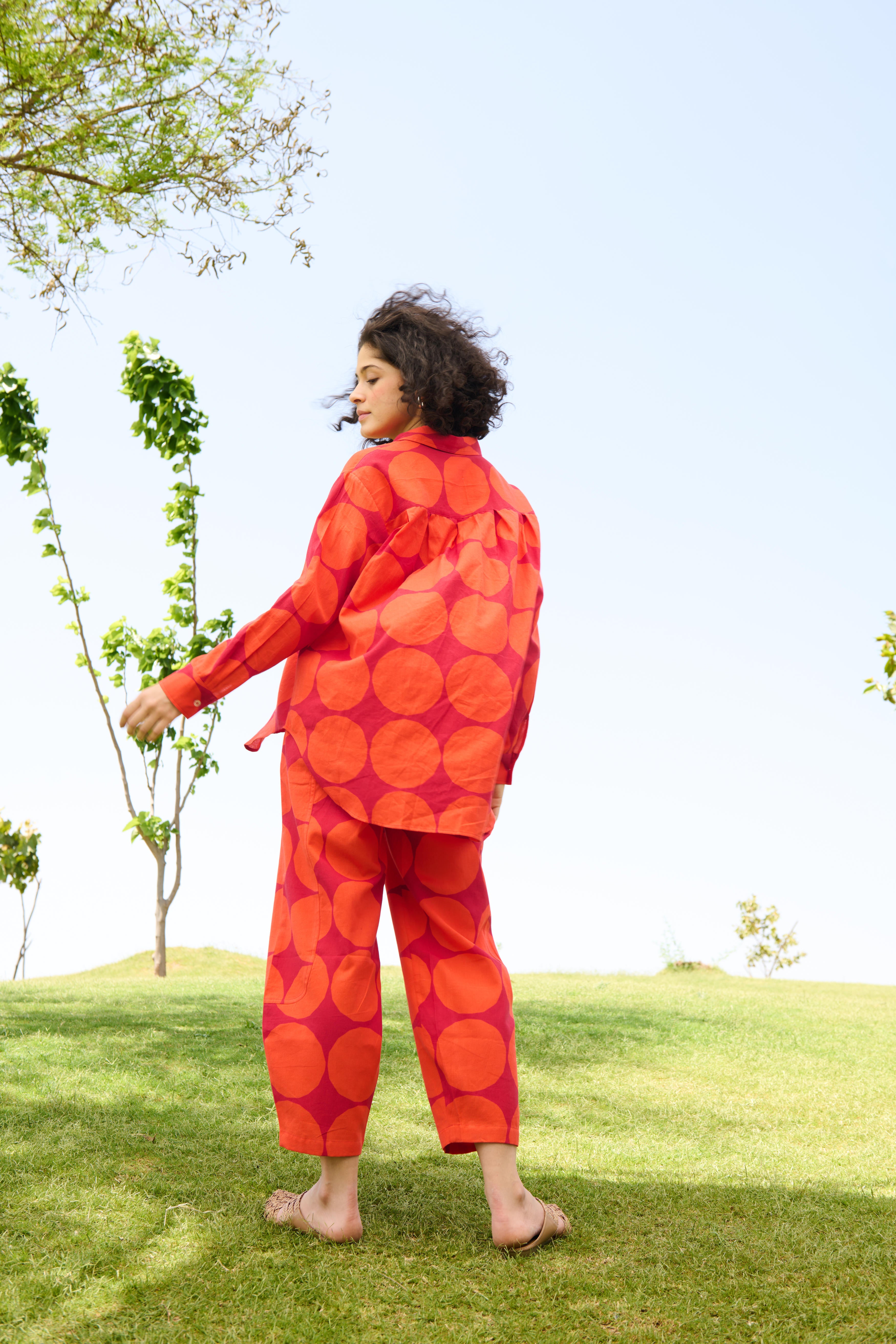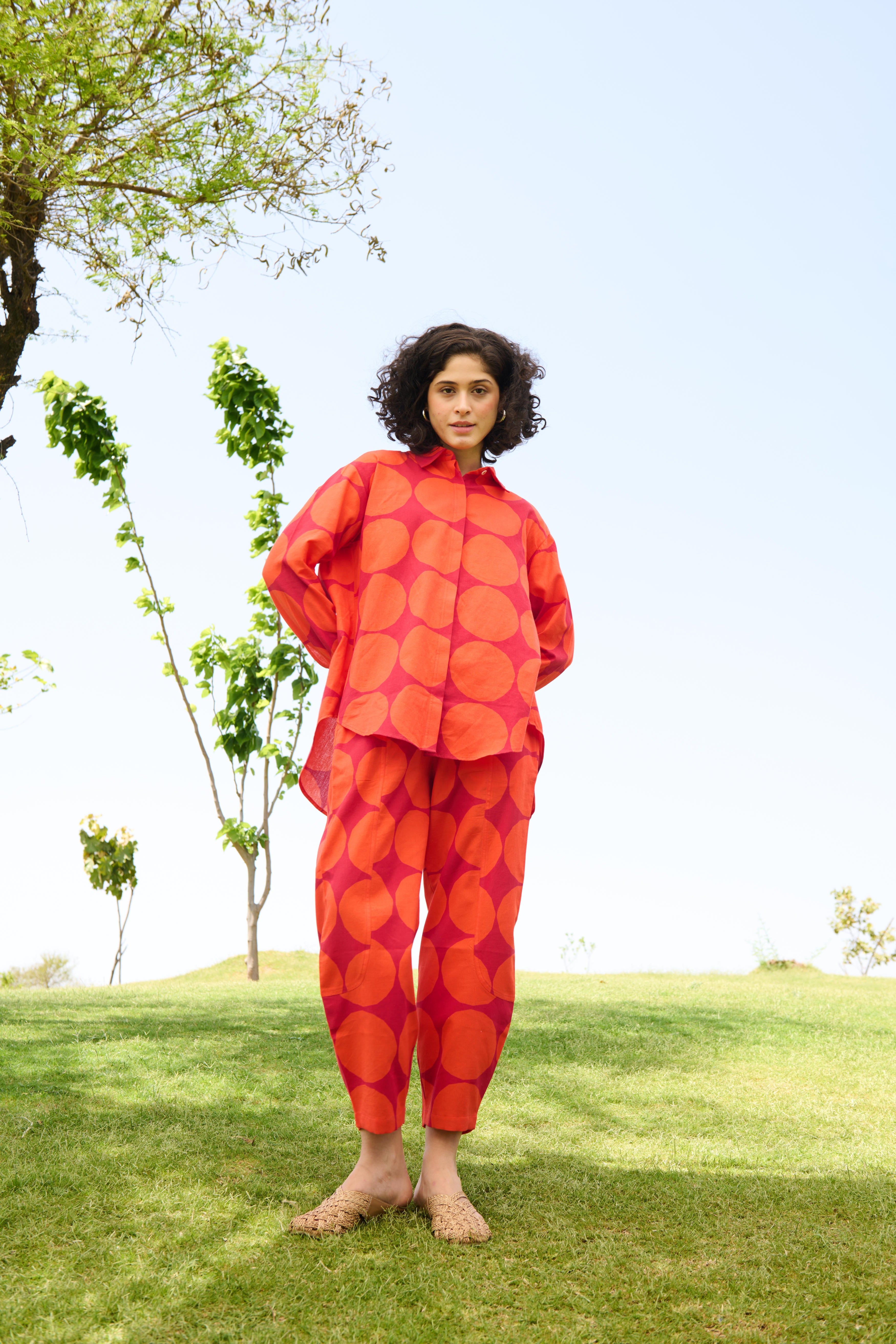 The Marigold coord set has a button down shirt crafted from our linen cotton fabric paired with our panelled trouser with stitch detailing.