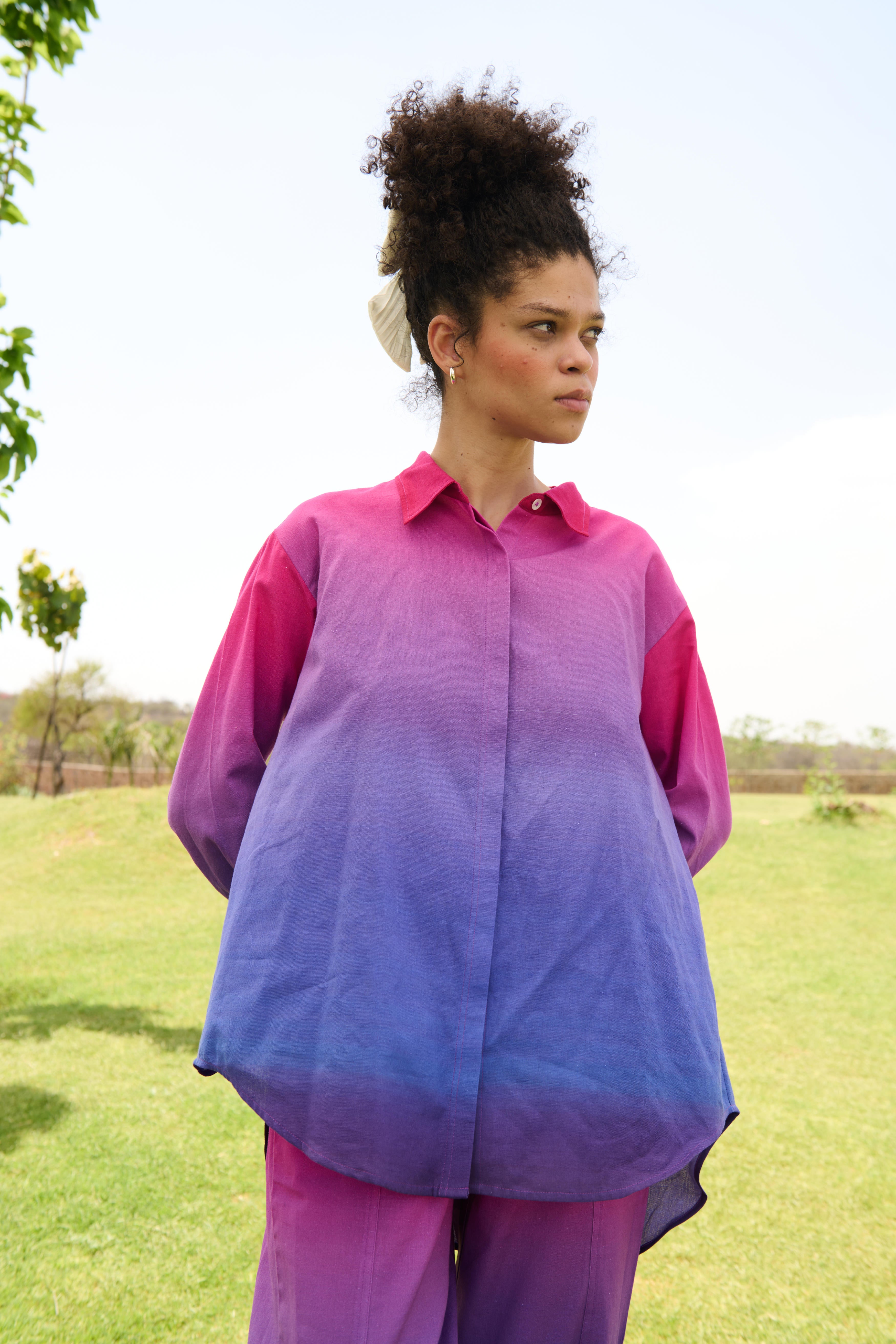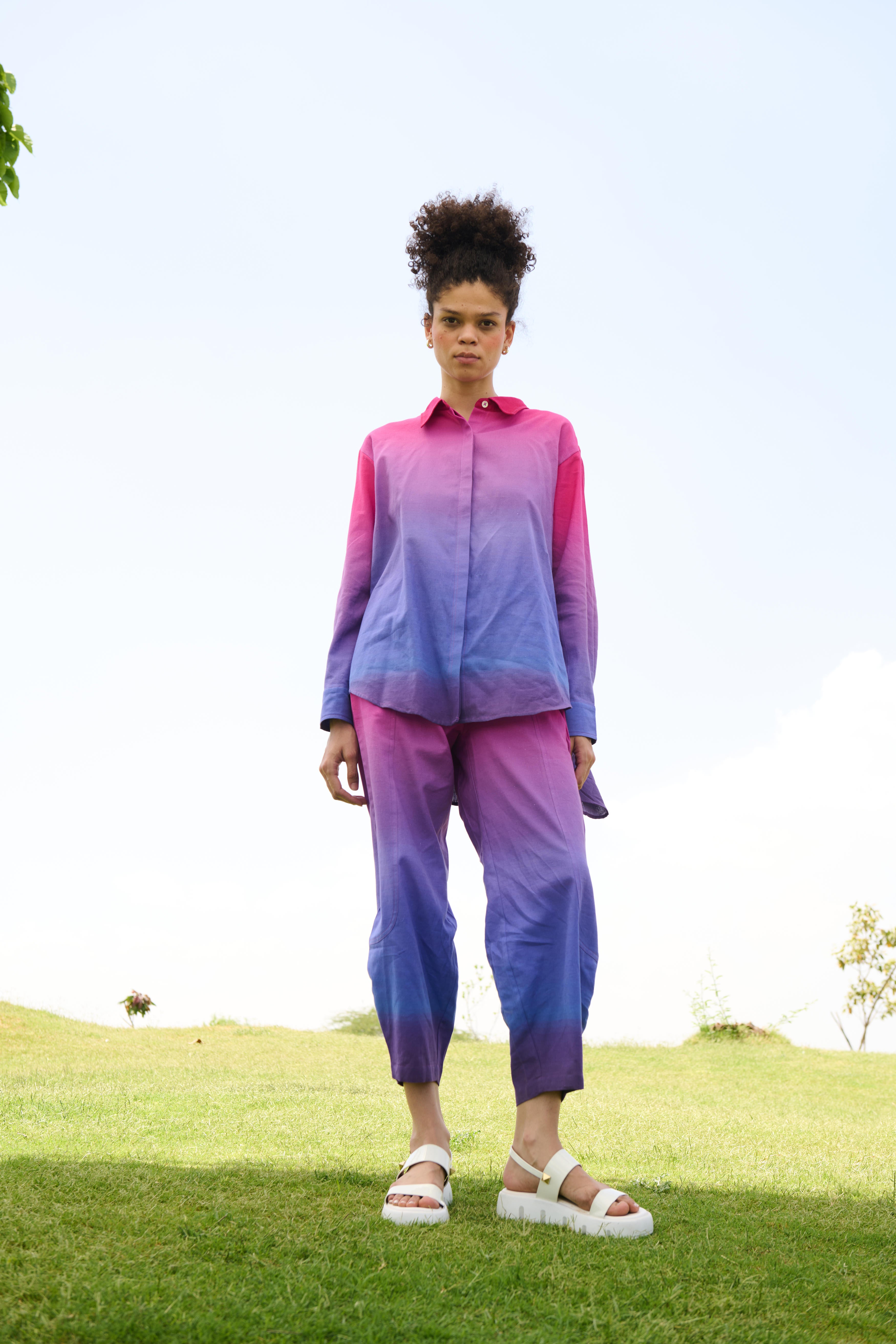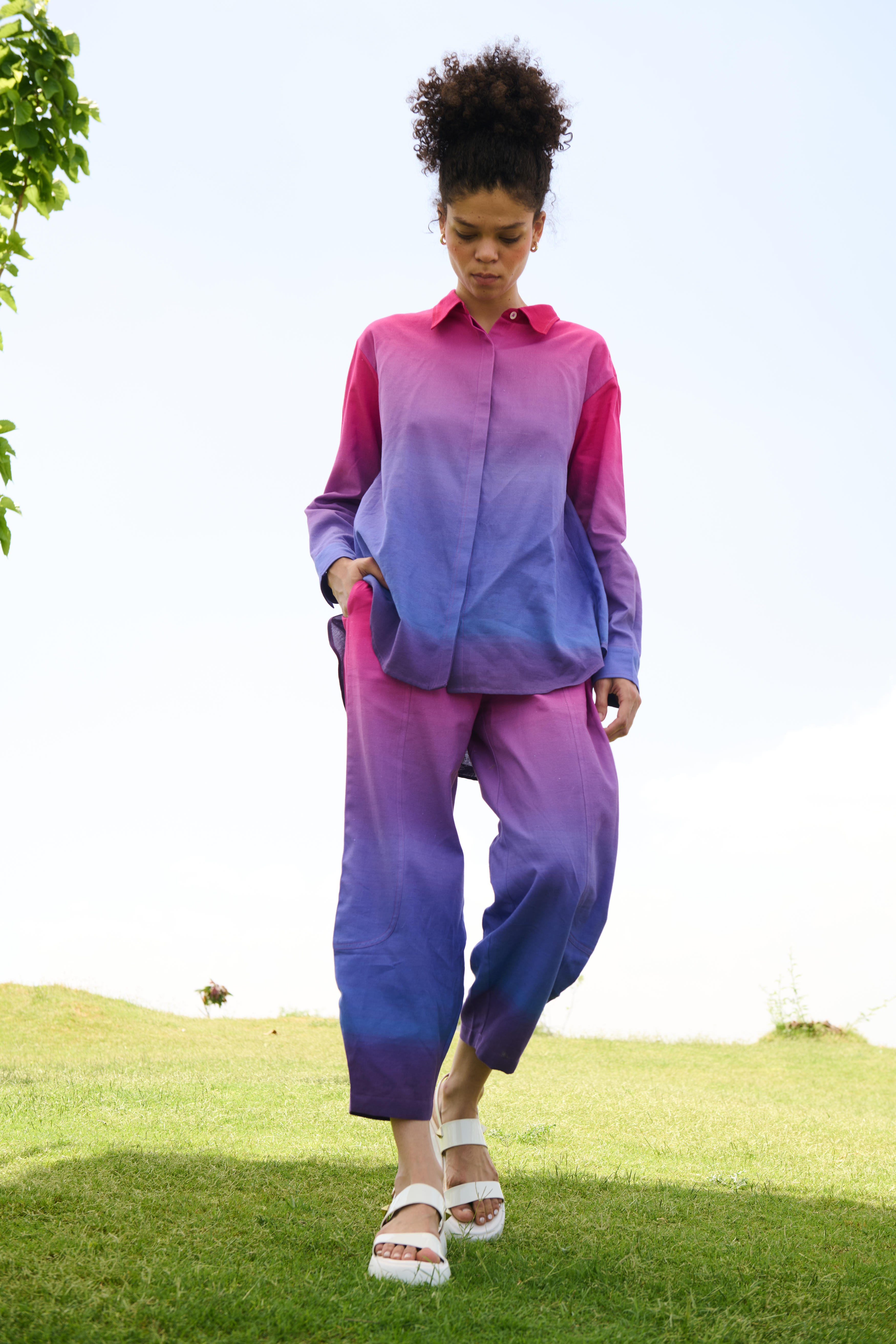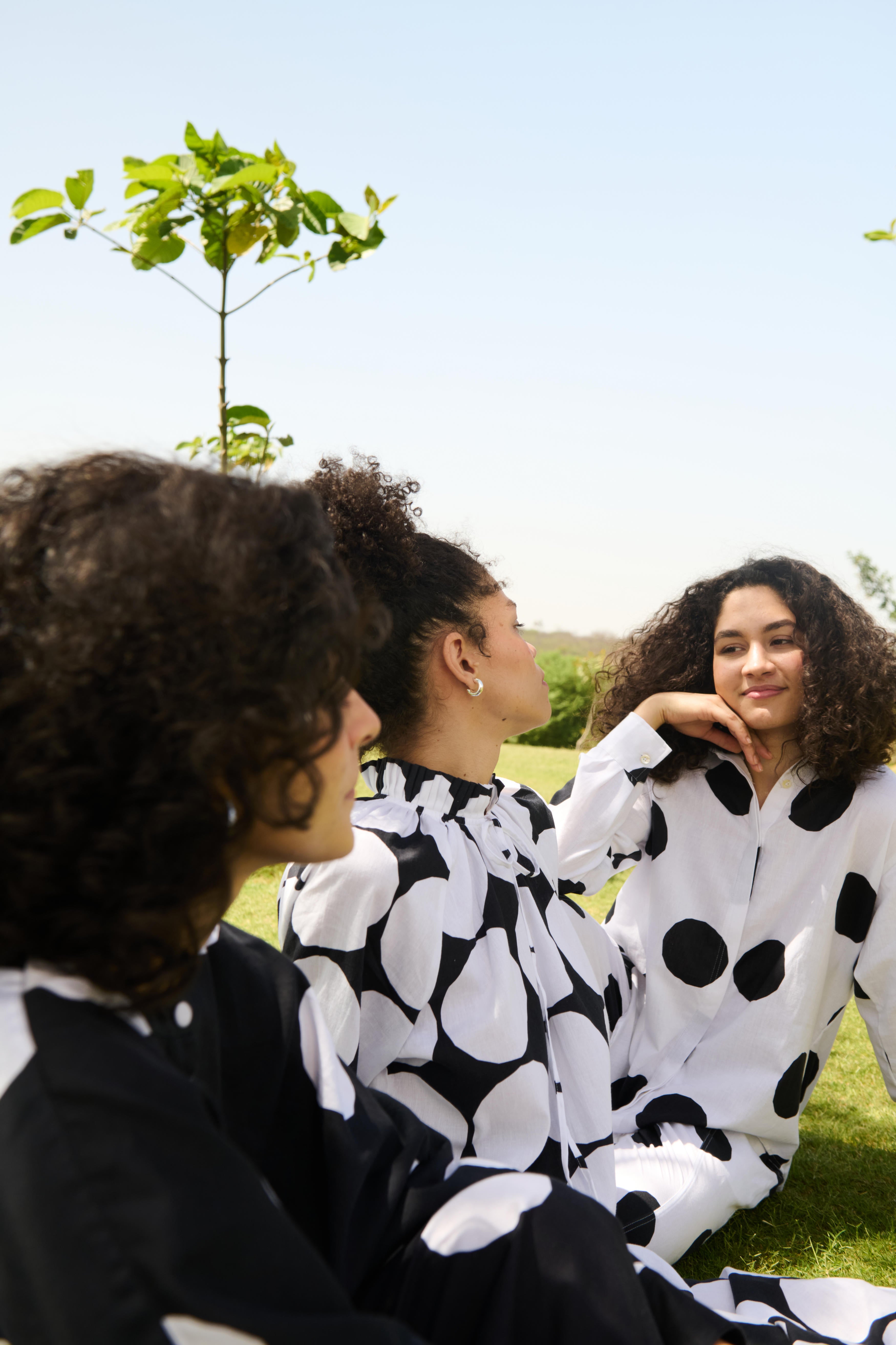 The Marigold coord set has a button down shirt crafted from our linen cotton fabric paired with our panelled trouser with stitch detailing.
