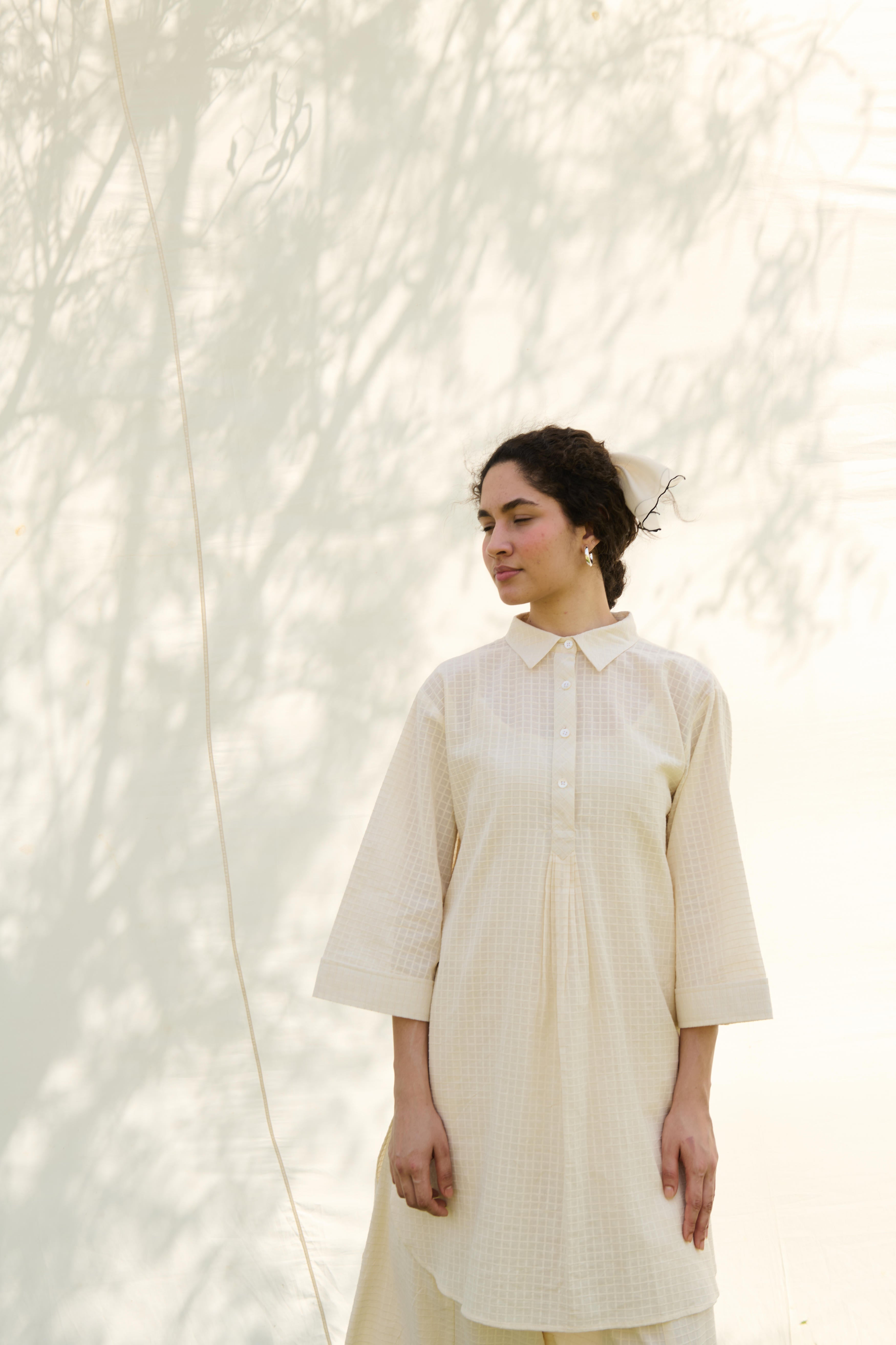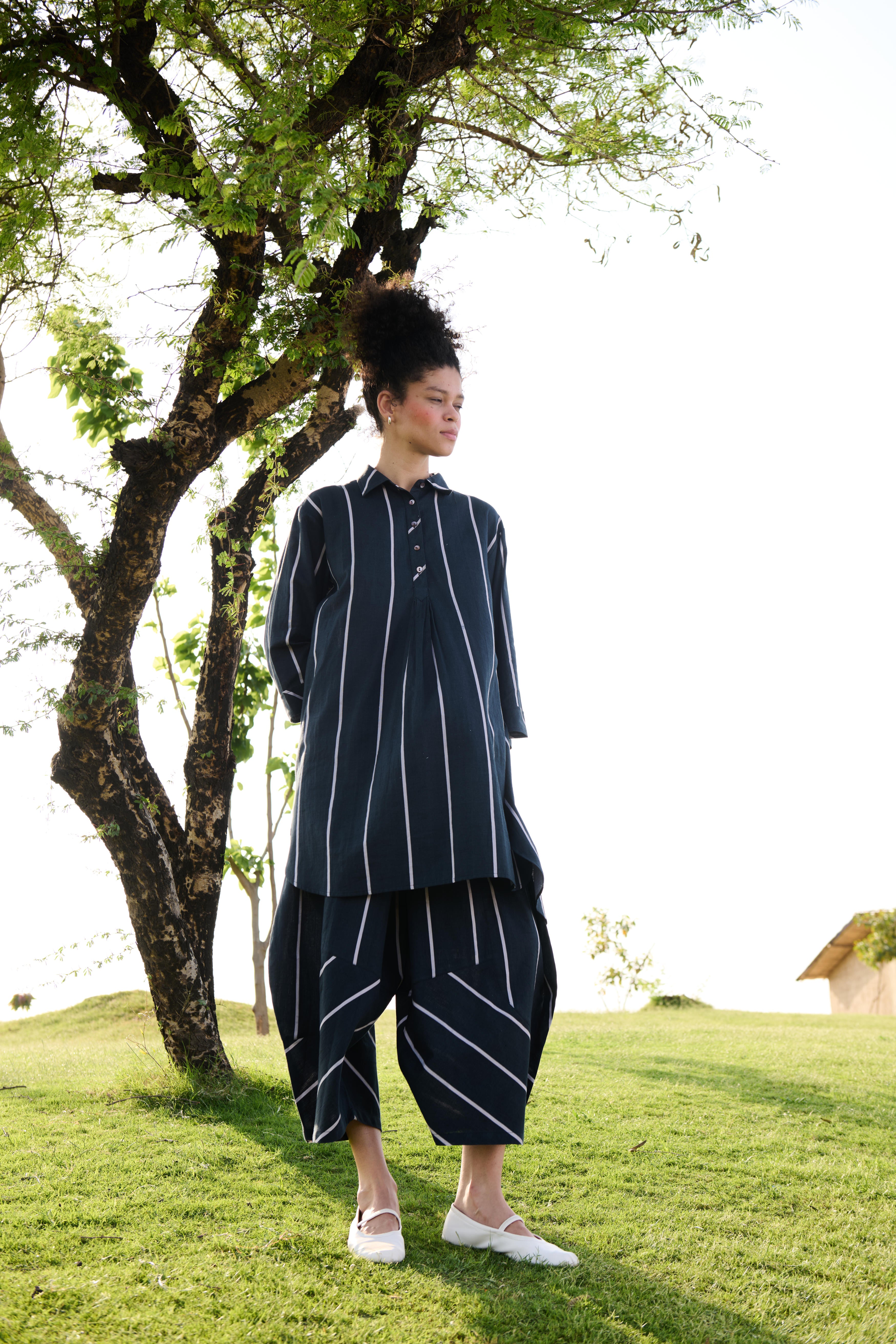 The Nargis coord set is a high low tunic in our linen cotton fabric with our balloon panelled pants.