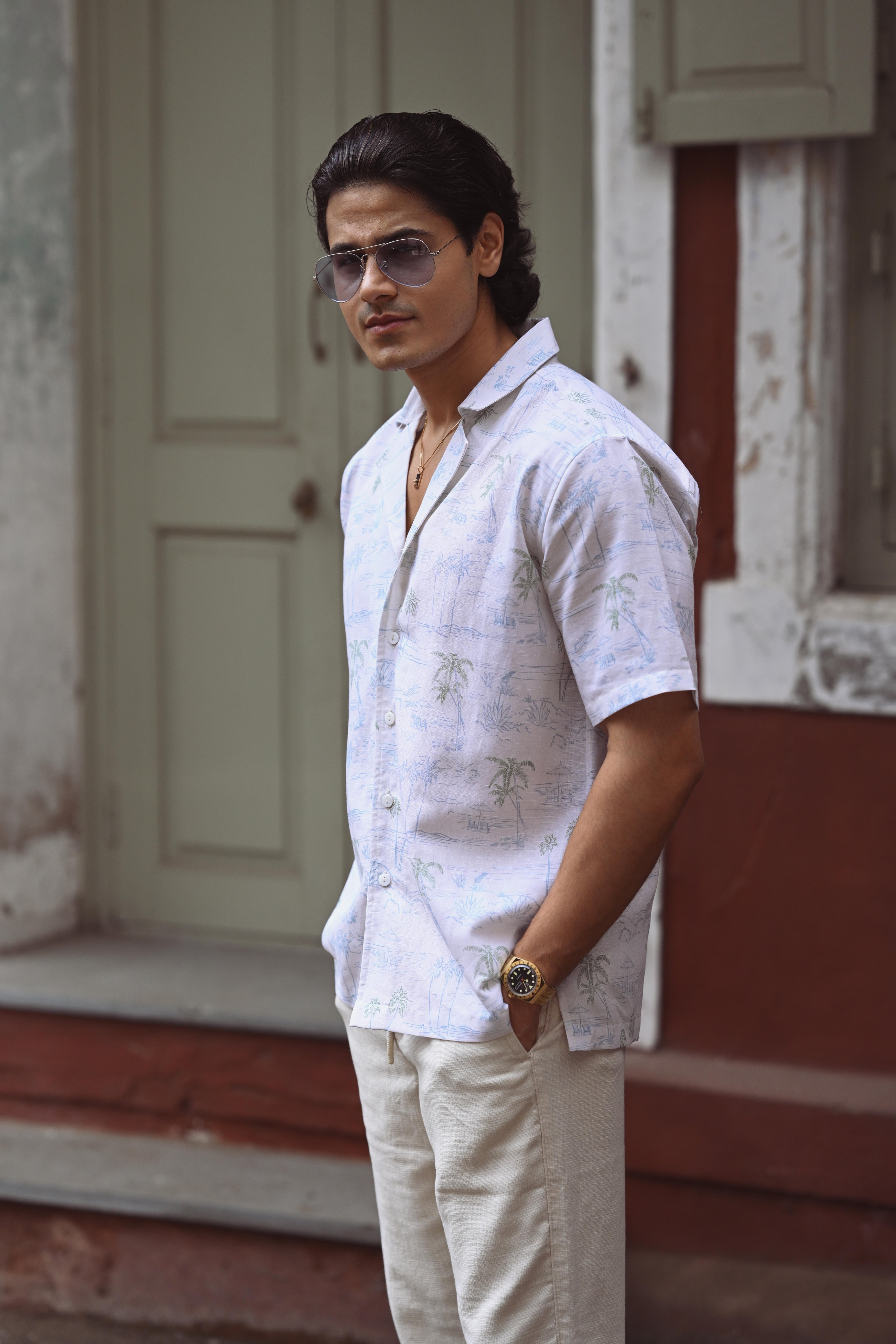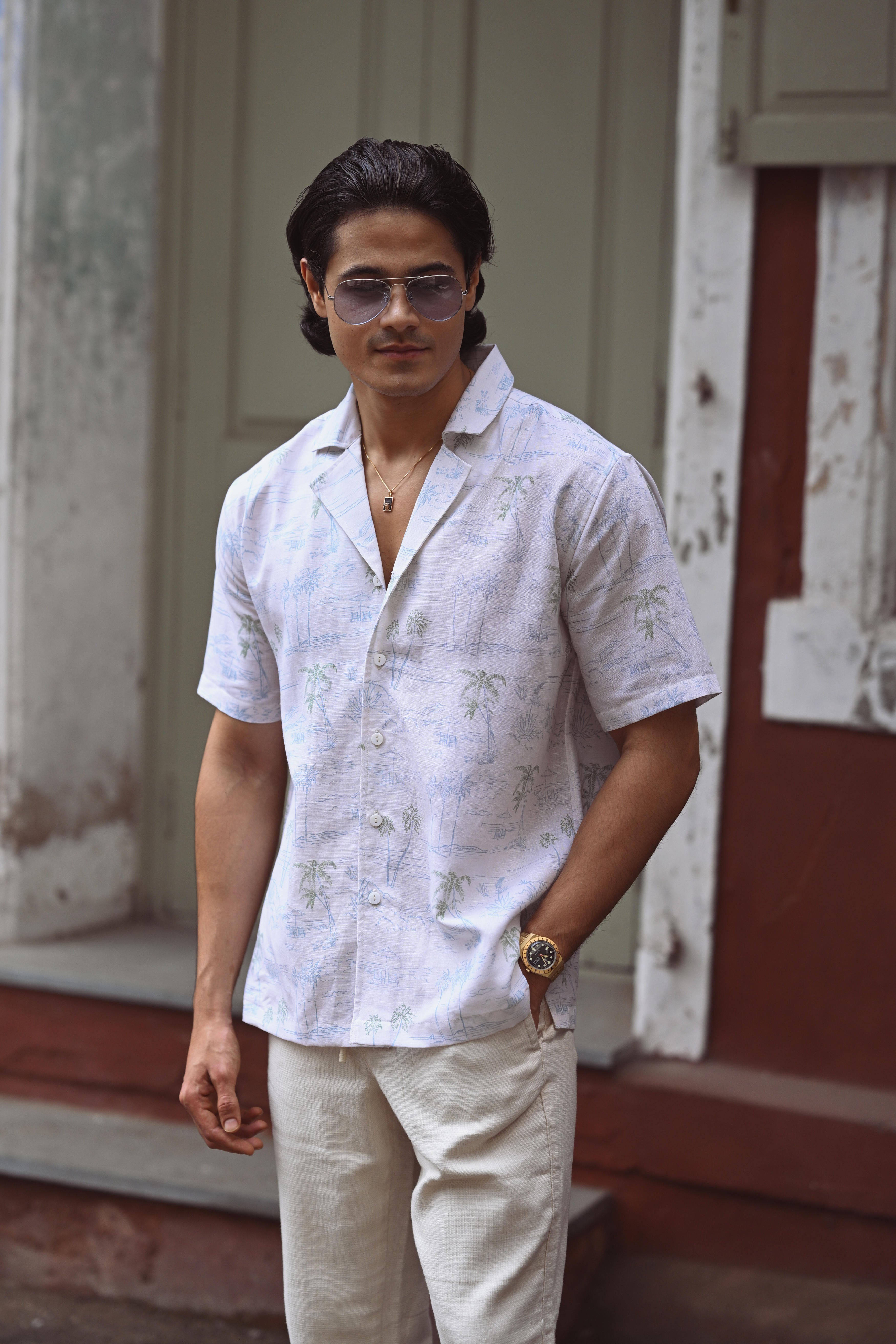 Experience effortless elegance with the Palm Spring camp Shirt, made from breathable linen that feels soft and tranquil against the skin. Perfectly suited for relaxed days by the pool or beach, this shirt combines comfort with a refined design to elevate your casual wardrobe with subtle sophistication.