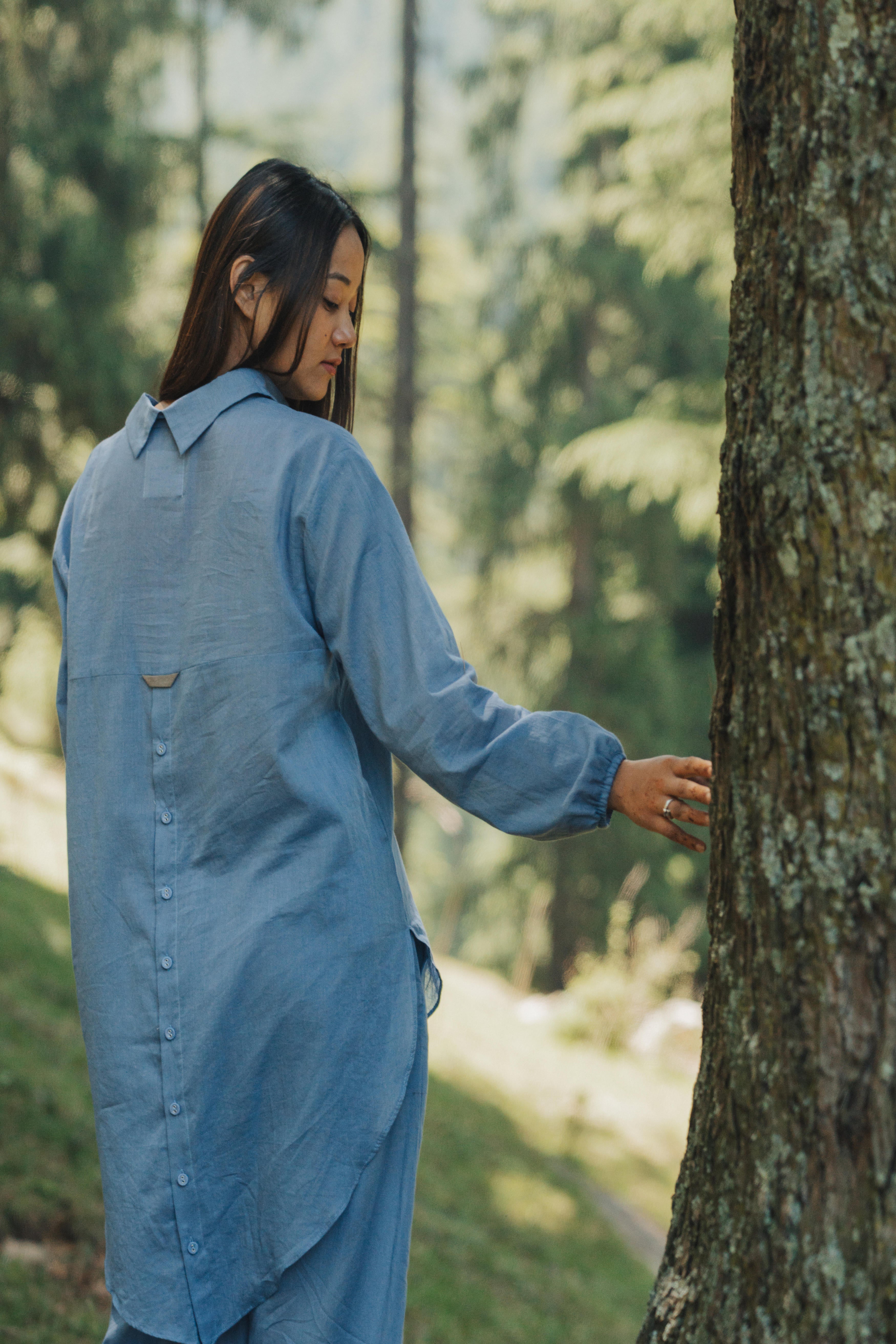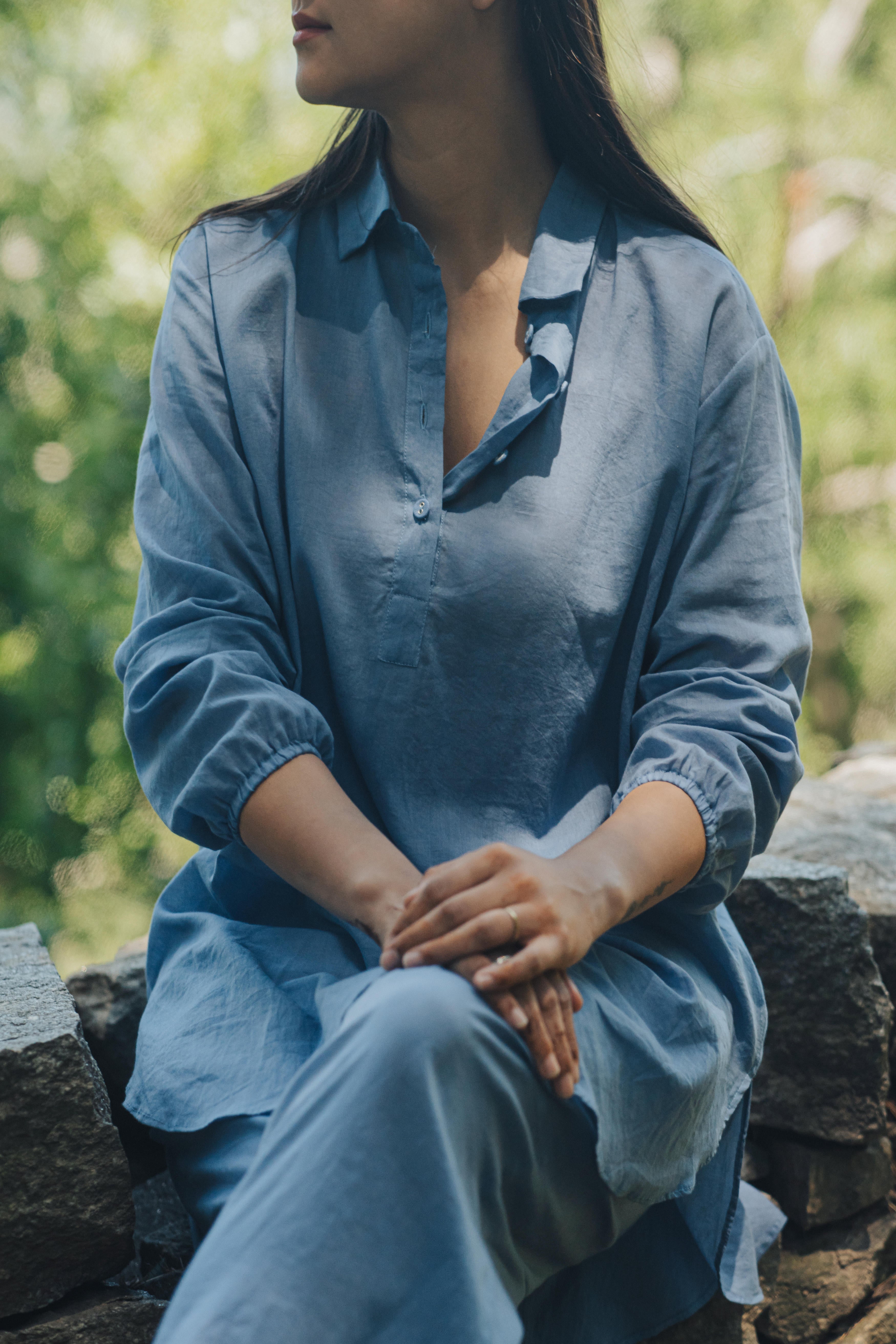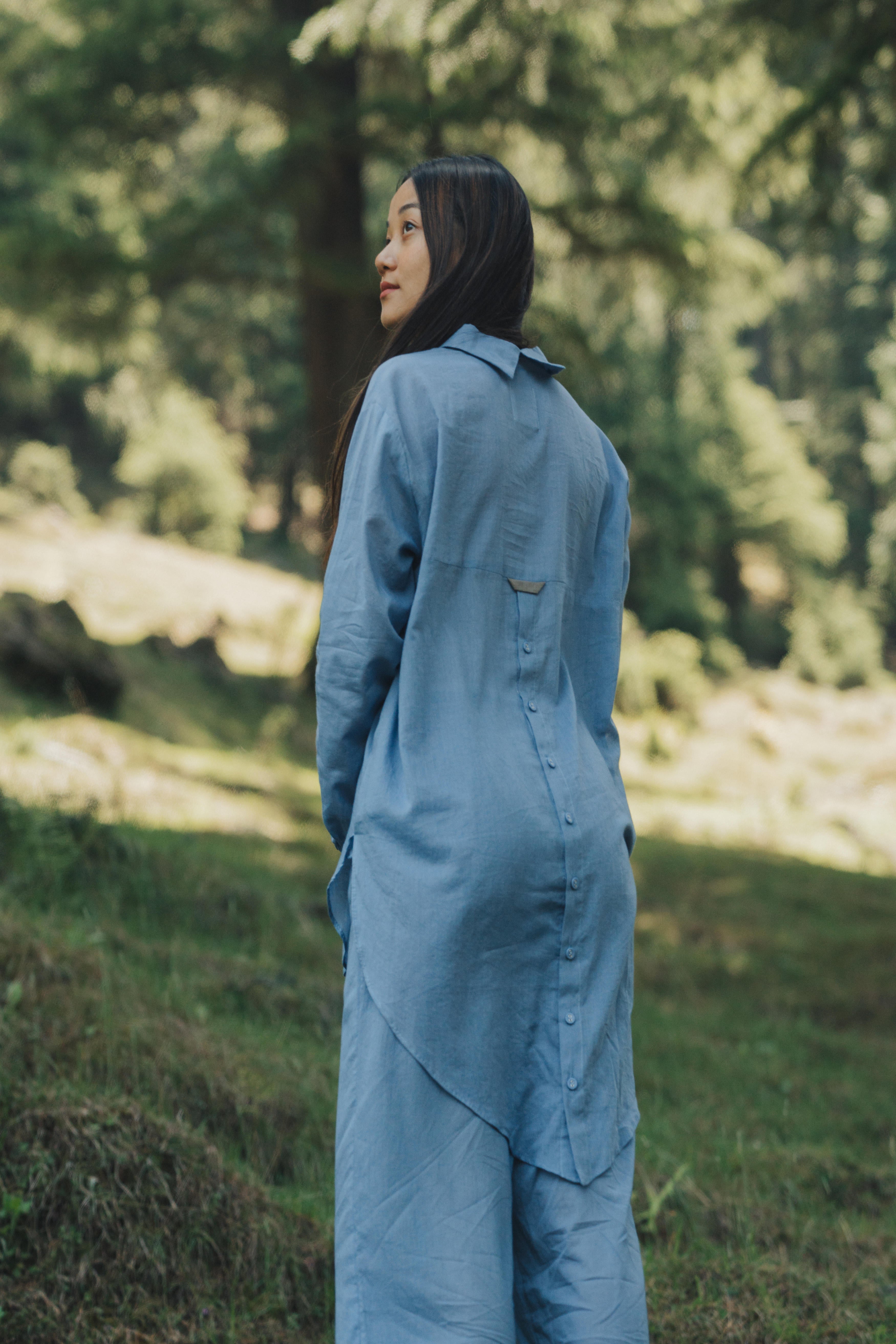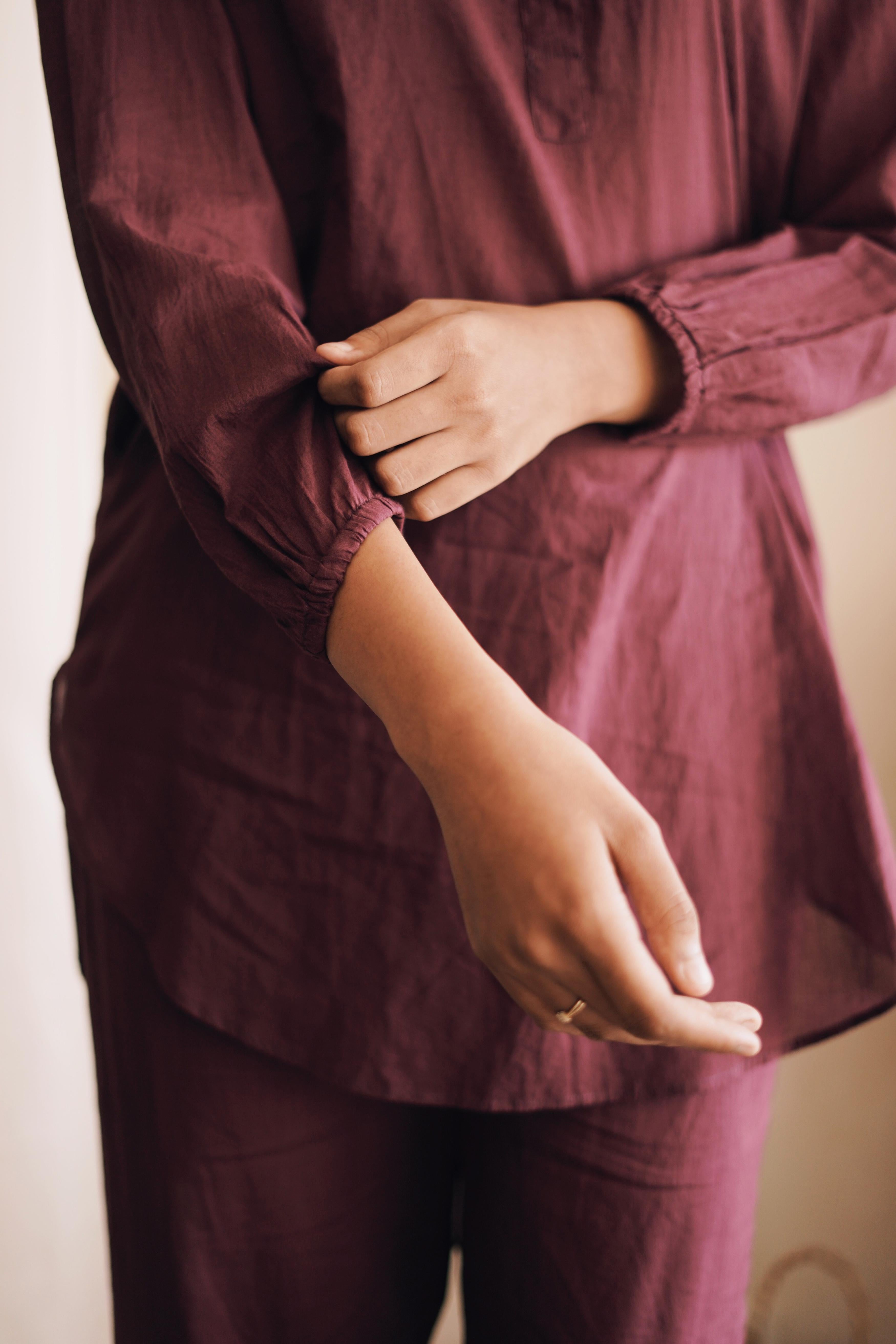 This breezy mul cotton cord set exudes effortless charm, boasting intricate button detailing on the back yoke. Crafted for comfort and style, it offers a timeless yet modern ensemble suitable for any occasion.