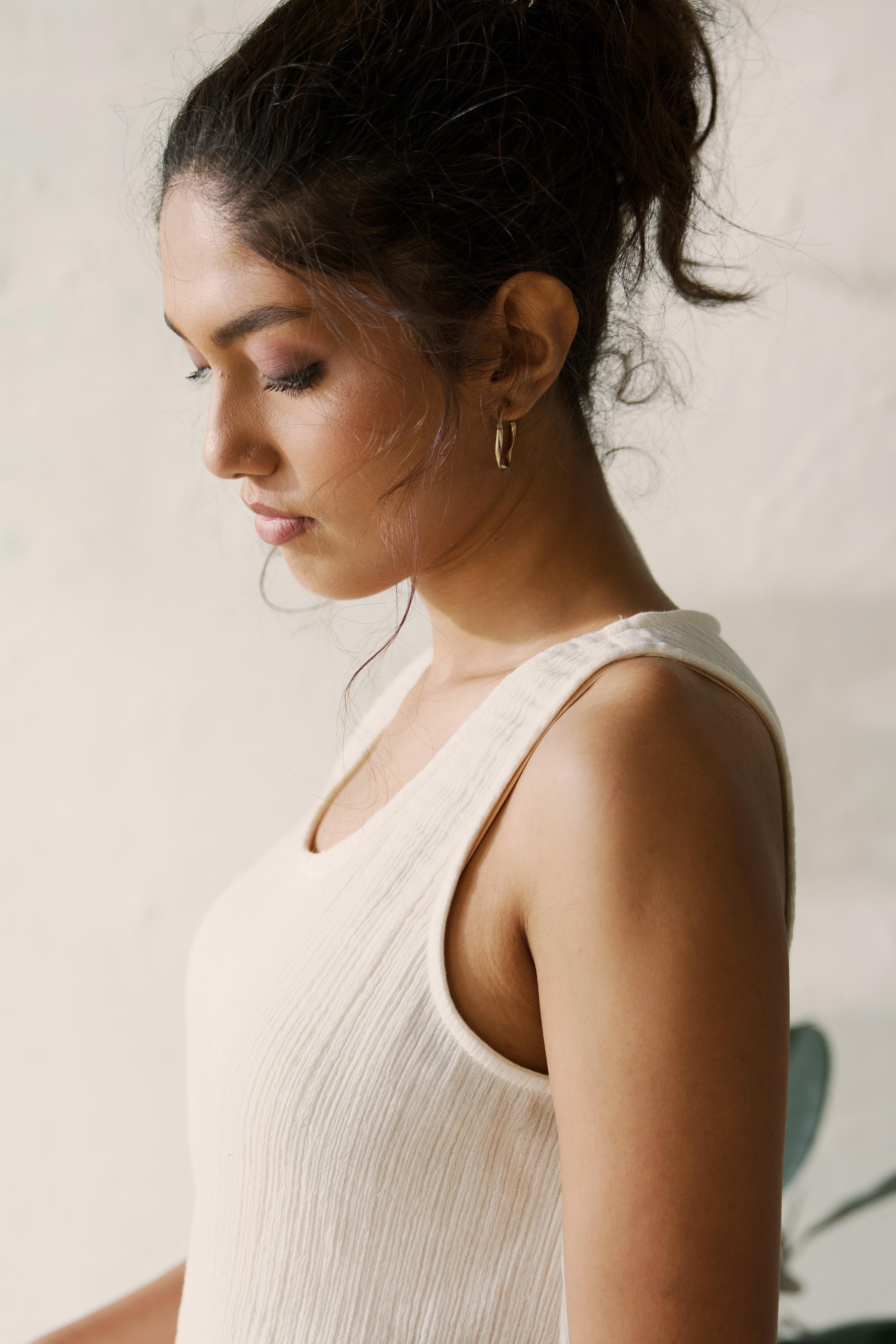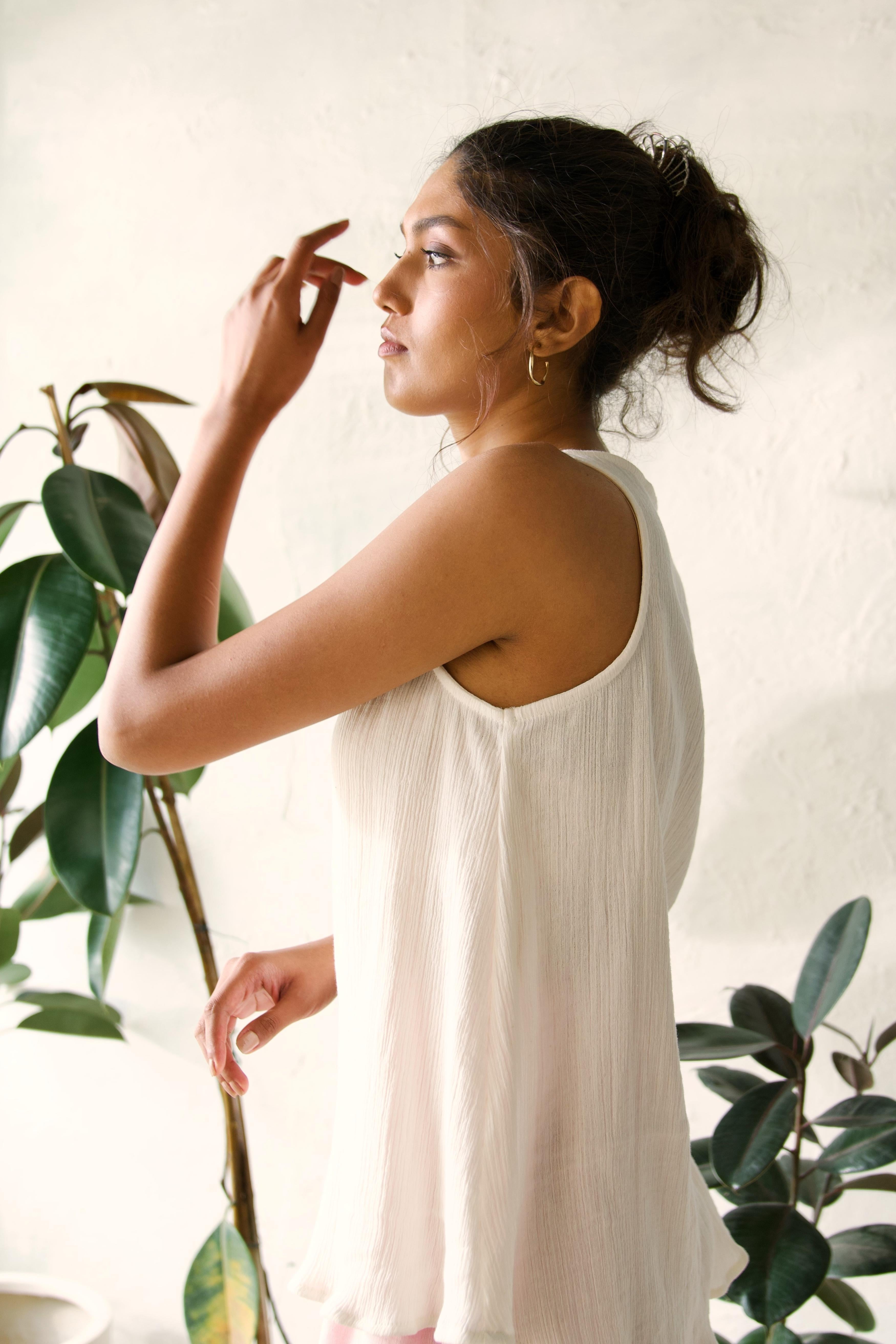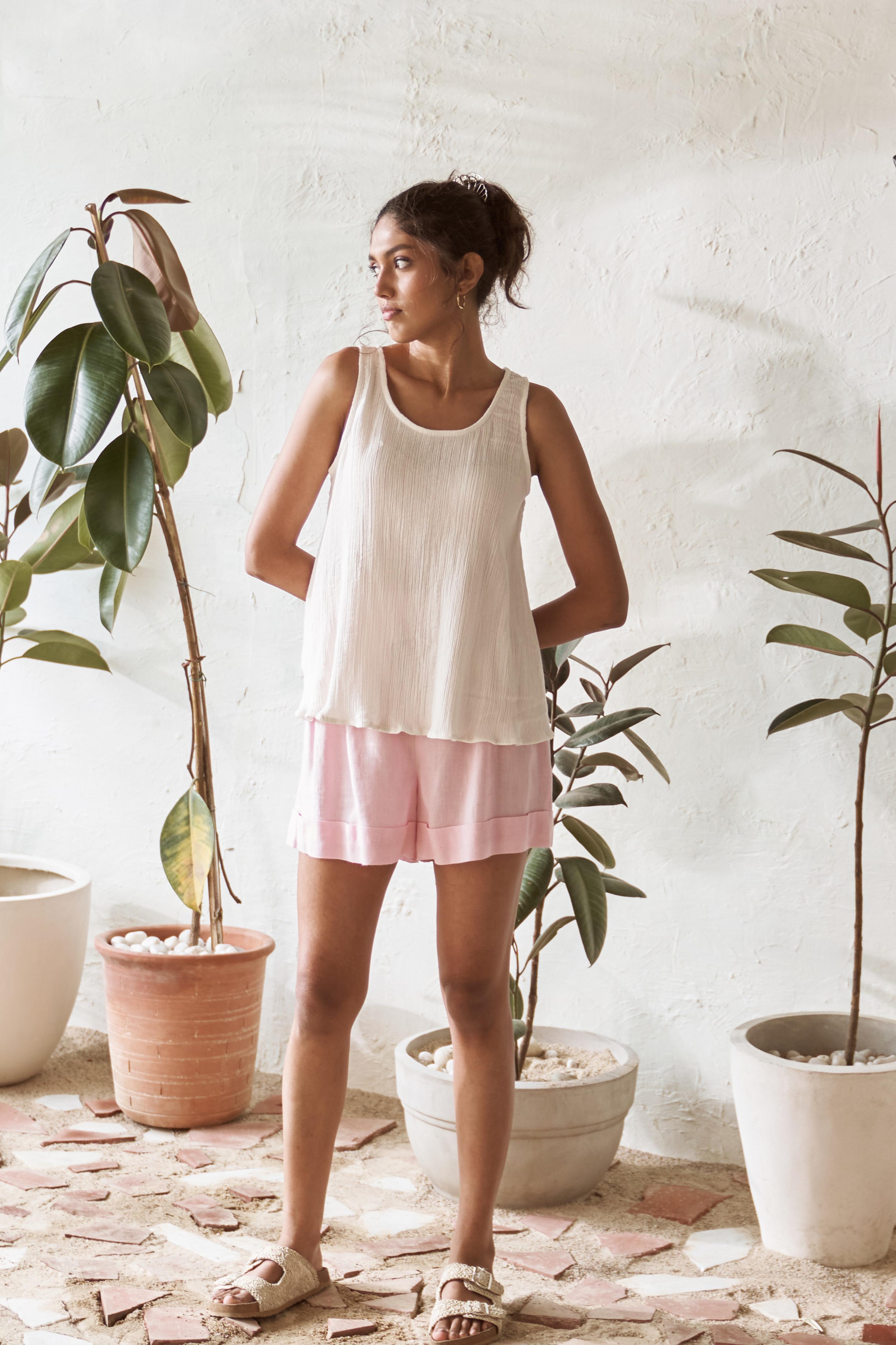 Check out this super comfy tank top which is all about casual vibes, perfect for pairing with any shorts or trousers for a relaxed and comfortable look. Its lightweight fabric and breezy design make it ideal for any outing. Whether you're heading to the beach or just hanging out with friends, this tank top is a versatile piece and a must-have tank top in your wardrobe. Styling Note: This outfit may be slightly transparent in certain lighting, underlayer maybe needed.