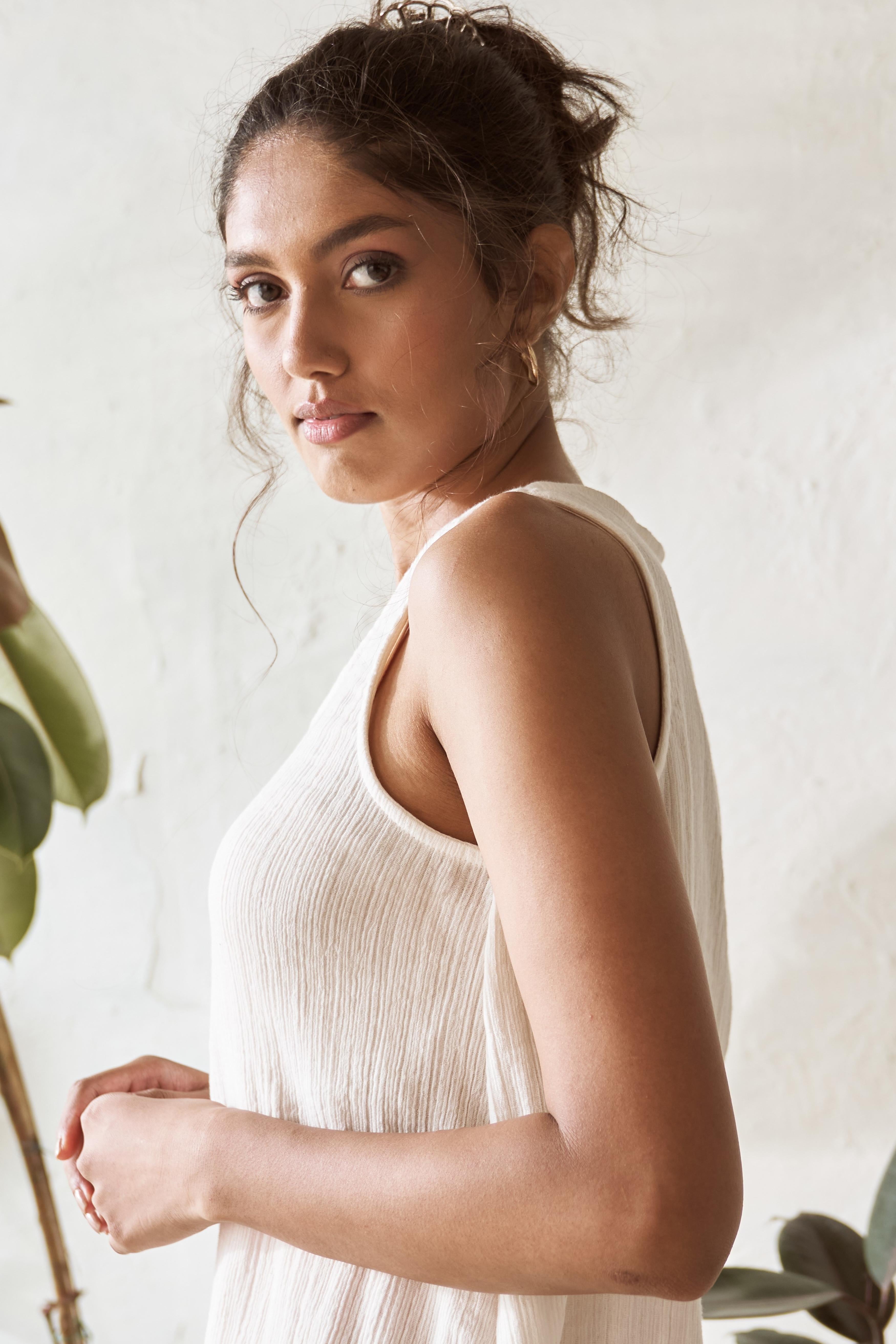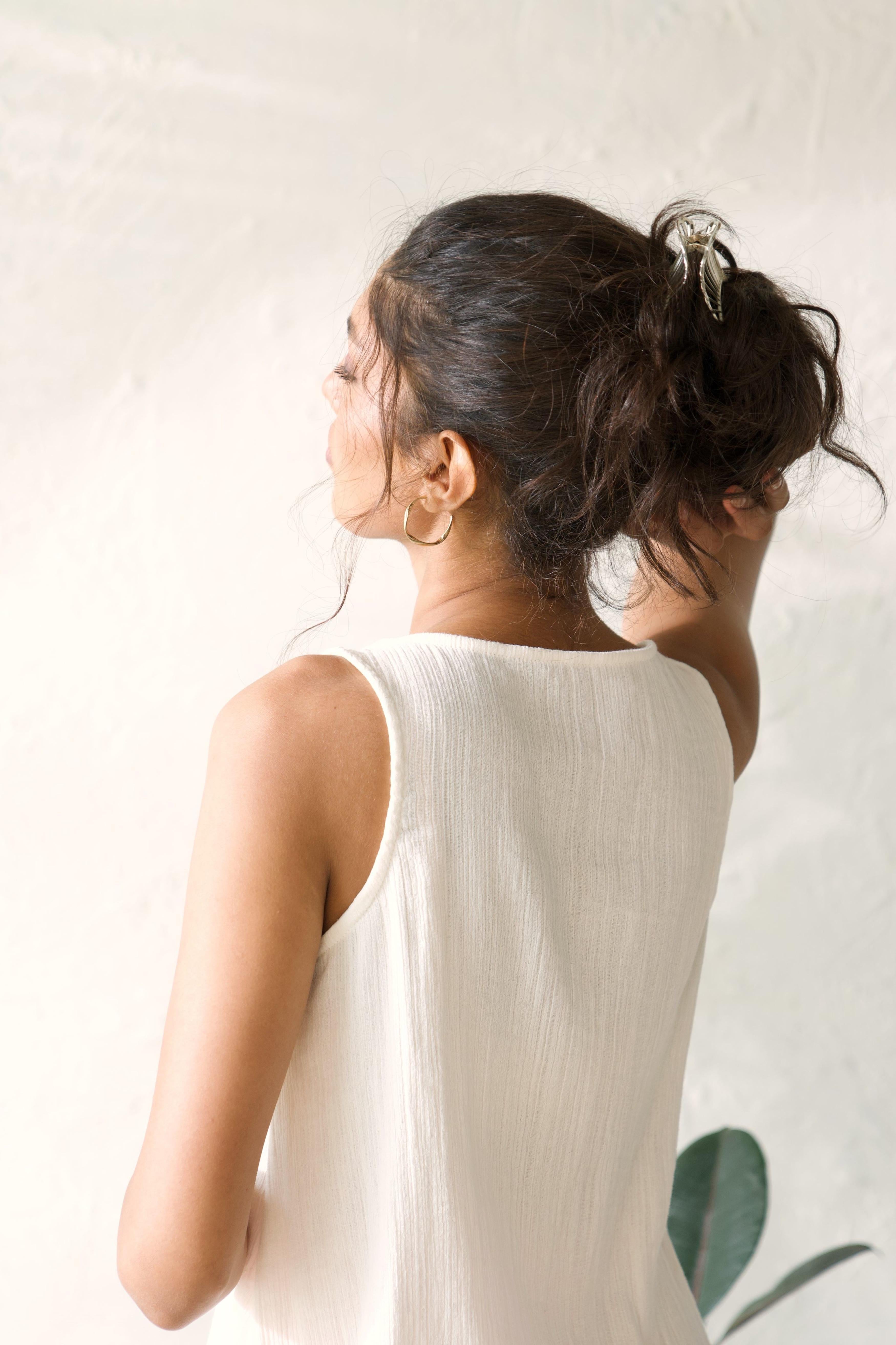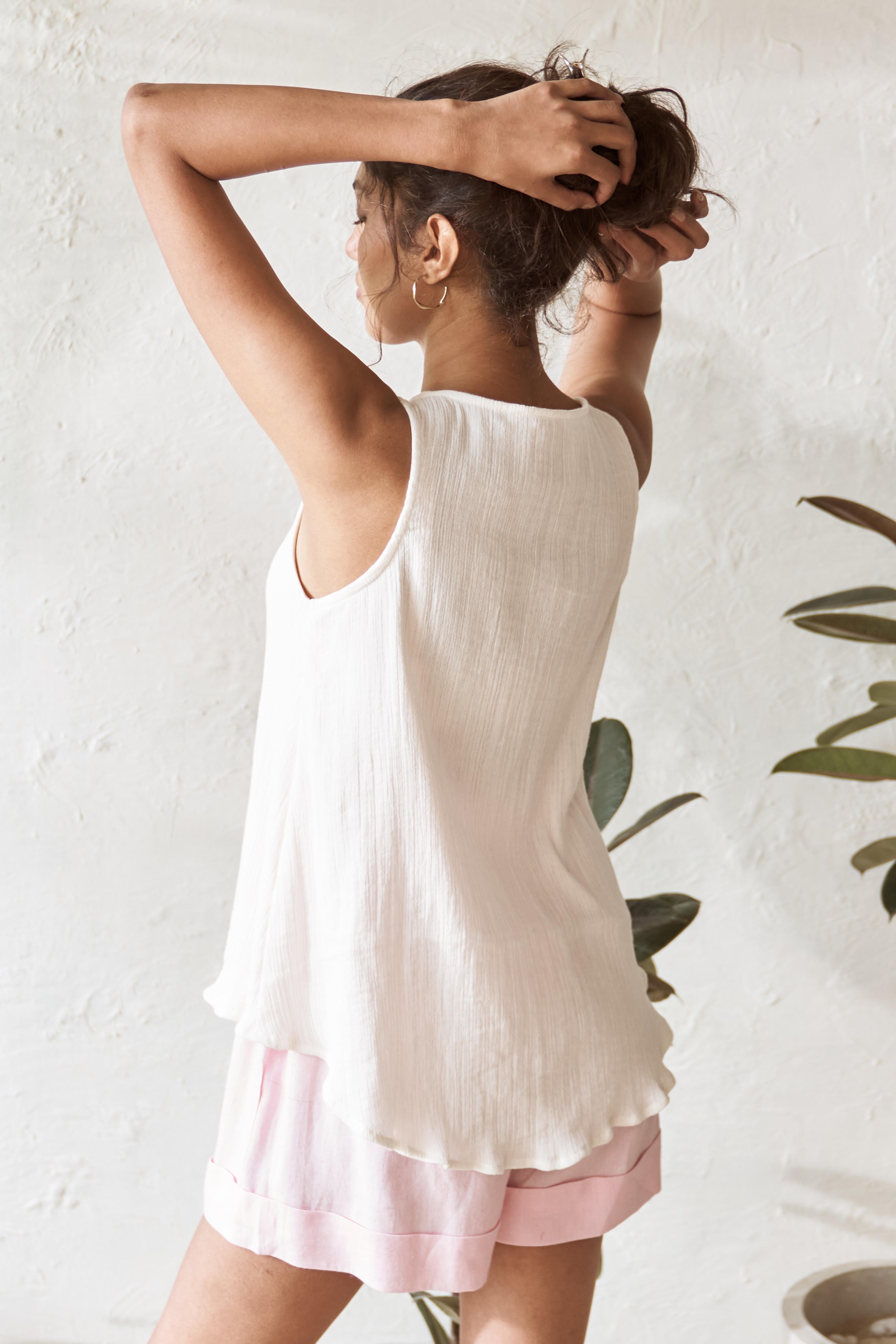 Check out this super comfy tank top which is all about casual vibes, perfect for pairing with any shorts or trousers for a relaxed and comfortable look. Its lightweight fabric and breezy design make it ideal for any outing. Whether you're heading to the beach or just hanging out with friends, this tank top is a versatile piece and a must-have tank top in your wardrobe. Styling Note: This outfit may be slightly transparent in certain lighting, underlayer maybe needed.