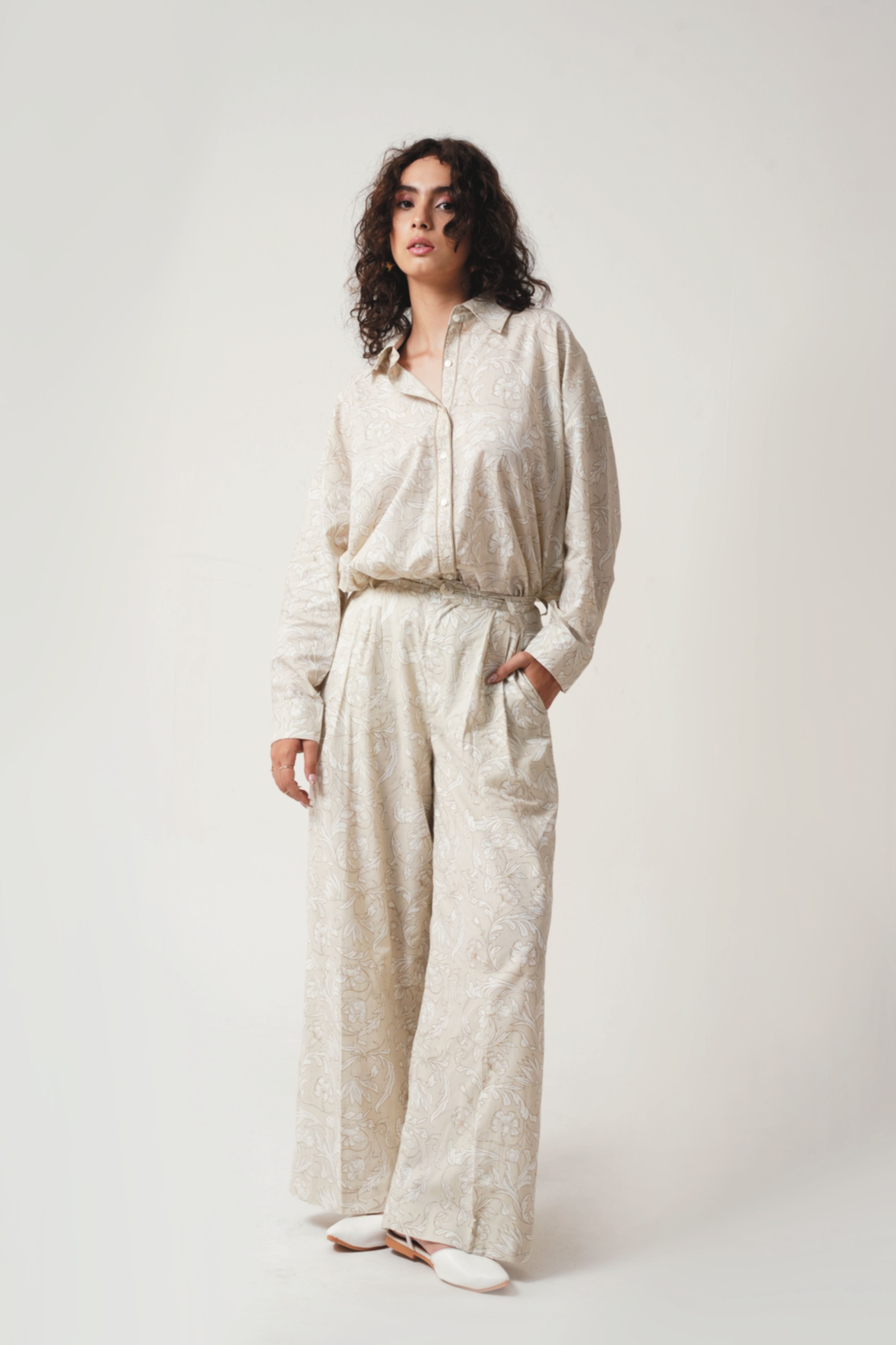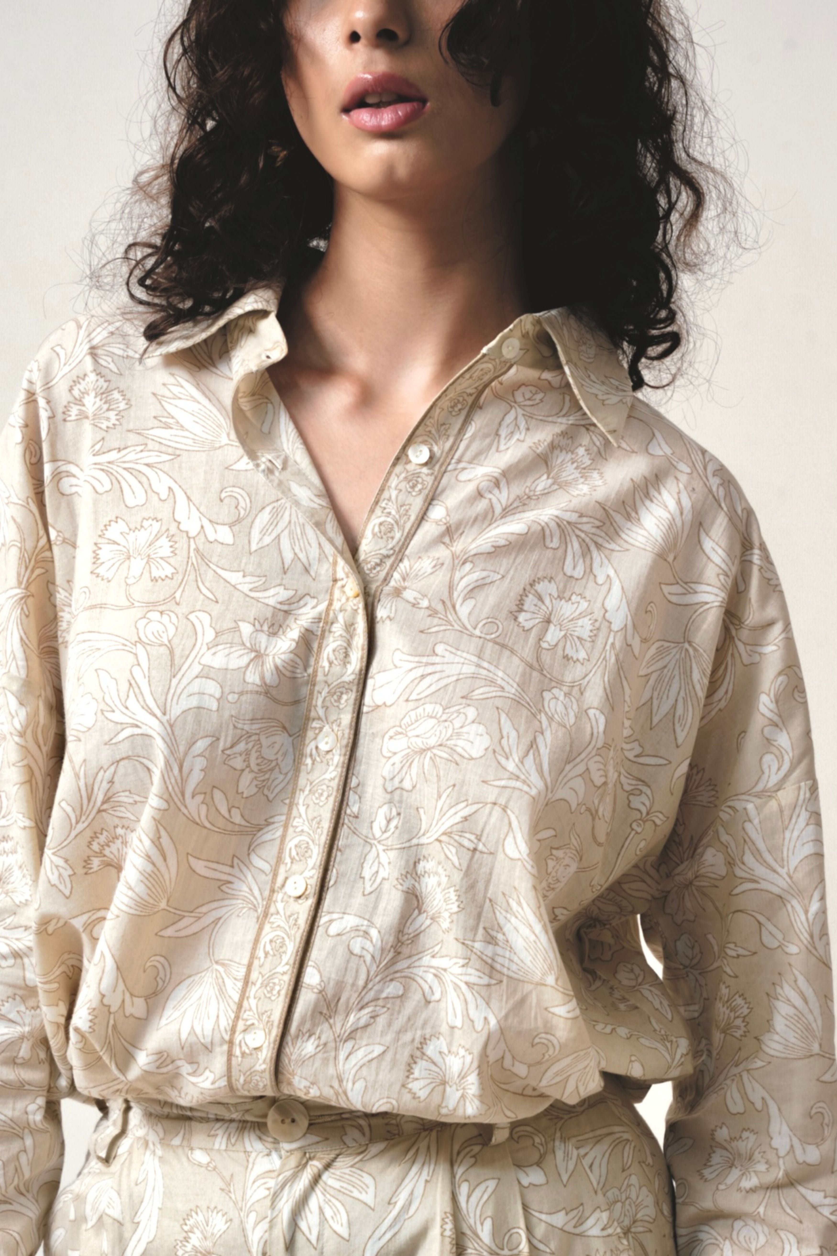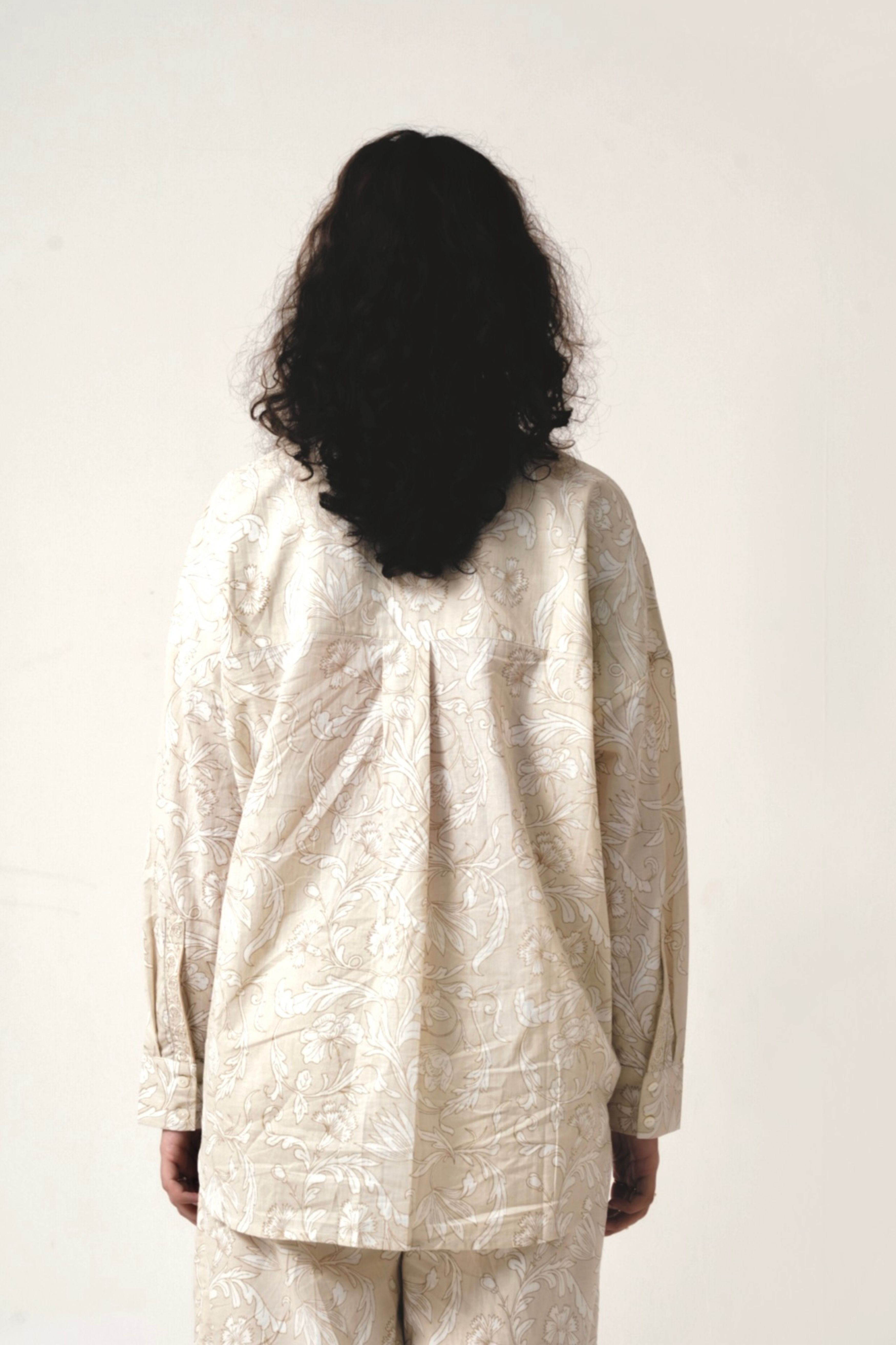 A timeless staple reimagined, this long-sleeve shirt combines classic tailoring with contemporary charm. The fluid drape of the fabric enhances its relaxed fit, while the buttoned front allows for versatile styling. Style it loosely over wide-leg pants for a relaxed vibe, or tuck it into high-waisted bottoms for a structured finish. Model is 5'8 and is wearing a size XS