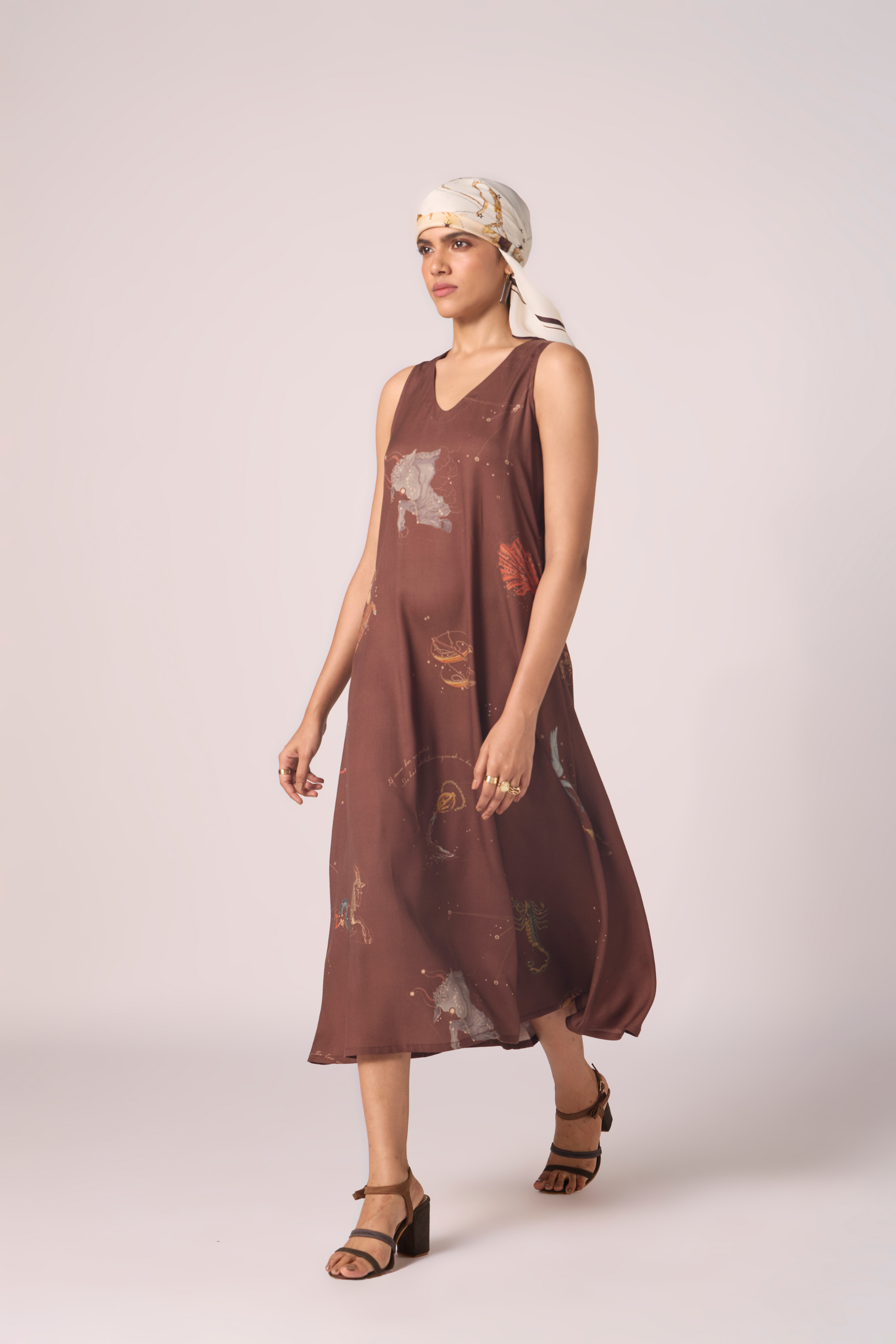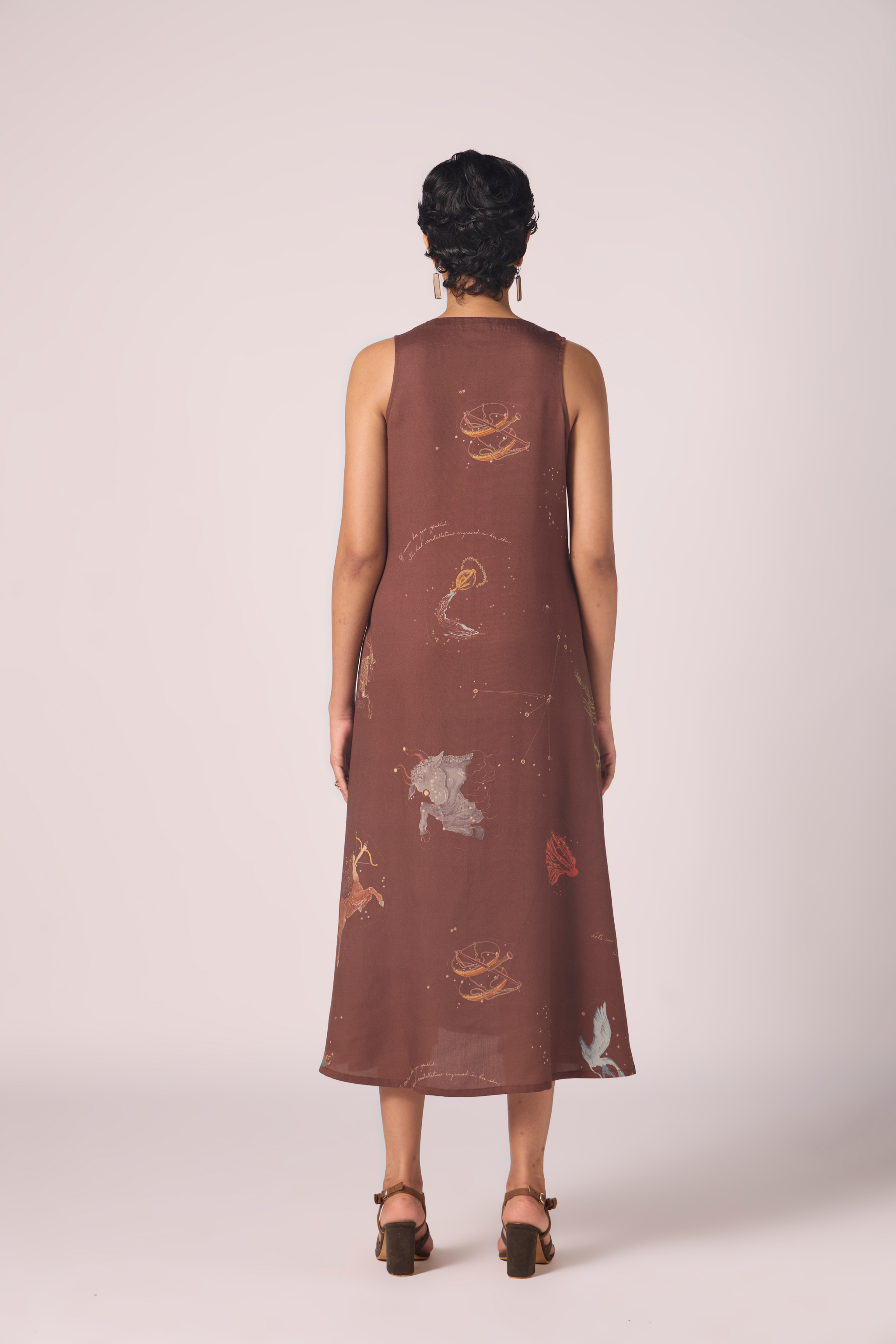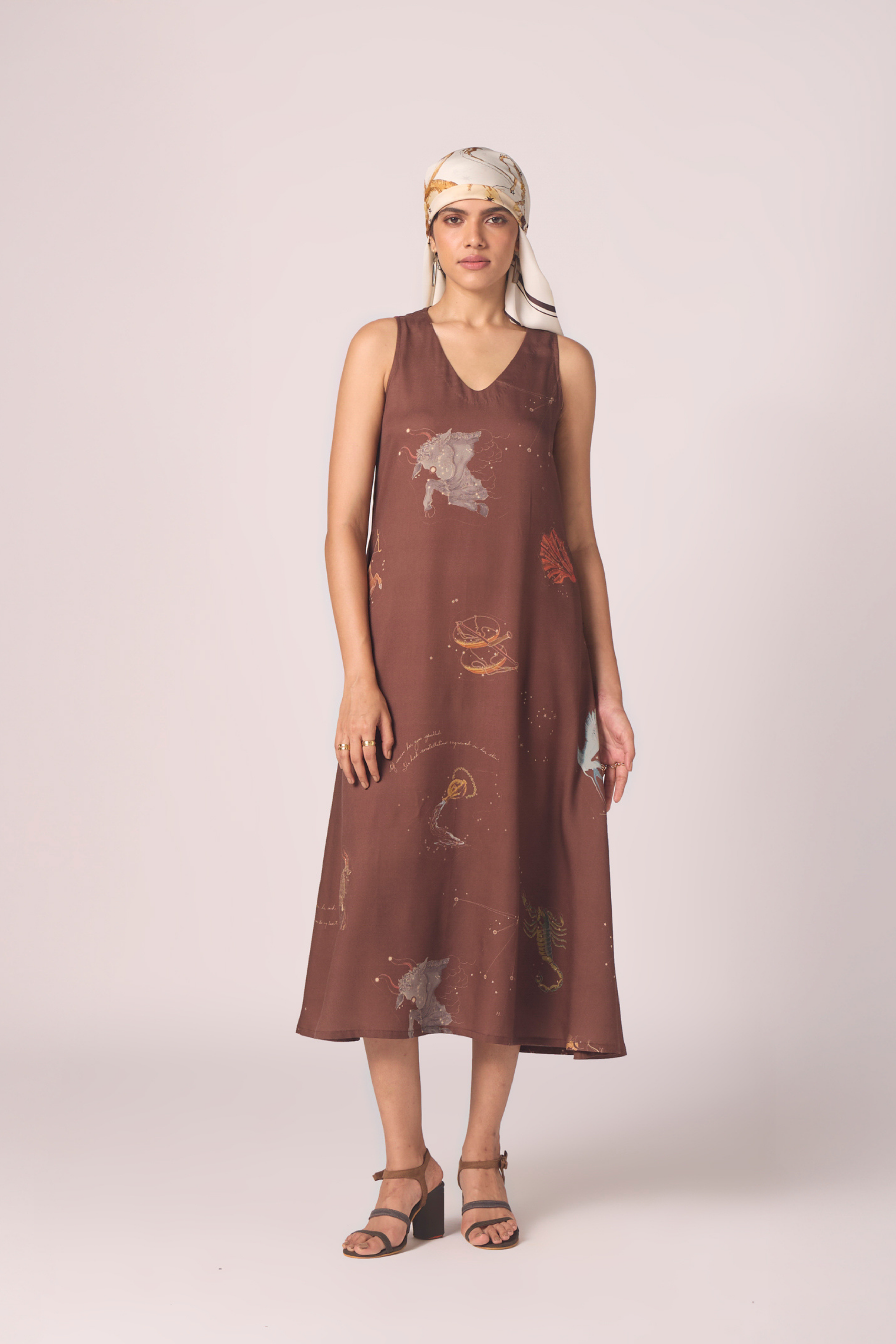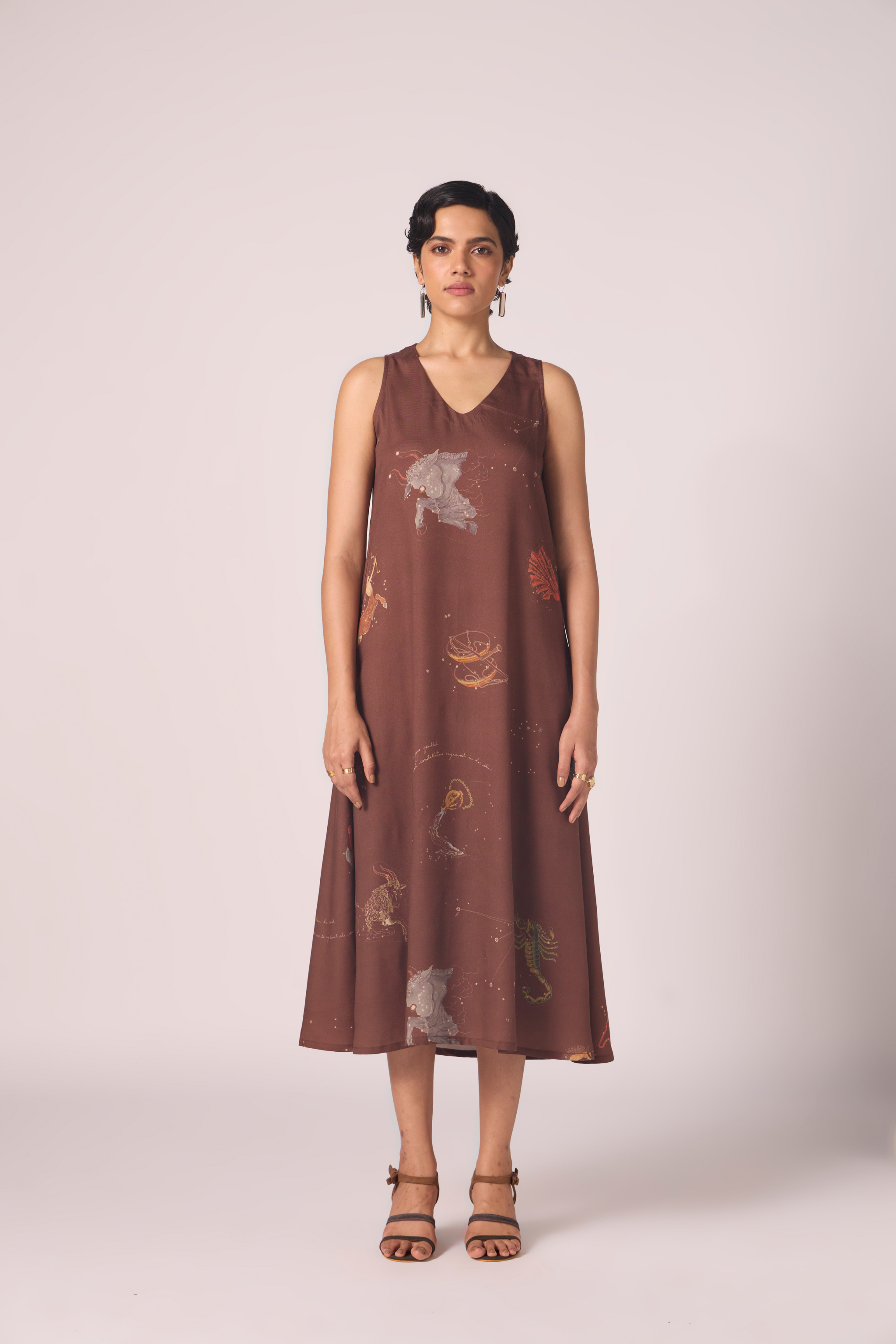 A print that flows with the body, a length that elongates. The scoop neckline and racer back create clarity of line, softened by the quiet fluidity of the tencel twill. . Balanced, flattering, assured. - Slim Fit - Anushka is 5'8 and wearing S . Her body measurements are Bust: 32", Waist: 29", Hips: 36" - Easy slip-on sleeveless midi length dress - TENCEL™ Lyocell twill - Side zip; in-seam pockets