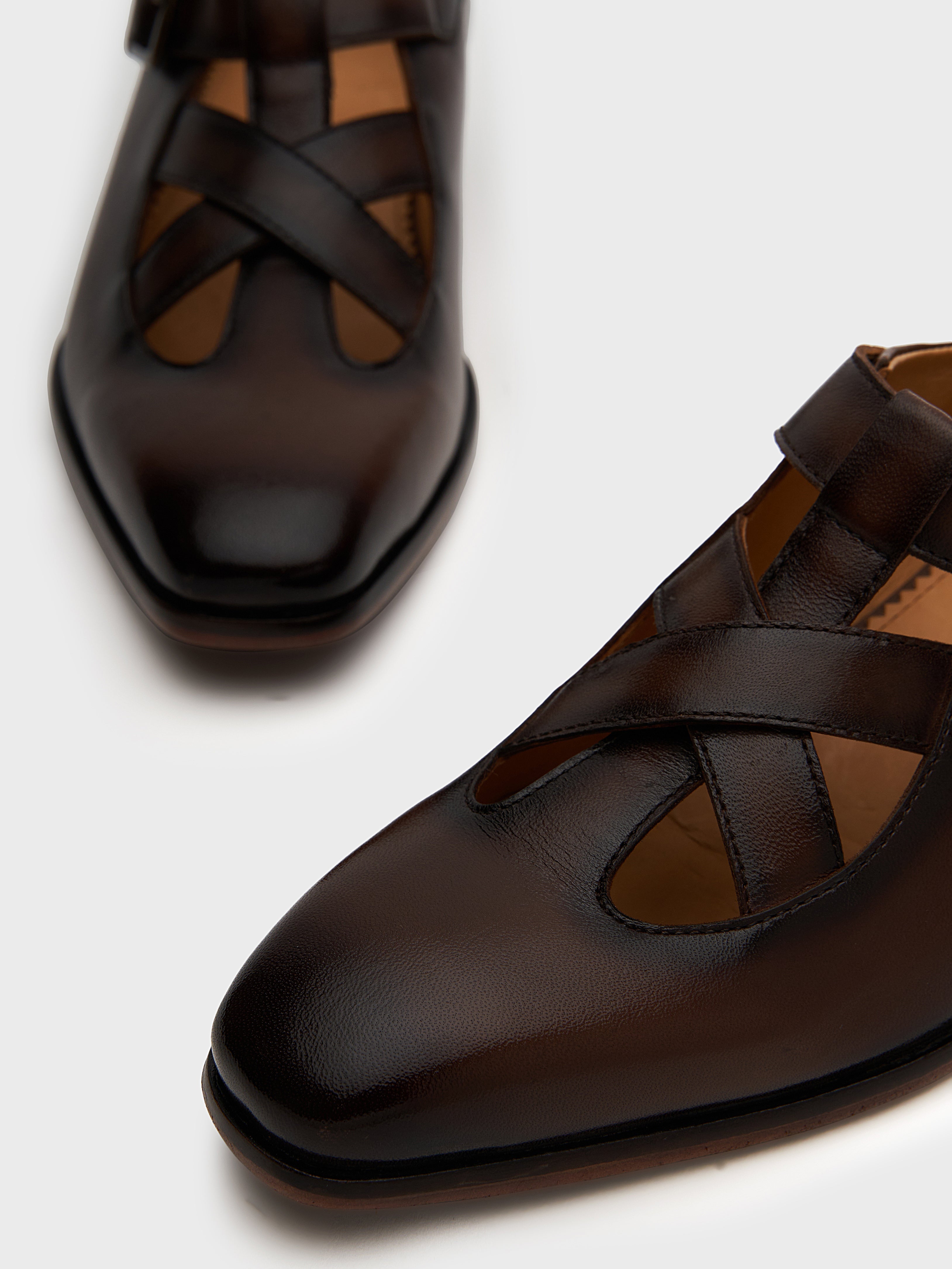 100% Lamb Leather upper 100% DD leather lining Leather outsole with CNC rubber insert