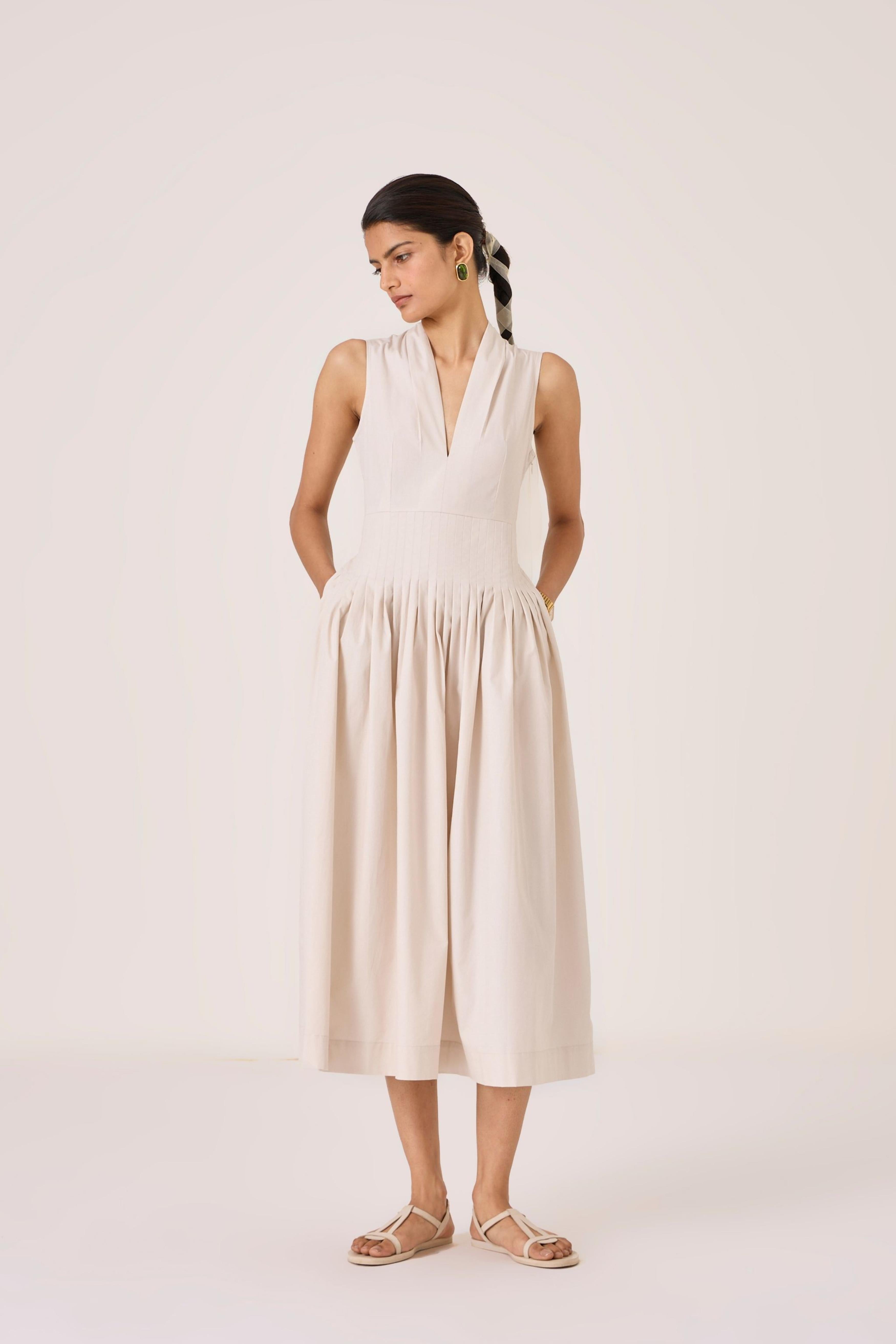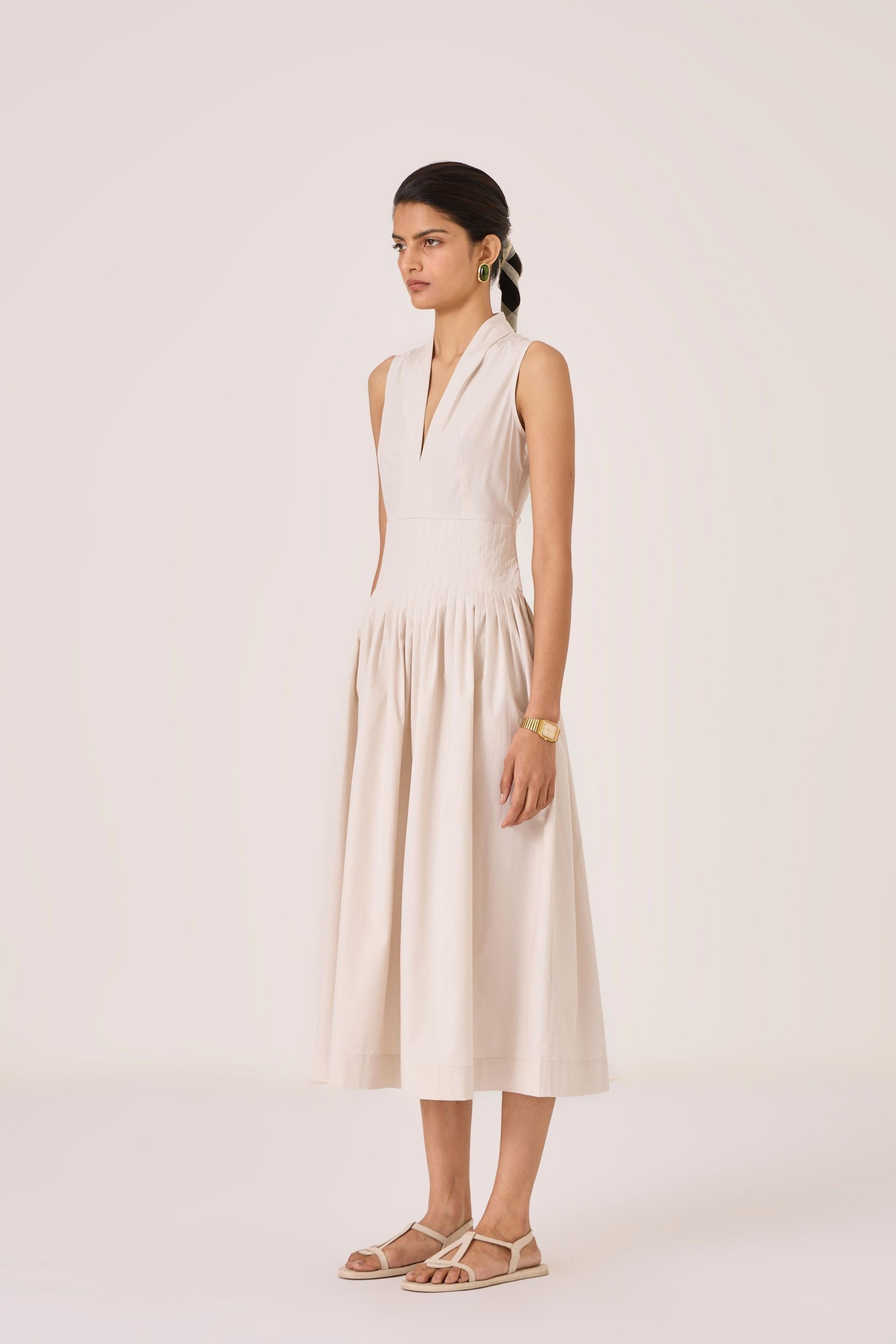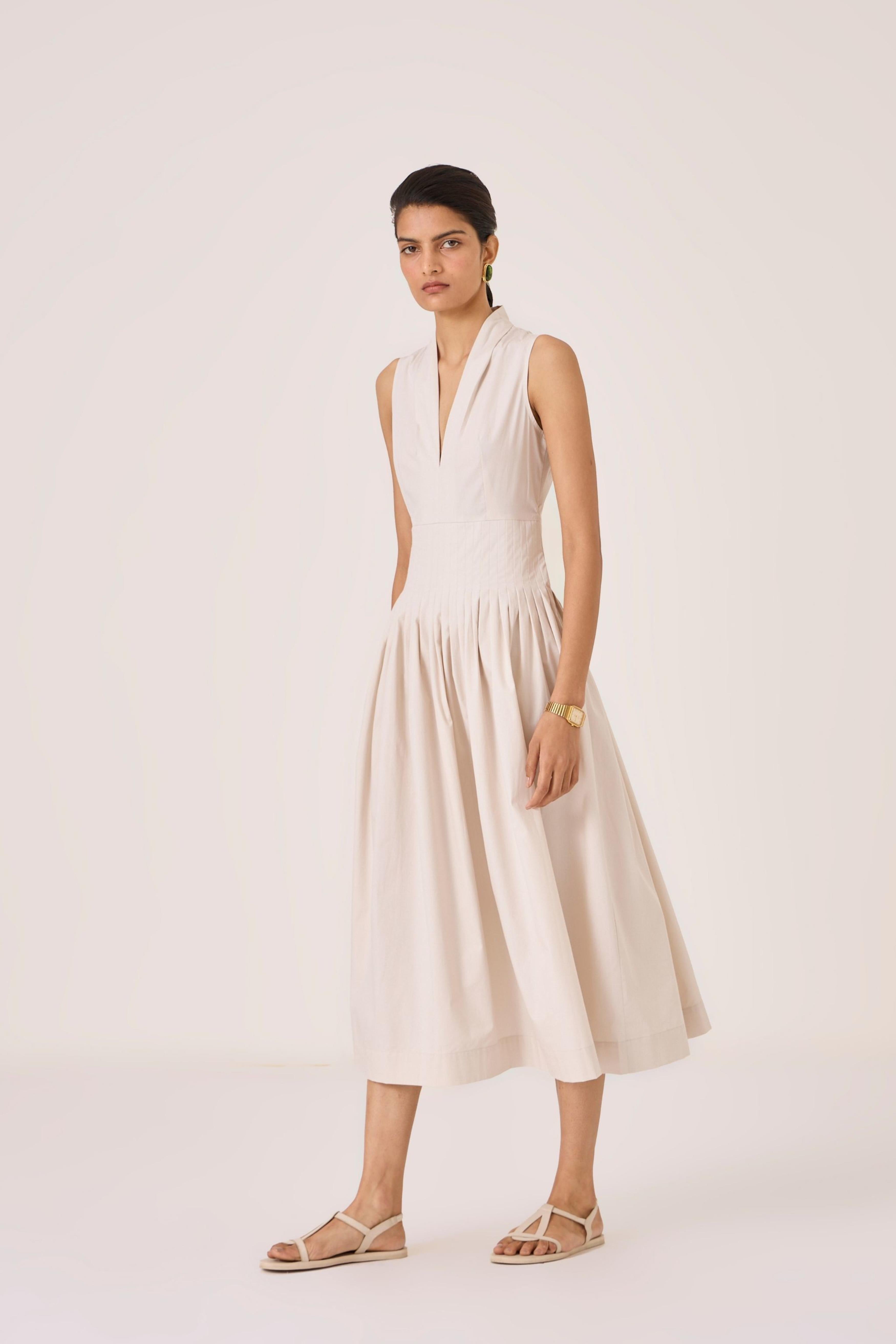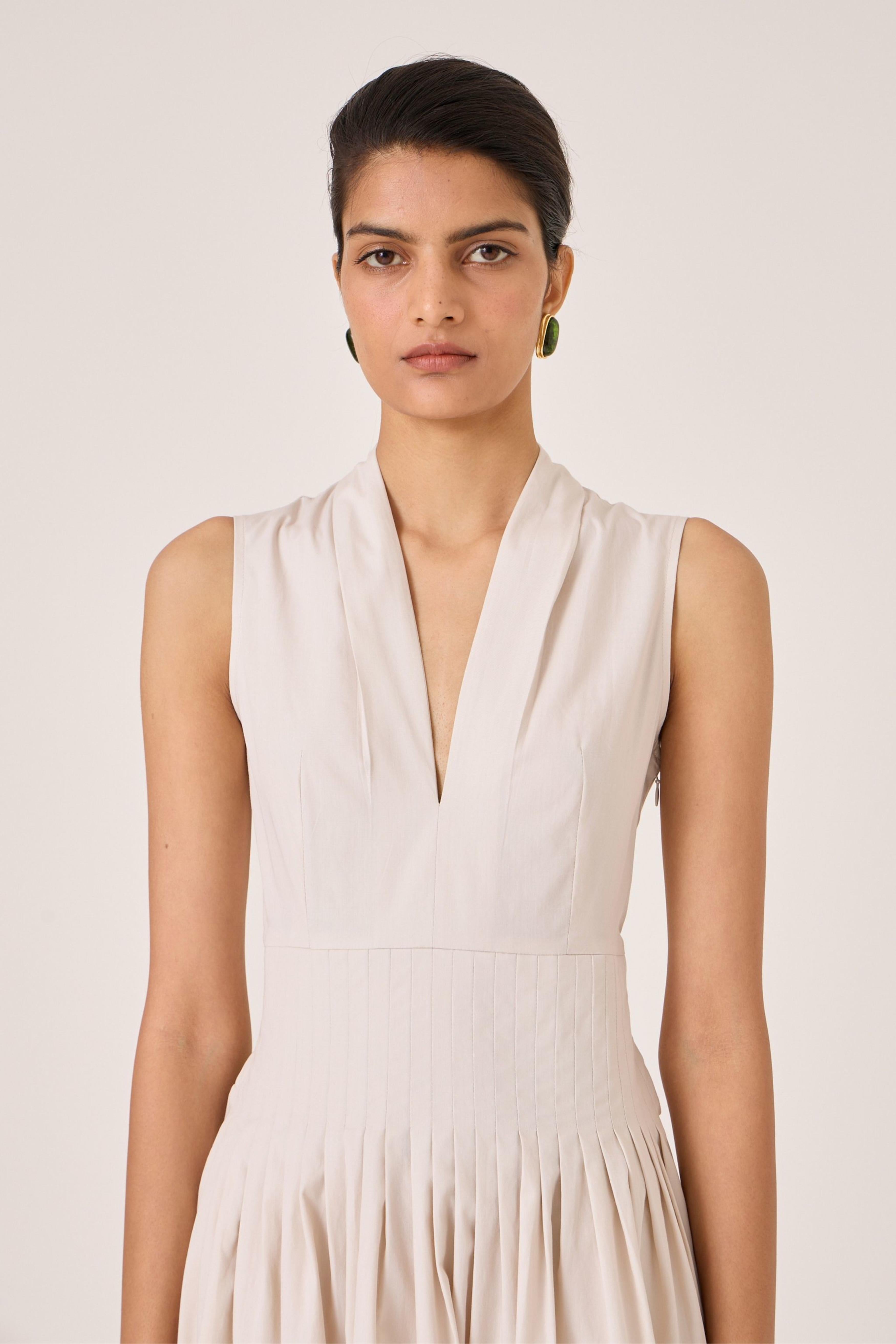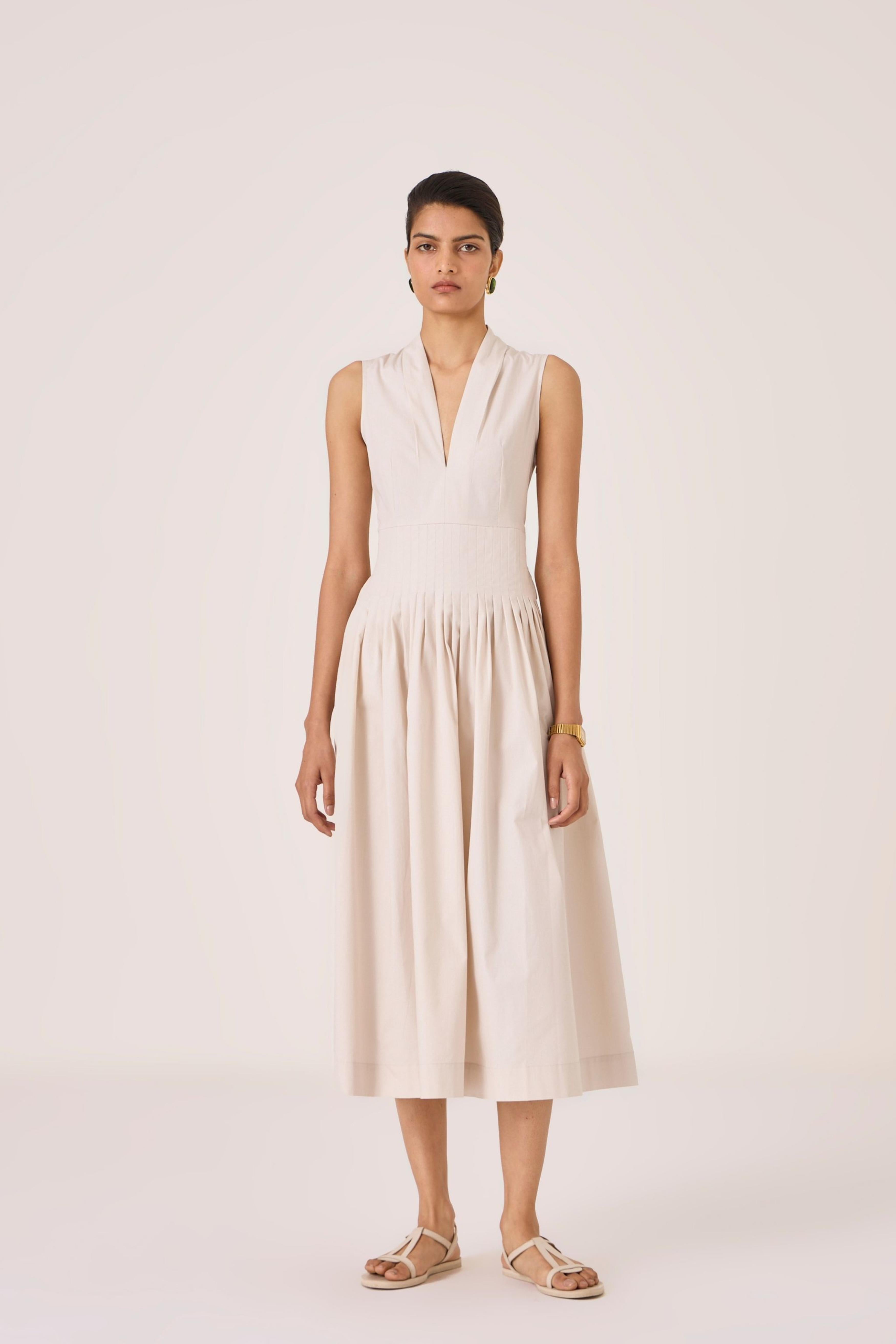 - Midi dress with a tailored look - Defined V neckline - Pleated detail for flattering waistline - Size zip - In-seam pockets
