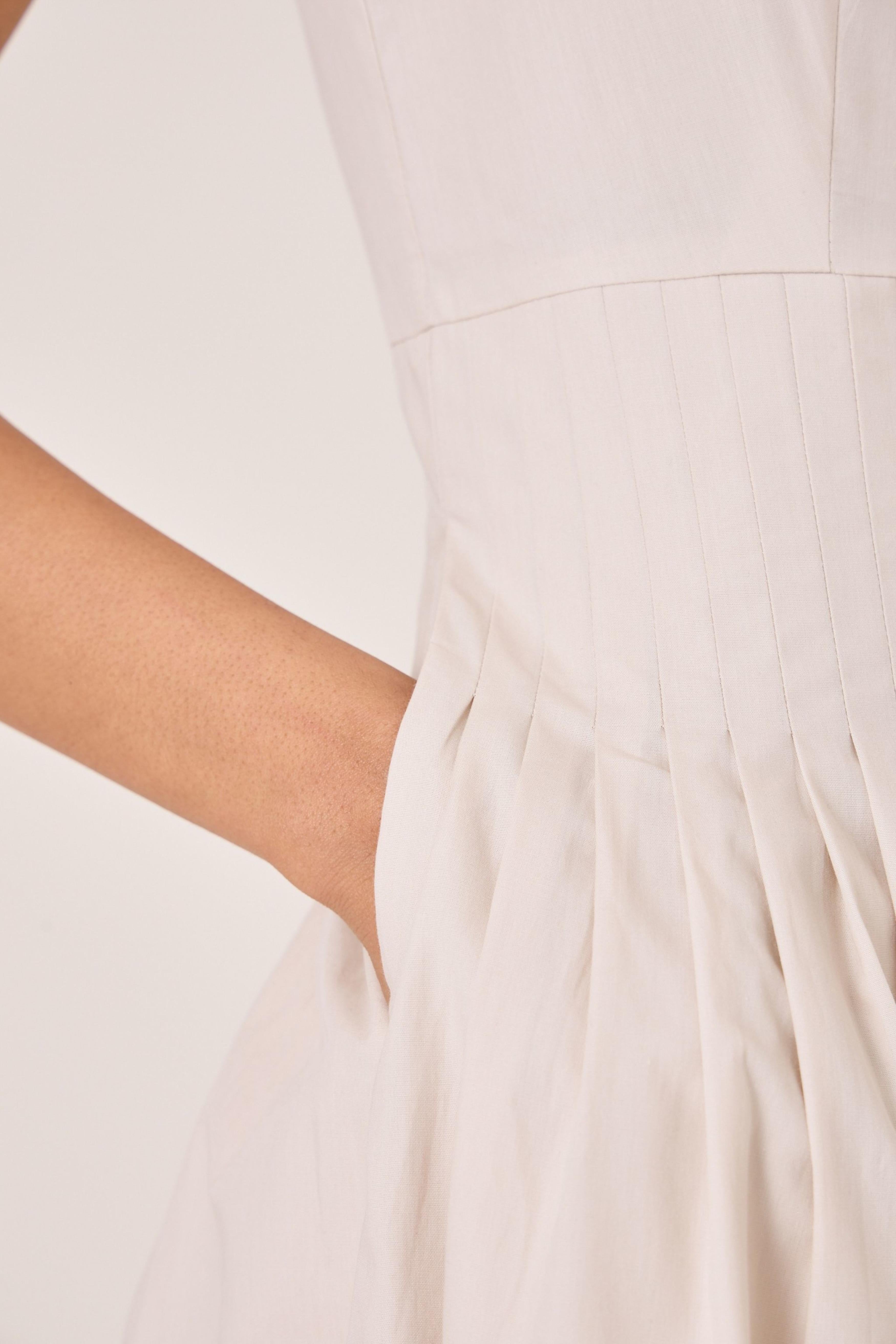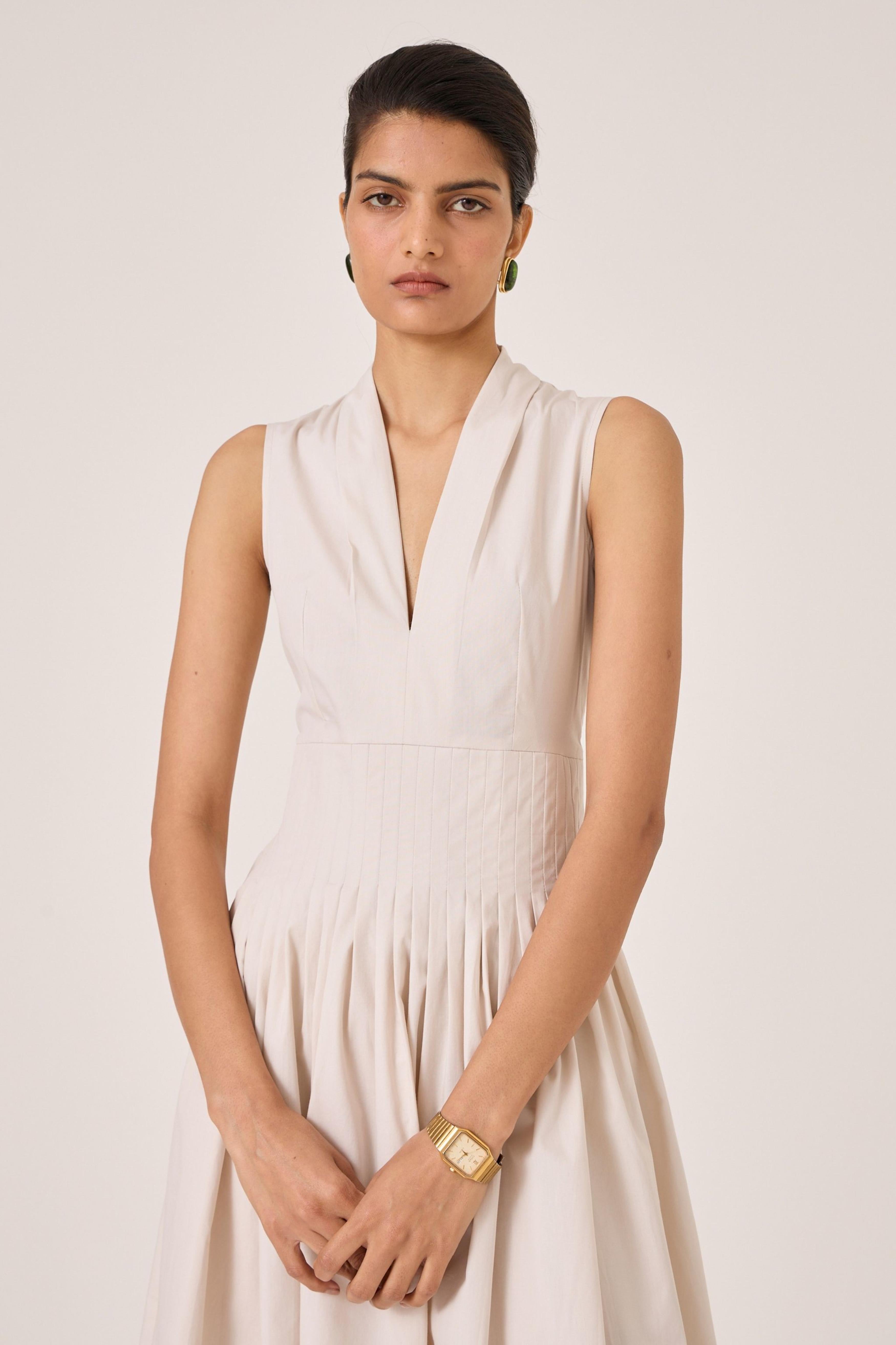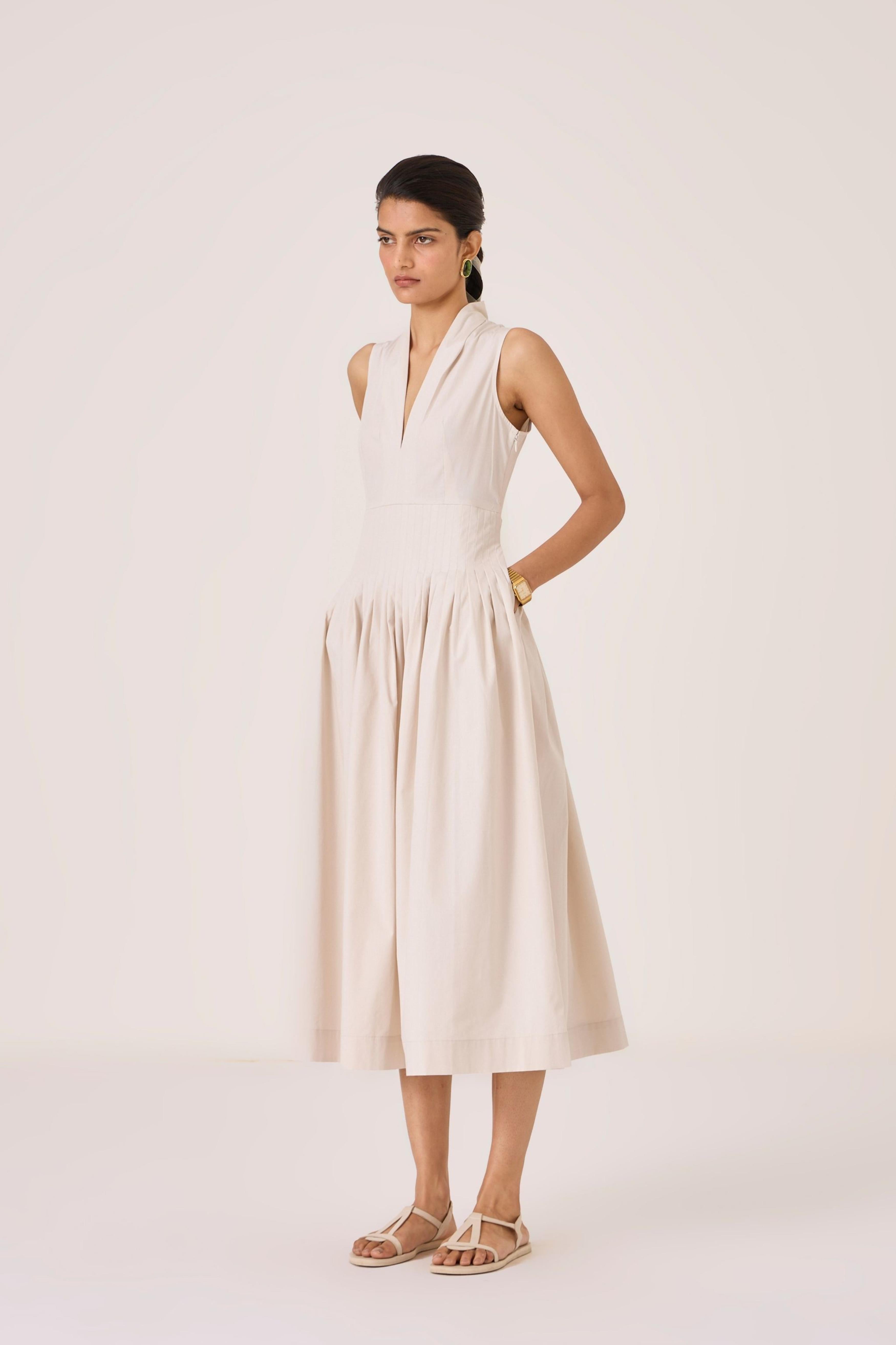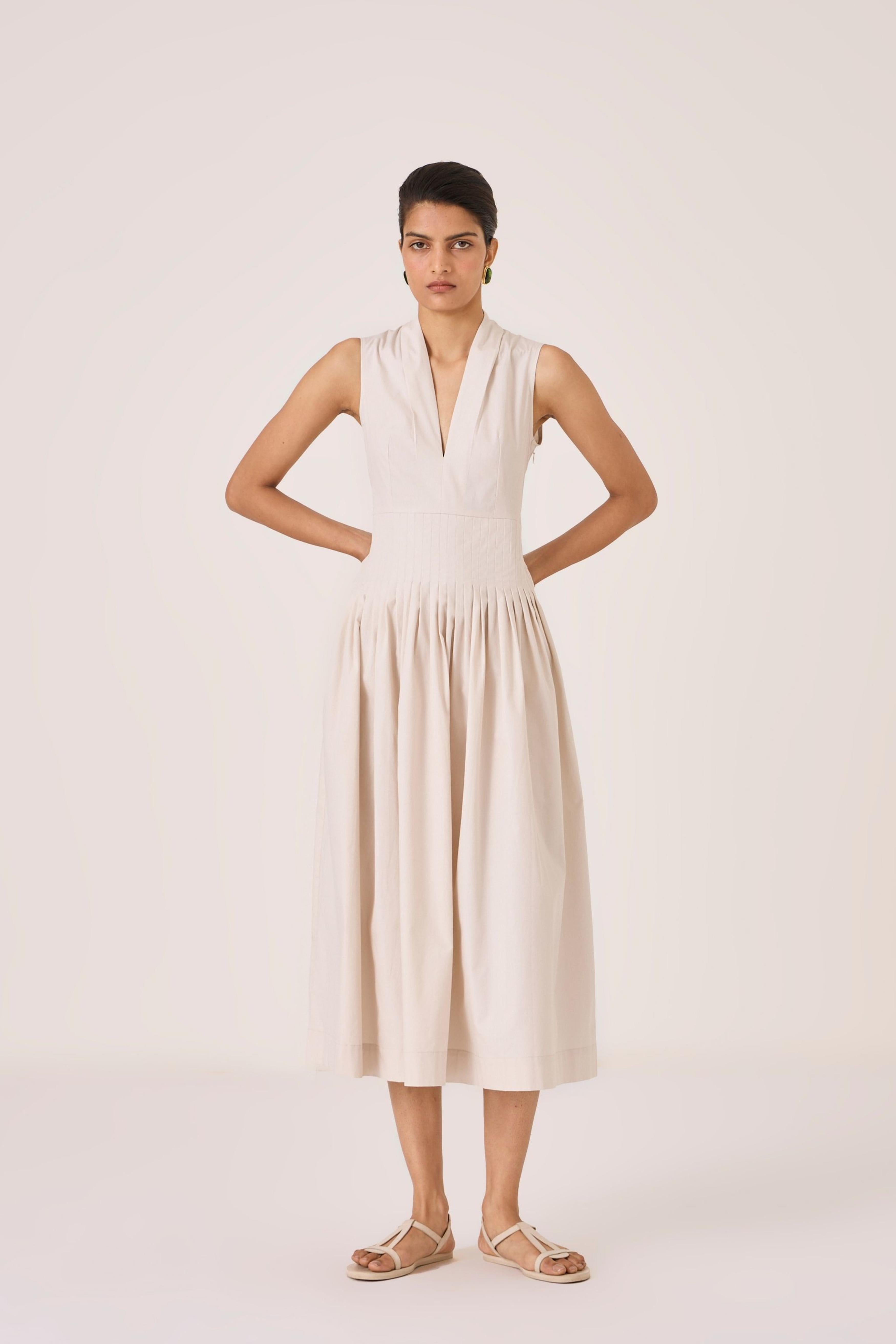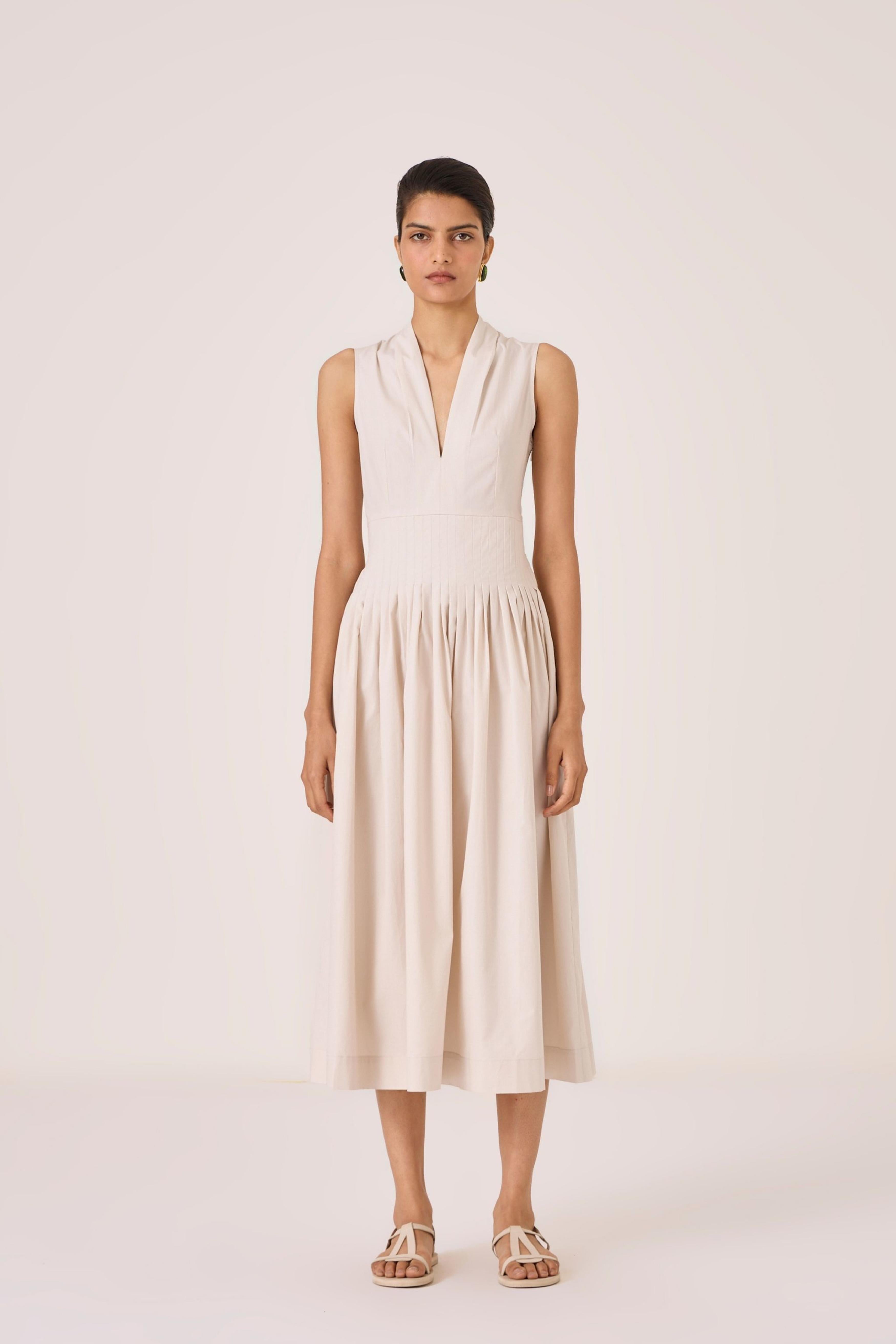 - Midi dress with a tailored look - Defined V neckline - Pleated detail for flattering waistline - Size zip - In-seam pockets