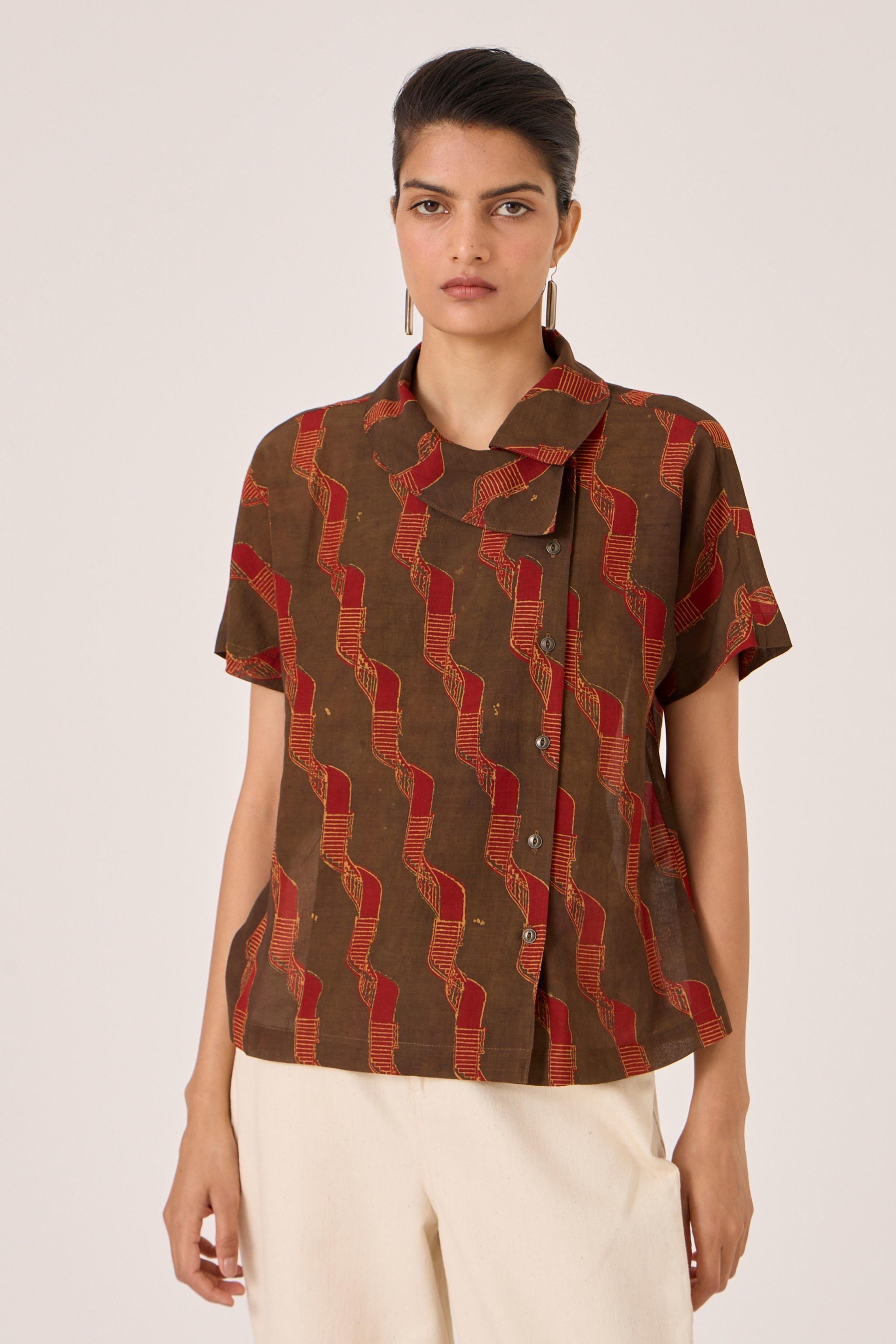 This signature ajrakh block print is designed in our studio and hand block printed by traditional artisans in Gujarat. Print placement may vary from garment to garment. Slight irregularities in print are common and speak to the hand processes involved.