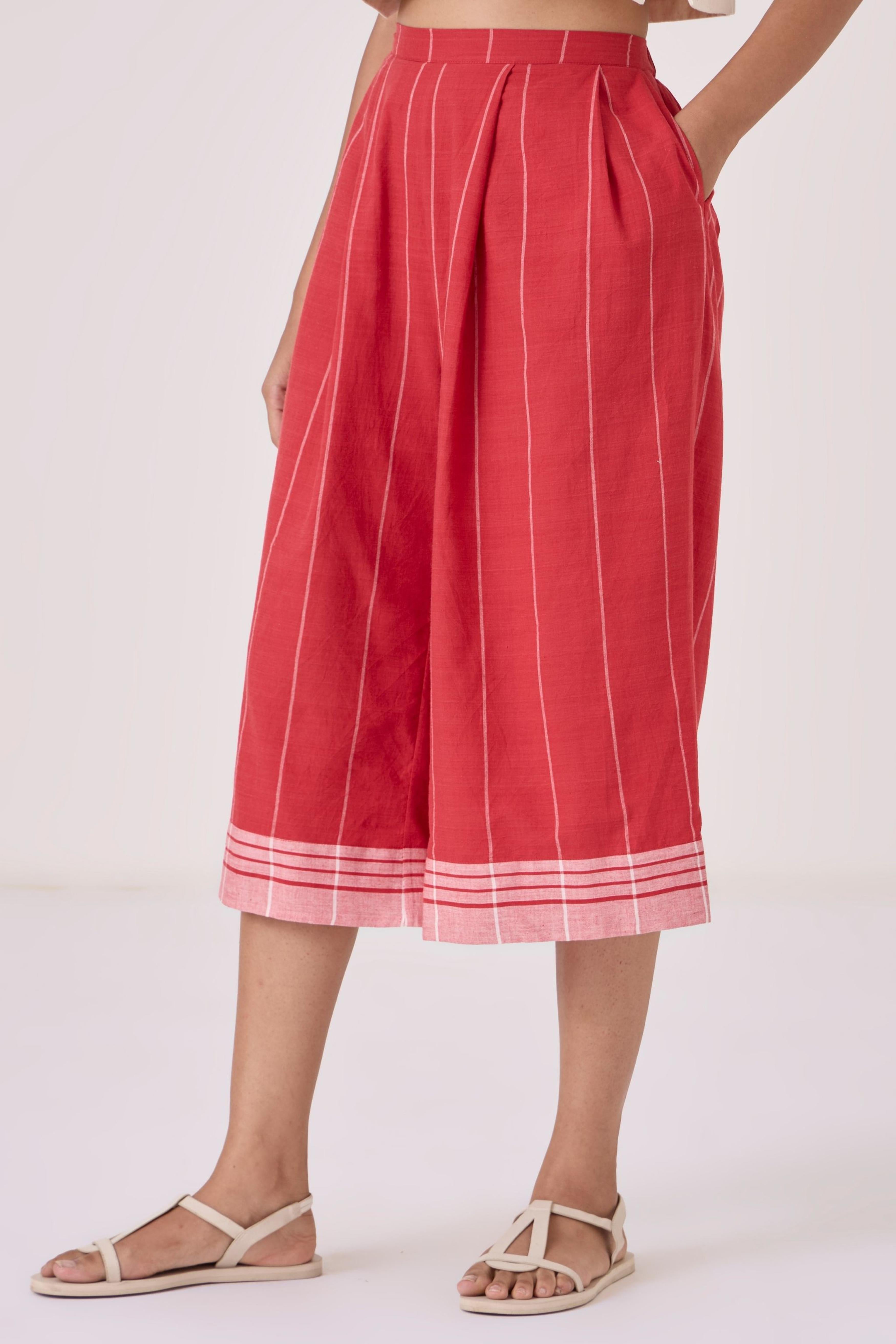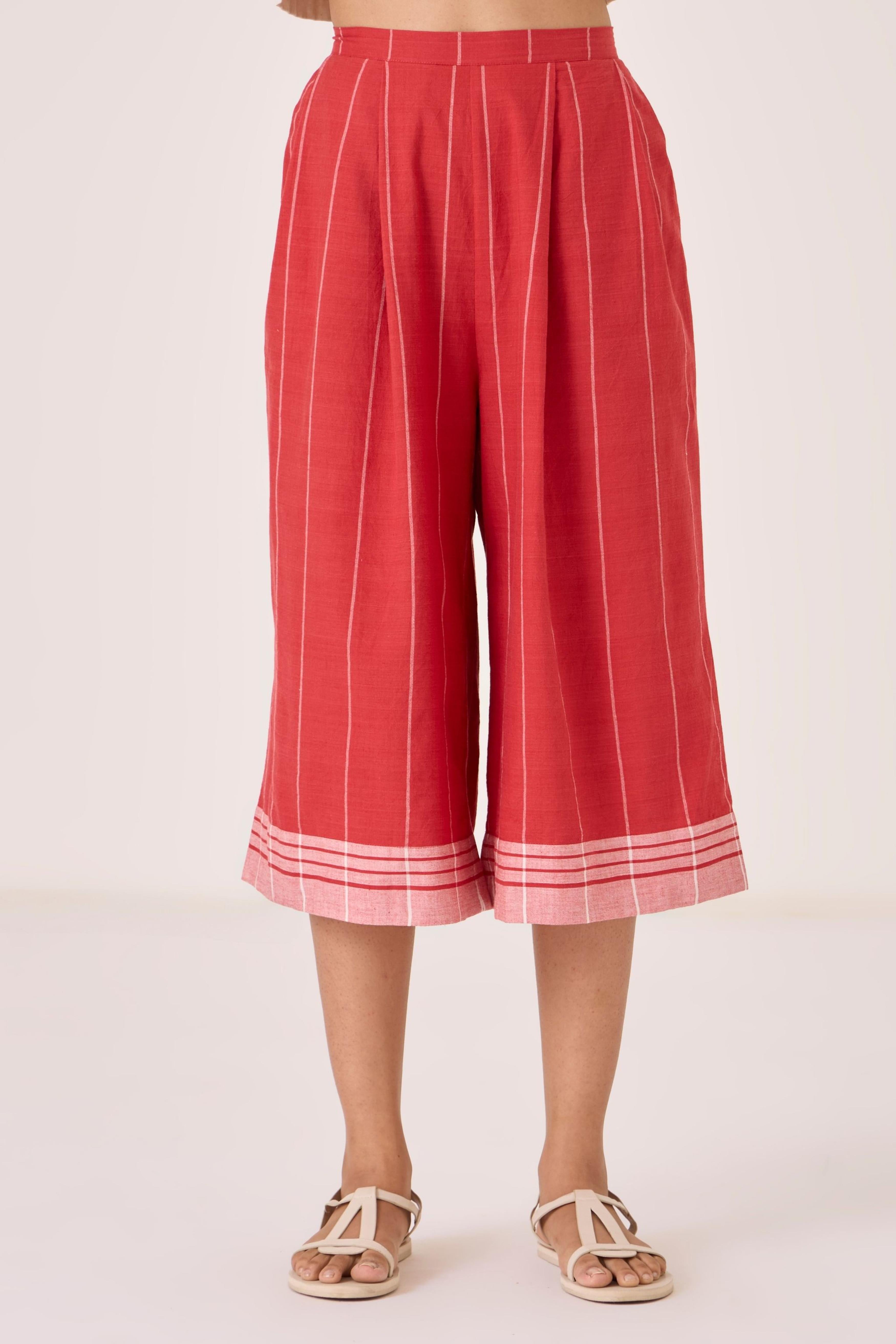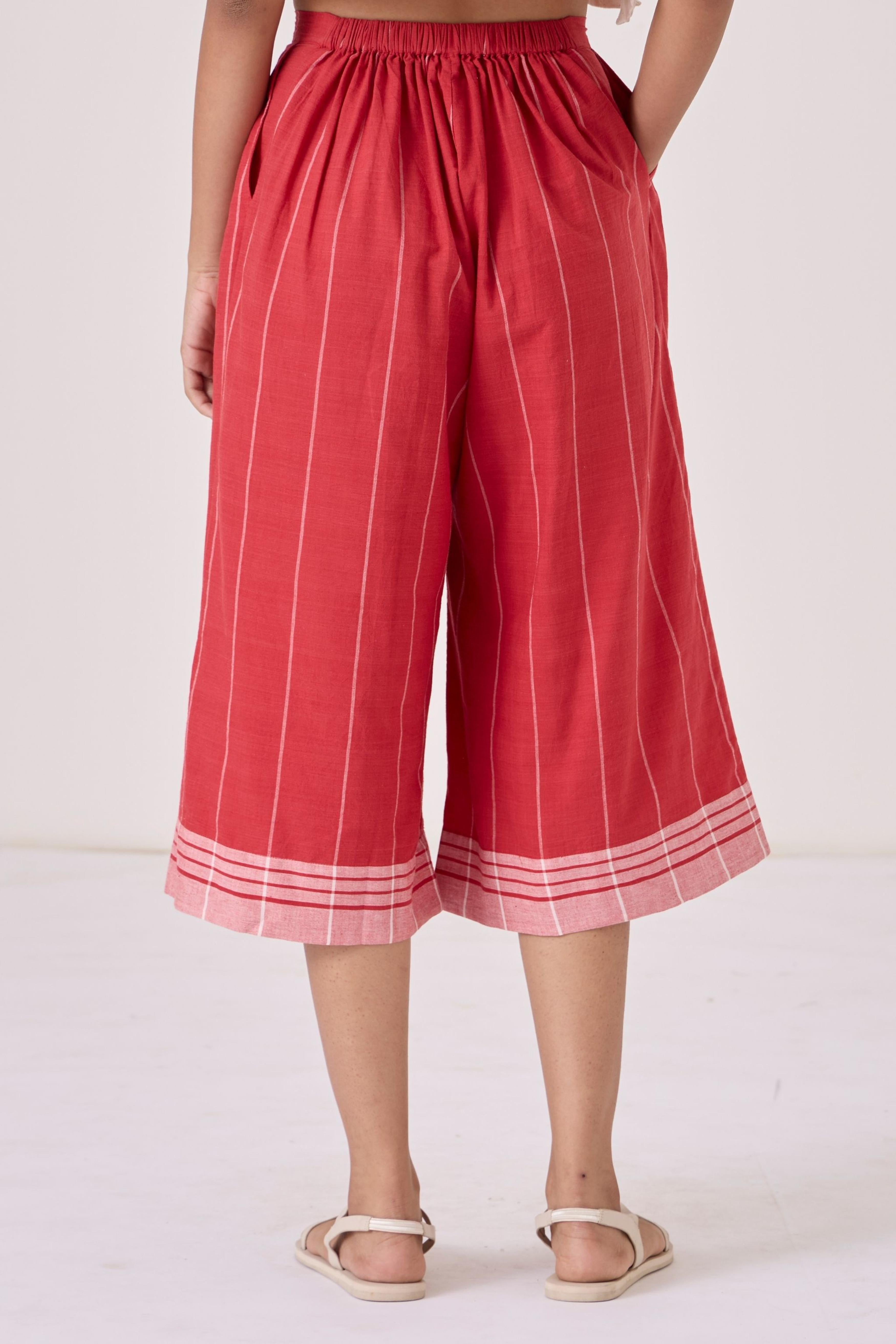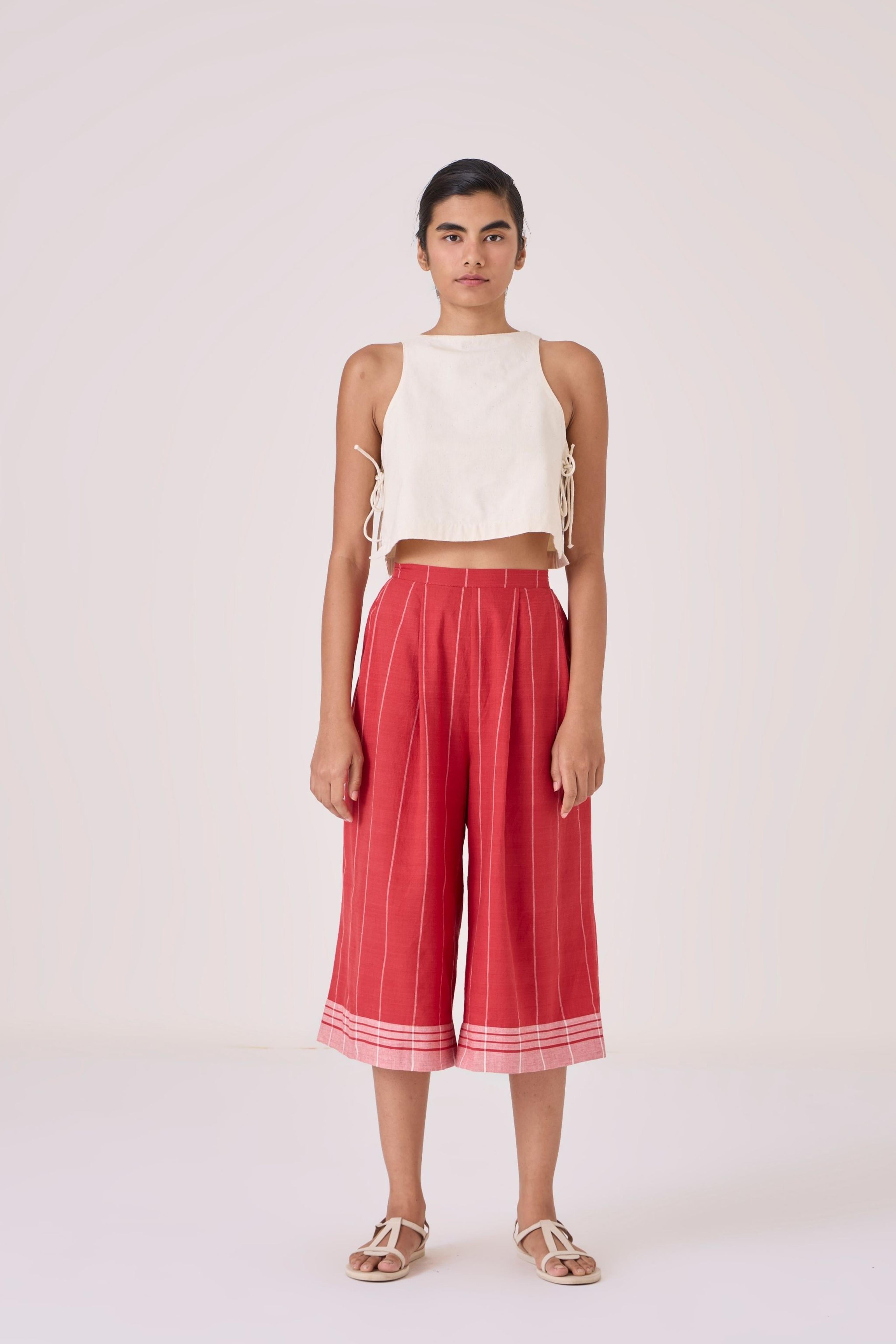 - Summer crop pants - Soft handloom cotton - Elasticated at the back. - Pleated front - In-seam pockets