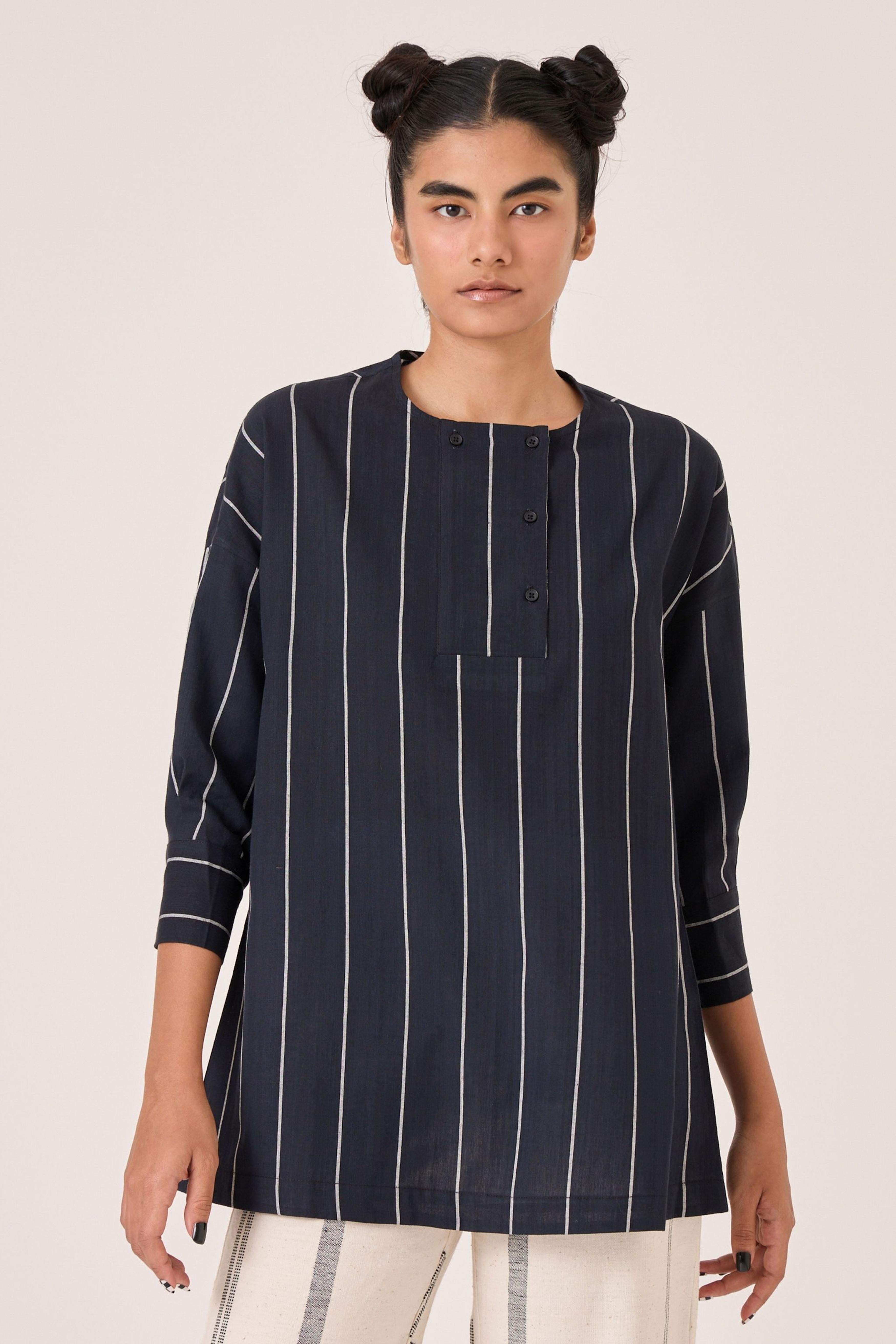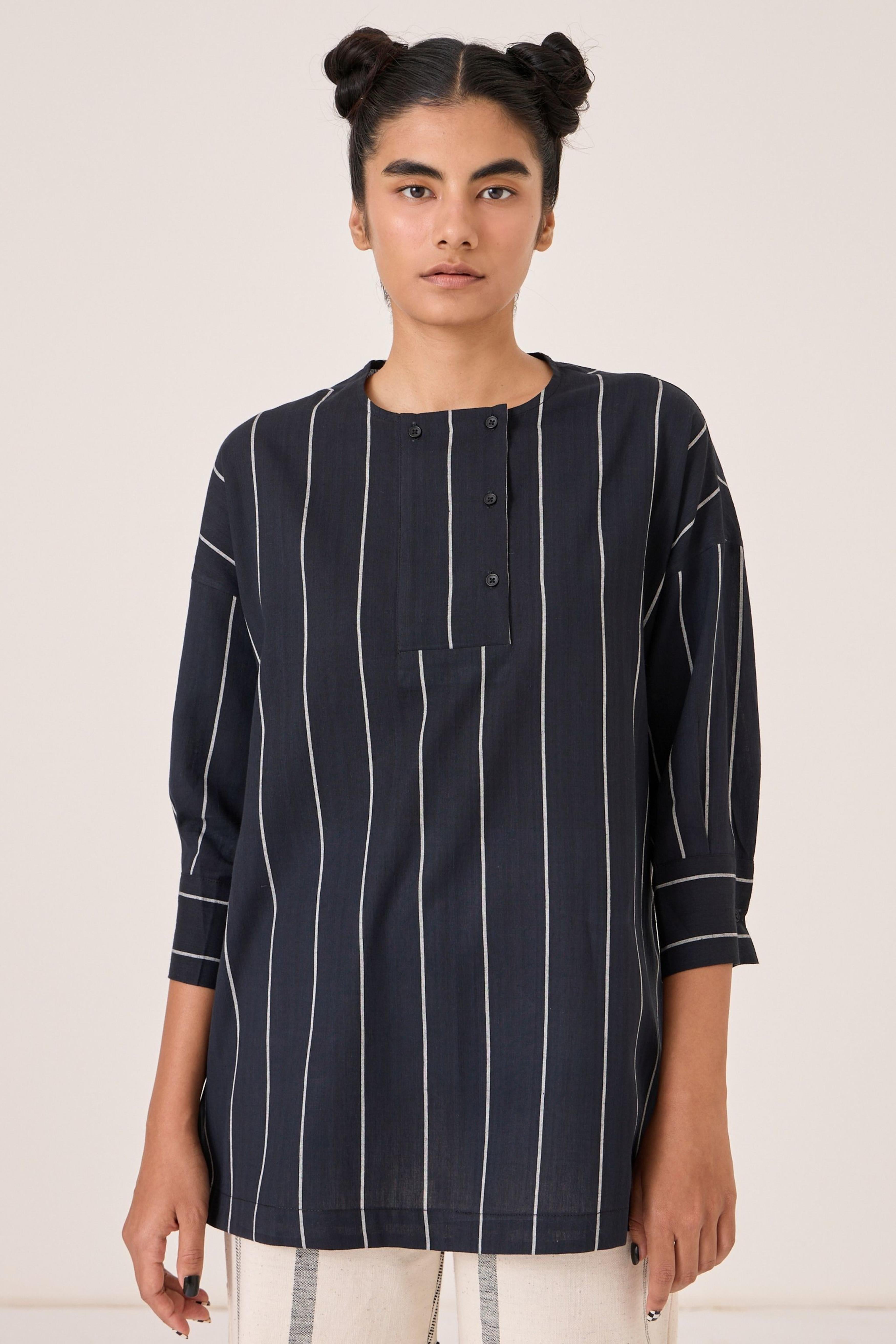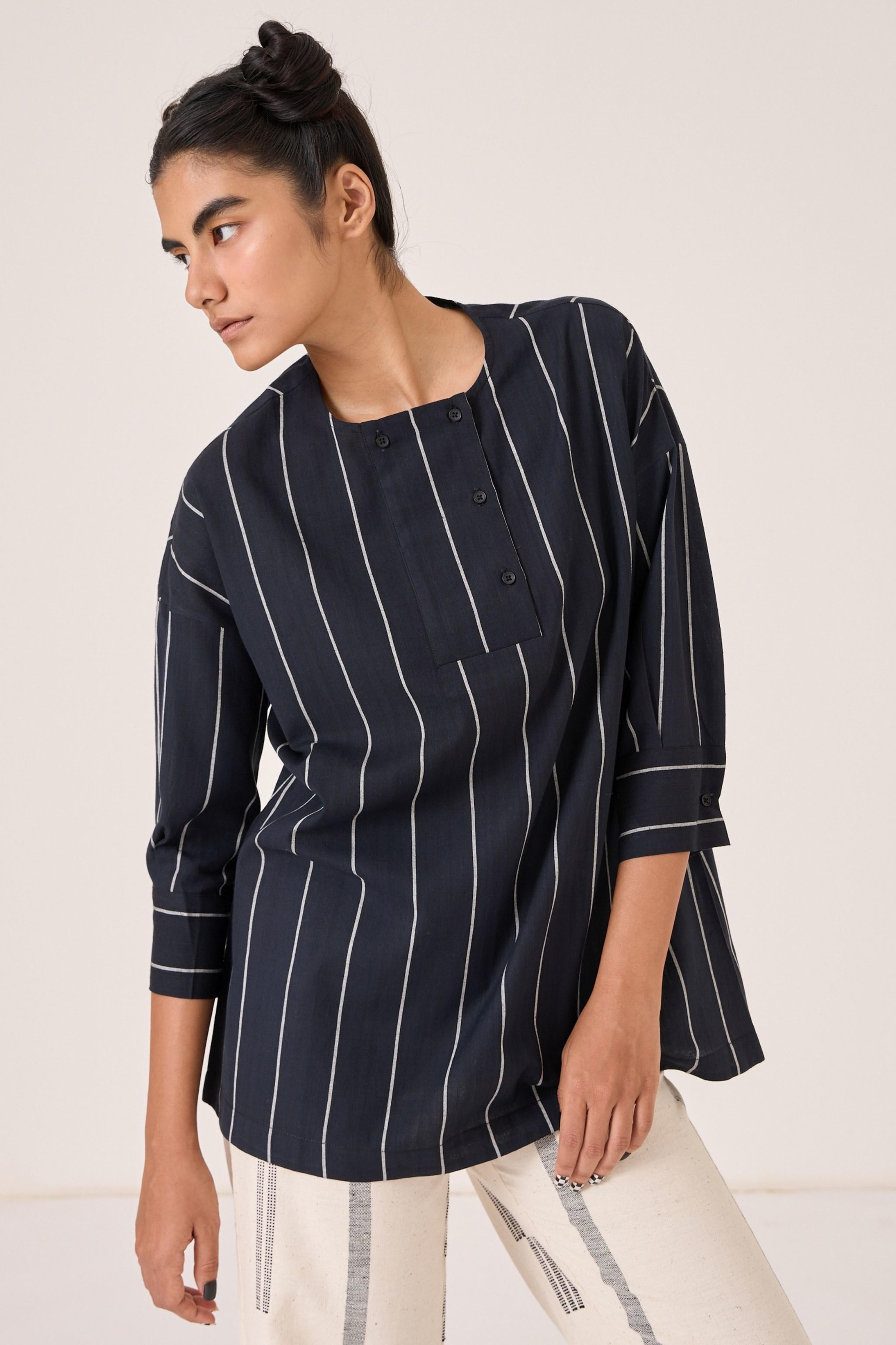 - Lightweight easy fit top- Wide button placket- Drop shoulder with 3/4th sleeves- Pleated adjustable cuff