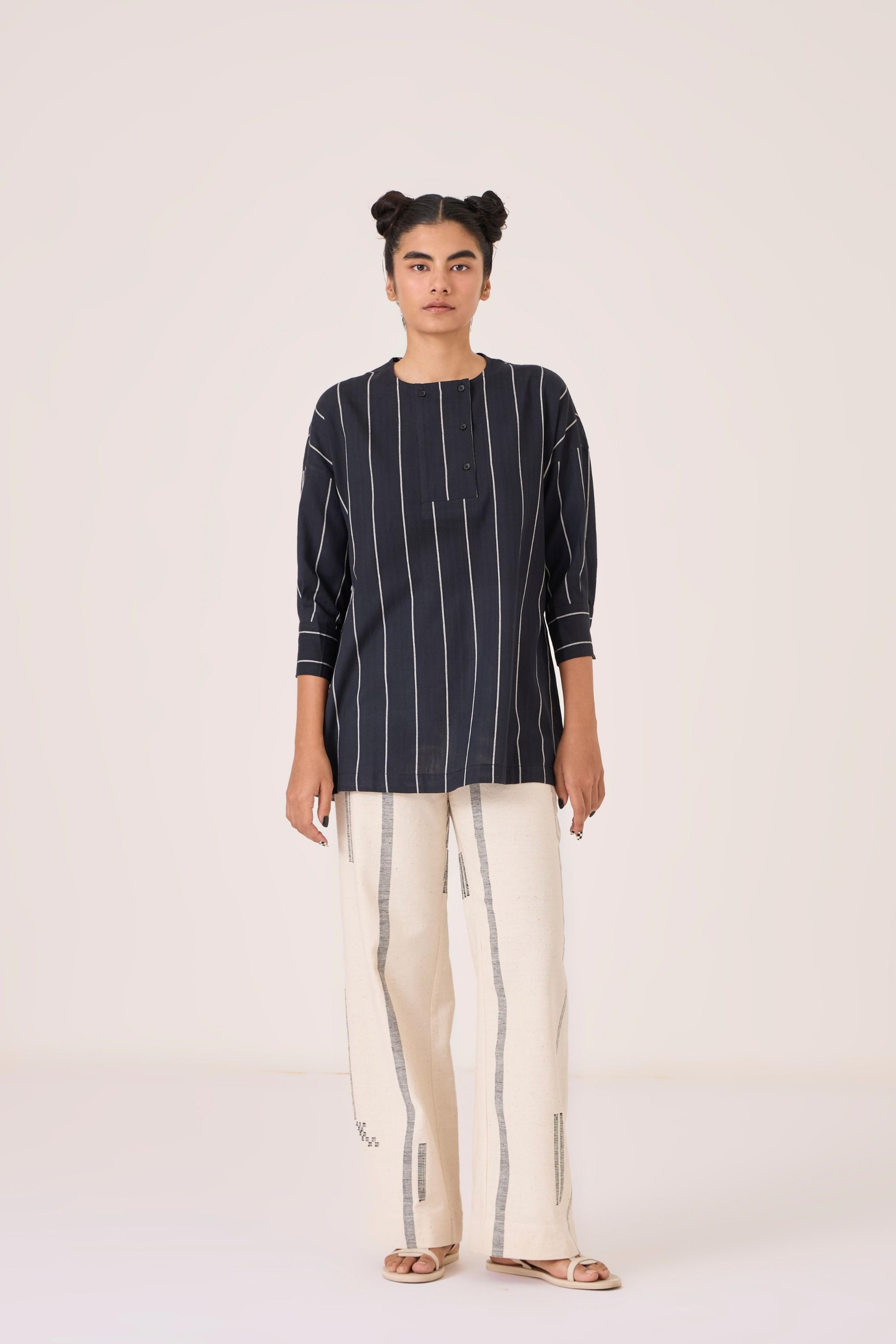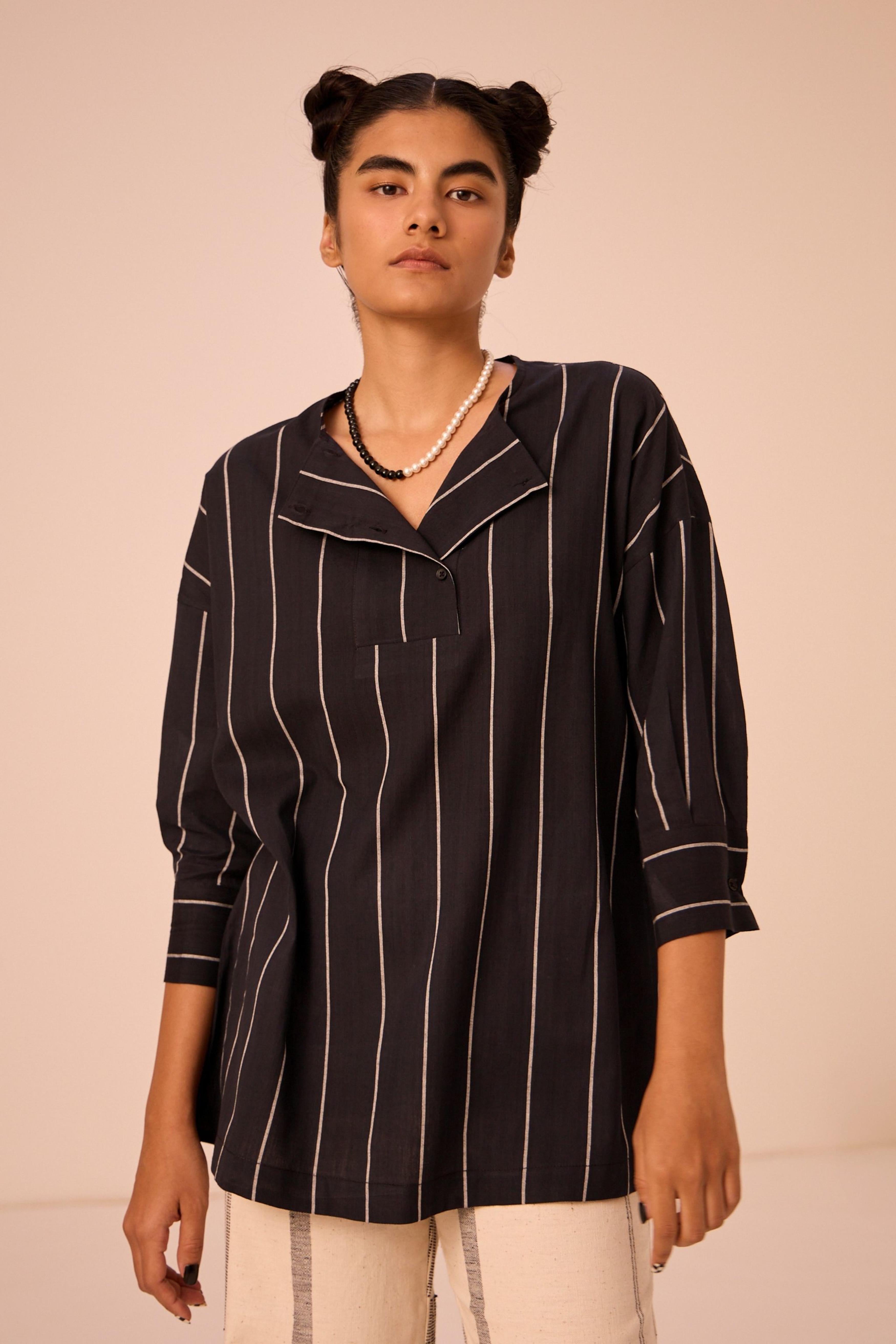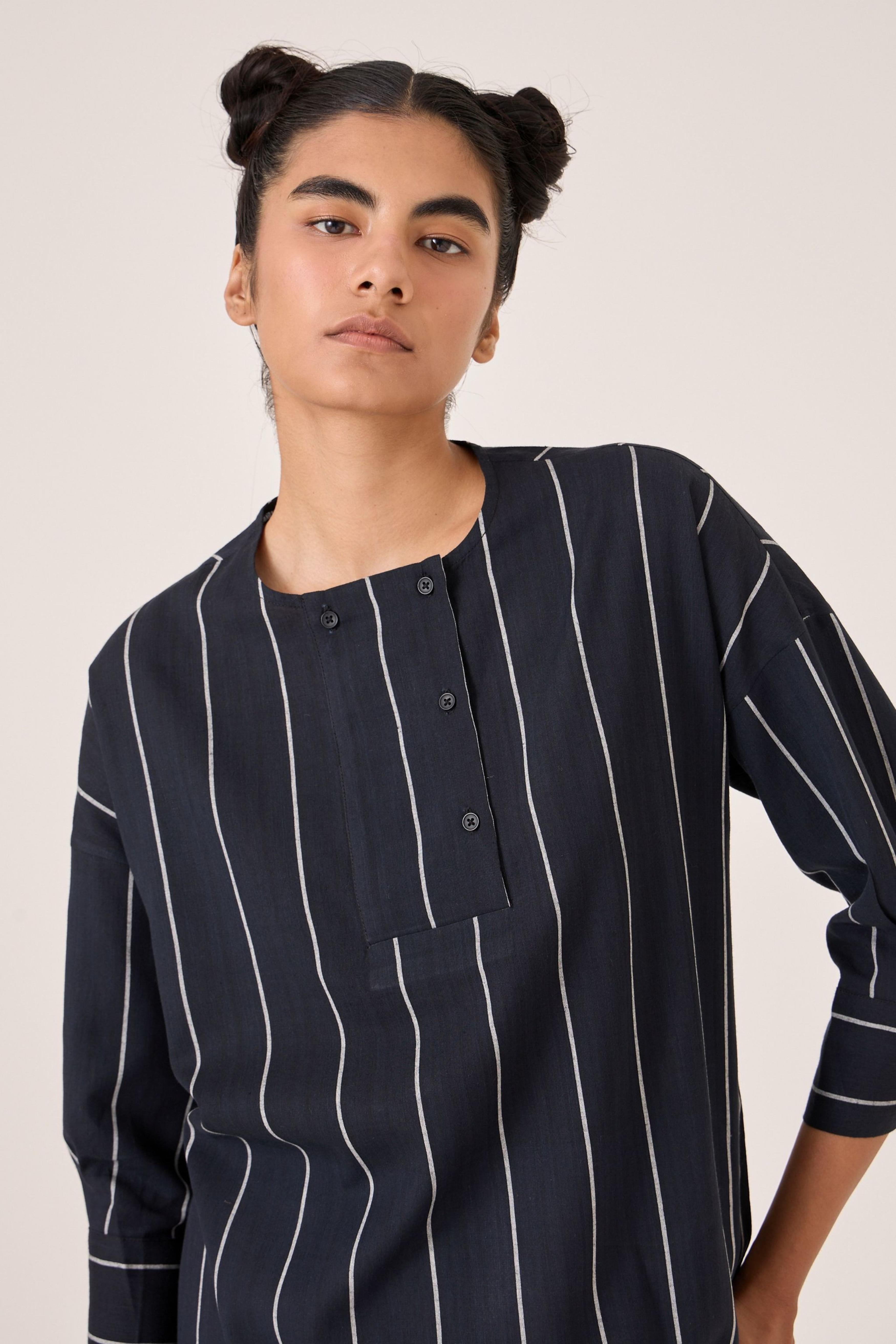 - Lightweight easy fit top- Wide button placket- Drop shoulder with 3/4th sleeves- Pleated adjustable cuff