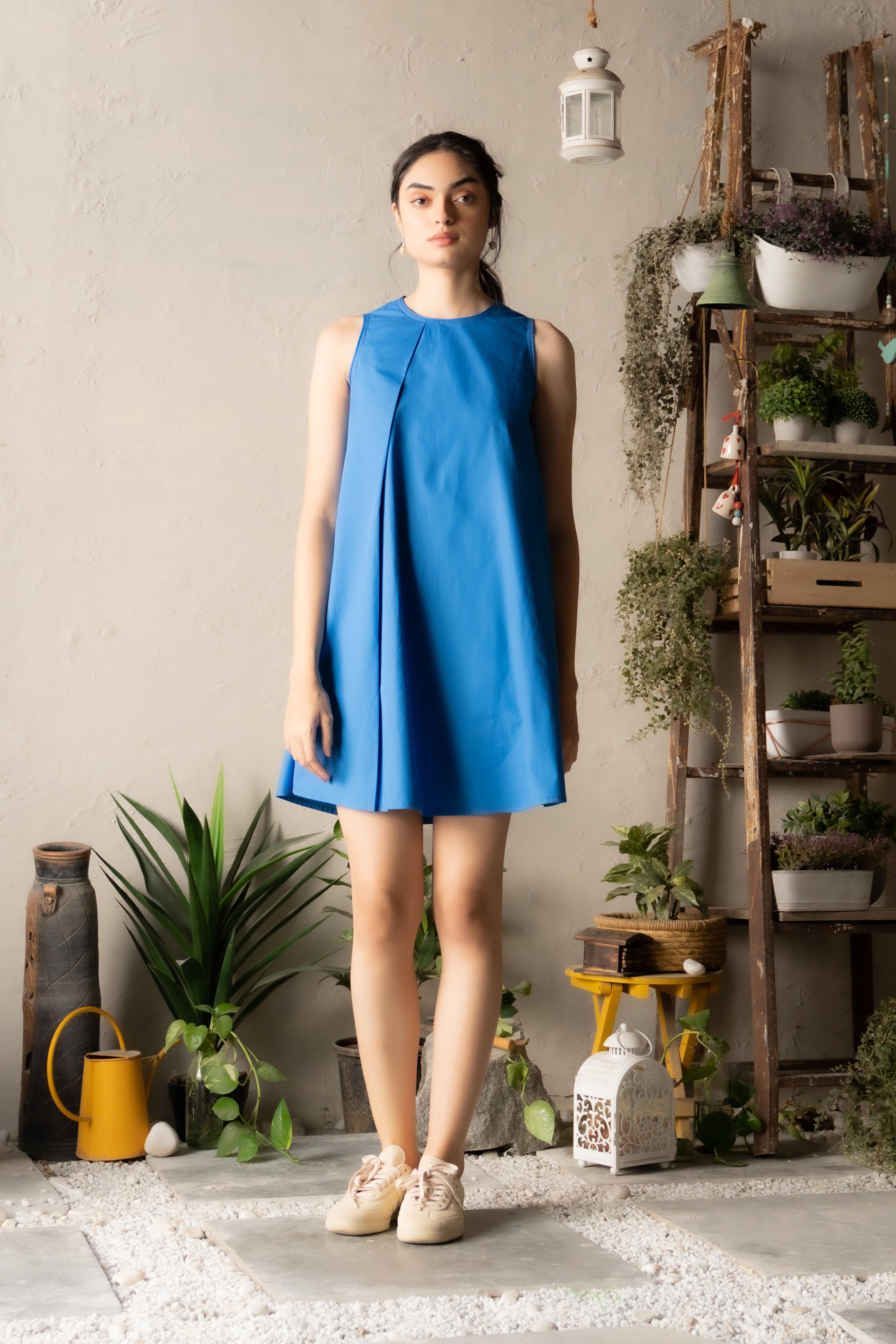 Inspired by the Japanese aesthetic of subtle beauty, the Shibumi Dress brings understated elegance to your wardrobe. This short cobalt blue dress offers a relaxed yet sophisticated silhouette, enhanced by contrast side panels that add visual intrigue and a flattering shape. Crafted from soft, flowing fabric, it's the perfect choice for casual outings or leisurely gatherings. Effortless style meets timeless grace in this versatile piece.