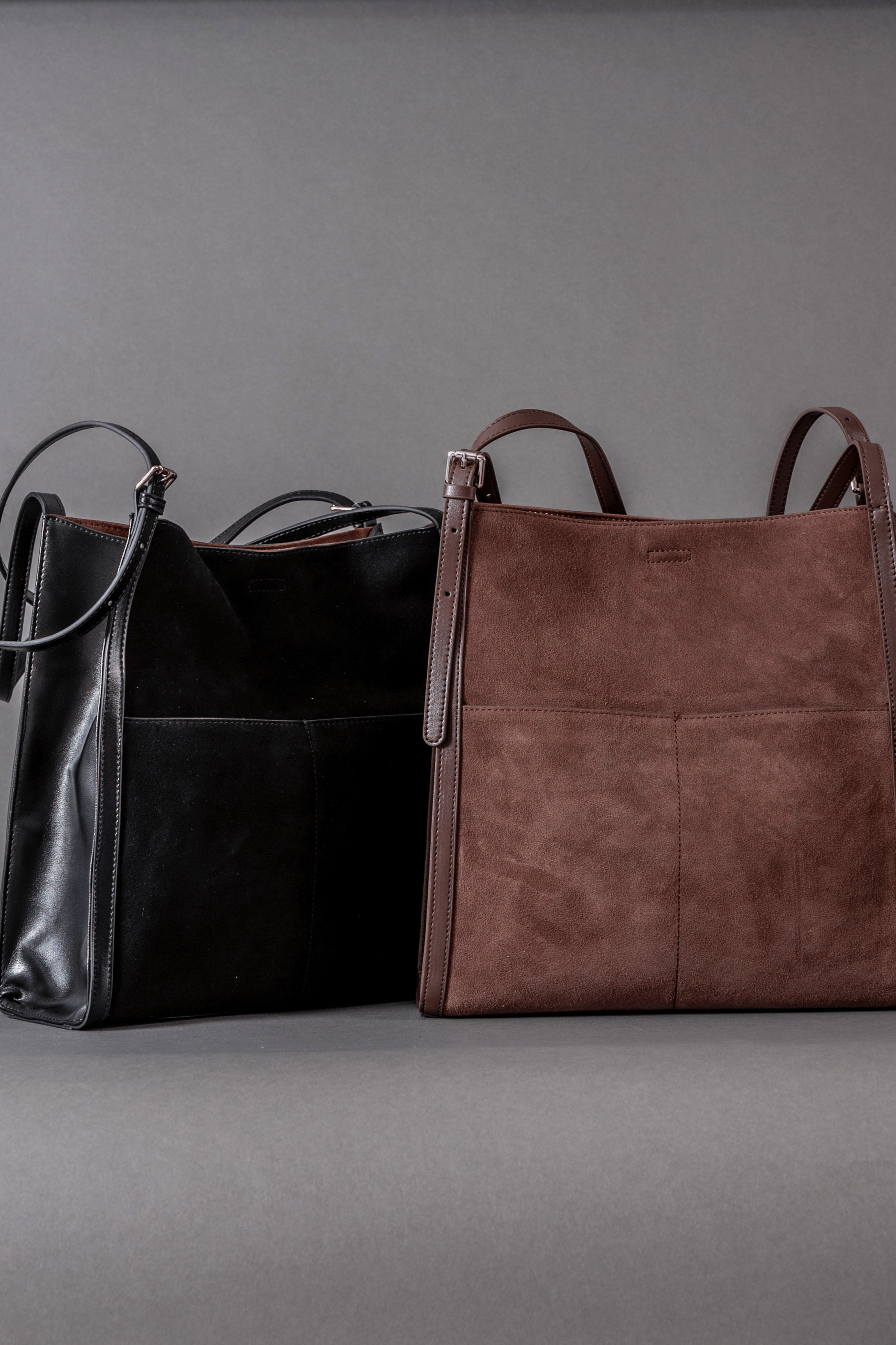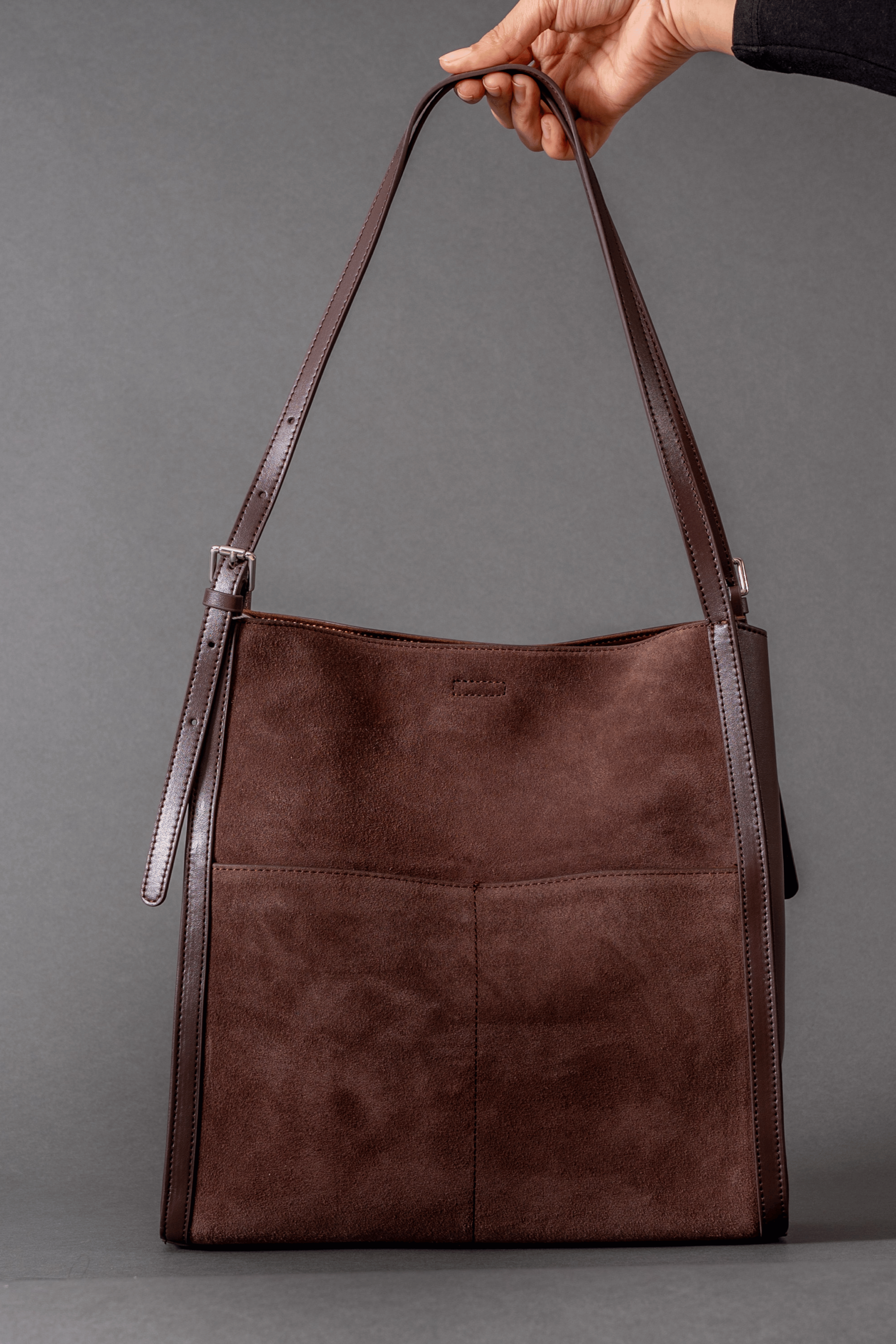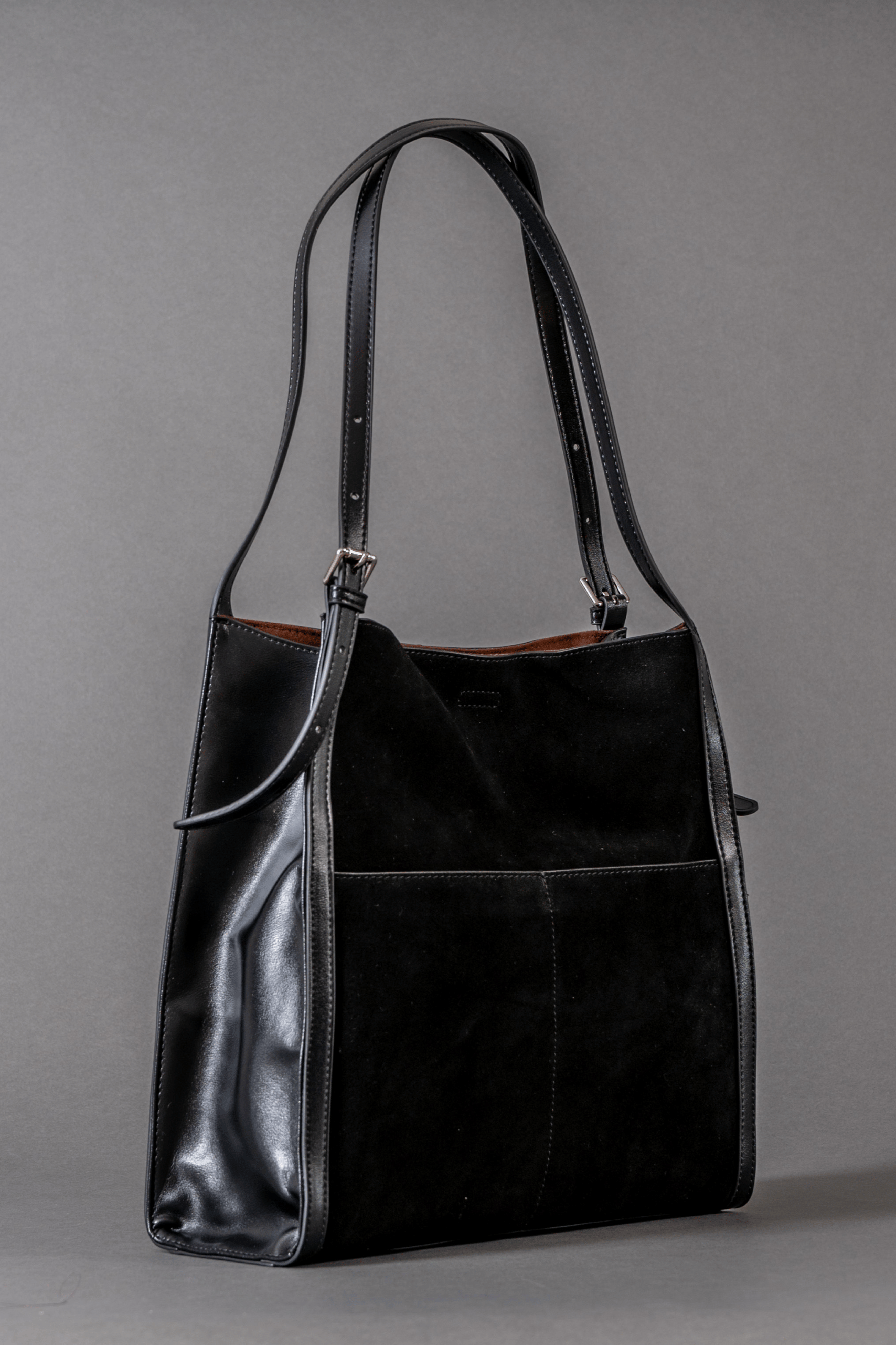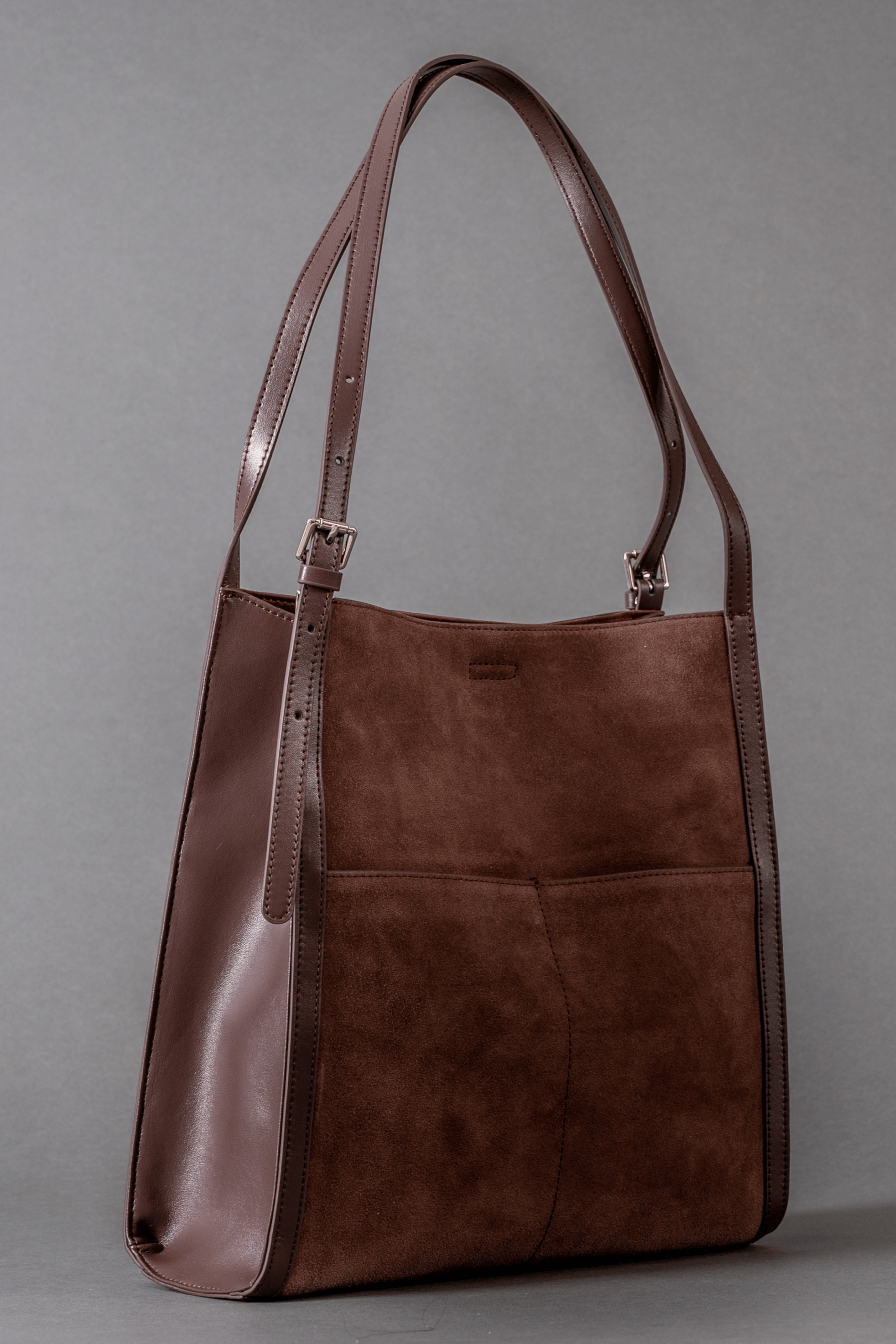Meticulously crafted with focus on both functionality and style, our medium Tote bag, Siena is here to enhance your everyday style. This versatile Tote features: 1.Premium Material Mix: Suede leather at the front for a velvety, refined texture, paired with durable smooth leather at the back for added strength and elegance. 2. Functional Interior: Two spacious compartments separated by a zippered pocket in the middle along with two pockets at sides, offering excellent organization for your essentials. Main compartment is roomy enough to hold your notebooks, tablet and daily essentials while maintaining a compact profile. 3. Magnetic Button Closure: Ensures secure and easy access to your belongings. 4. Practical Front Pockets: Two functional pockets at the front for quick access to essentials like phone or keys , adding convenience and style. 5. Adjustable Shoulder Straps: for comfortable customized fit. 6. Dust Bag: comes in a cotton dust bag for storing when not in use.
