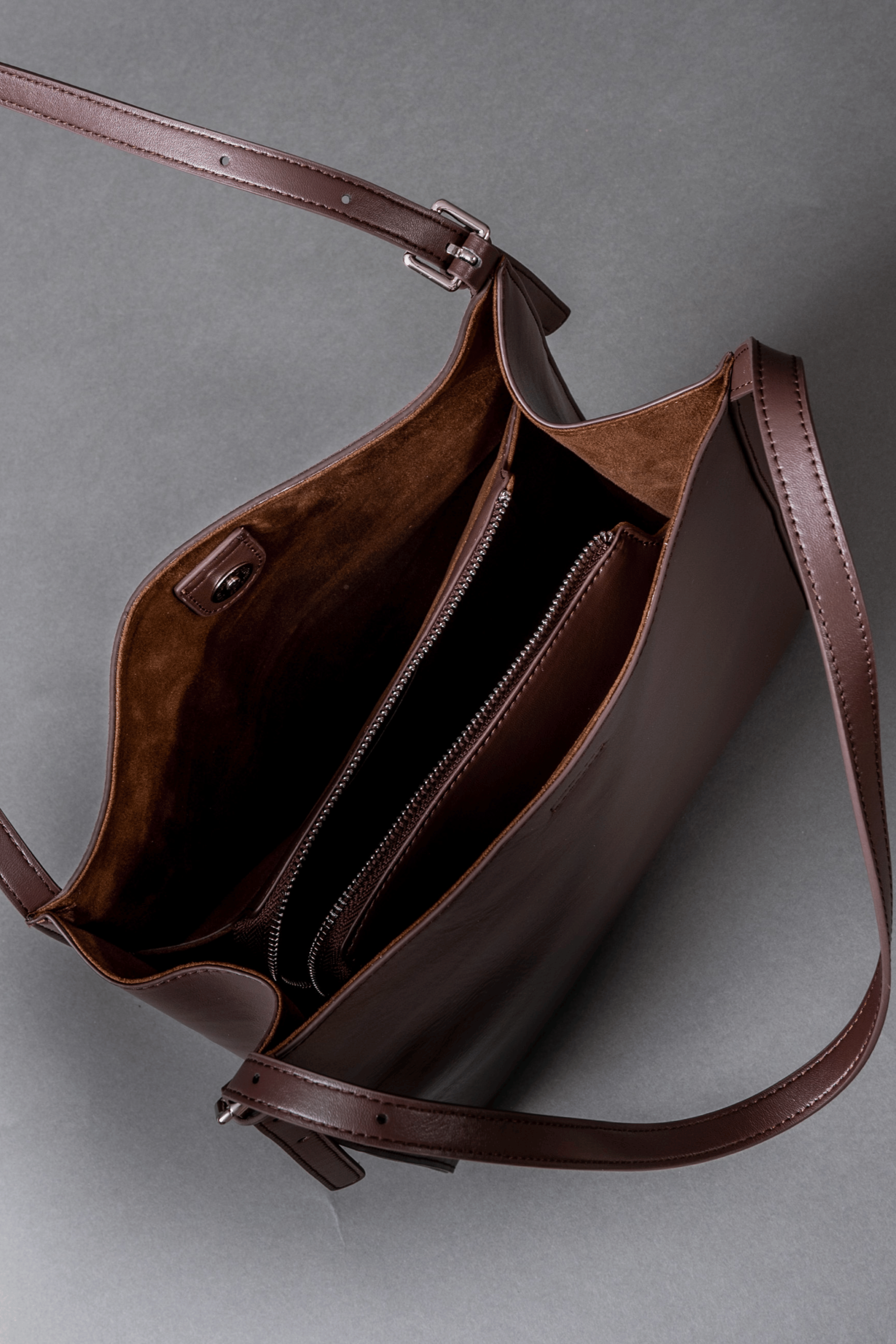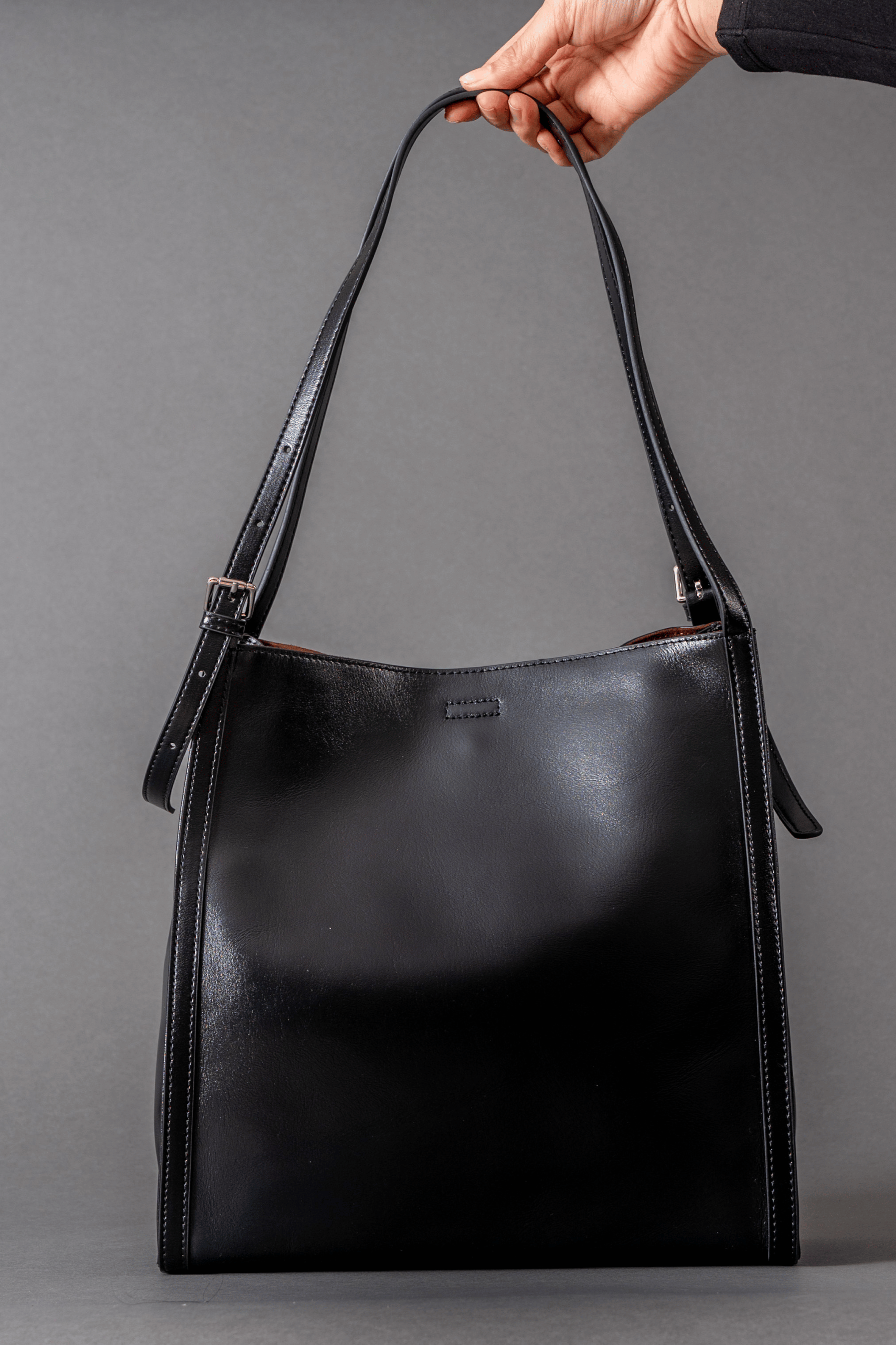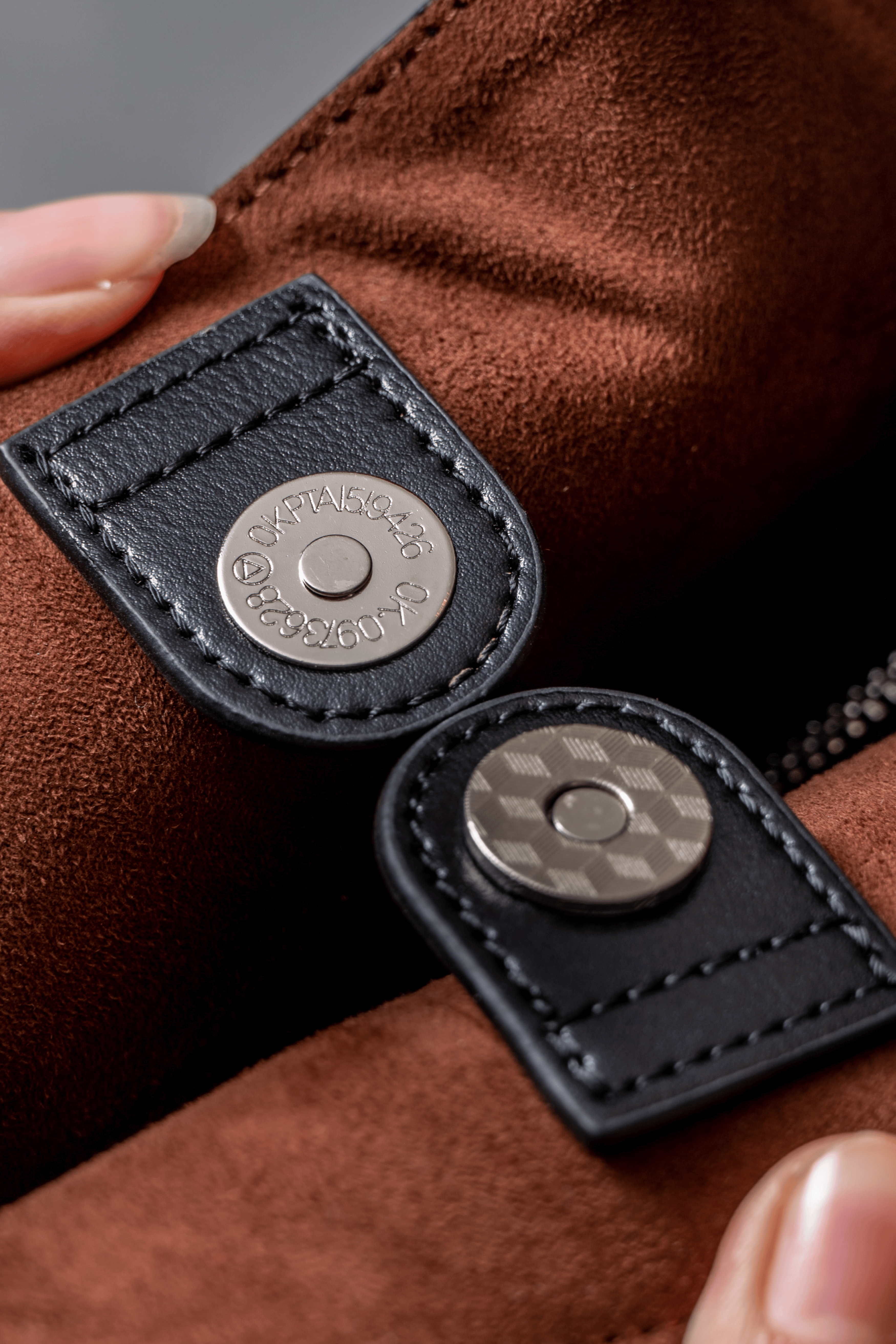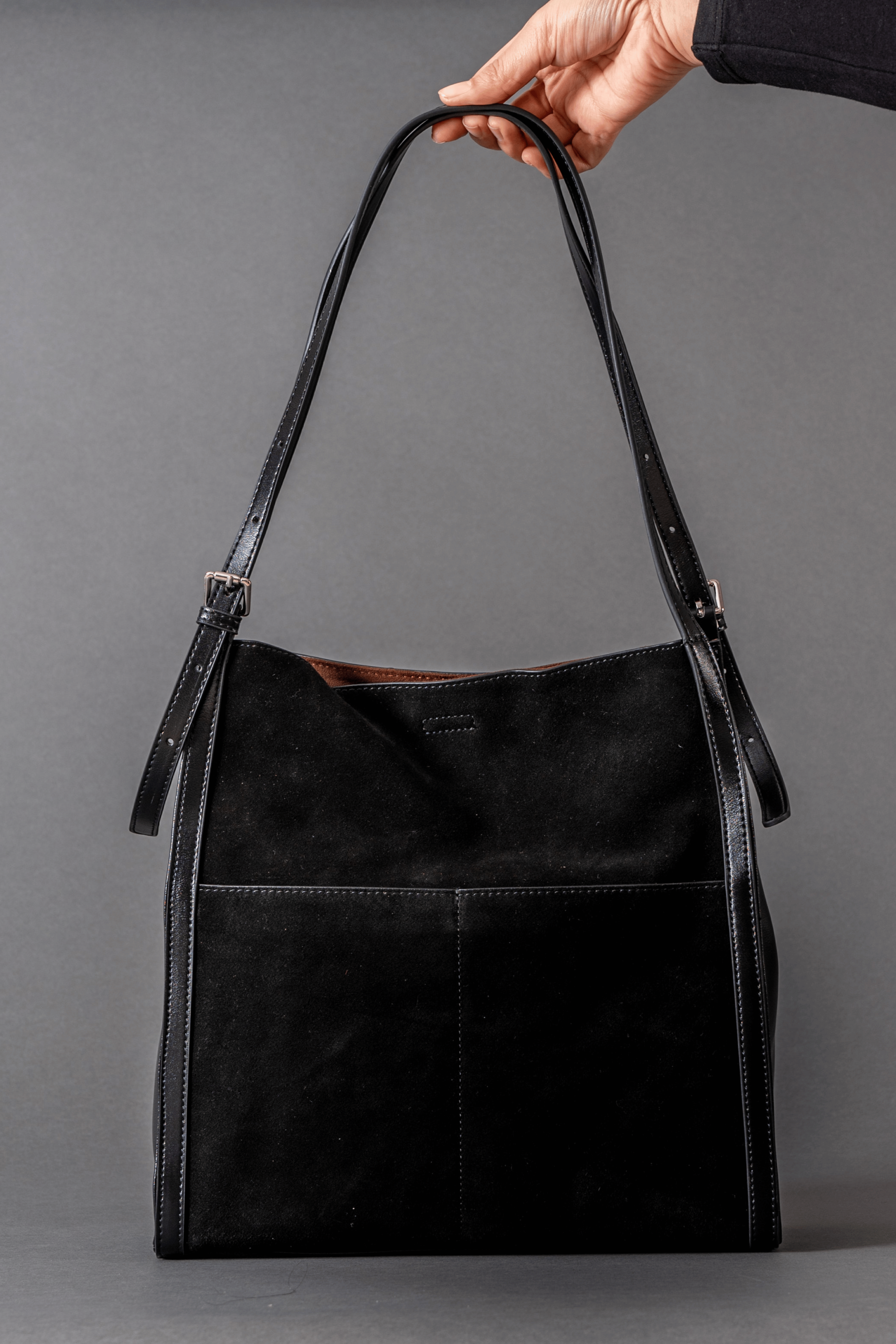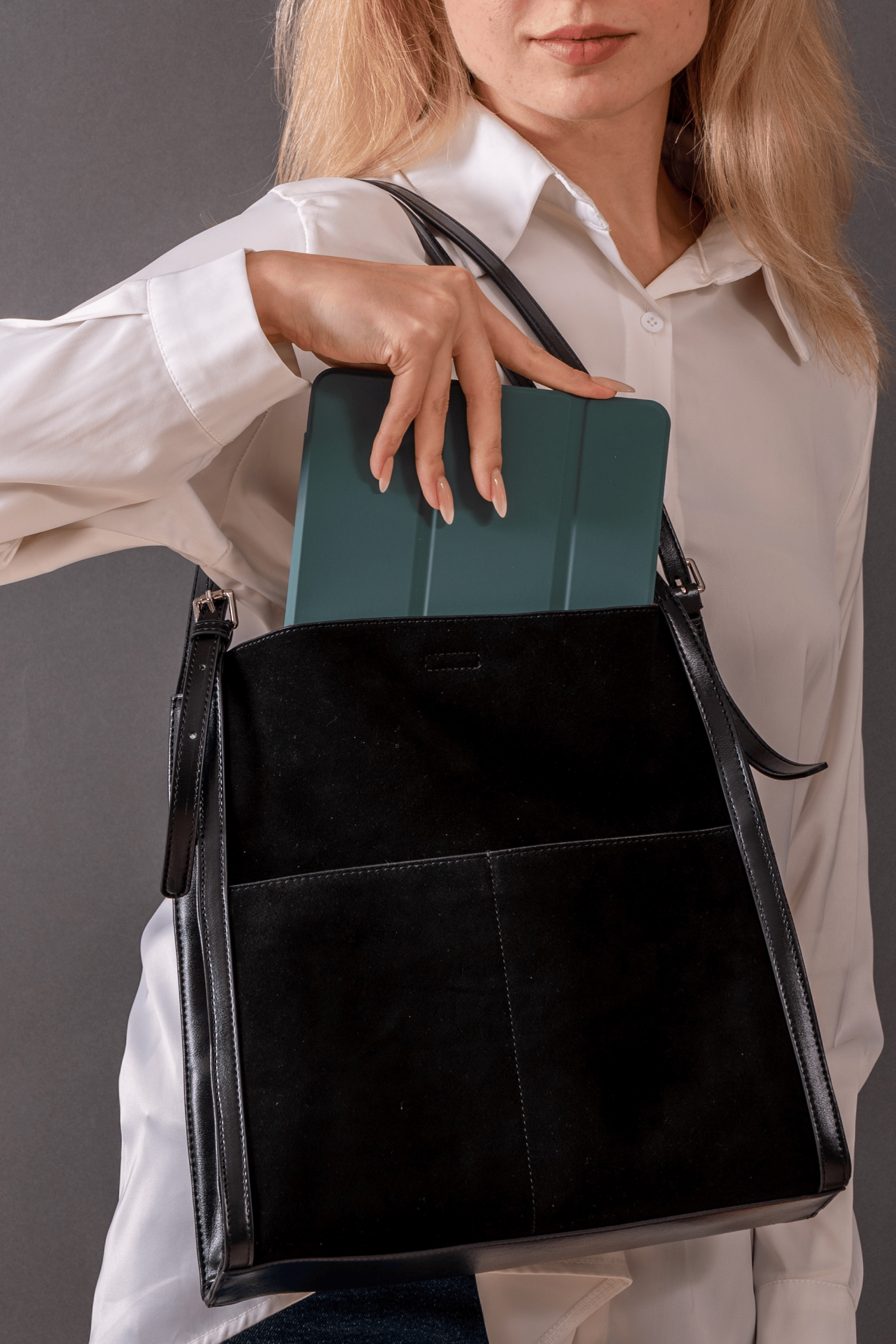 Meticulously crafted with focus on both functionality and style, our medium Tote bag, Siena is here to enhance your everyday style. This versatile Tote features: 1.Premium Material Mix: Suede leather at the front for a velvety, refined texture, paired with durable smooth leather at the back for added strength and elegance. 2. Functional Interior: Two spacious compartments separated by a zippered pocket in the middle along with two pockets at sides, offering excellent organization for your essentials. Main compartment is roomy enough to hold your notebooks, tablet and daily essentials while maintaining a compact profile. 3. Magnetic Button Closure: Ensures secure and easy access to your belongings. 4. Practical Front Pockets: Two functional pockets at the front for quick access to essentials like phone or keys , adding convenience and style. 5. Adjustable Shoulder Straps: for comfortable customized fit. 6. Dust Bag: comes in a cotton dust bag for storing when not in use.