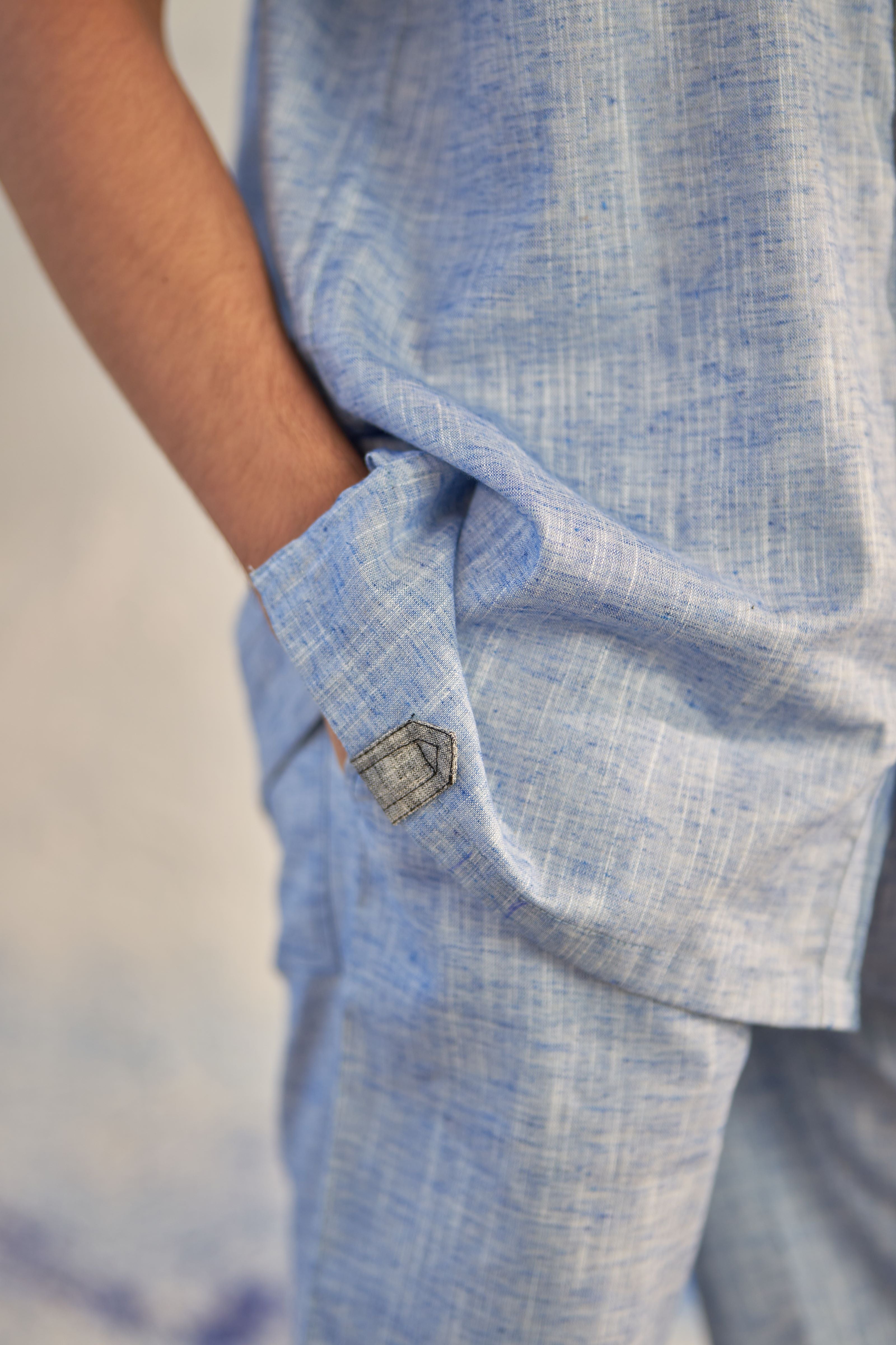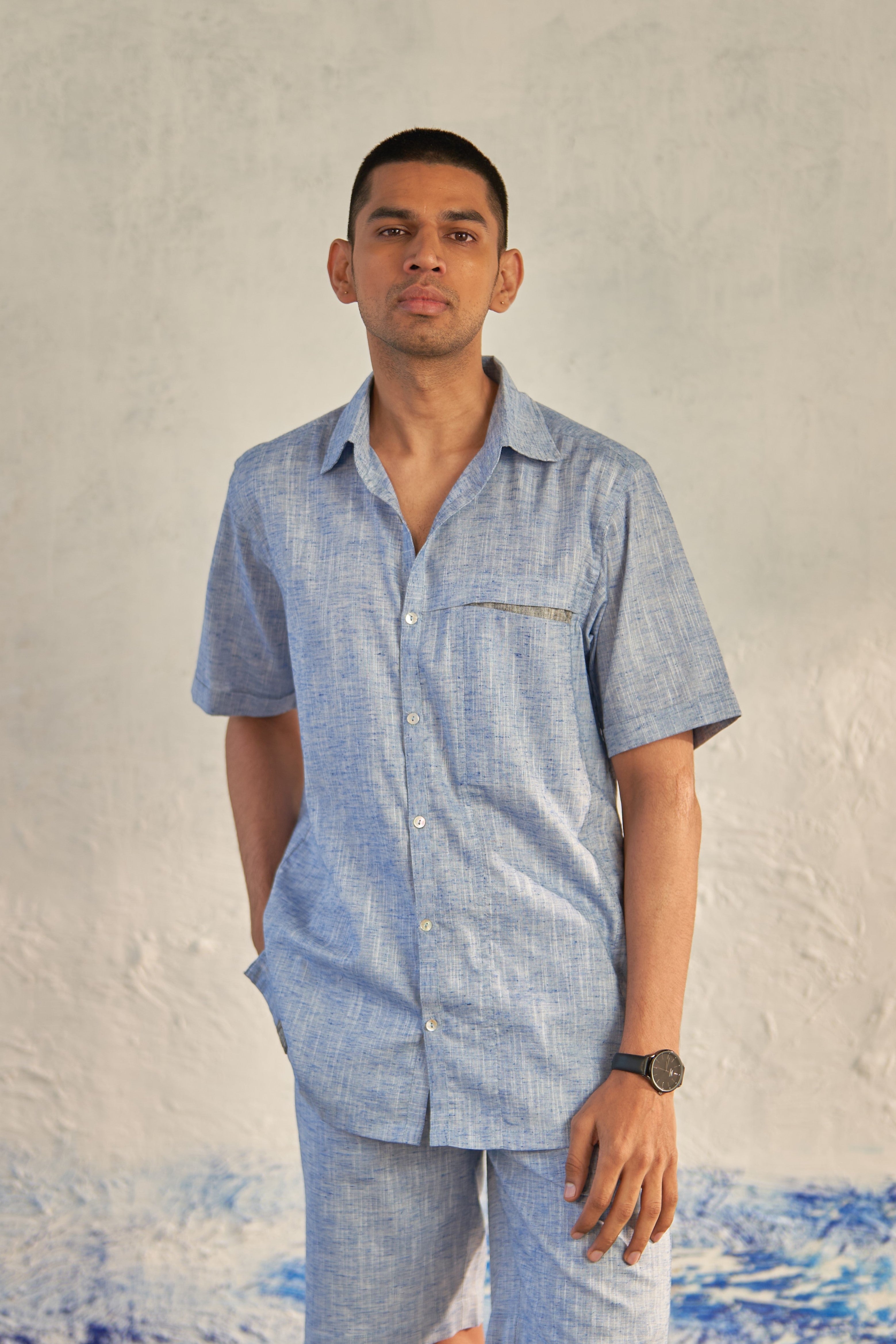 Capture a casual outlook with our Half Sleeves Shirt, designed for effortless style. Featuring our signature pocket style, the front panel boasts distinctive detailing with subtle integration of color hues along the placket, neckline, and pocket.