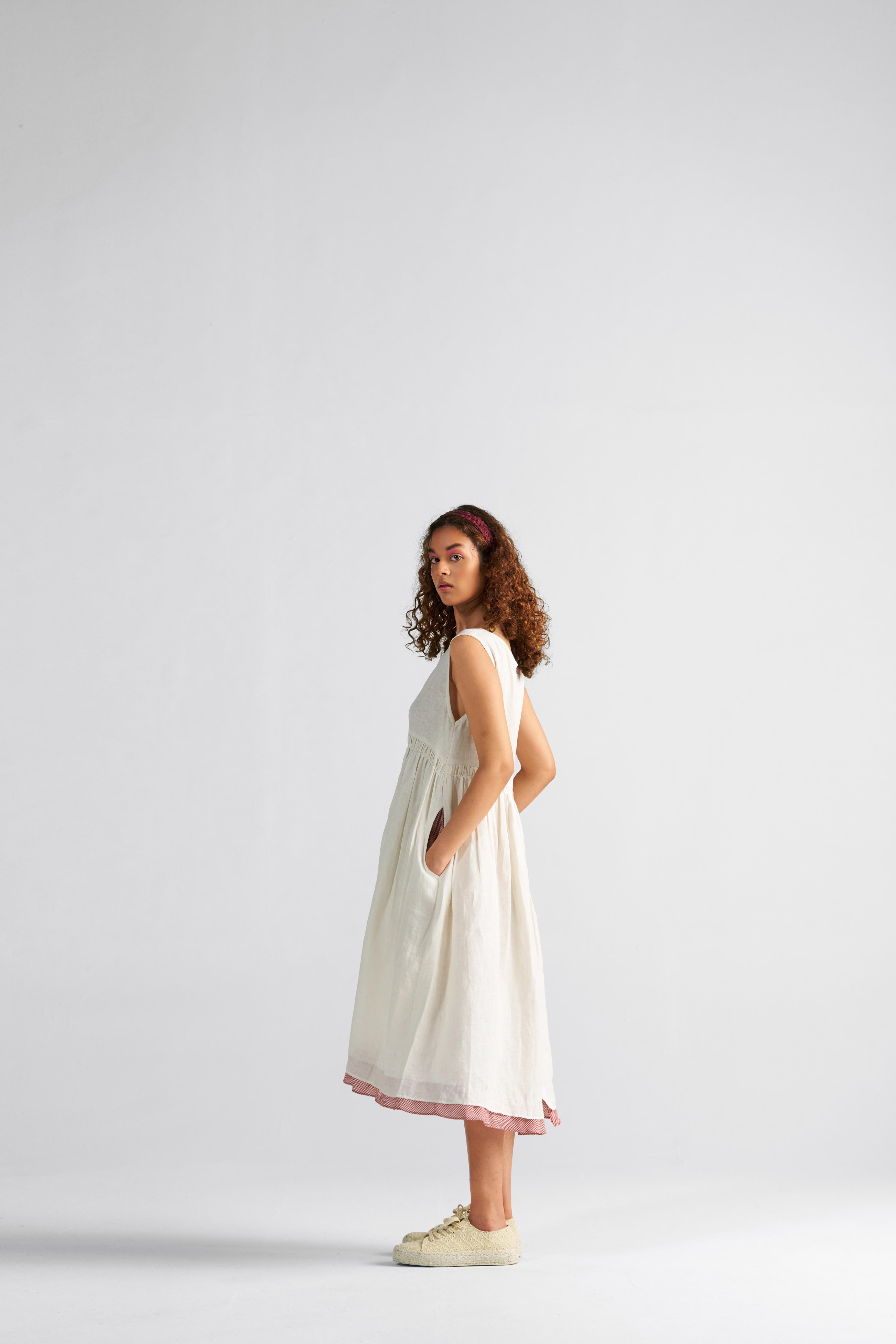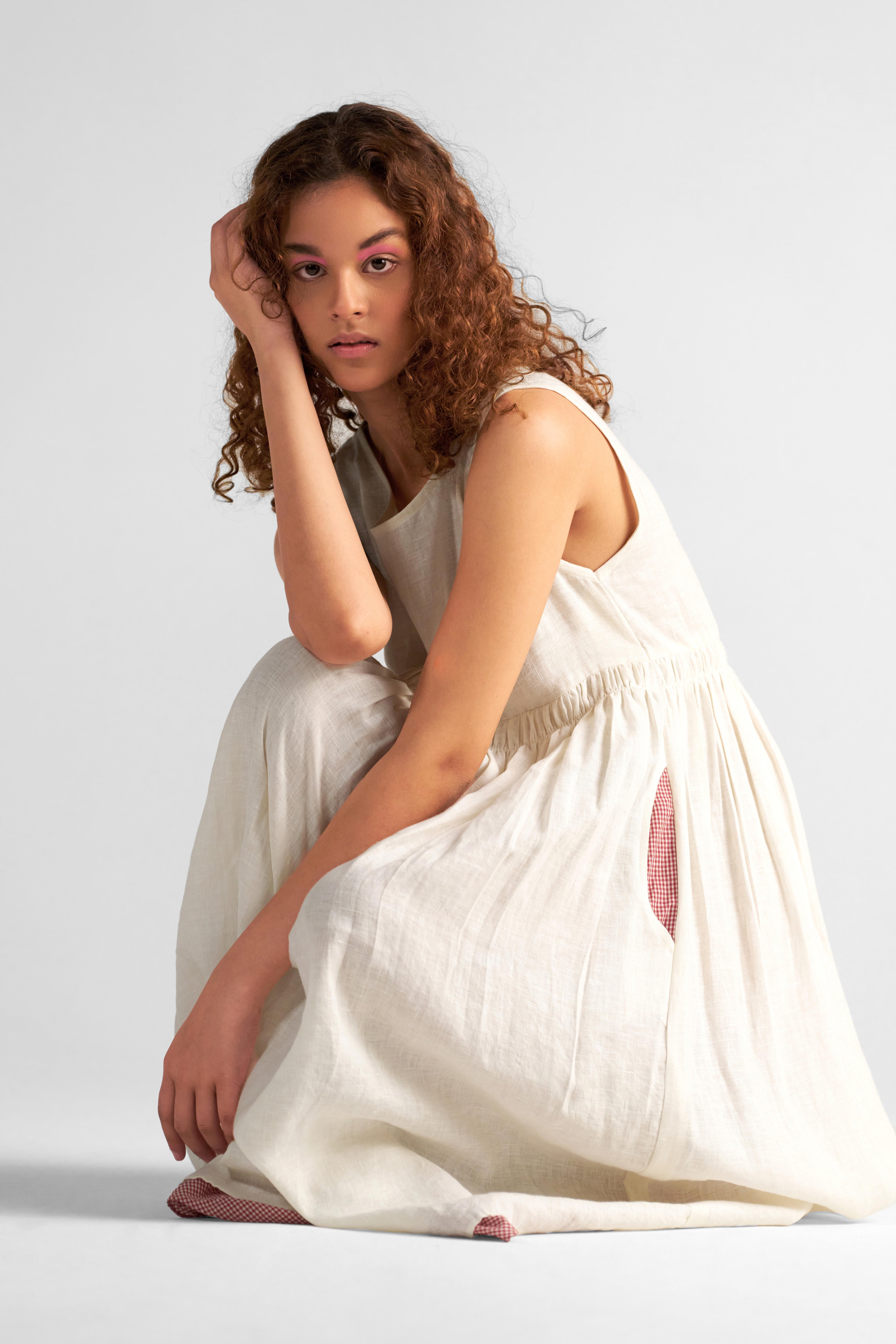 There’s a kind of ease that doesn’t try too hard — it just is. Simply Her is made in that spirit. A fluid silhouette with soft drop shoulders, generous sleeves, and a length that flatters without fuss. Designed to be worn as a dress, or layered open as an overlay — it moves with your mood, your moment. Thoughtfully finished with side pockets (because we never forget them), it’s stitched in both breathable linens and handwoven cottons — solids, stripes, and grids that carry quiet character. It doesn’t ask for attention. It simply holds its own.