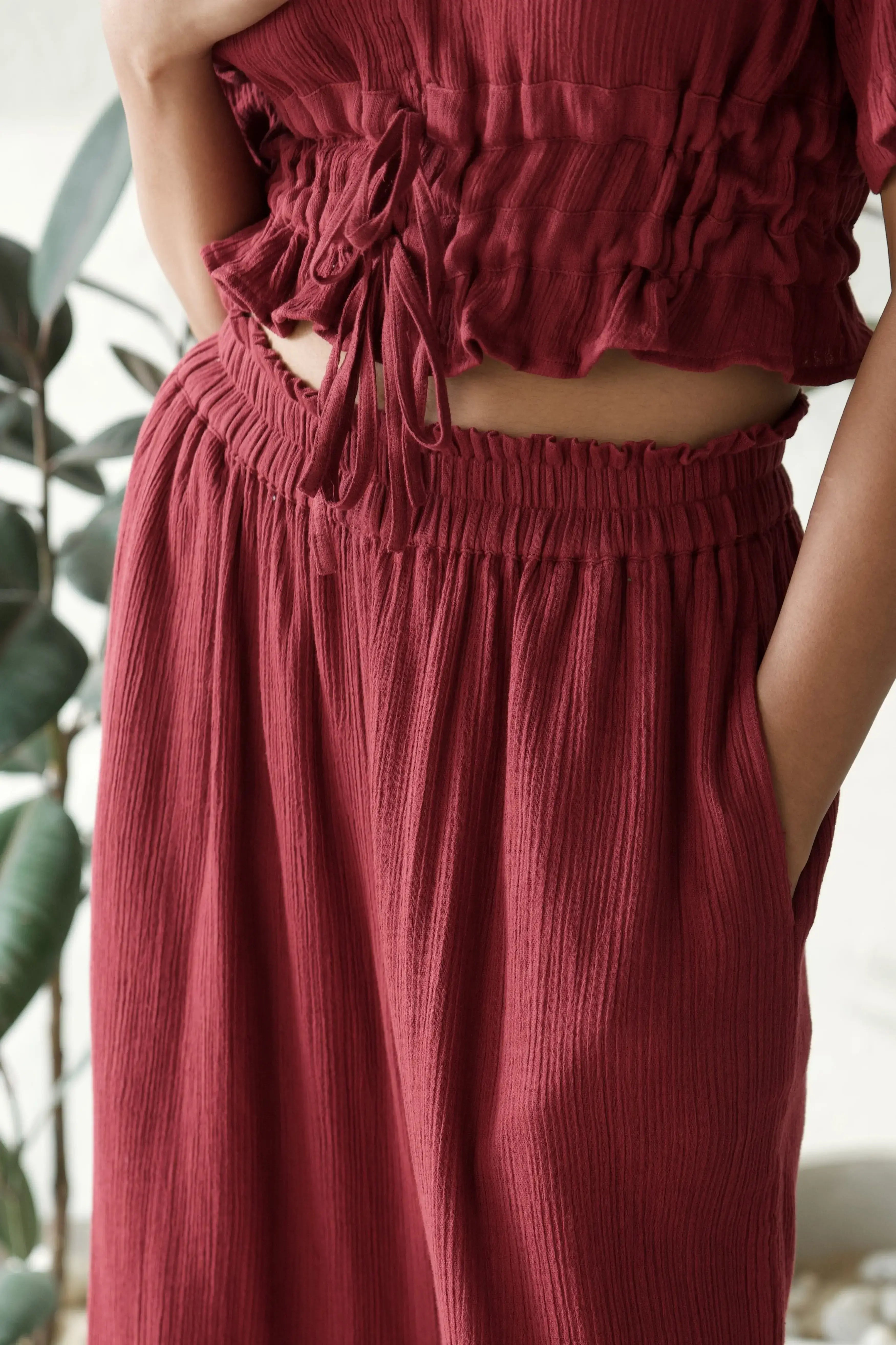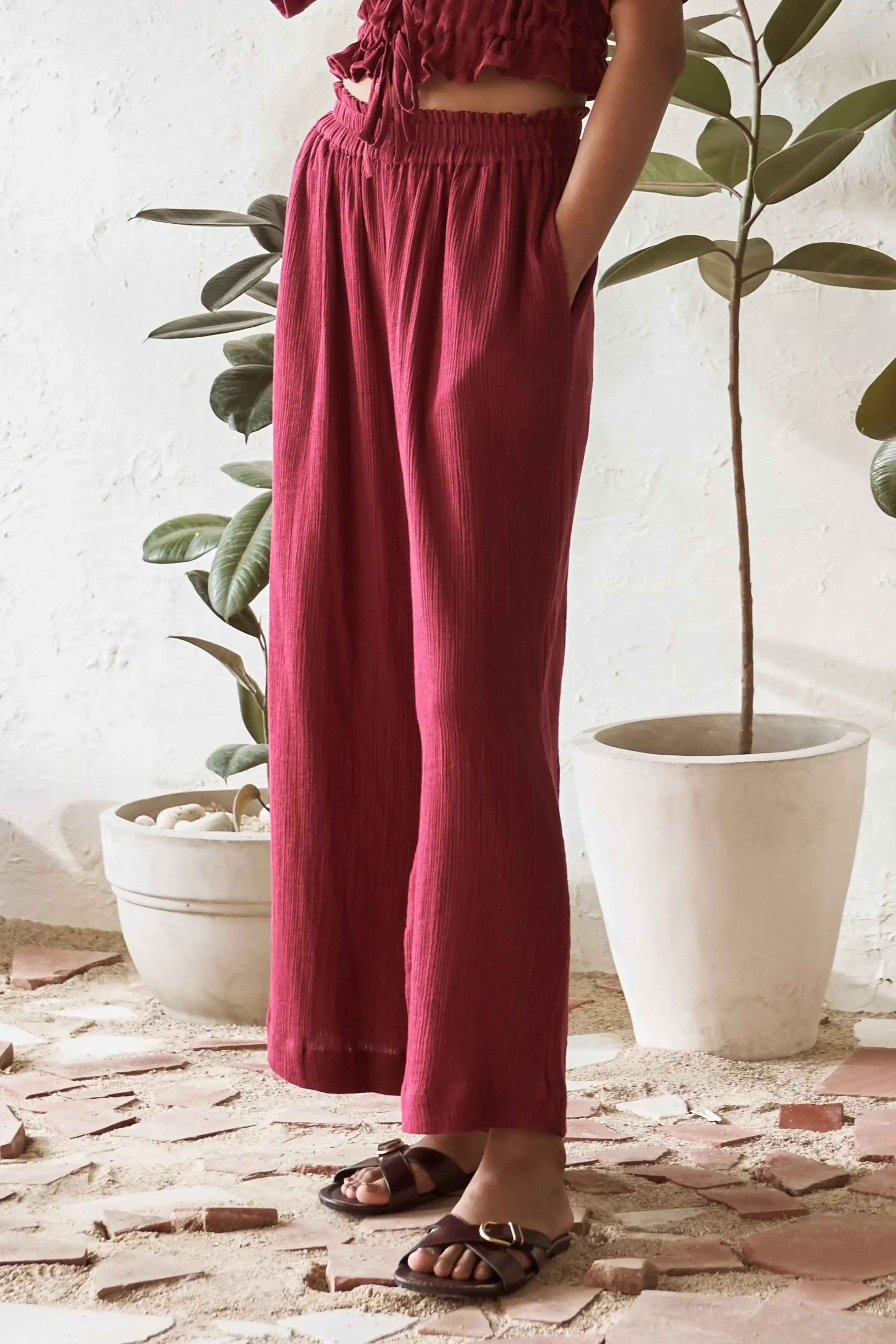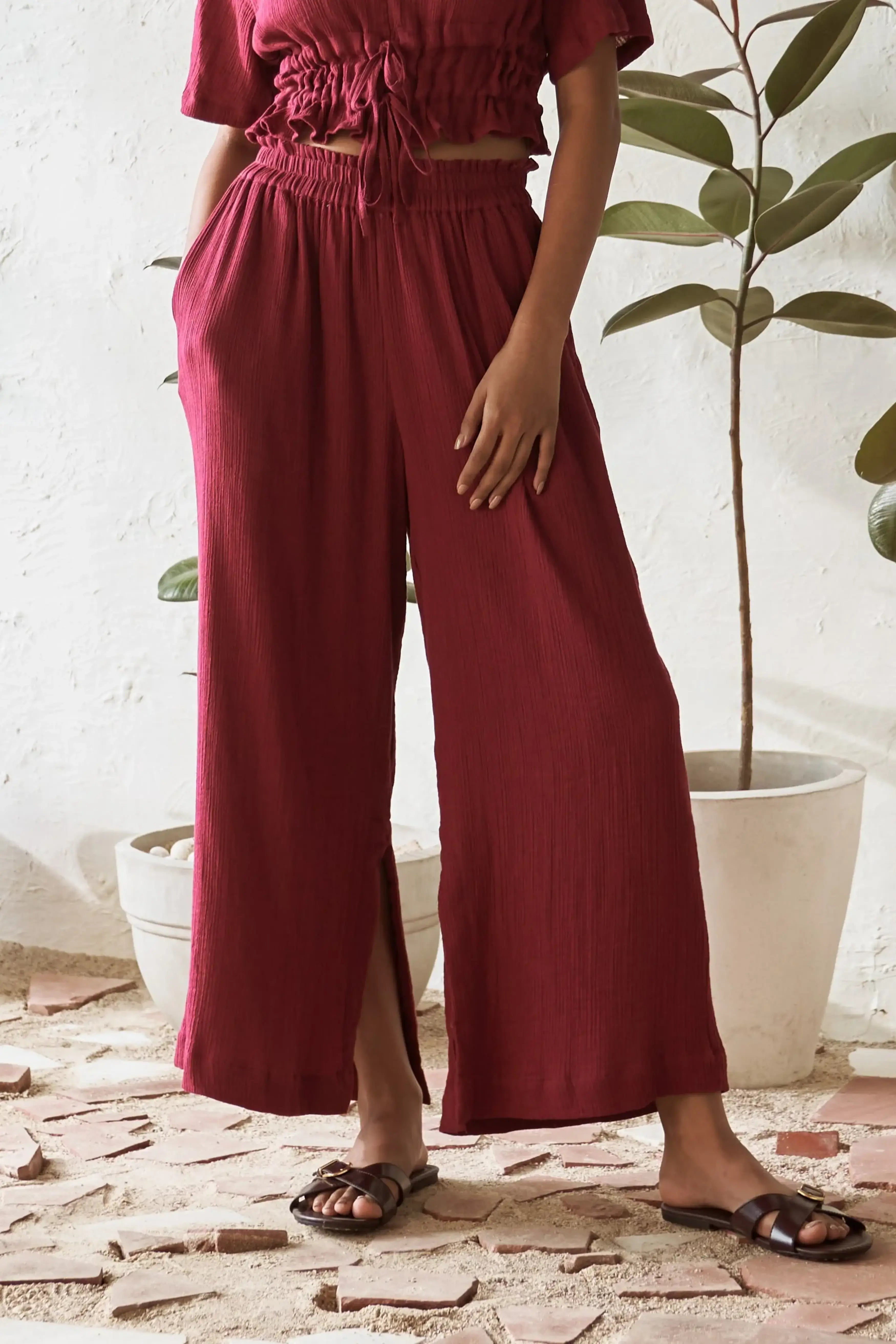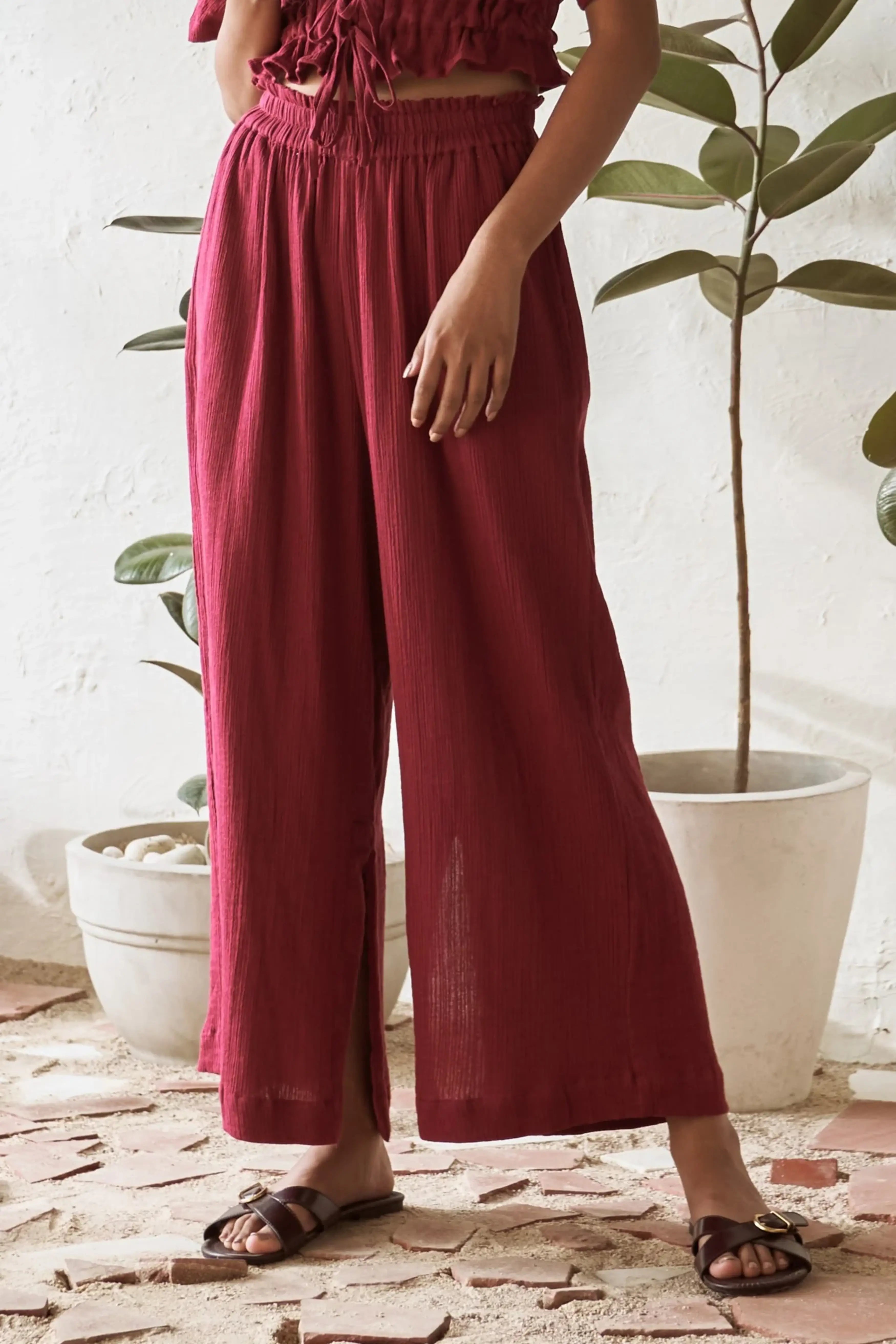 Add a pop of color to your wardrobe with the Spice Lily Pants in bold crimson. Designed with fashionable side slits, these pants offer versatile styling options, making them perfect for pairing with any tank top or mixing with different pieces. The elasticated waistband ensures a comfortable fit, while the side pockets add practicality to these stylish pants. Whether you're aiming for a casual or chic look, the Spice Lily Pants provide ultimate comfort and endless possibilities for creating standout outfits.