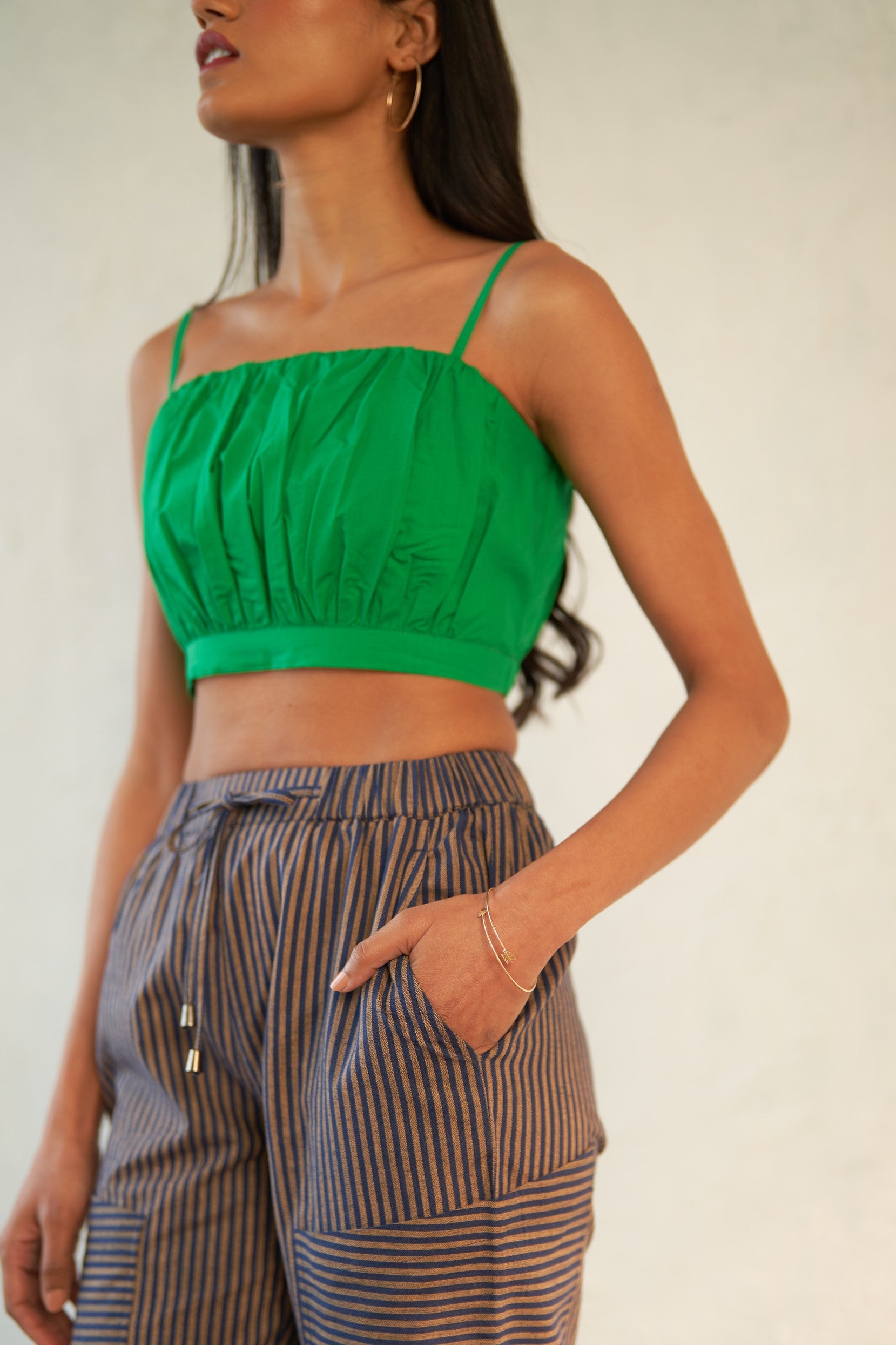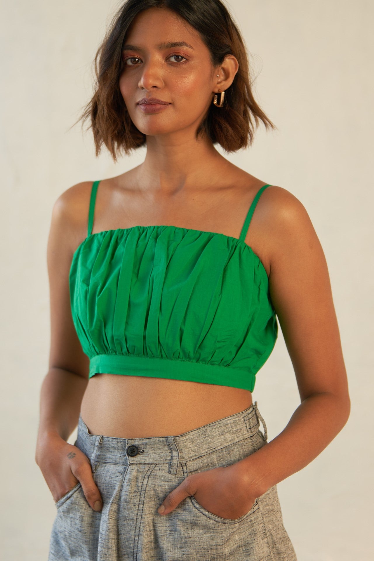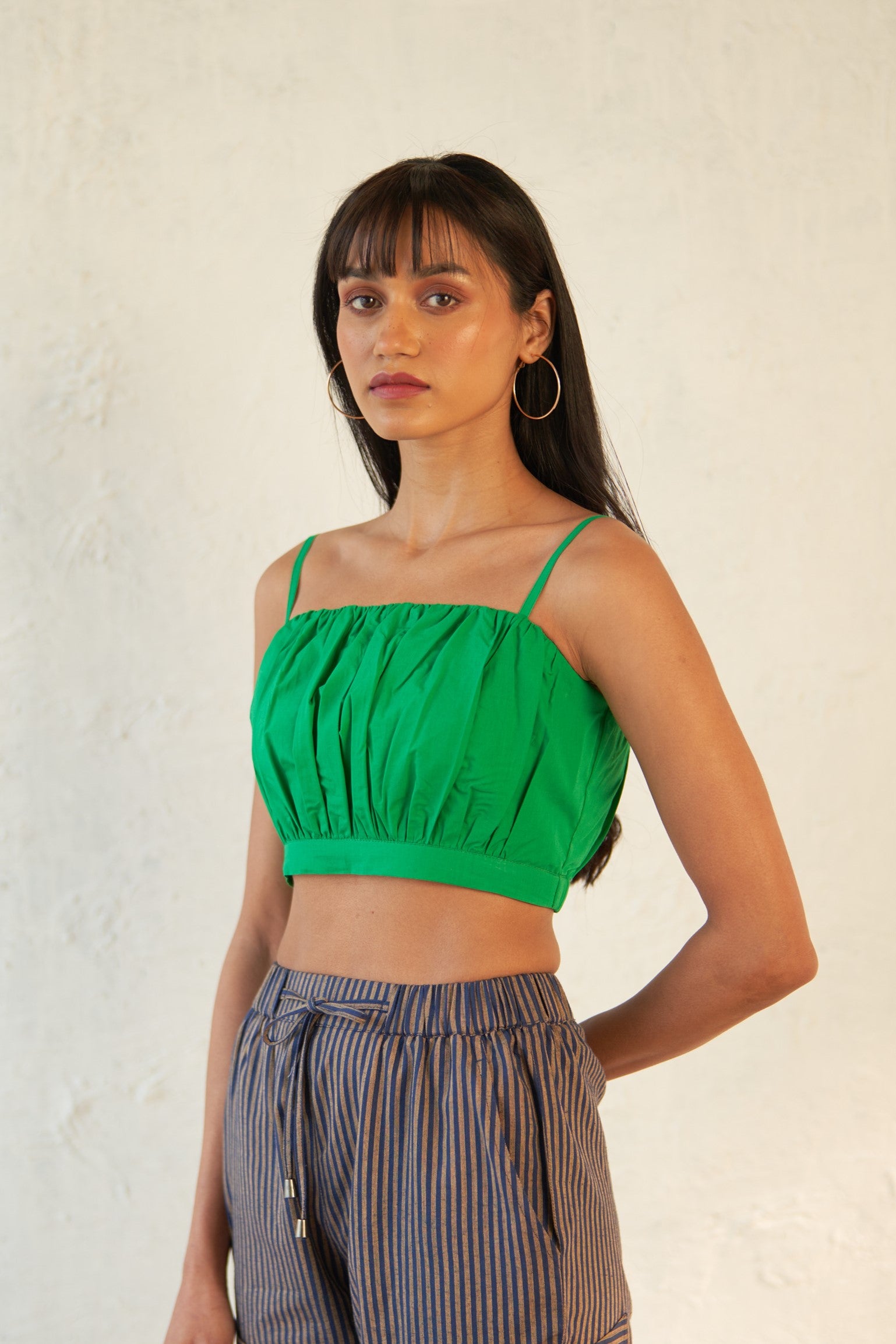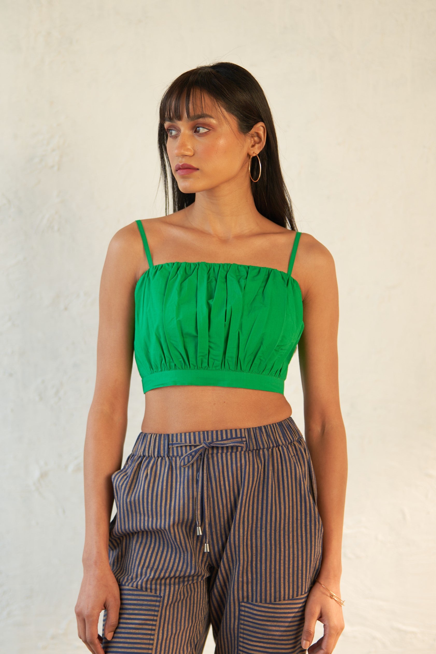 Designed to hug your figure, this top crops just under the bust, gathering artfully along the way with folds and tucks that lend an effortlessly polished look. Boasting adjustable straps and an elasticated back, it ensures easy wearability, effortlessly pulled on for any outing.