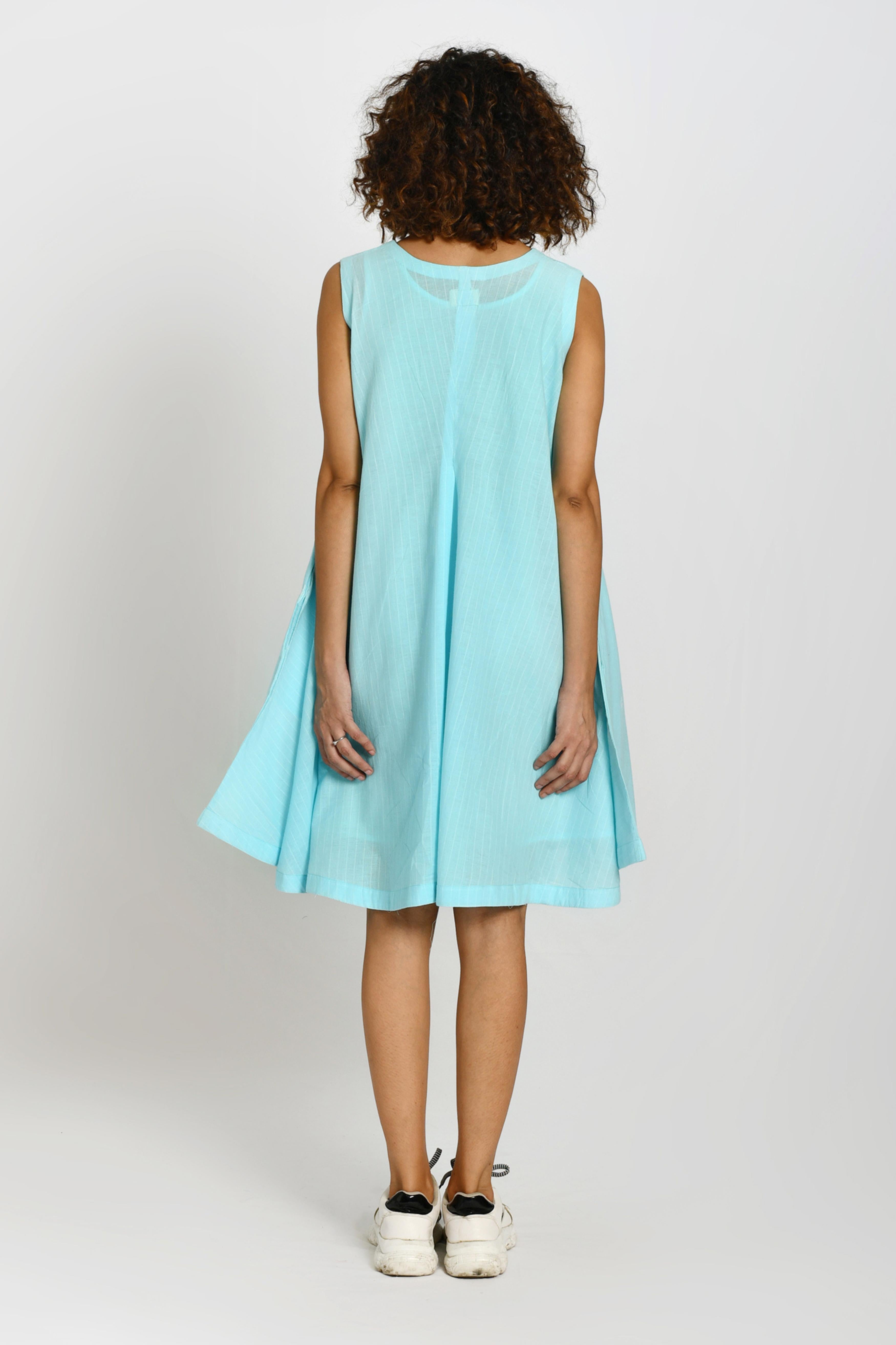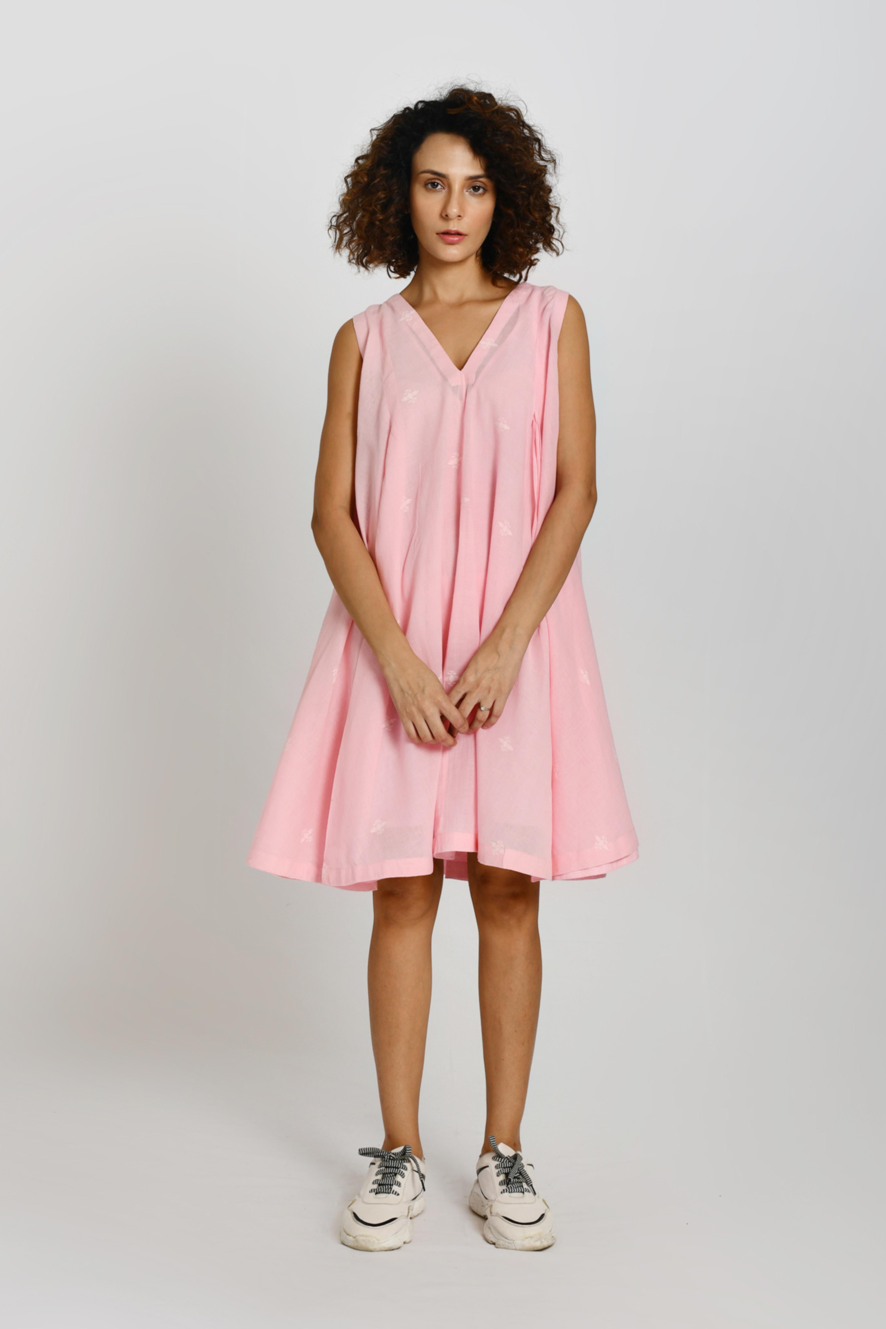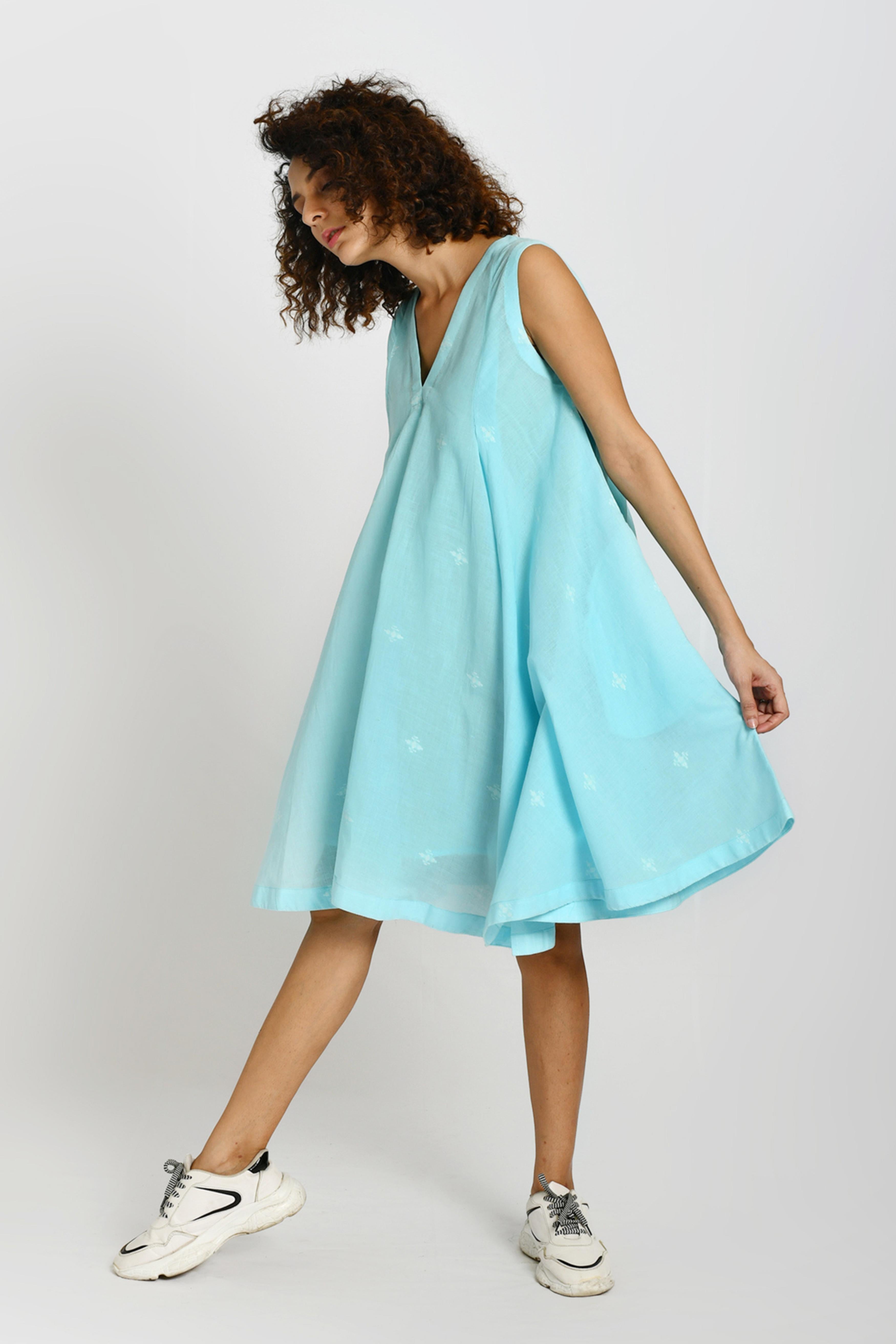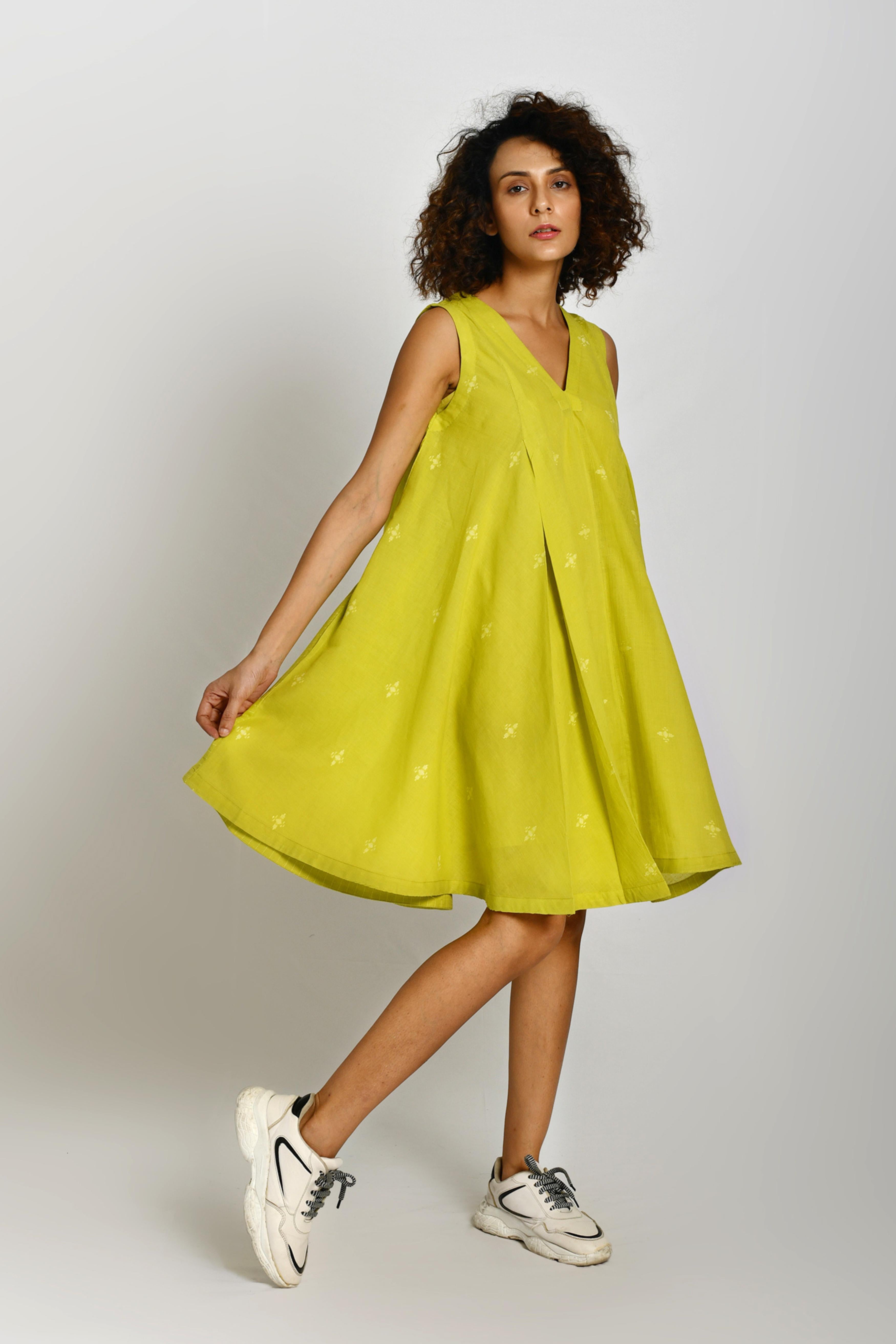 We present a stunning knee-length dress in 3 charming hueS, crafted with care and artistry. This exquisite dress features intricate hand-spun and hand-woven cotton fabric, showcasing the timeless beauty of jamdani craftsmanship. With its box pleats enhancing both the front and back, this dress offers a flattering silhouette that effortlessly blends style and comfort.