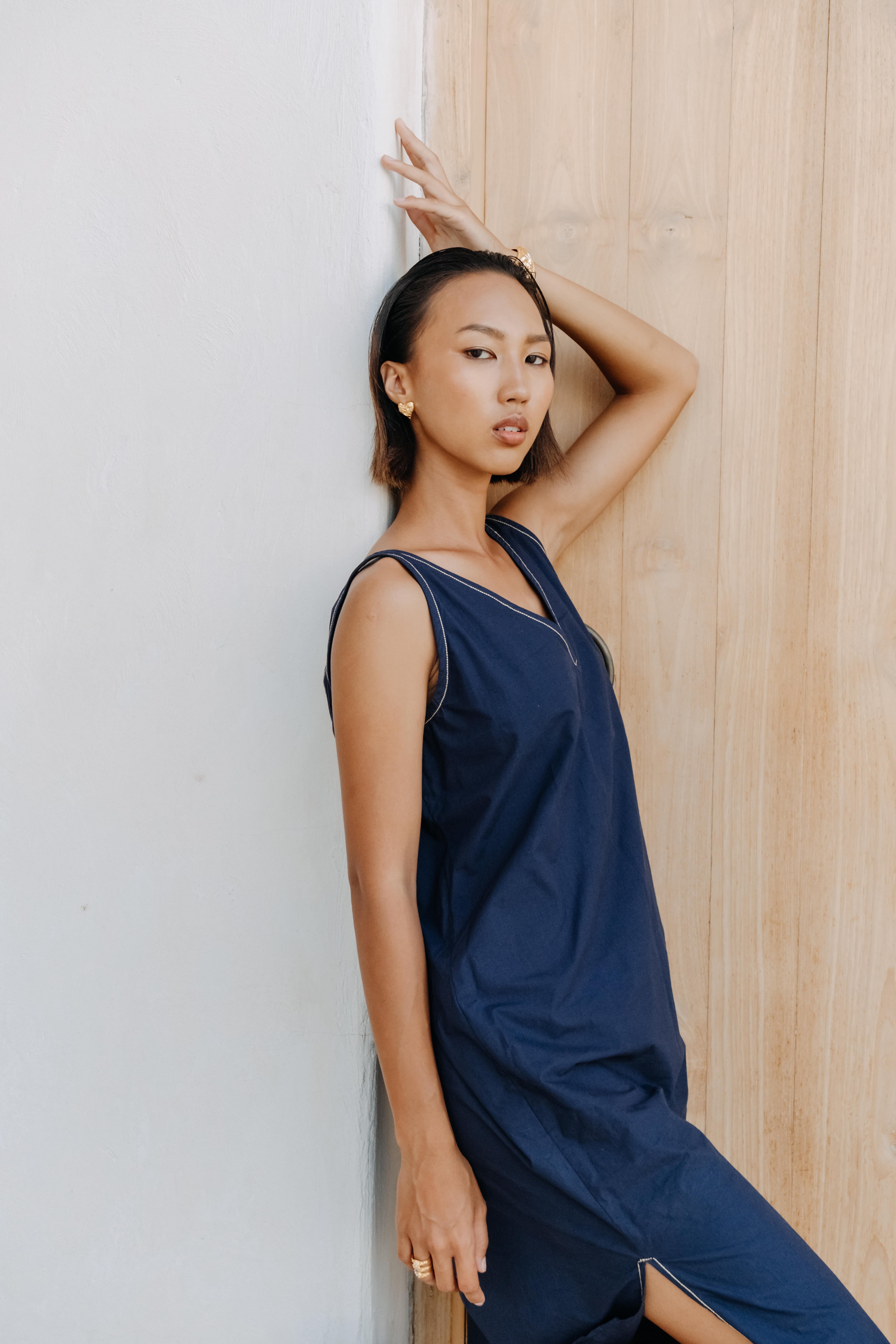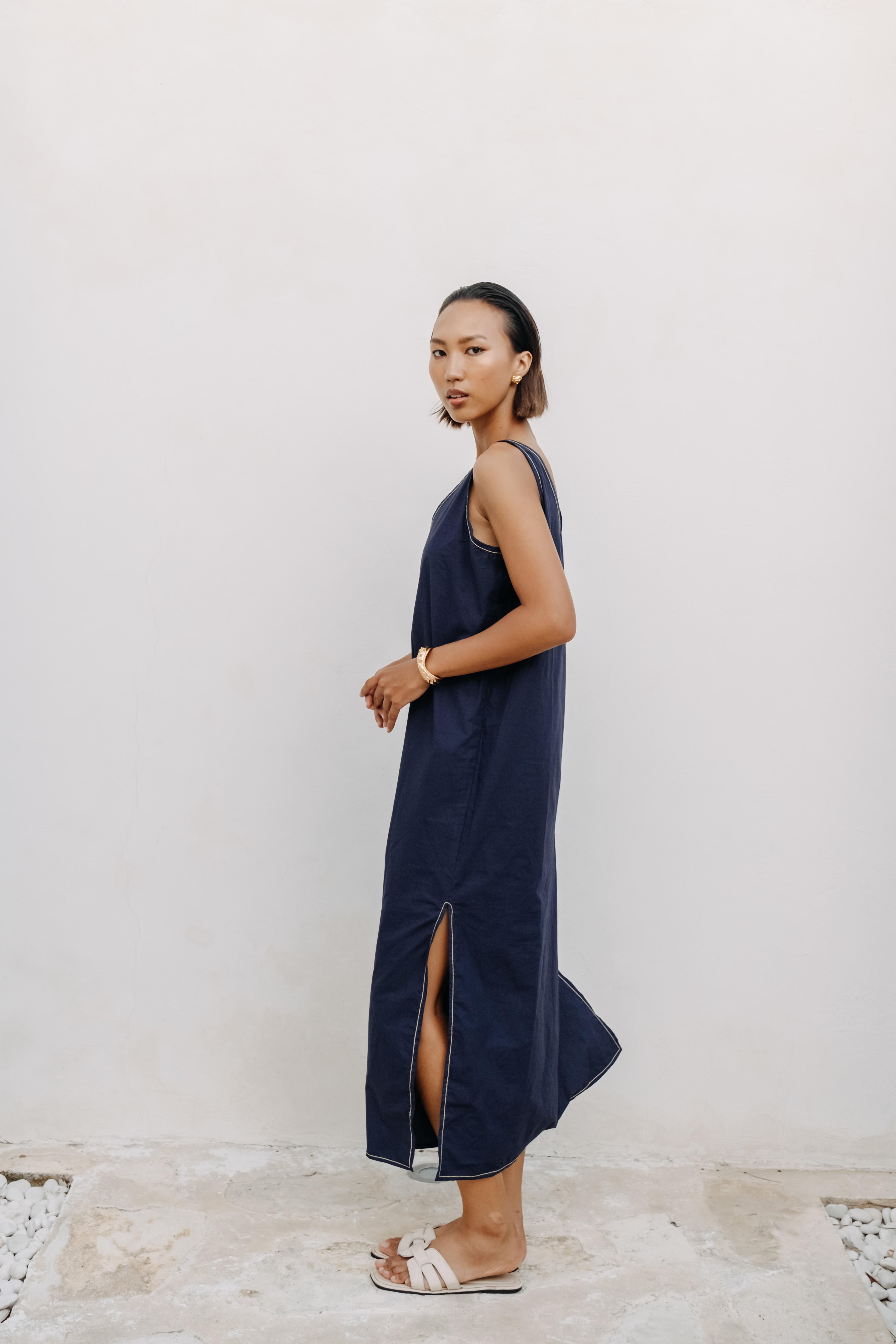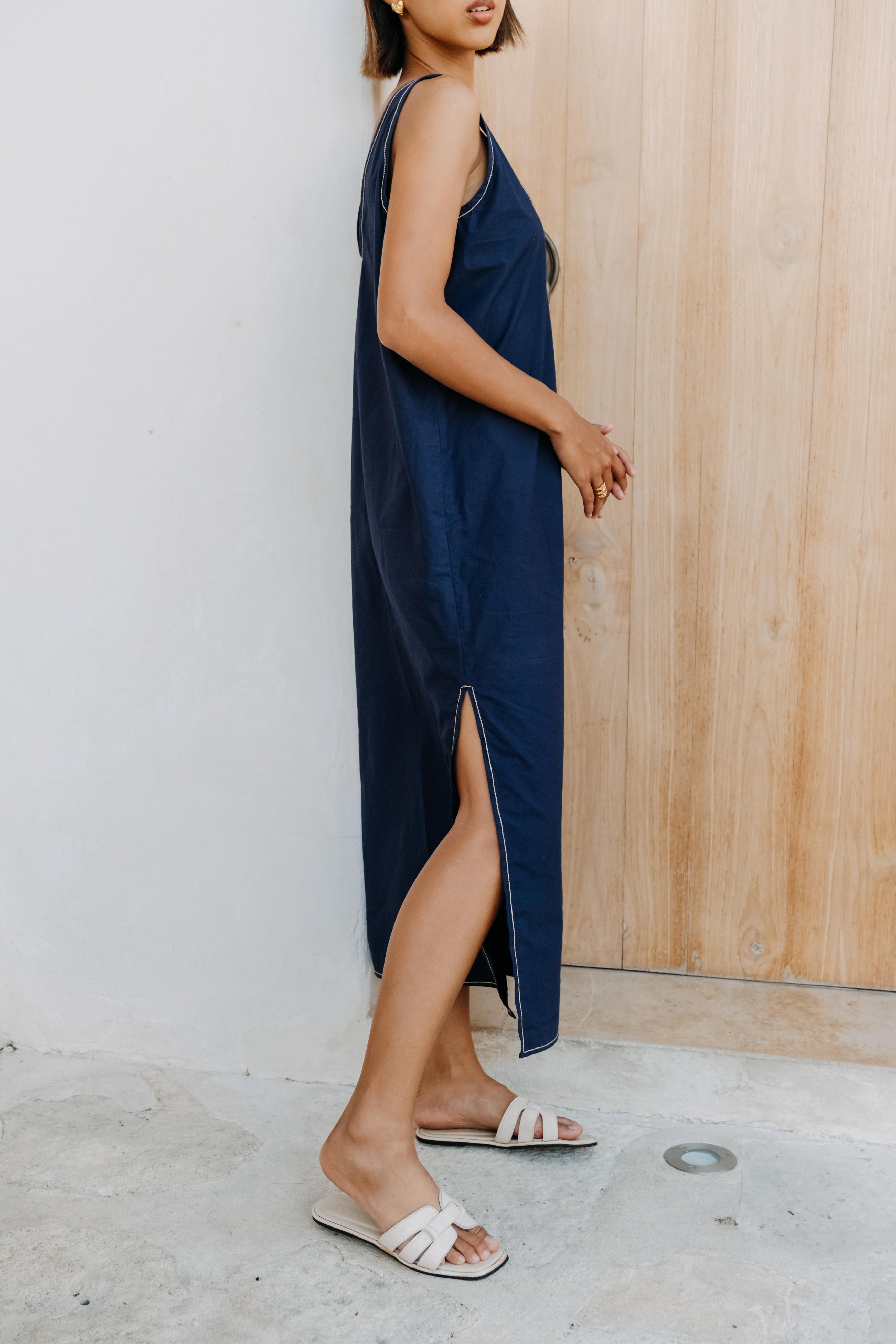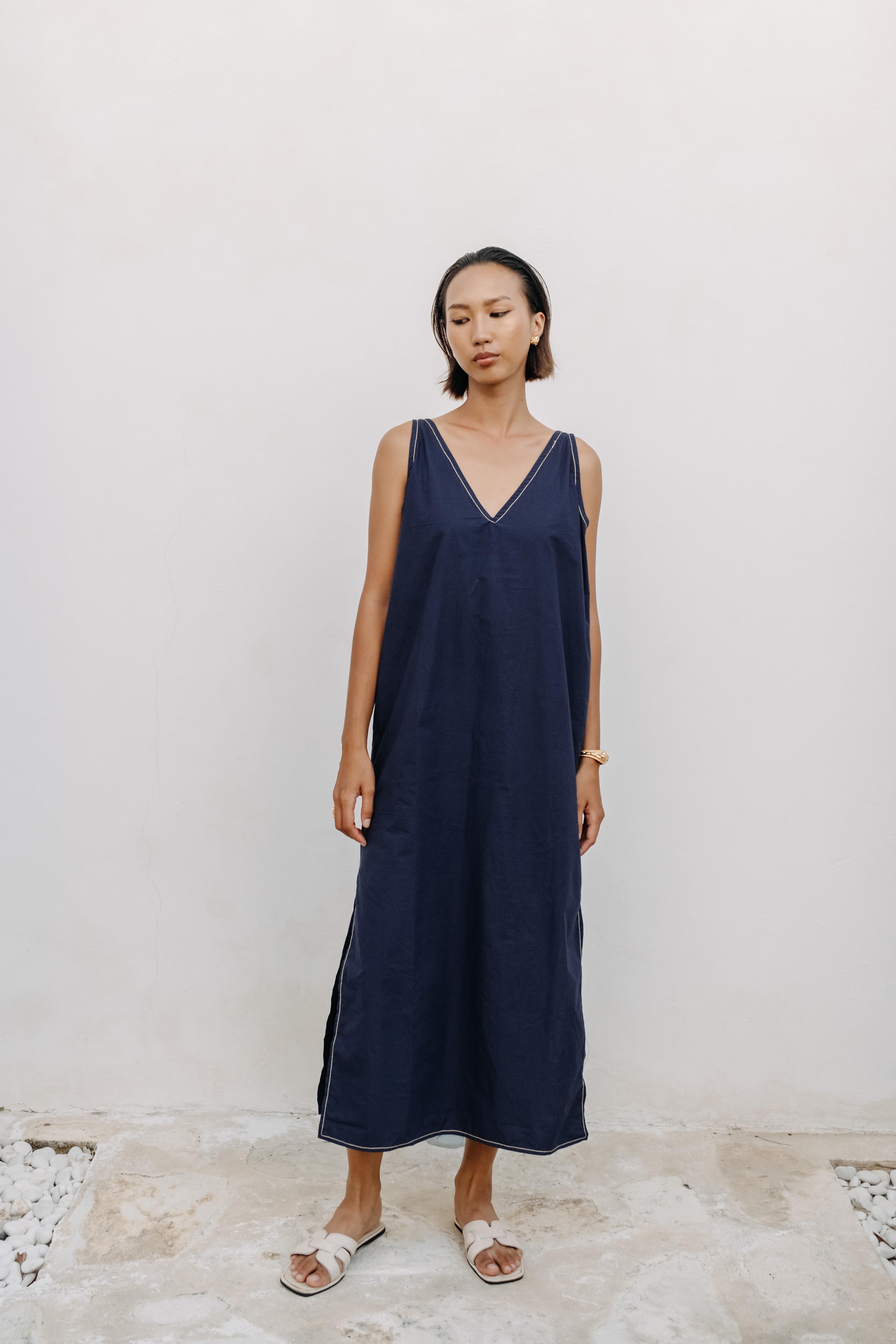 Classic A-line Slip Dress with v-neck and inseam pockets featuring contrast stitching detail on the seam lines of the dress. Relax in the natural charm of Nature's Symmetry - our handmade relaxed dress for your phenomenal everyday. This product will be exclusively handcrafted for you, making the pattern/texture/color slightly vary from the image shown, due to multiple artisan led techniques and processes involved. Color may also slightly vary due to photographic lighting sources. Length: 48"