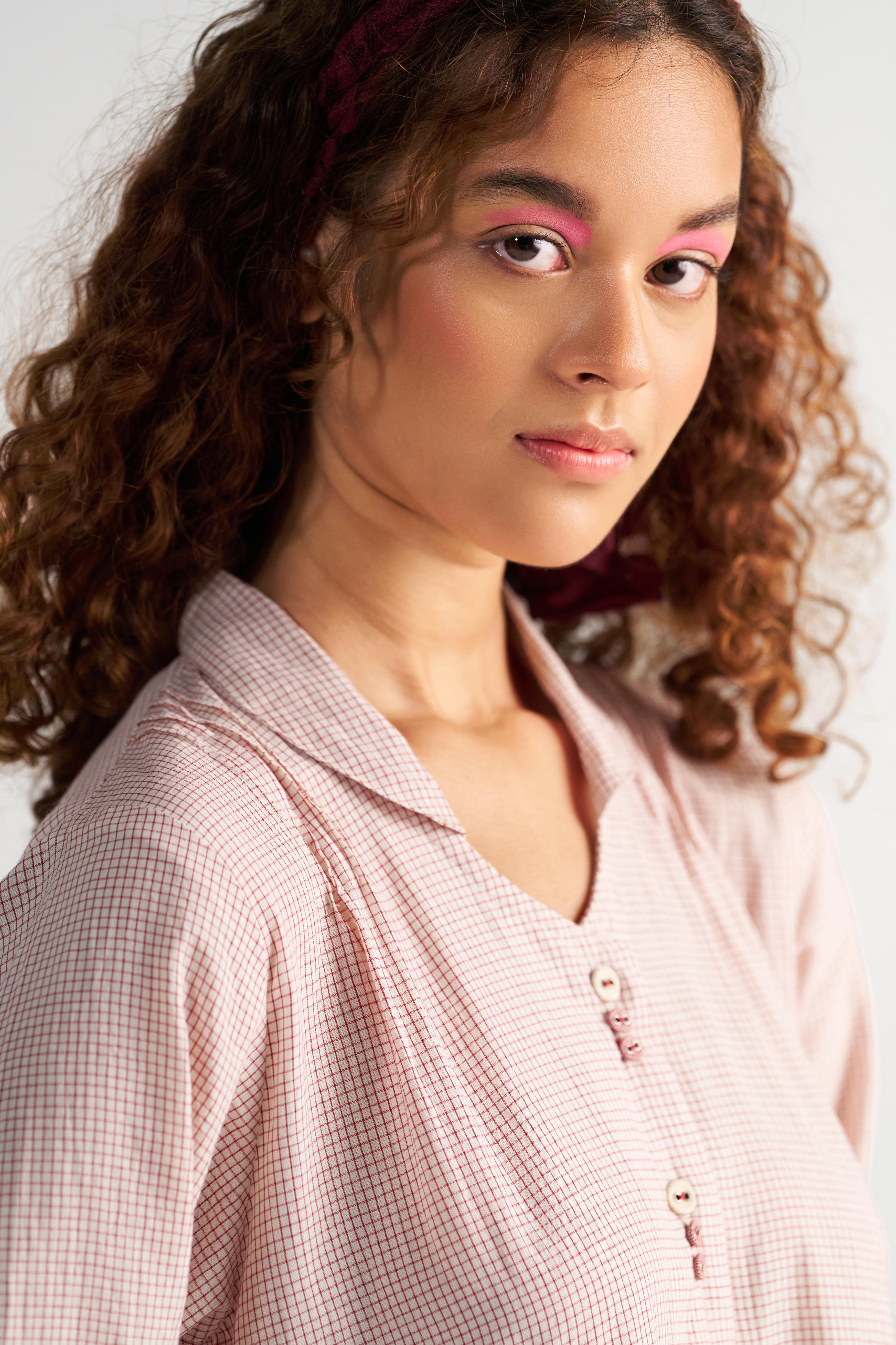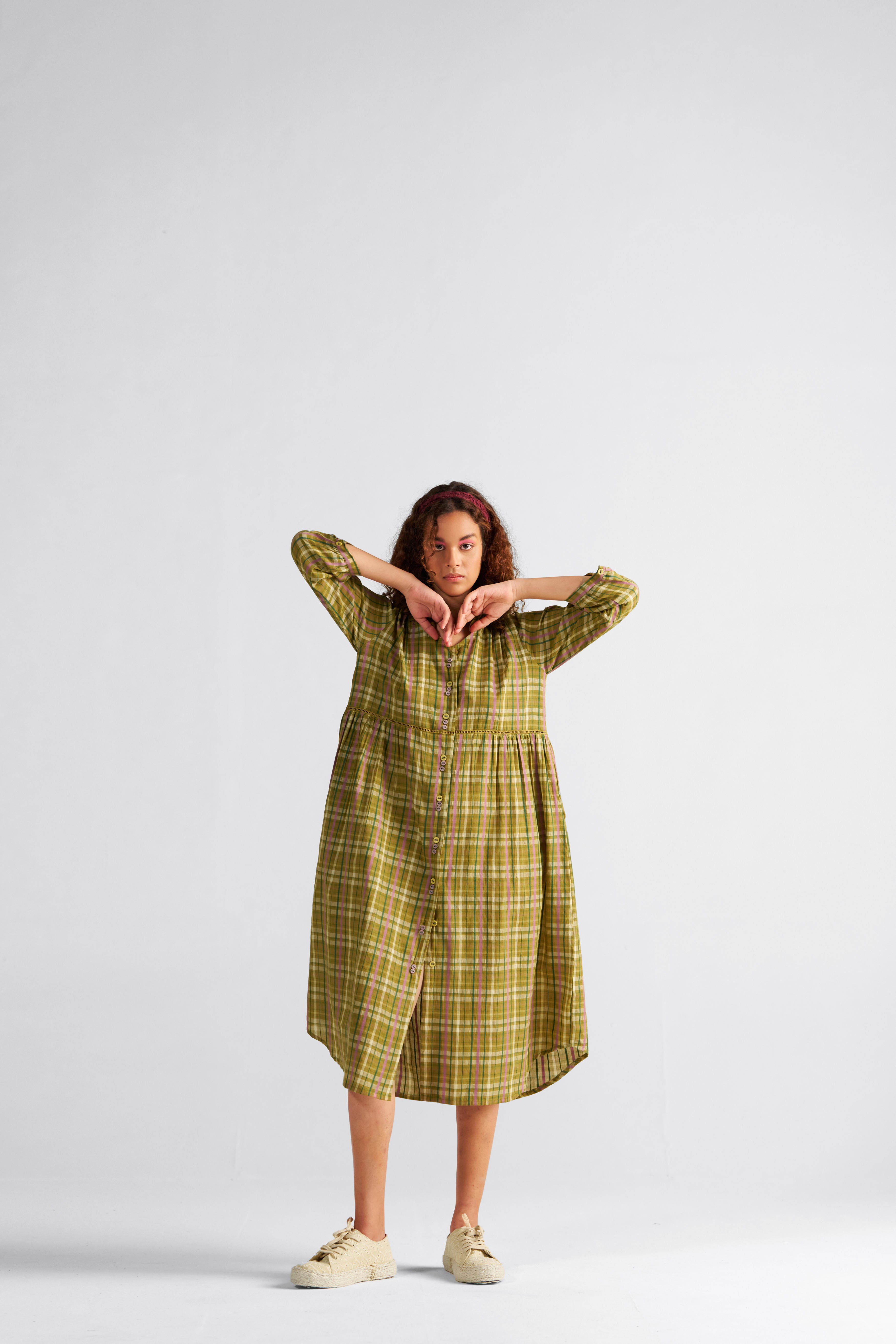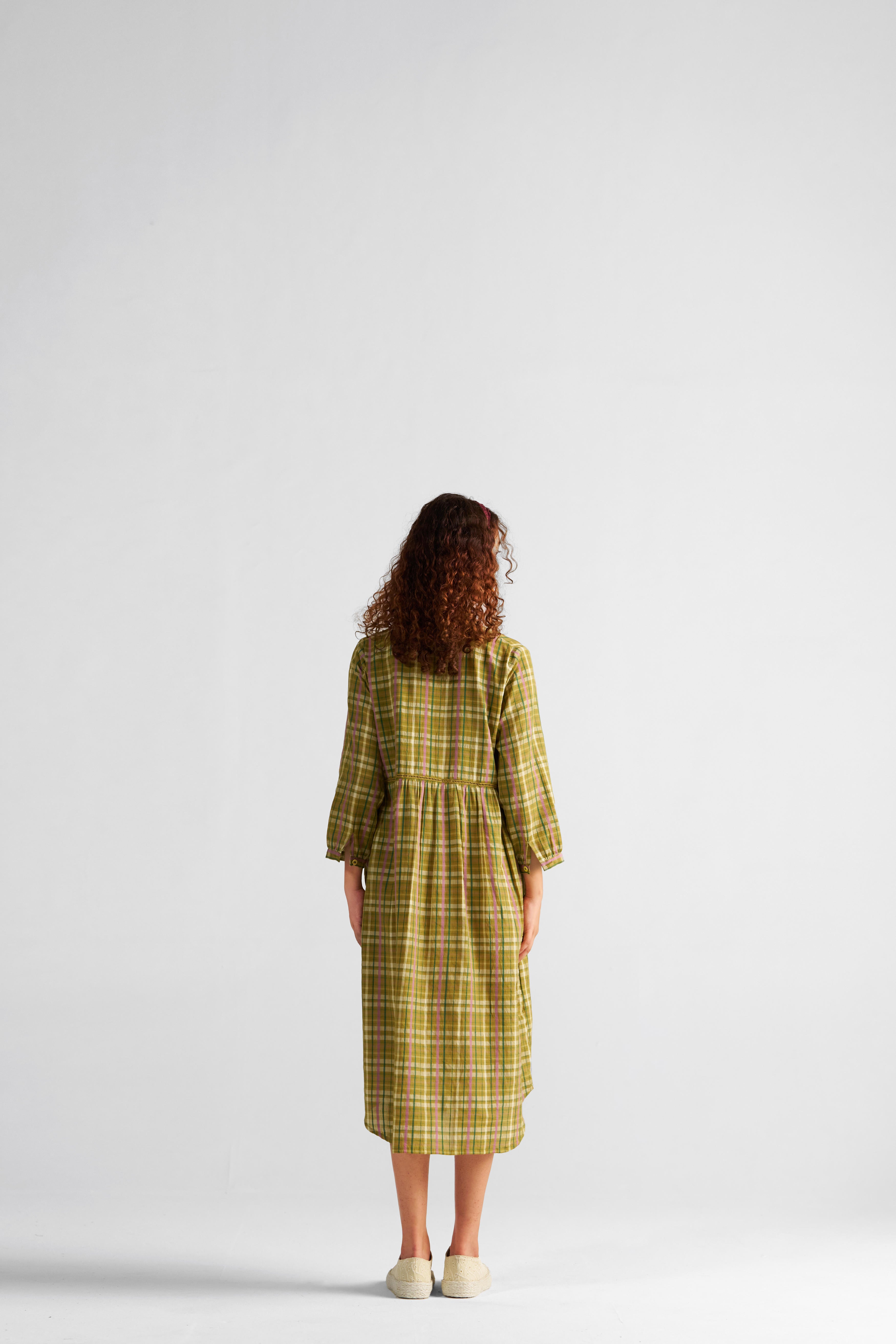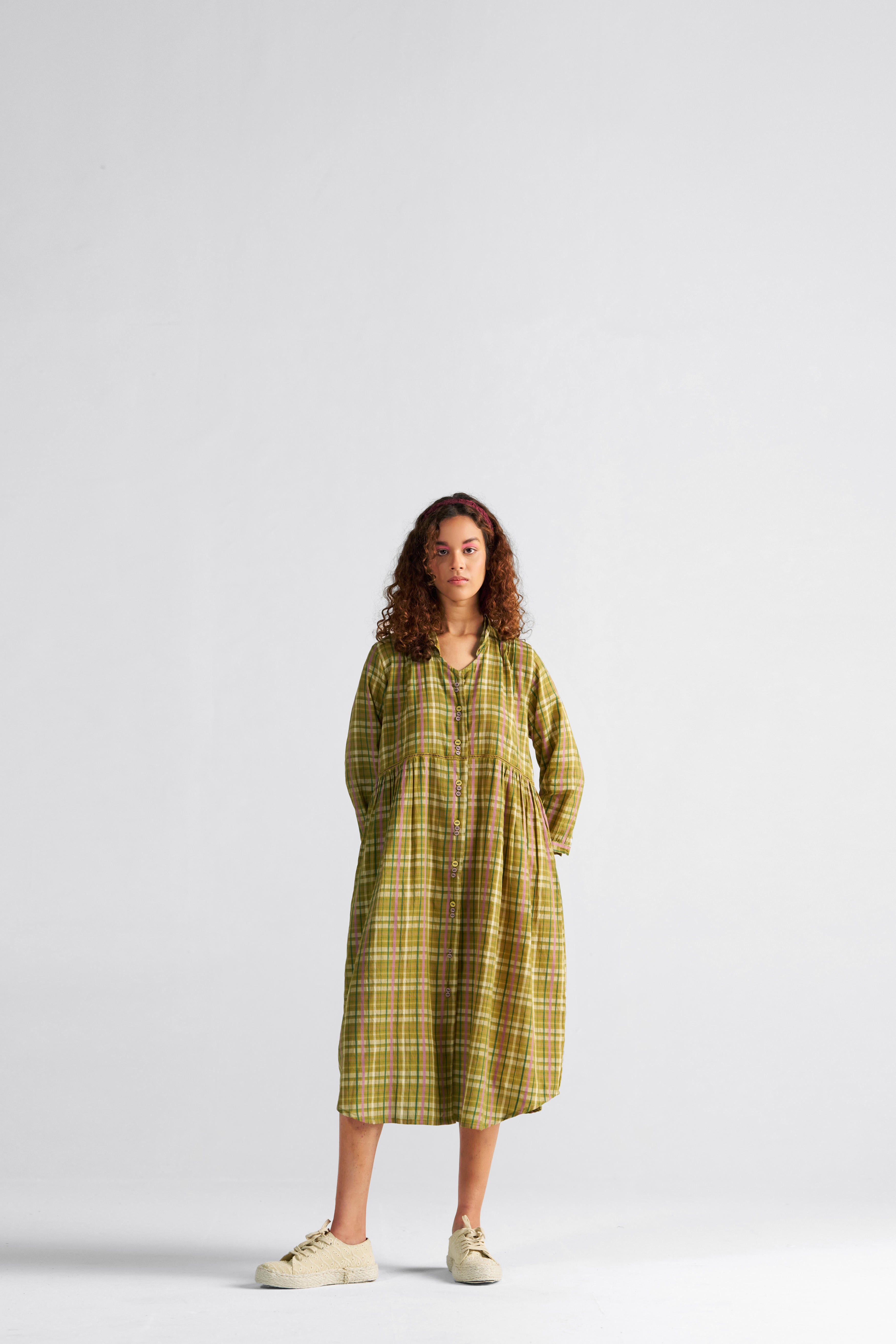 A dress? An overlay? Both. Table for Two plays double duty — button it up for a breezy, all-day dress, or leave it open as a charming overlay. Designed with soft gathers, playful handwoven checks and stripes, and that gentle collar you’ll keep noticing in the mirror. And yes, it has pockets!