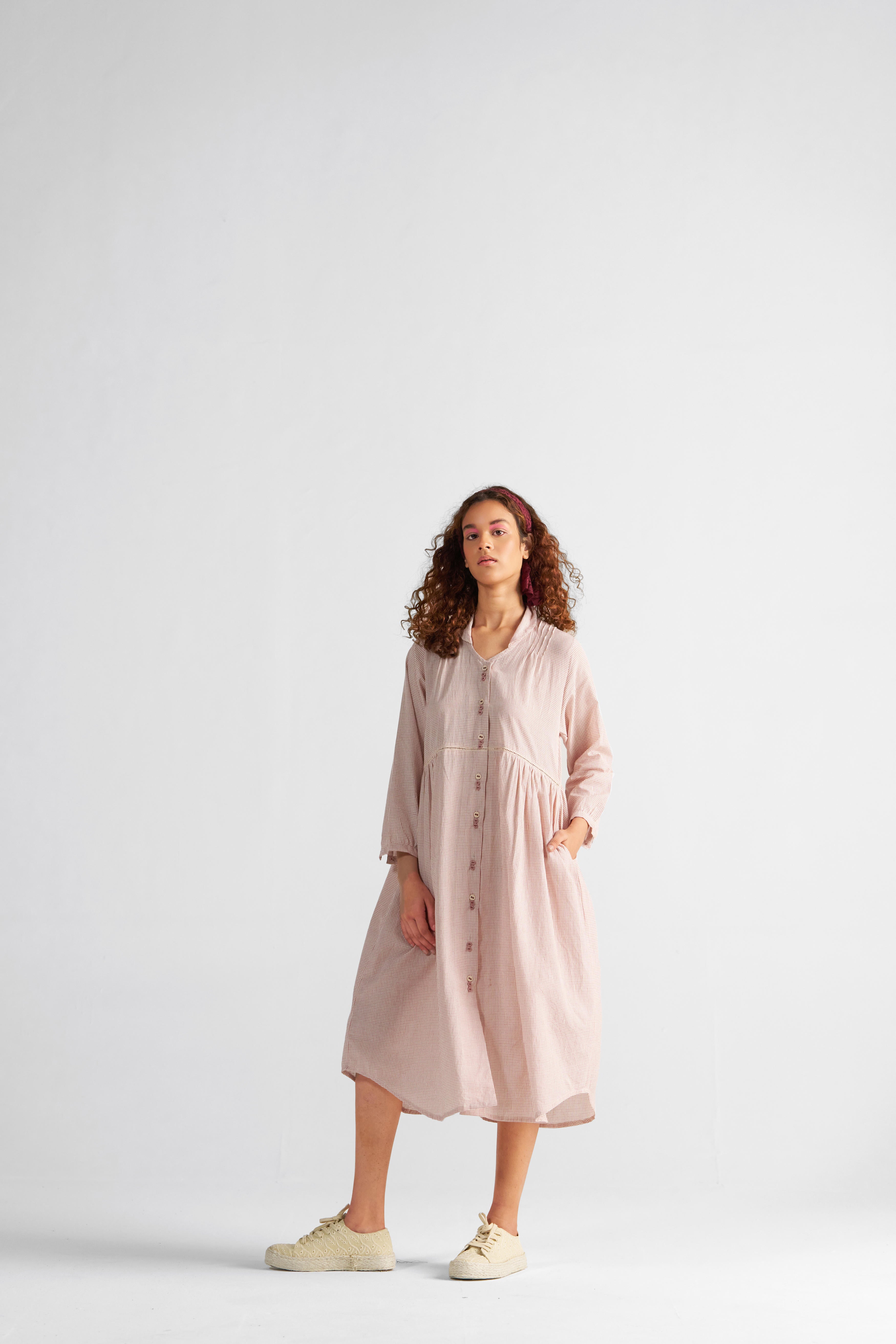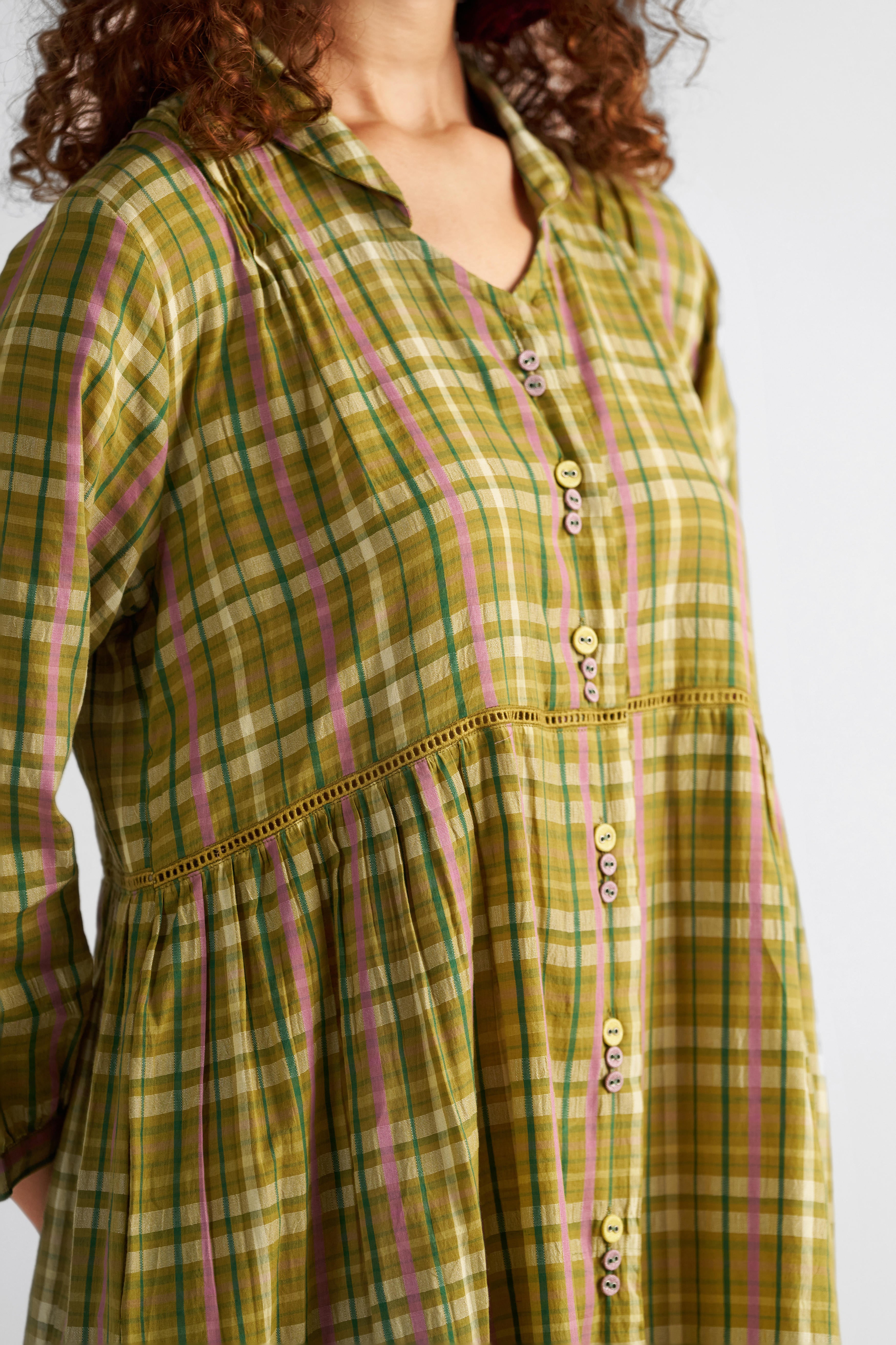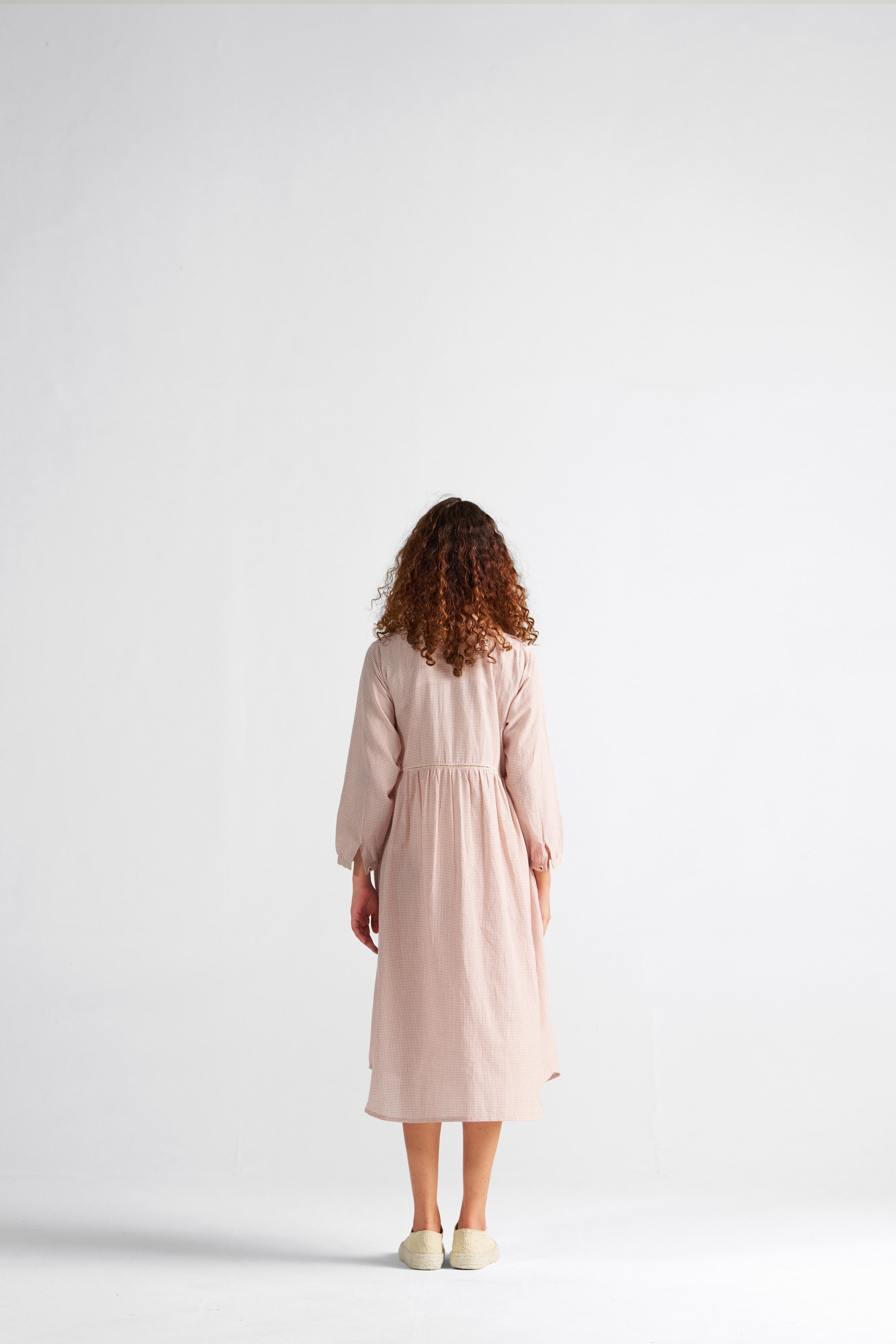 A dress? An overlay? Both. Table for Two plays double duty — button it up for a breezy, all-day dress, or leave it open as a charming overlay. Designed with soft gathers, playful handwoven checks and stripes, and that gentle collar you’ll keep noticing in the mirror. And yes, it has pockets!