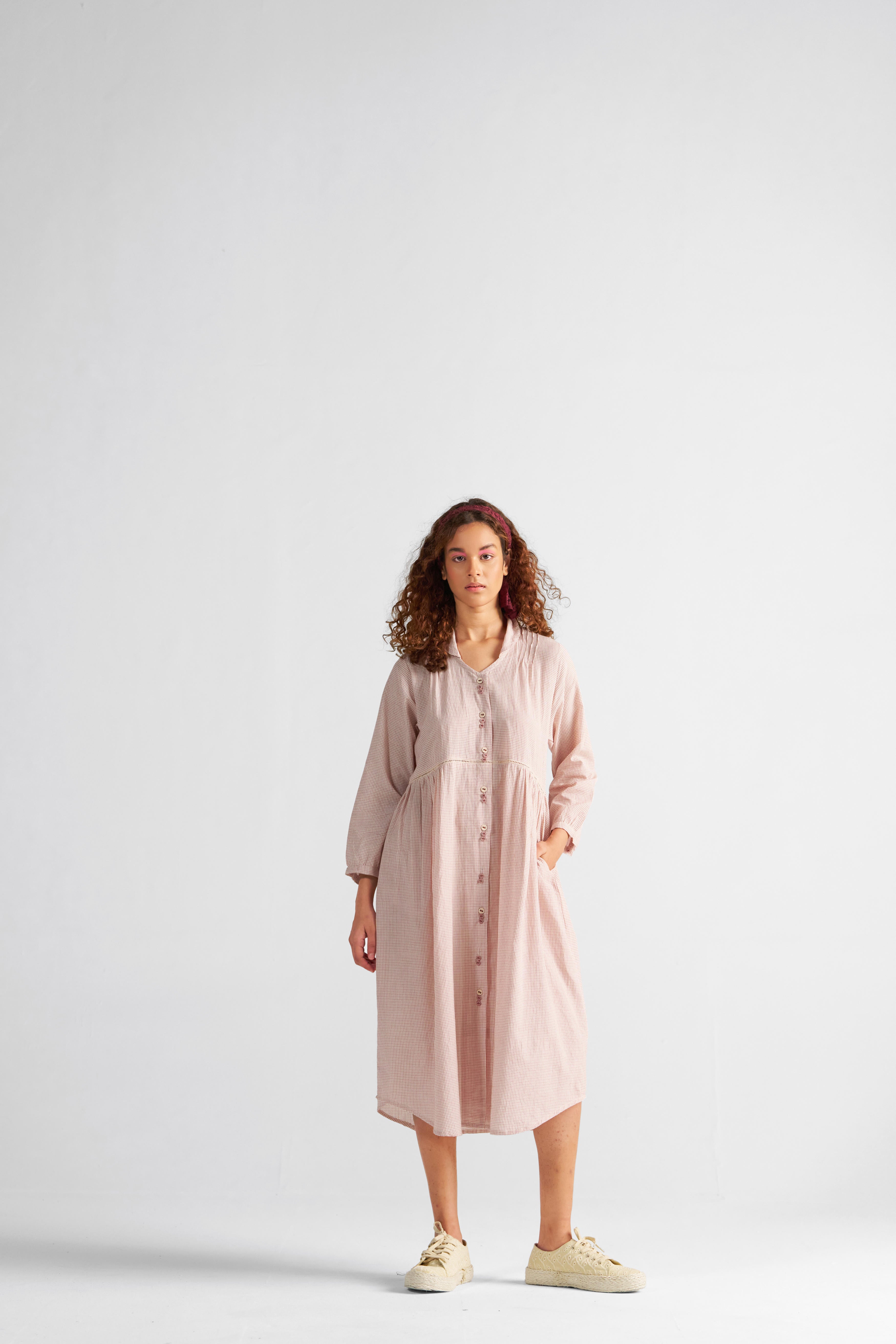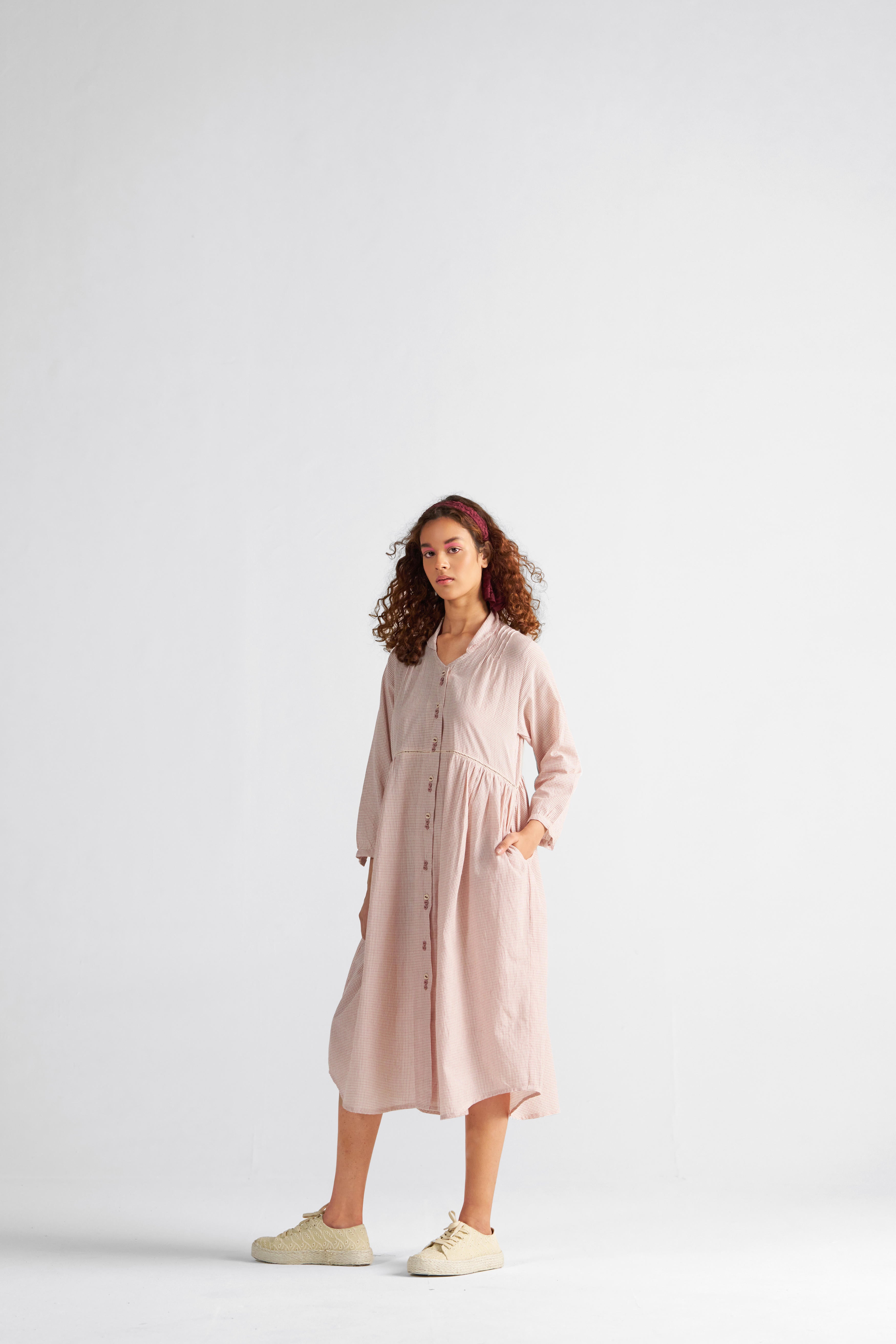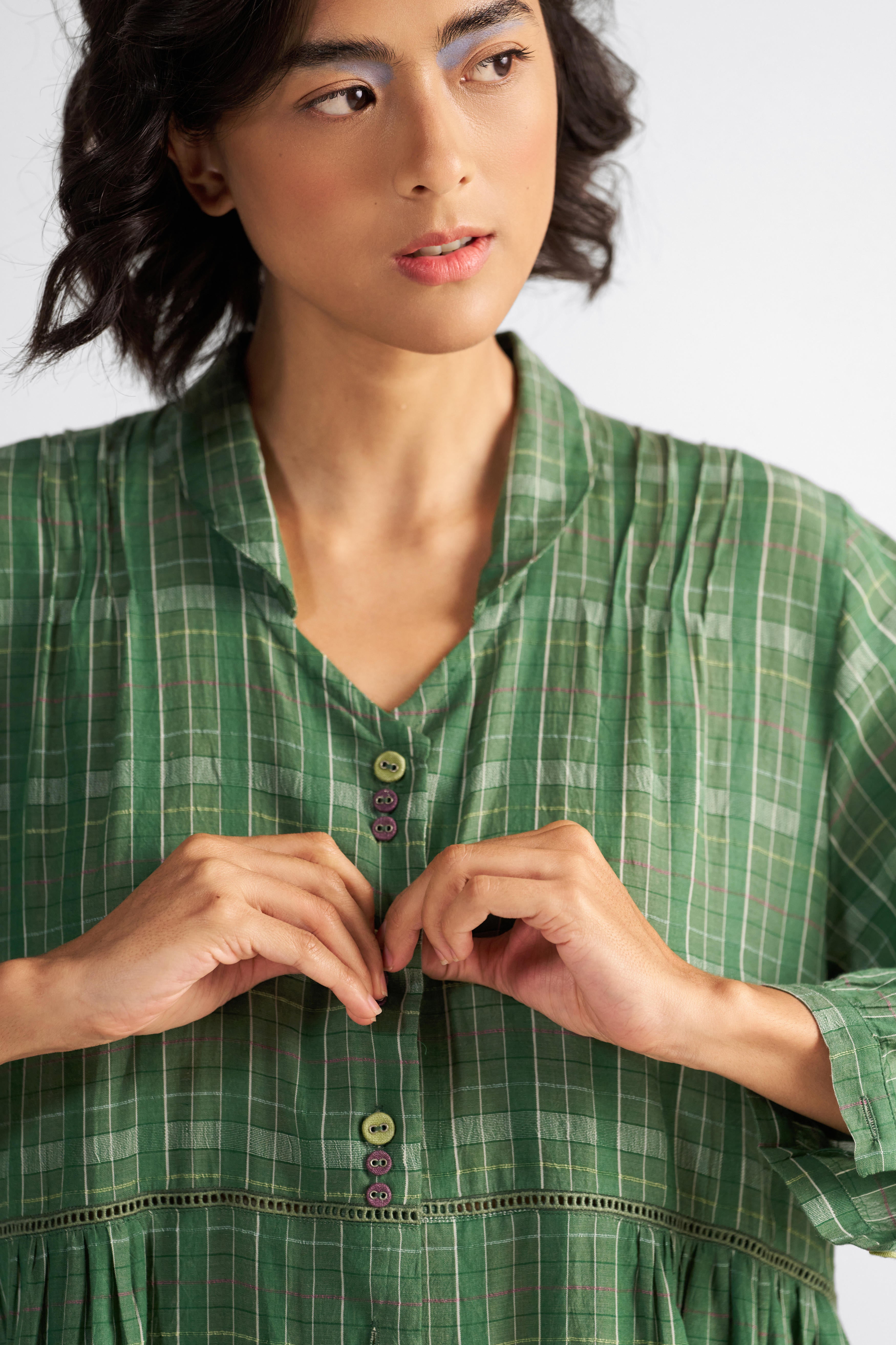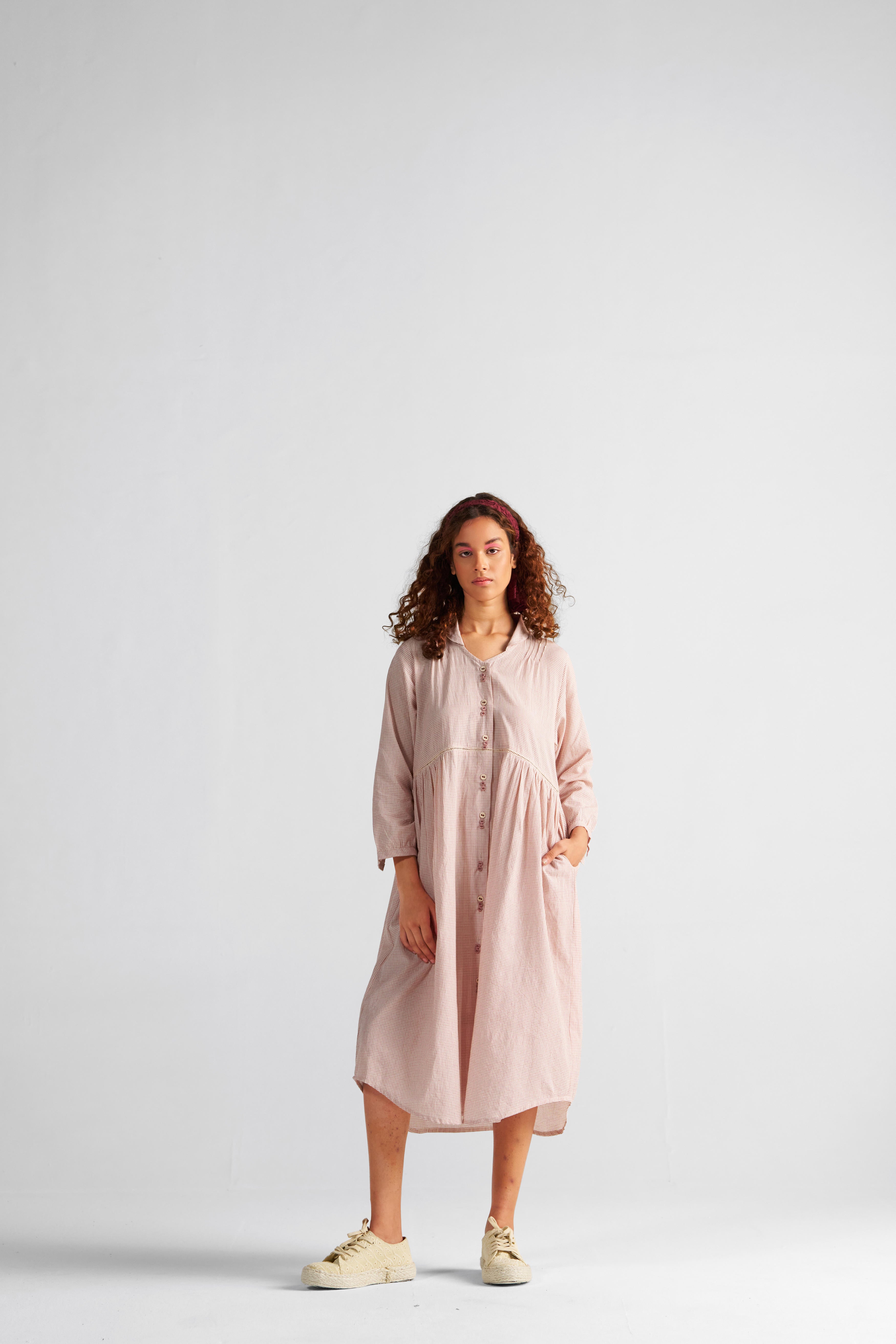 A dress? An overlay? Both. Table for Two plays double duty — button it up for a breezy, all-day dress, or leave it open as a charming overlay. Designed with soft gathers, playful handwoven checks and stripes, and that gentle collar you’ll keep noticing in the mirror. And yes, it has pockets!