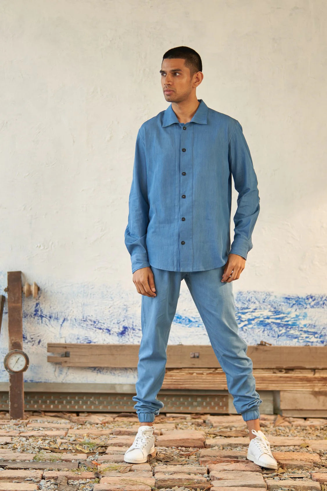 Introducing our Very-Relaxed-Fitting Long-Sleeved Big Button Shirt. This shirt features a front design with double-sided broad plackets and a contrasting patch elbow for added flair. Crafted from end-on-end cotton soft denim in a mesmerizing blue hue, it exudes effortless style and comfort. A clear favorite for its versatility, you can pair it with anything and everything as you seek out comfort, ease, and spontaneity in your wardrobe choices.