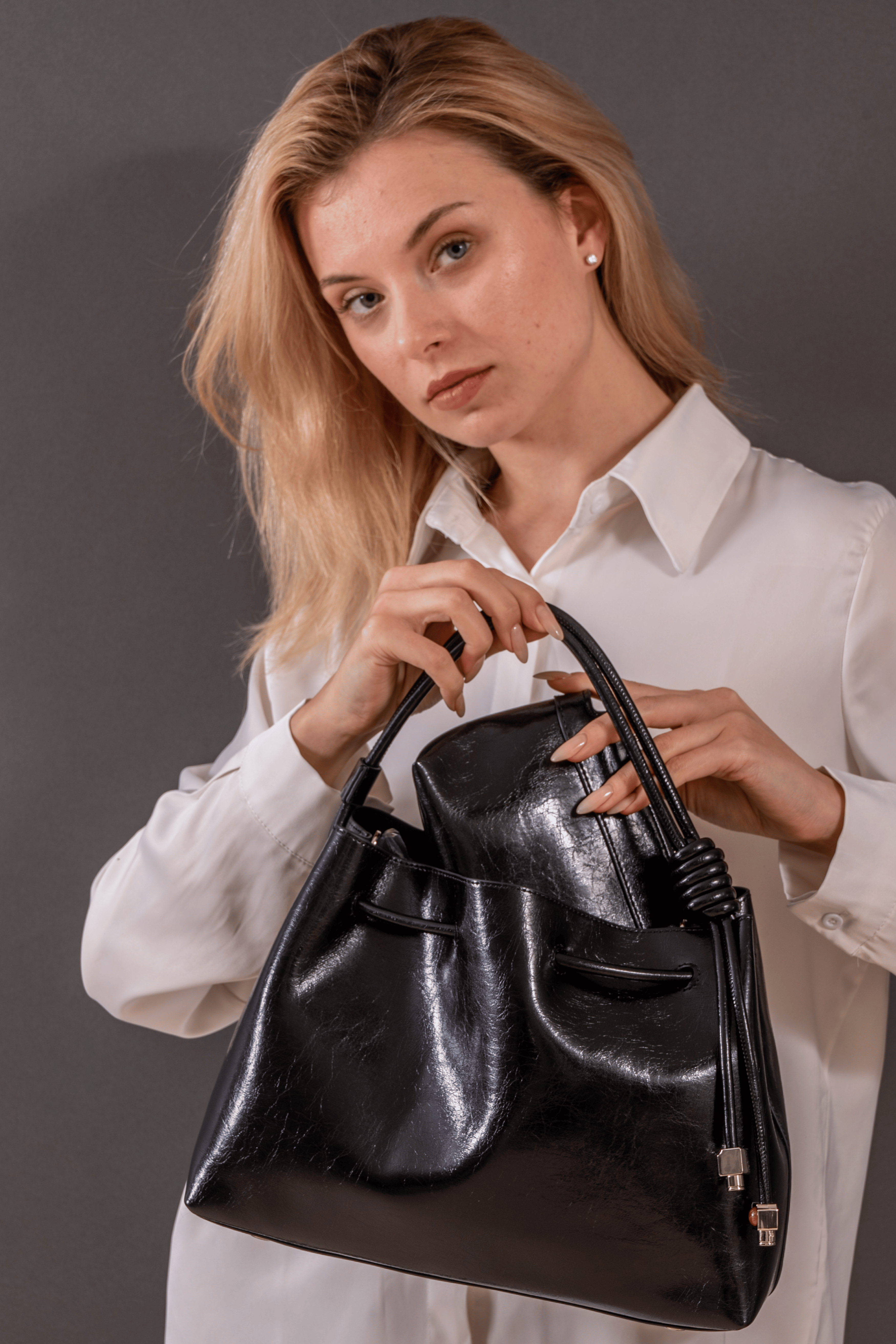 Discover sophistication and practicality with our Satchel bag, Terra crafted from genuine leather. It offers: 1. Luxurious Material: Made from fine-quality leather, this satchel boasts a delicate shiny finish for understated elegance. 2. Elegant Closure: The magnetic snap closure ensures secure yet easy access to your essentials, making it the ideal companion for your daily adventures. 3. Smart Interior Design: Bonded suede interior featuring a matching leather zip pouch inside for organizing smaller items with a touch of coordinated charm. 4. Refined Details: Accentuated with a silver metal charm for a hint of shine and sophistication. 5. Versatile Carry Options: Comes with a detachable long shoulder strap, allowing you to switch between a chic handheld look and a comfortable crossbody style. 6. Durable Metal Feet: Keeps the bottom clean and scratch free. 7. Dust Bag: comes in a cotton dust bag for storing when not in use.