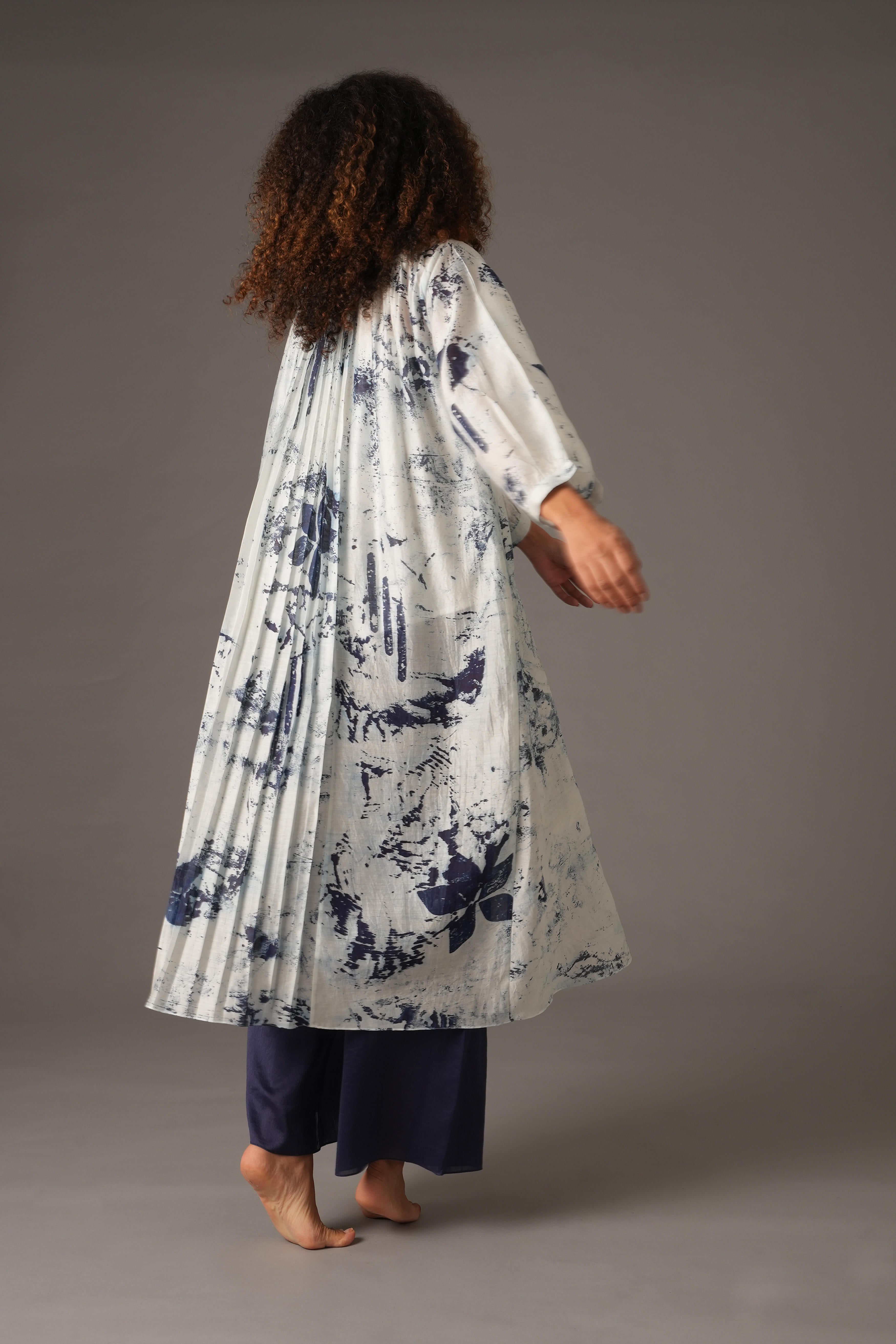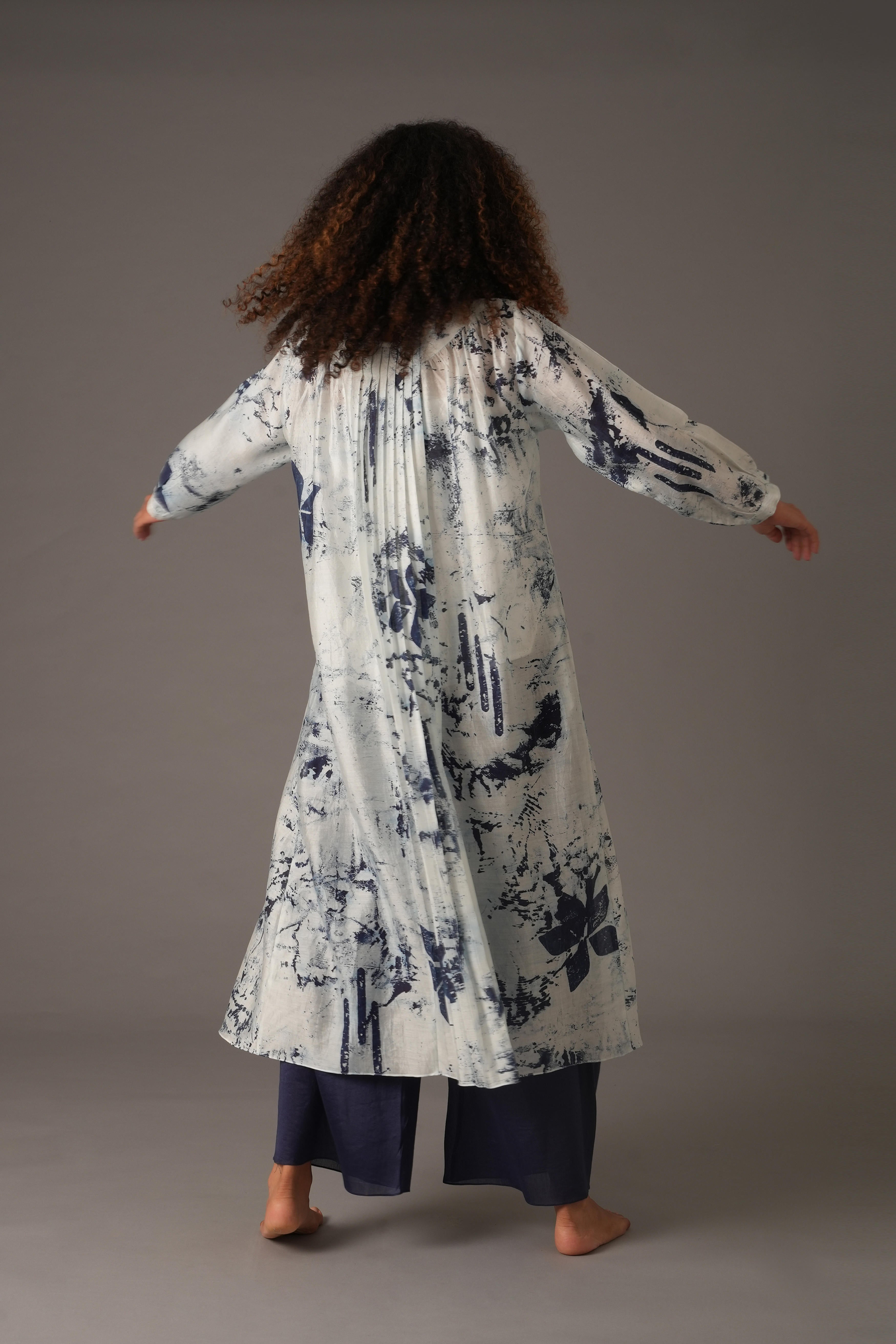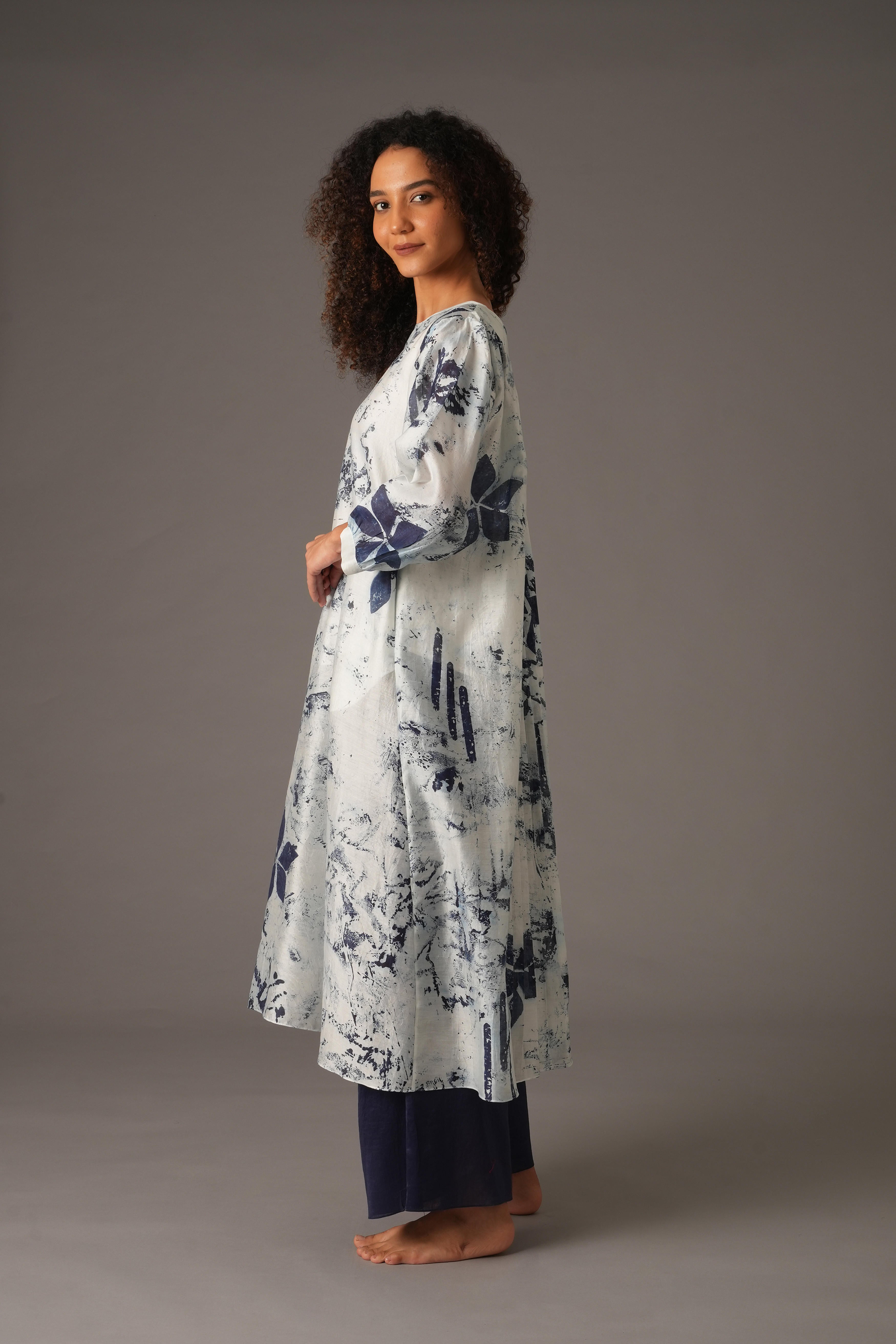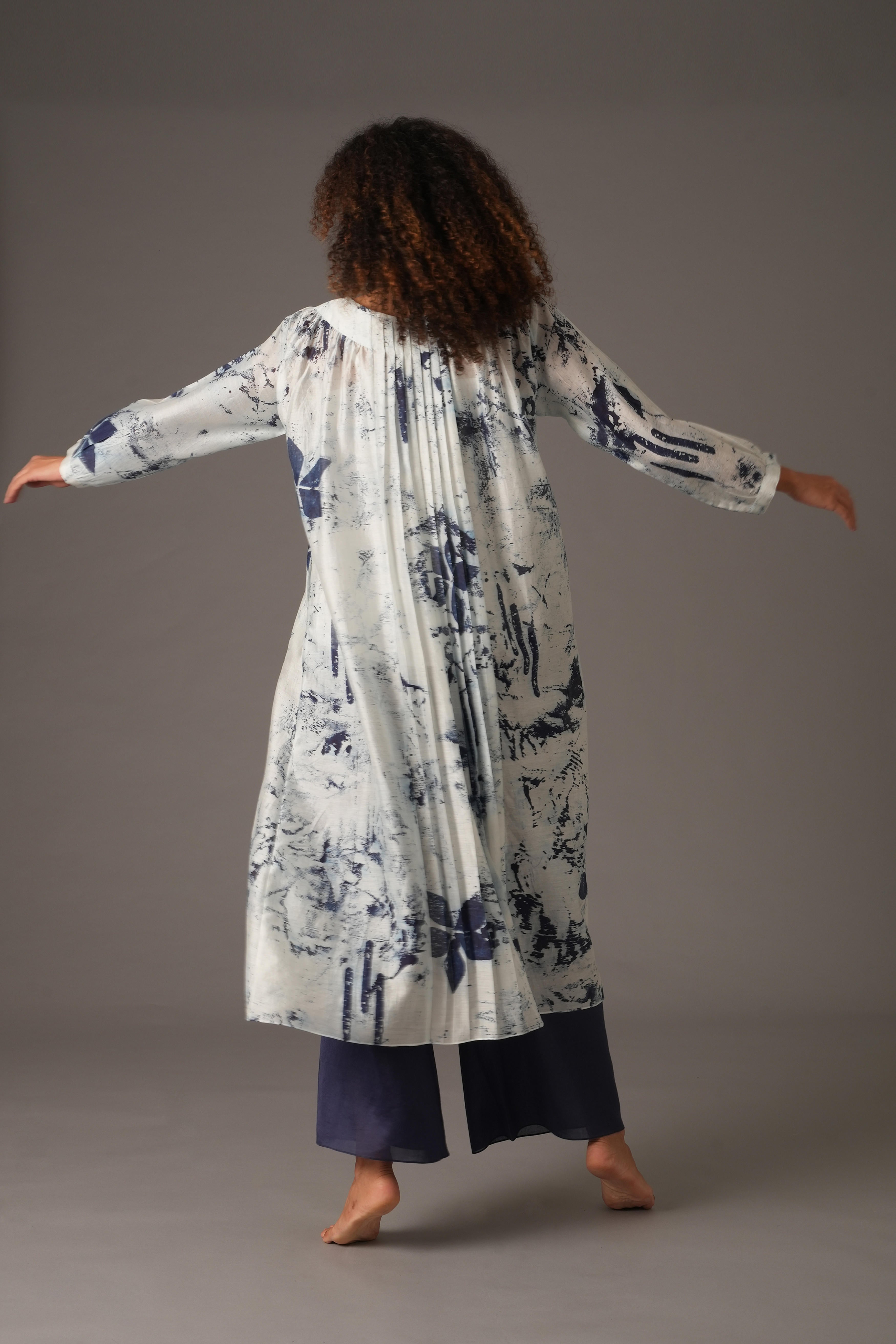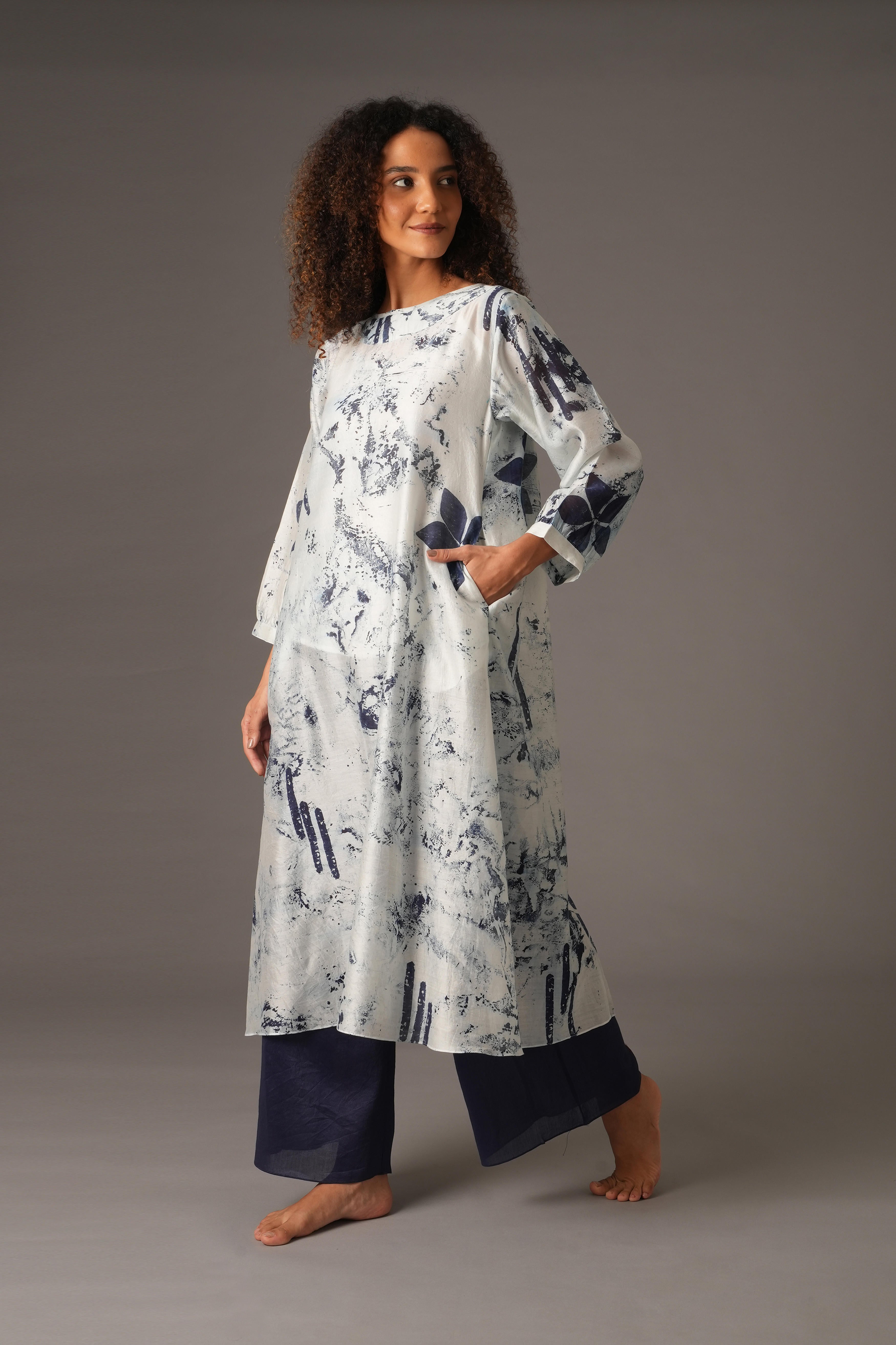 This beautiful Chanderi Silk set includes 4 pieces: Dress, Slip, Bottom, and Scarf in a rich Blue colour. The dress features a full length of 47 inches and 19-inch long sleeves with 1-inch cuffs. The pants have a length of 38 inches, a waist of 26 inches, and a 26-inch Mohri. The scarf is 82 inches in length and 25 inches in width. The design also includes pockets on both sides for added functionality. Our model, standing 5'8", is wearing a size S.