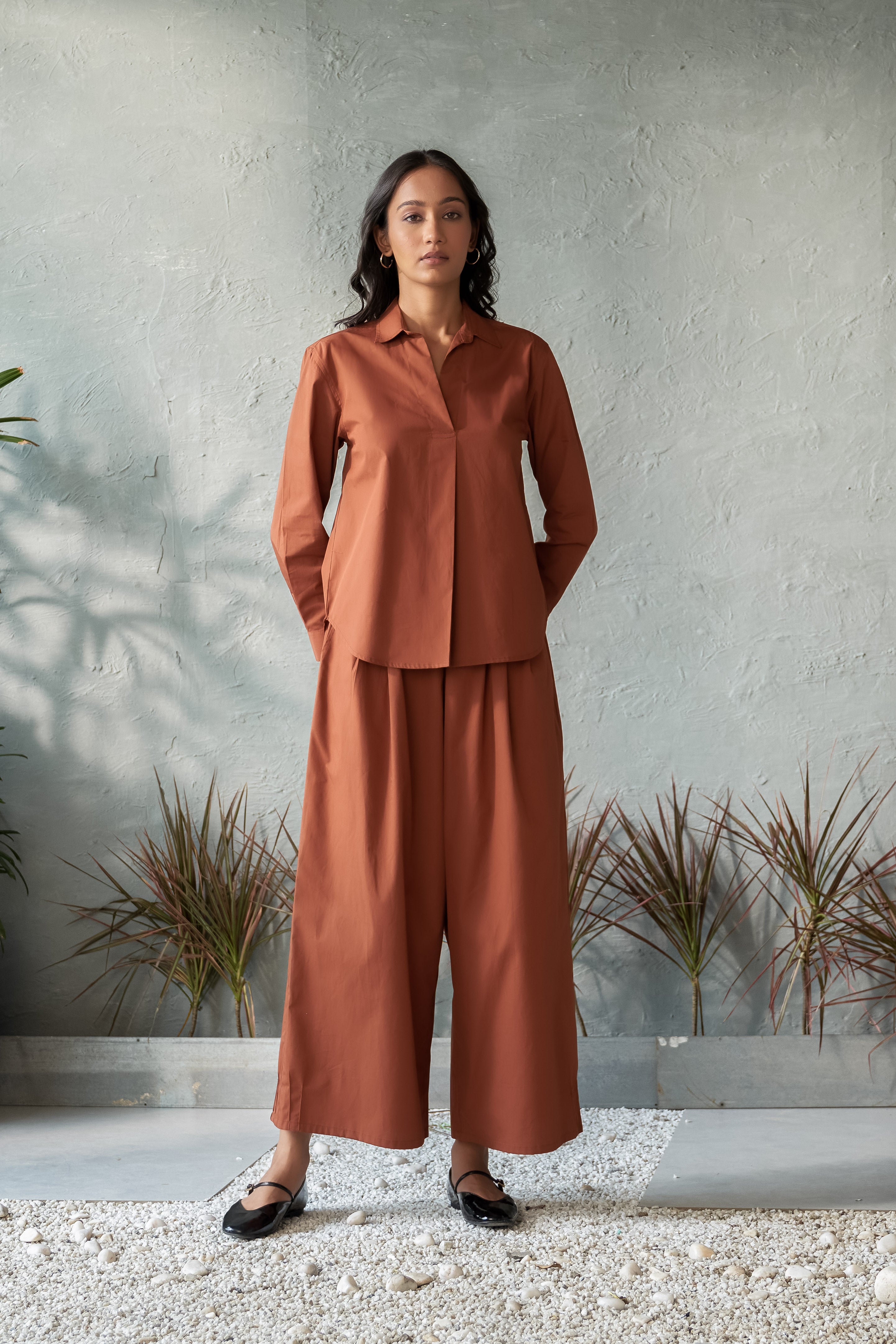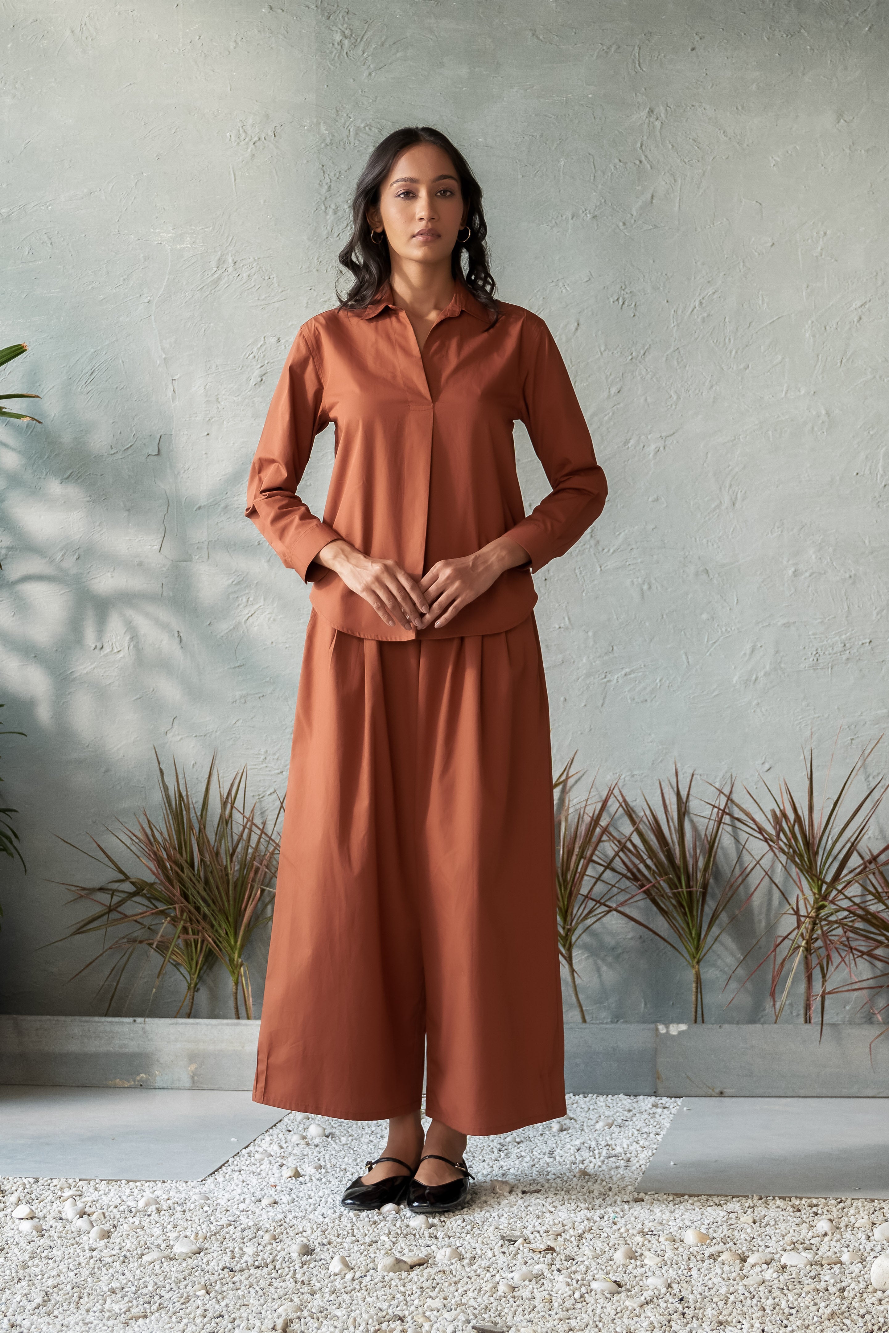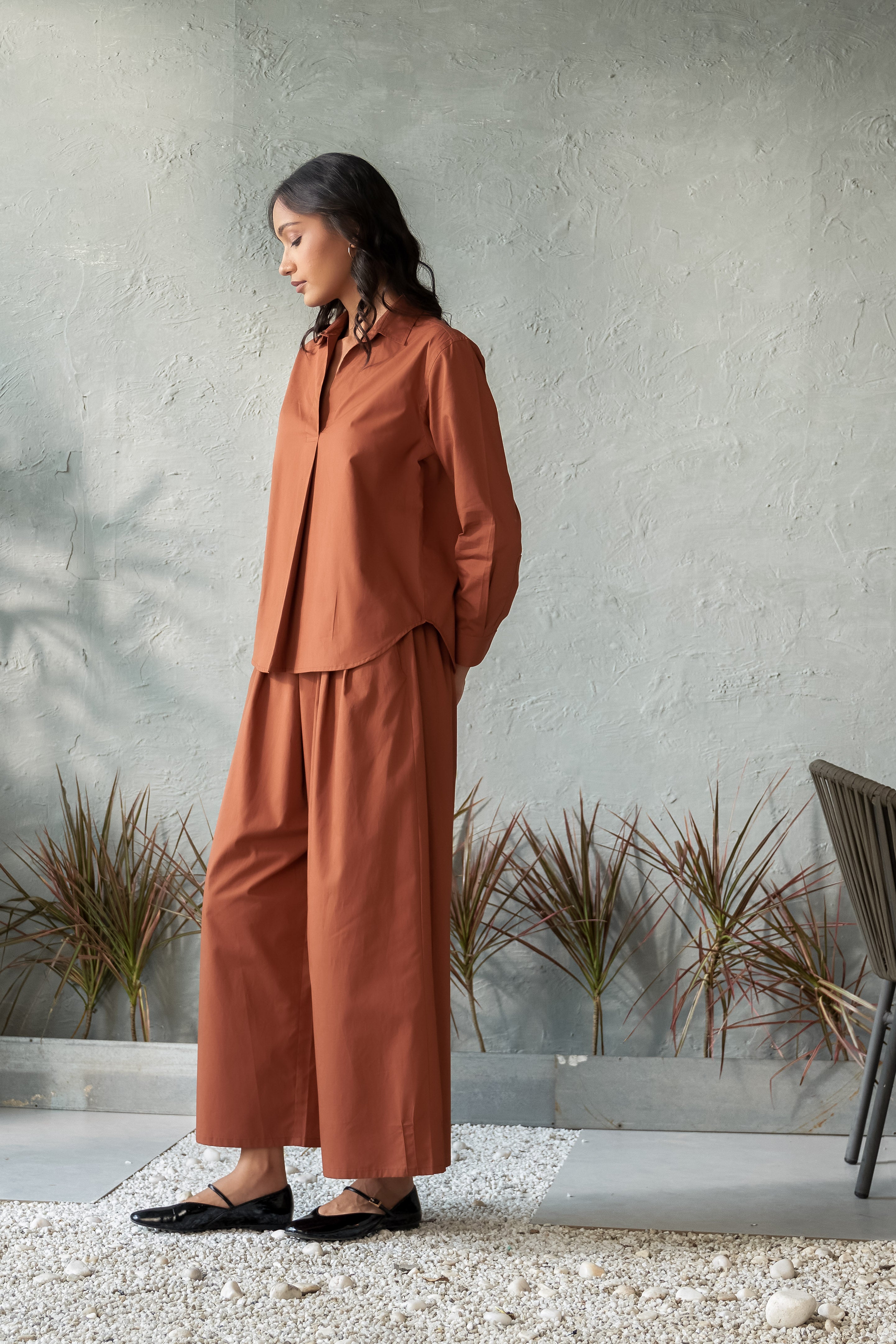 Step into effortless style with this chic Tiramisu co-ord set. The set includes a tailored top with a unique front box pleat, offering a perfect balance of modern sophistication and comfort. Paired with matching wide-legged pants featuring a flattering elasticated waistband, this set is designed for all-day ease. This co-ord set brings versatility and understated elegance to your wardrobe. Ideal for casual outings or smart-casual events, it's your go-to for elevated everyday style