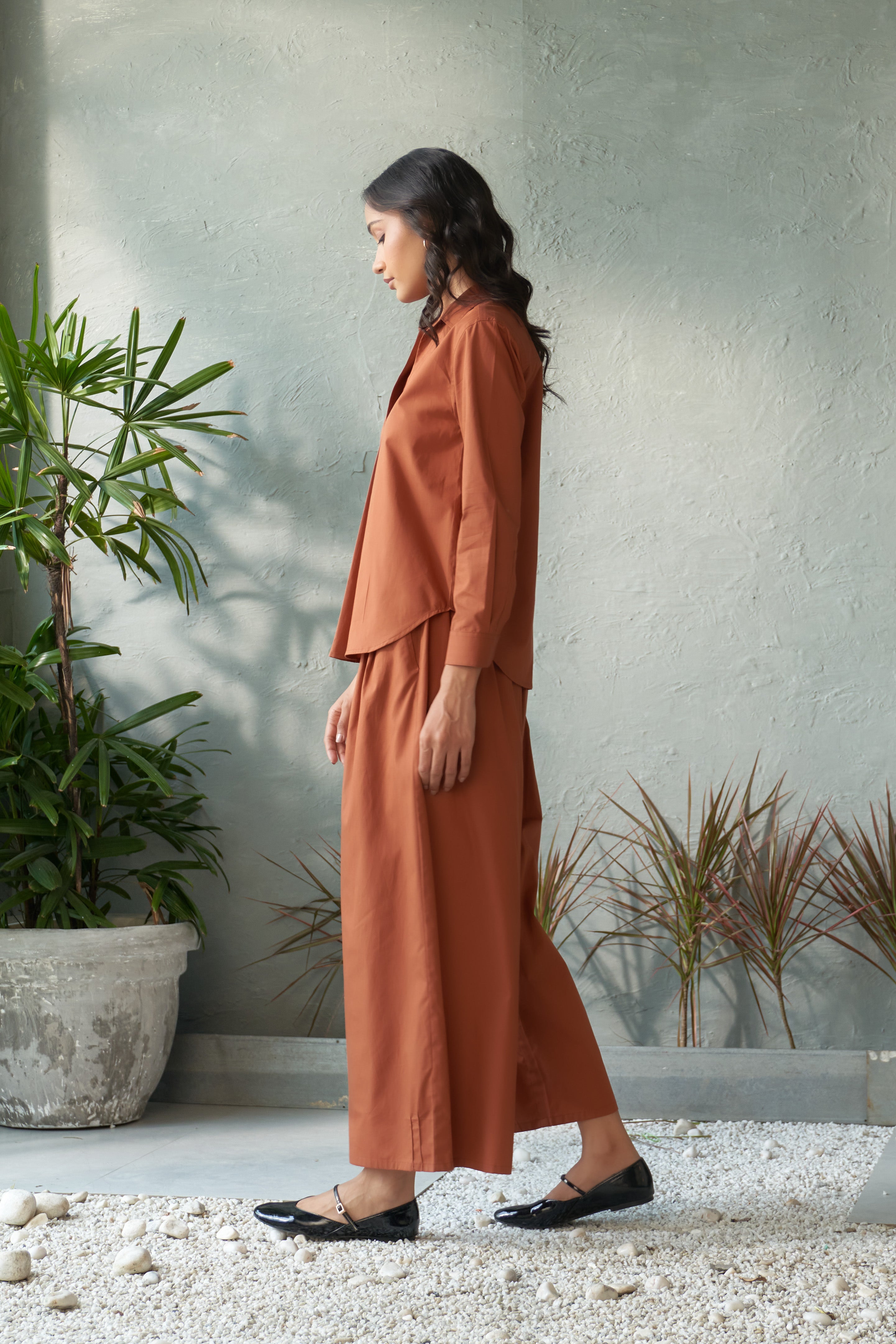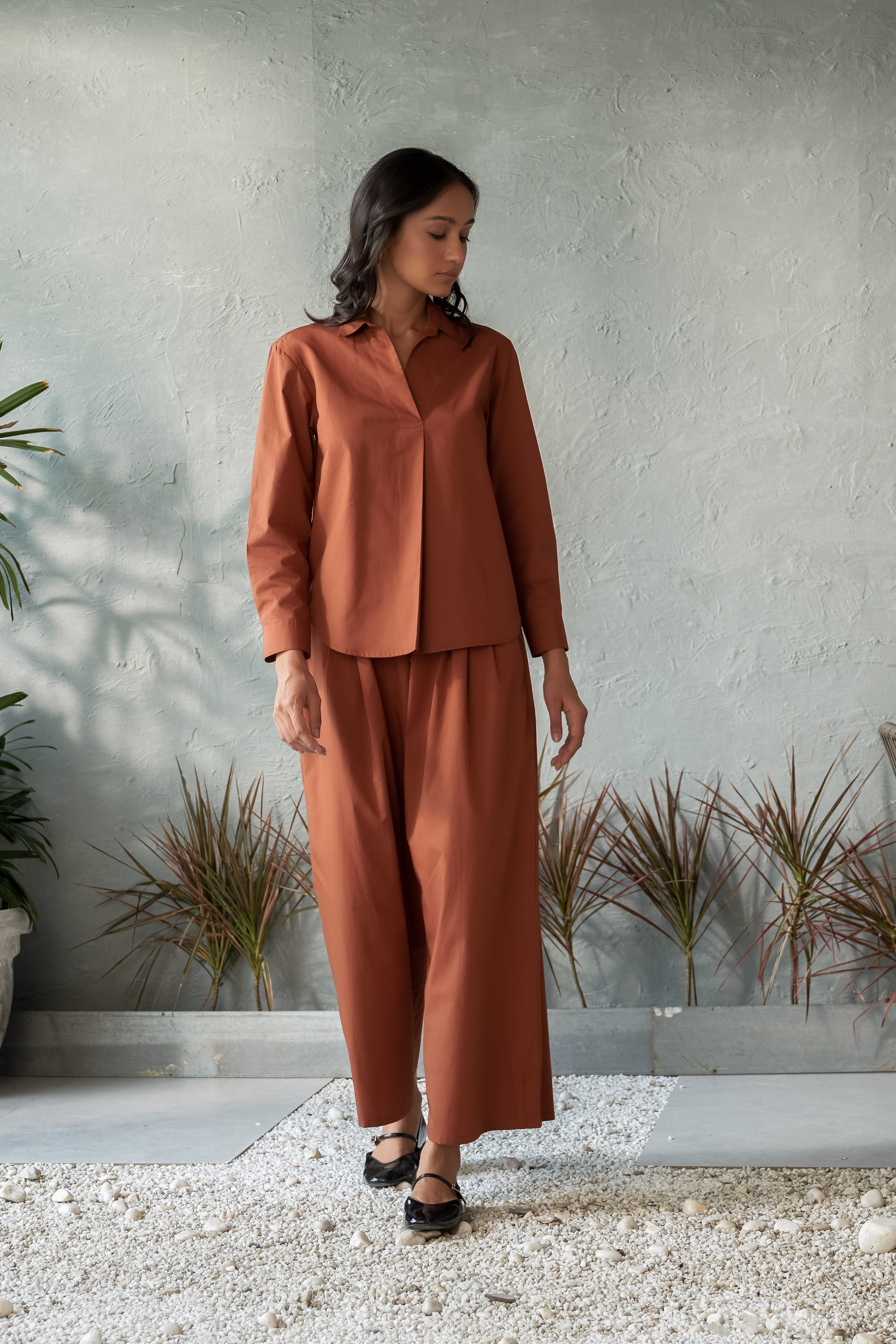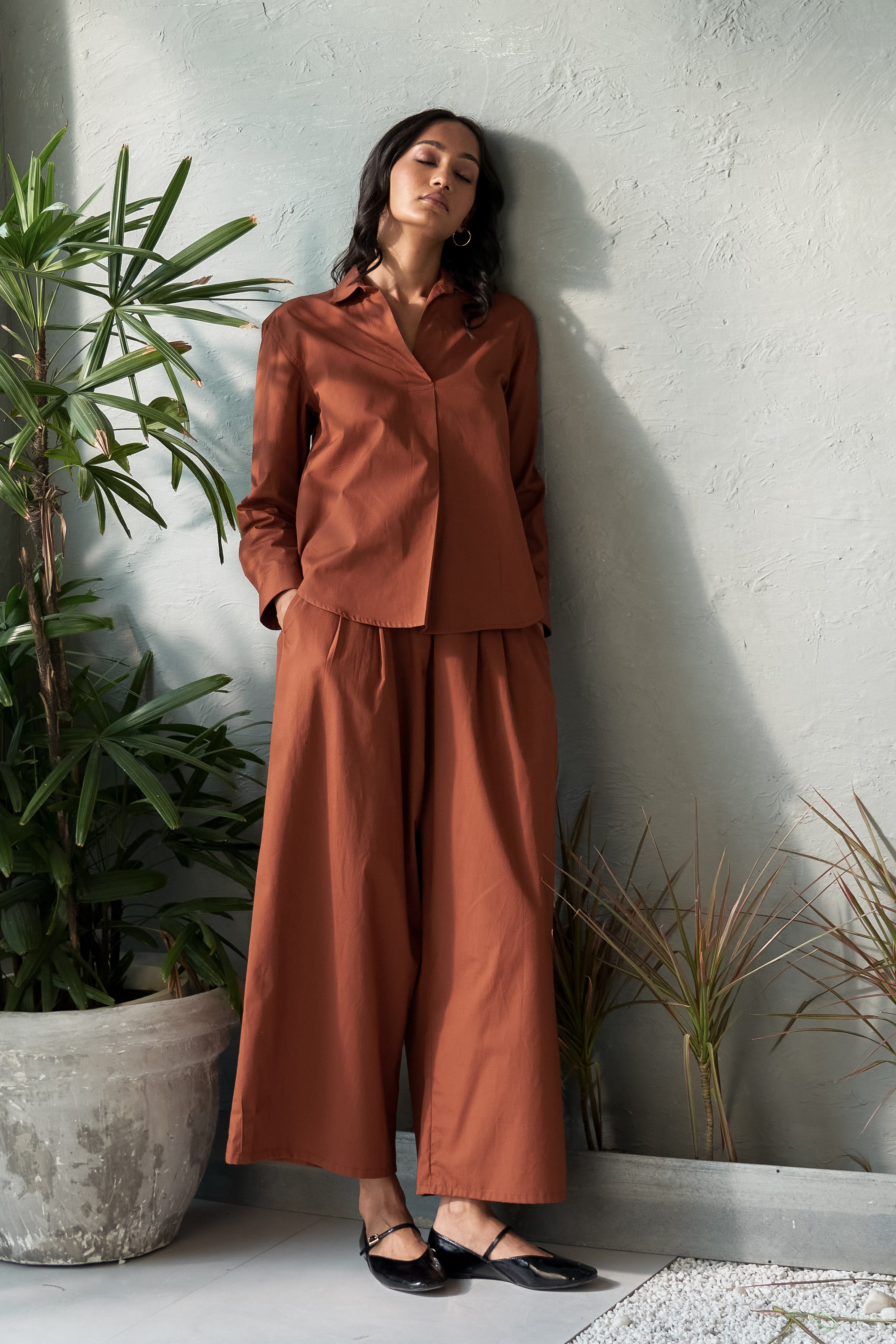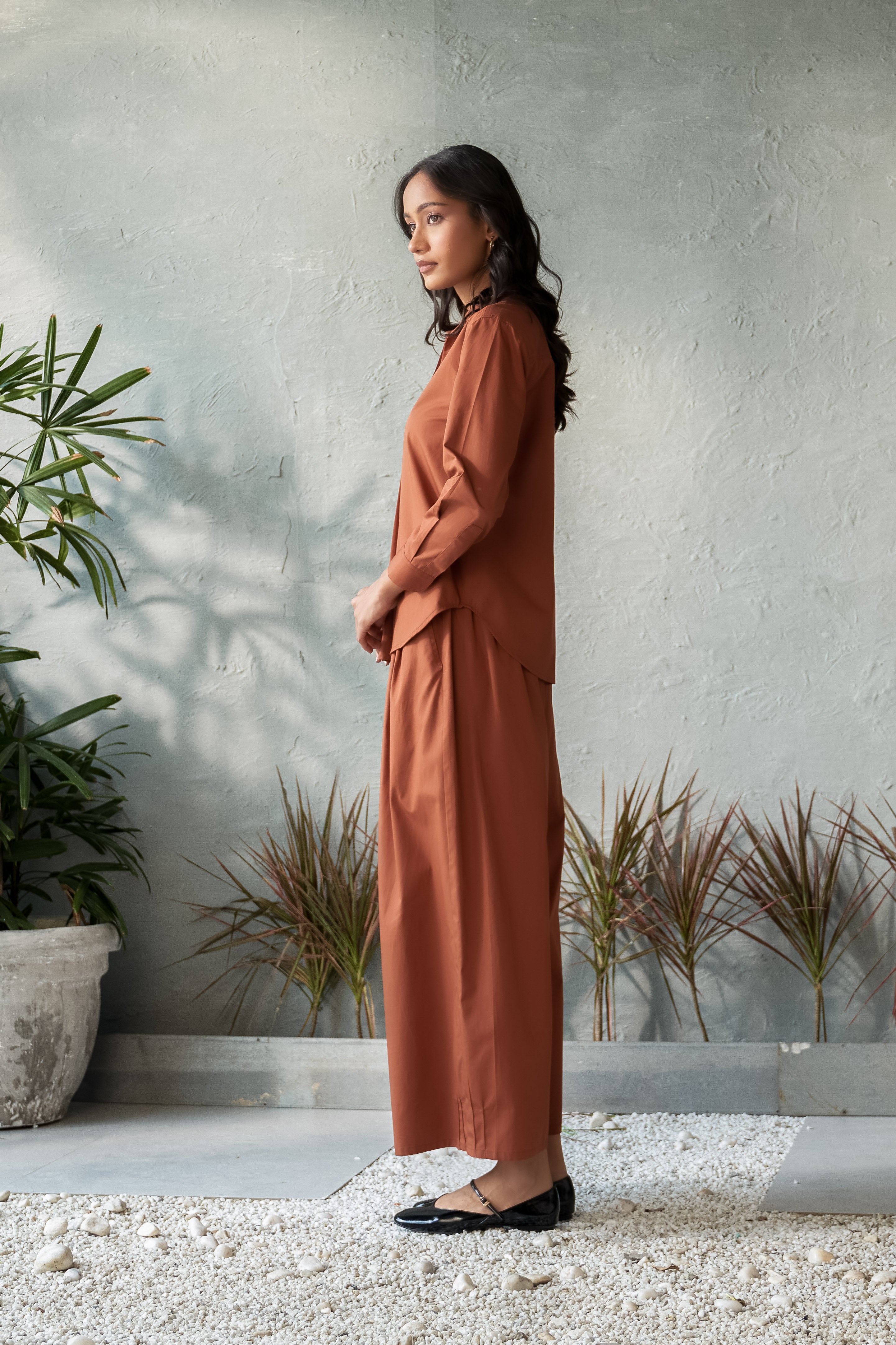 Step into effortless style with this chic Tiramisu co-ord set. The set includes a tailored top with a unique front box pleat, offering a perfect balance of modern sophistication and comfort. Paired with matching wide-legged pants featuring a flattering elasticated waistband, this set is designed for all-day ease. This co-ord set brings versatility and understated elegance to your wardrobe. Ideal for casual outings or smart-casual events, it's your go-to for elevated everyday style