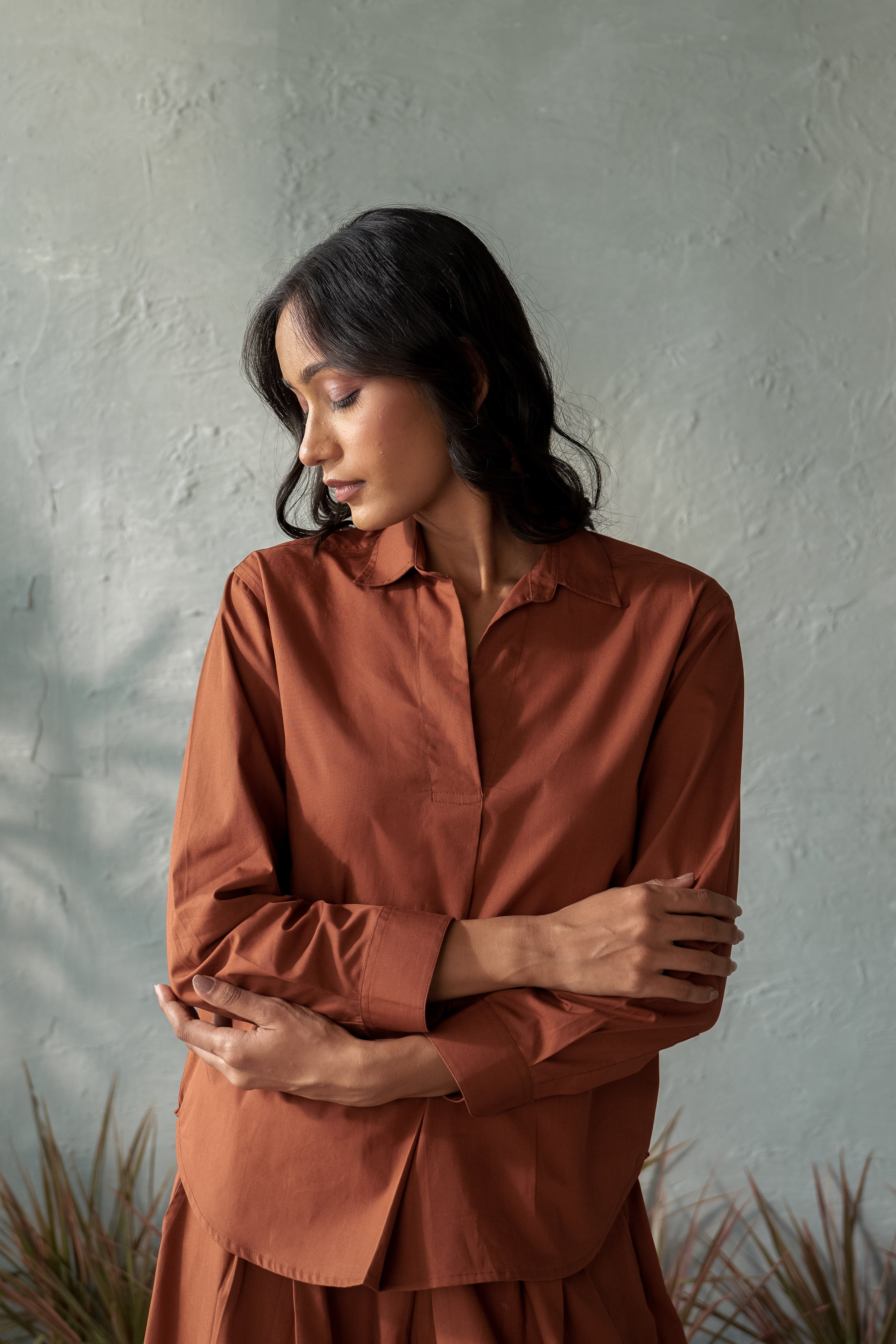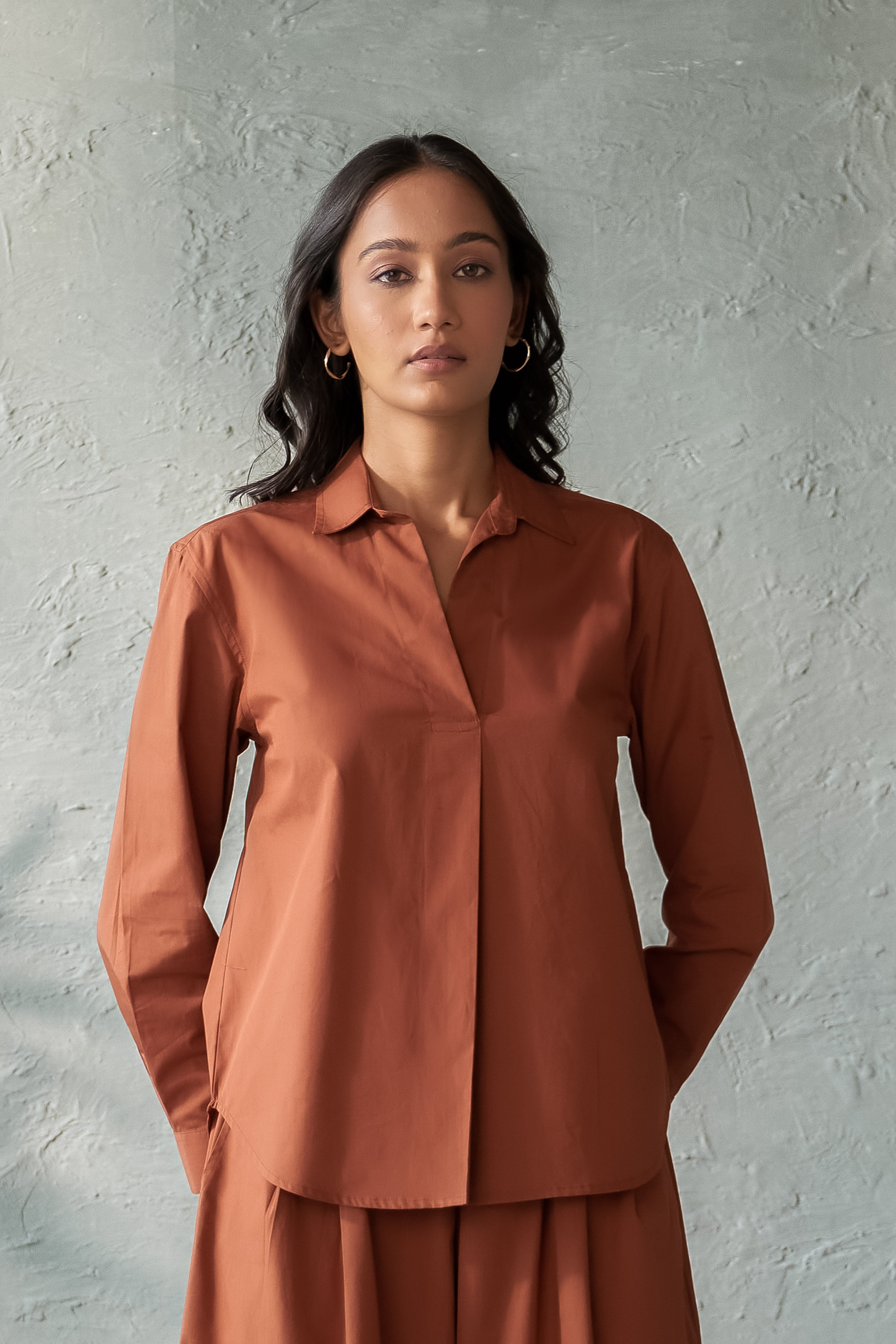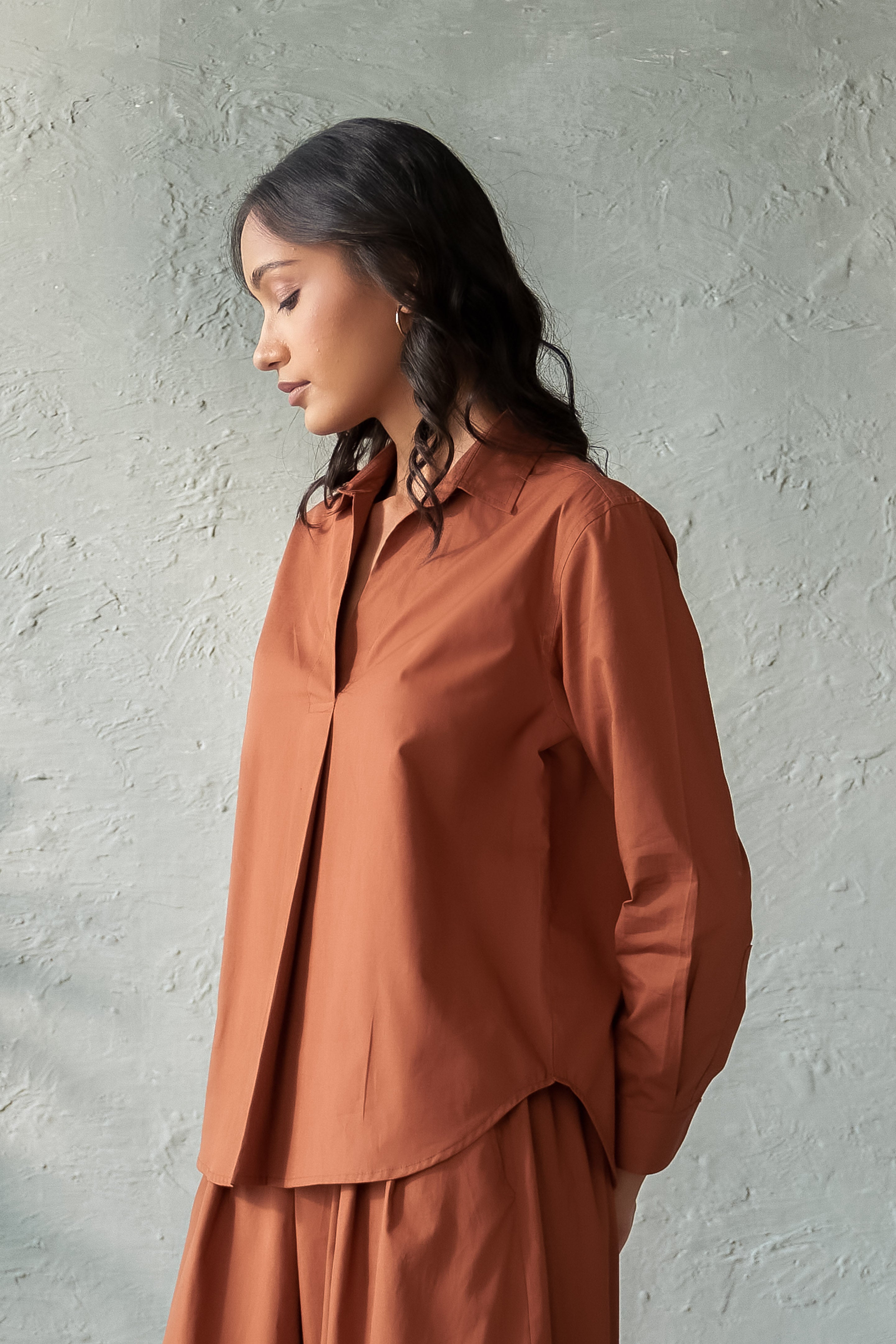 Elevate your wardrobe with our Tiramisu top, featuring a tailored silhouette and a distinct front box pleat detail that fuses sophistication with modern style. Made from premium poplin cotton, it ensures all-day comfort and breezy wear. Pair it with tailored pants for a refined look or go casual with jeans or shorts. For a head-to-toe coordinated style, our matching wide-legged pants complete the ensemble, offering a seamless blend of comfort and elegance.