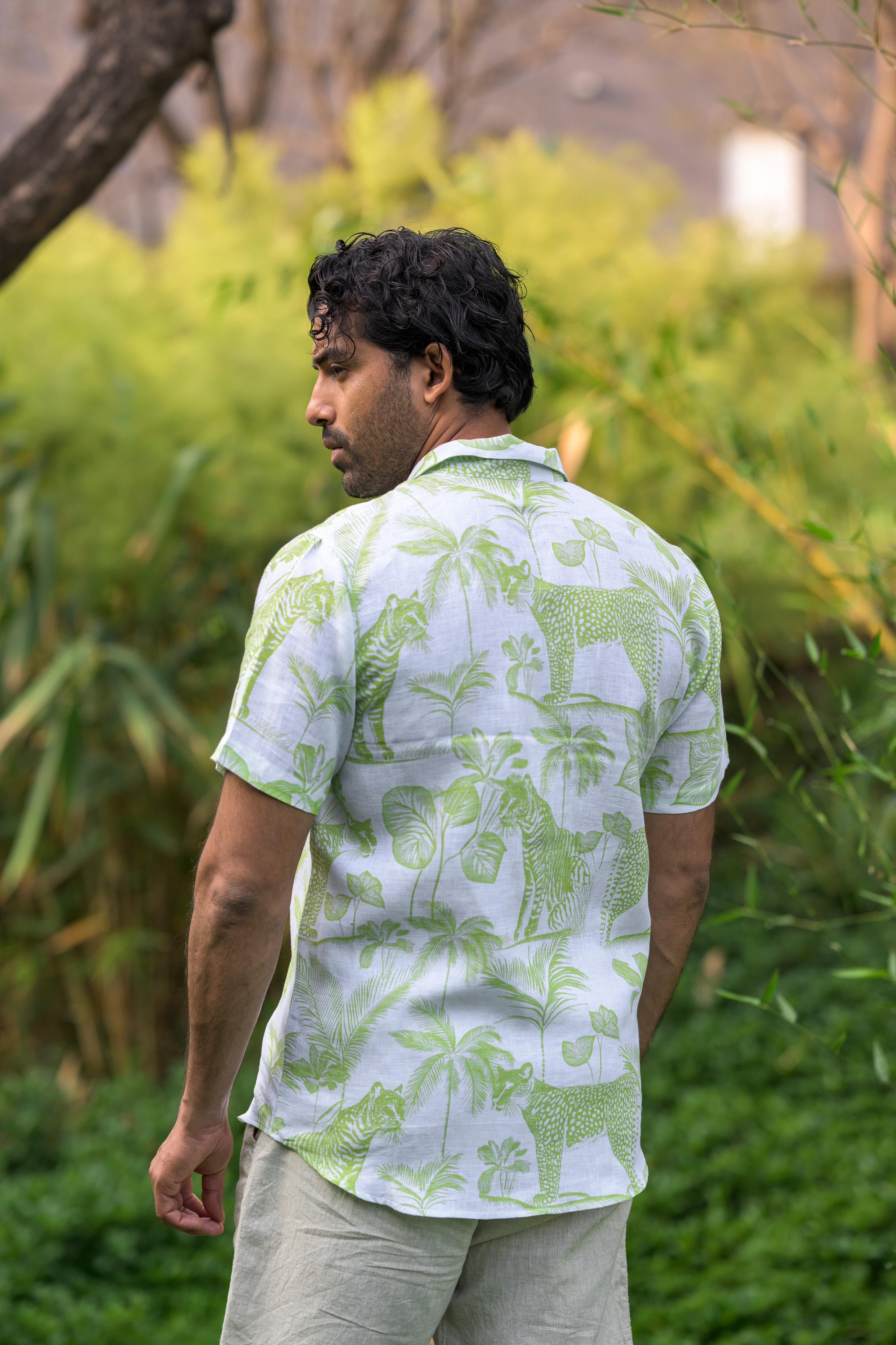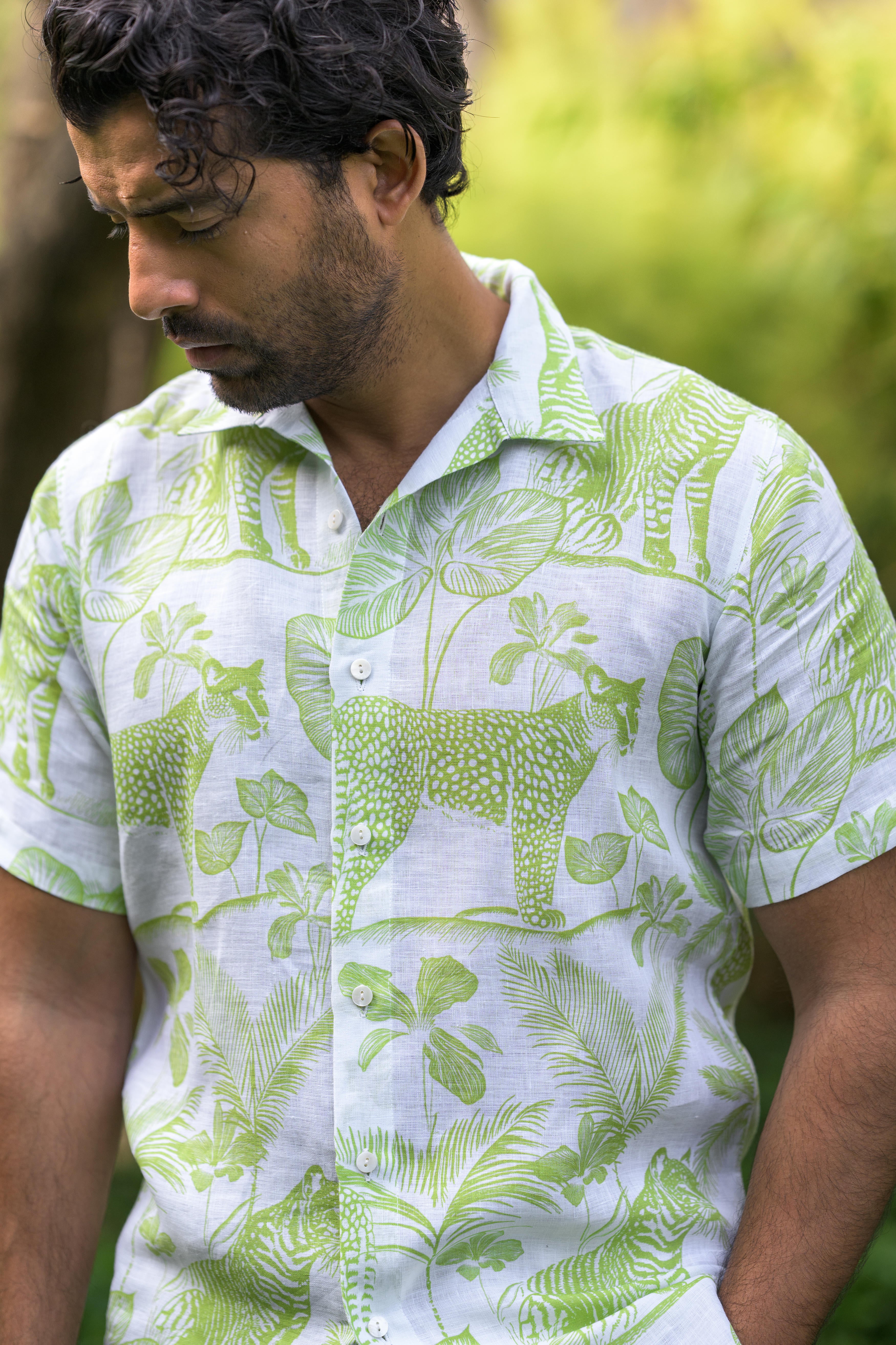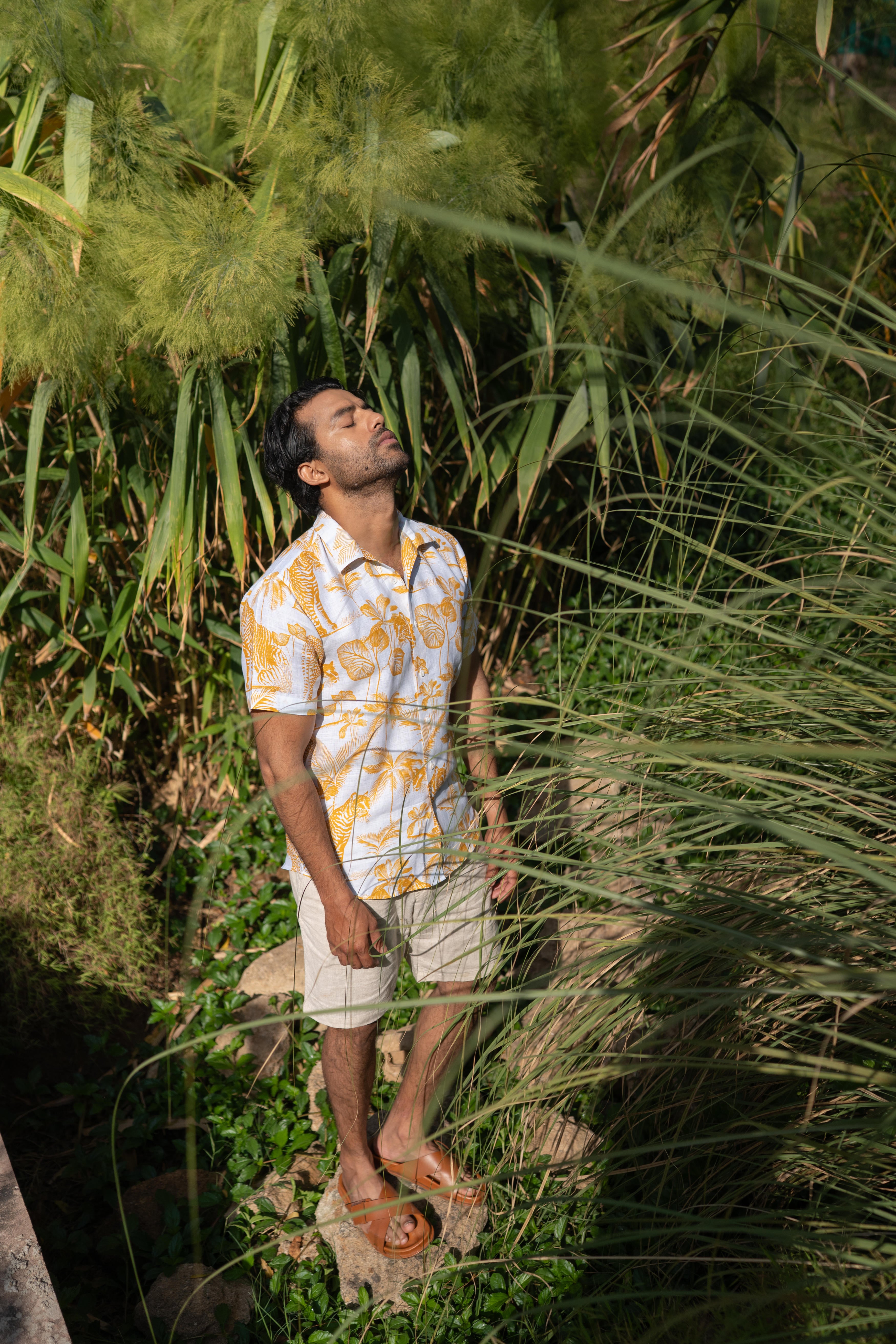 A relaxed yet structured shirt featuring our signature tropical print, an ode to dense foliage, warm afternoons, and the interplay of shadow and sunlight. Crafted for comfort, cut for versatility, this piece can be buttoned up for a refined look or worn open over a tee for laid-back ease.