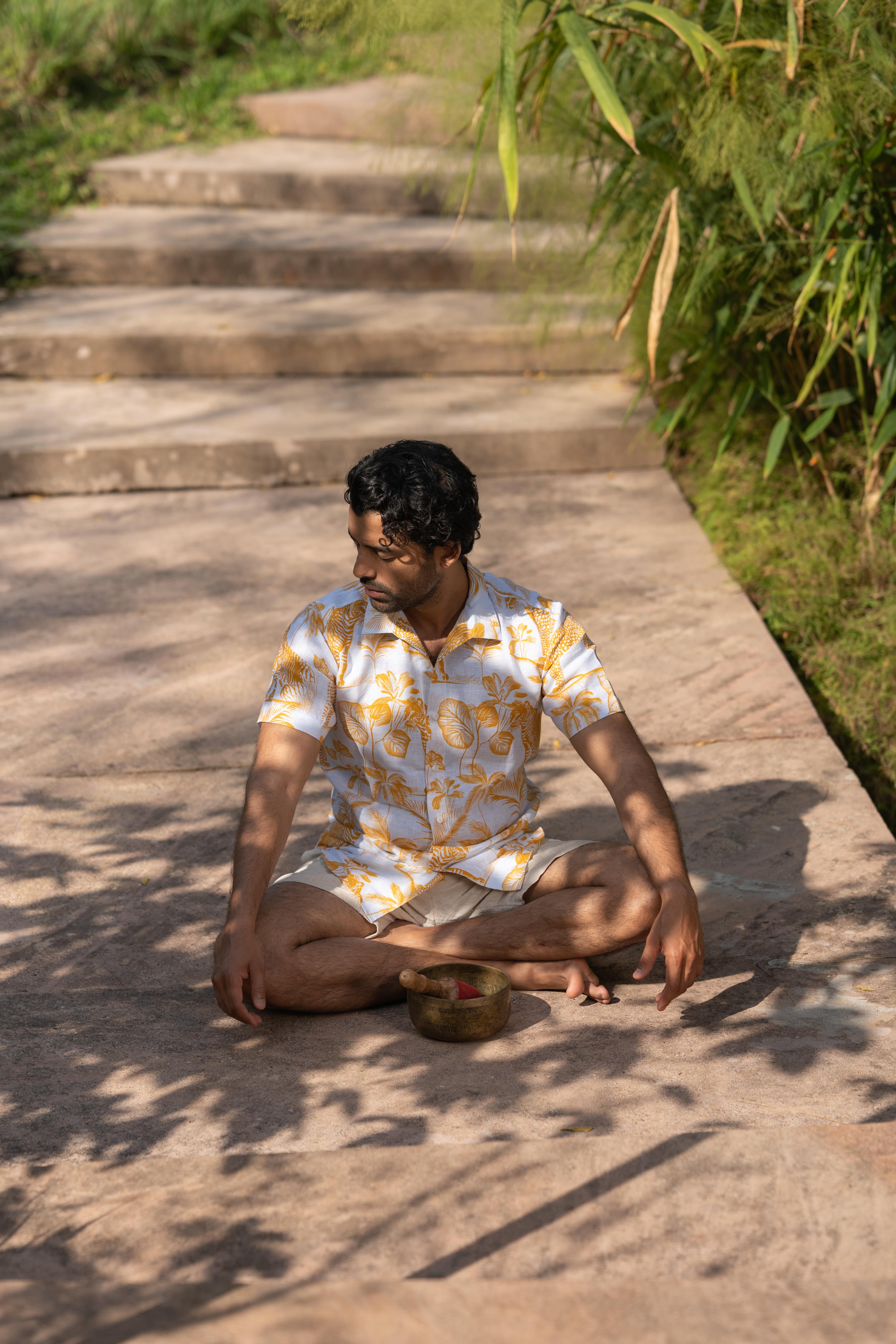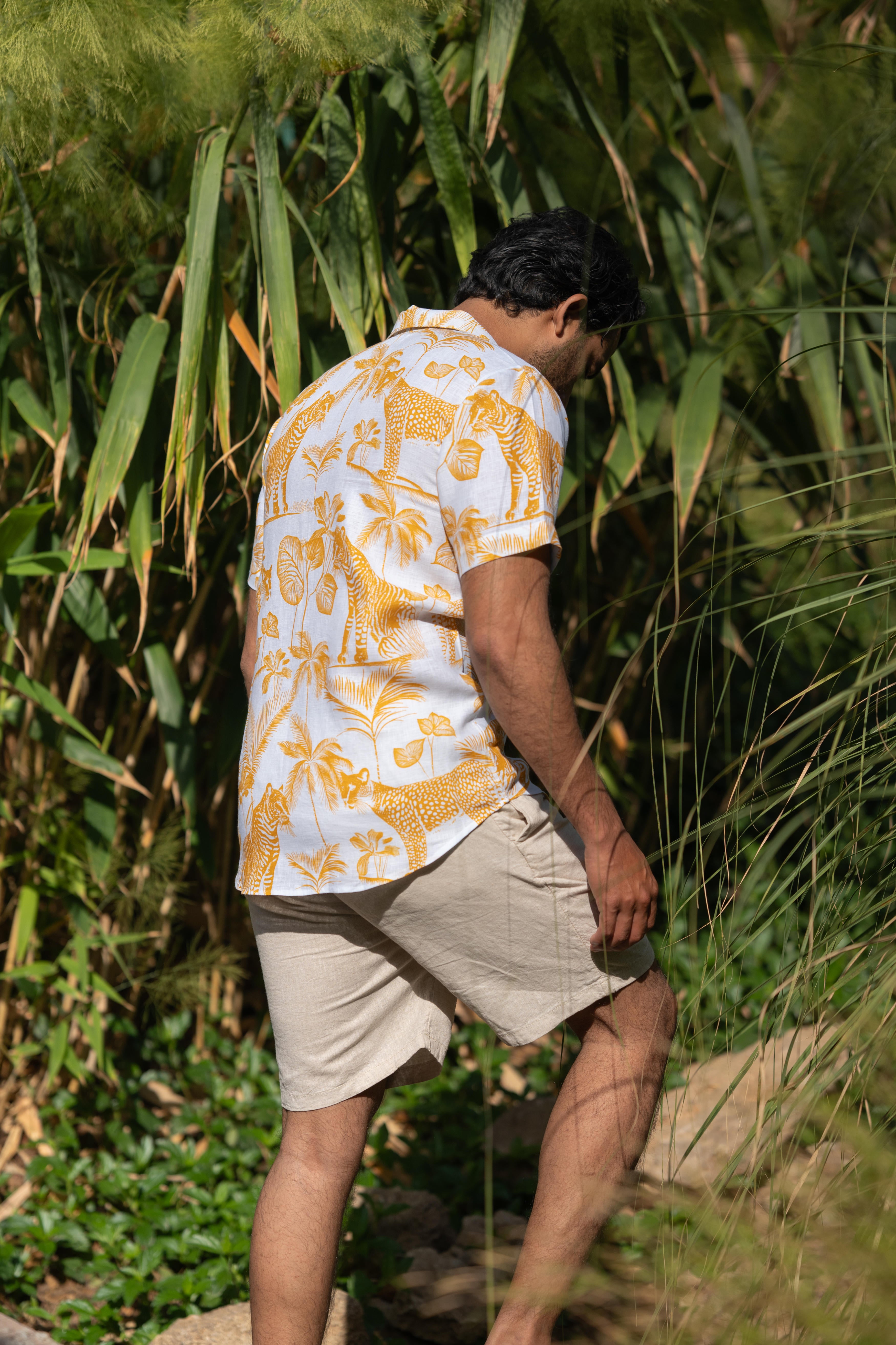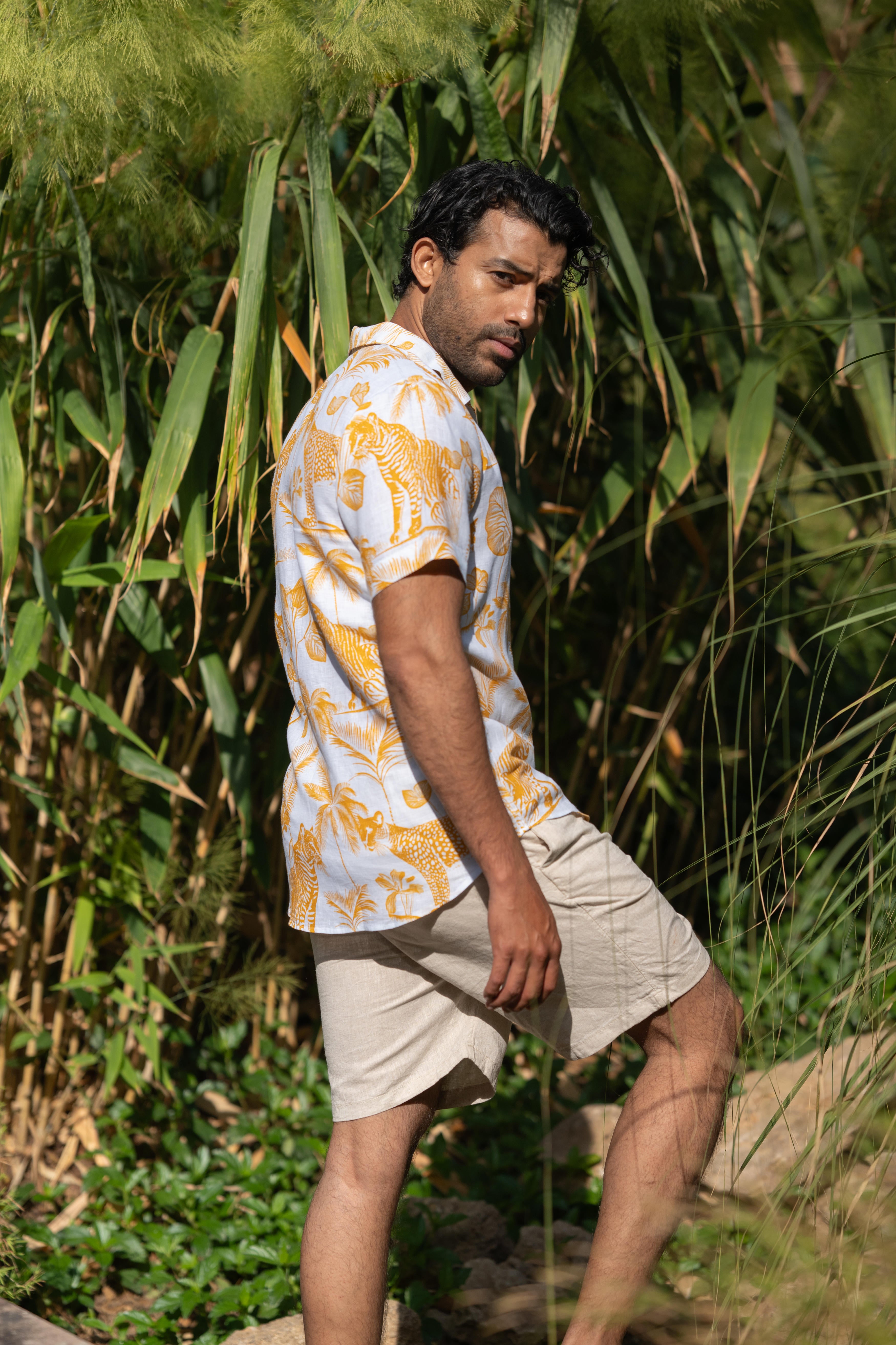 A relaxed yet structured shirt featuring our signature tropical print, an ode to dense foliage, warm afternoons, and the interplay of shadow and sunlight. Crafted for comfort, cut for versatility, this piece can be buttoned up for a refined look or worn open over a tee for laid-back ease.