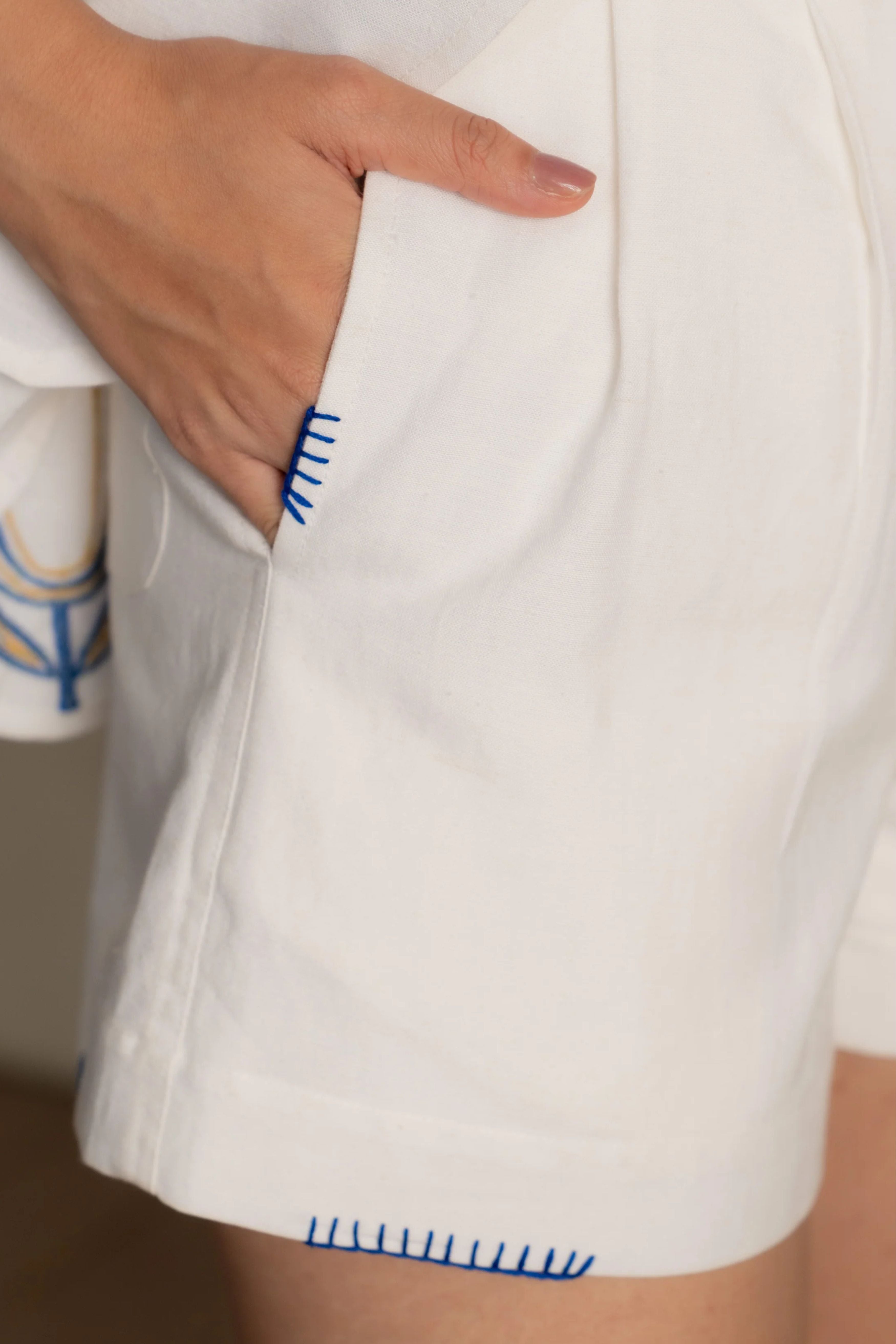 Experience comfort and style with the Tulip Mist Embroidered Shorts. Designed with a high-waisted fit and a flowy, wide-leg silhouette, these shorts feature intricate hand embroidery of blue tulips, evoking the serenity of nature’s beauty. Perfect for summer days or relaxed evenings, they pair seamlessly with any top for a charming look.