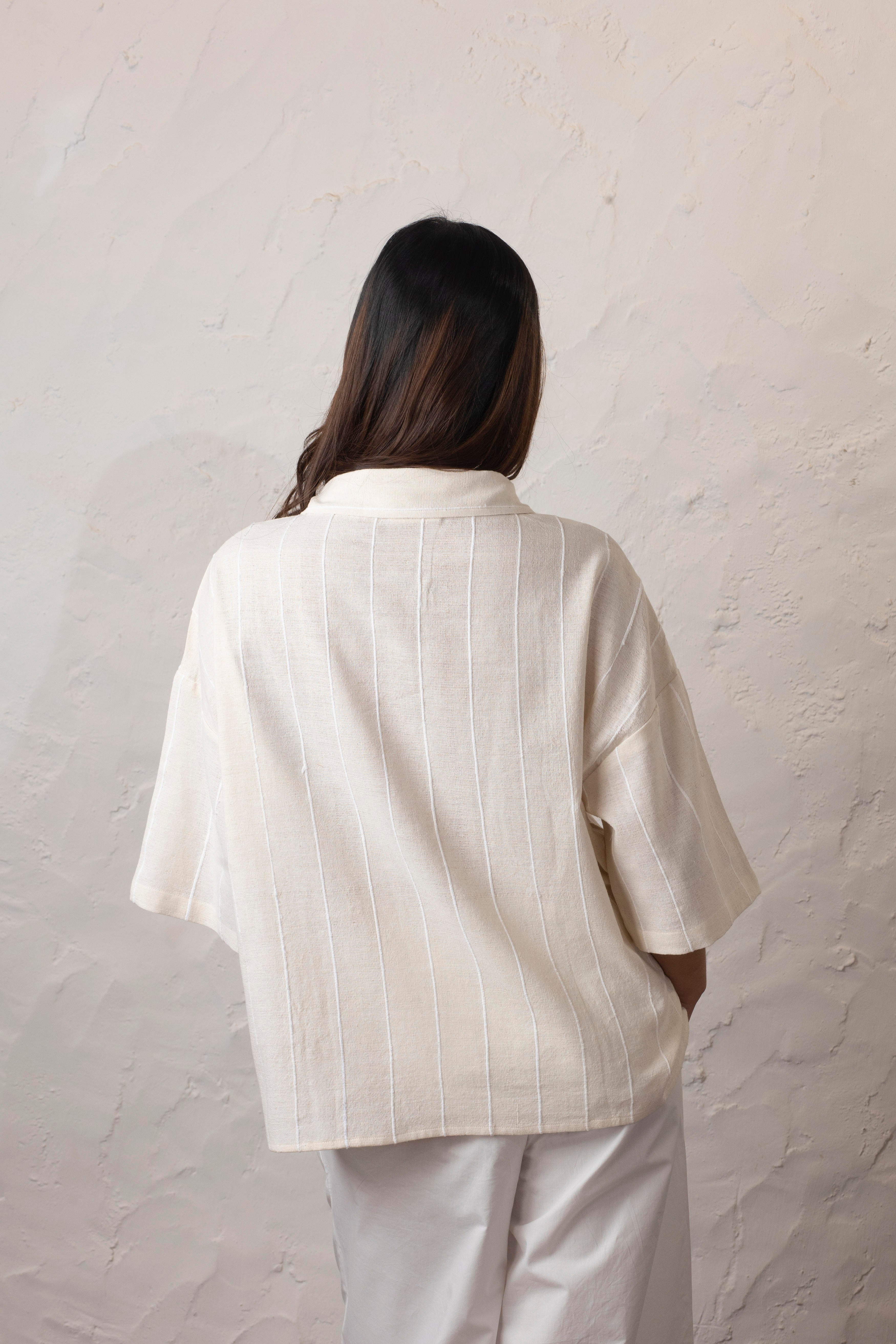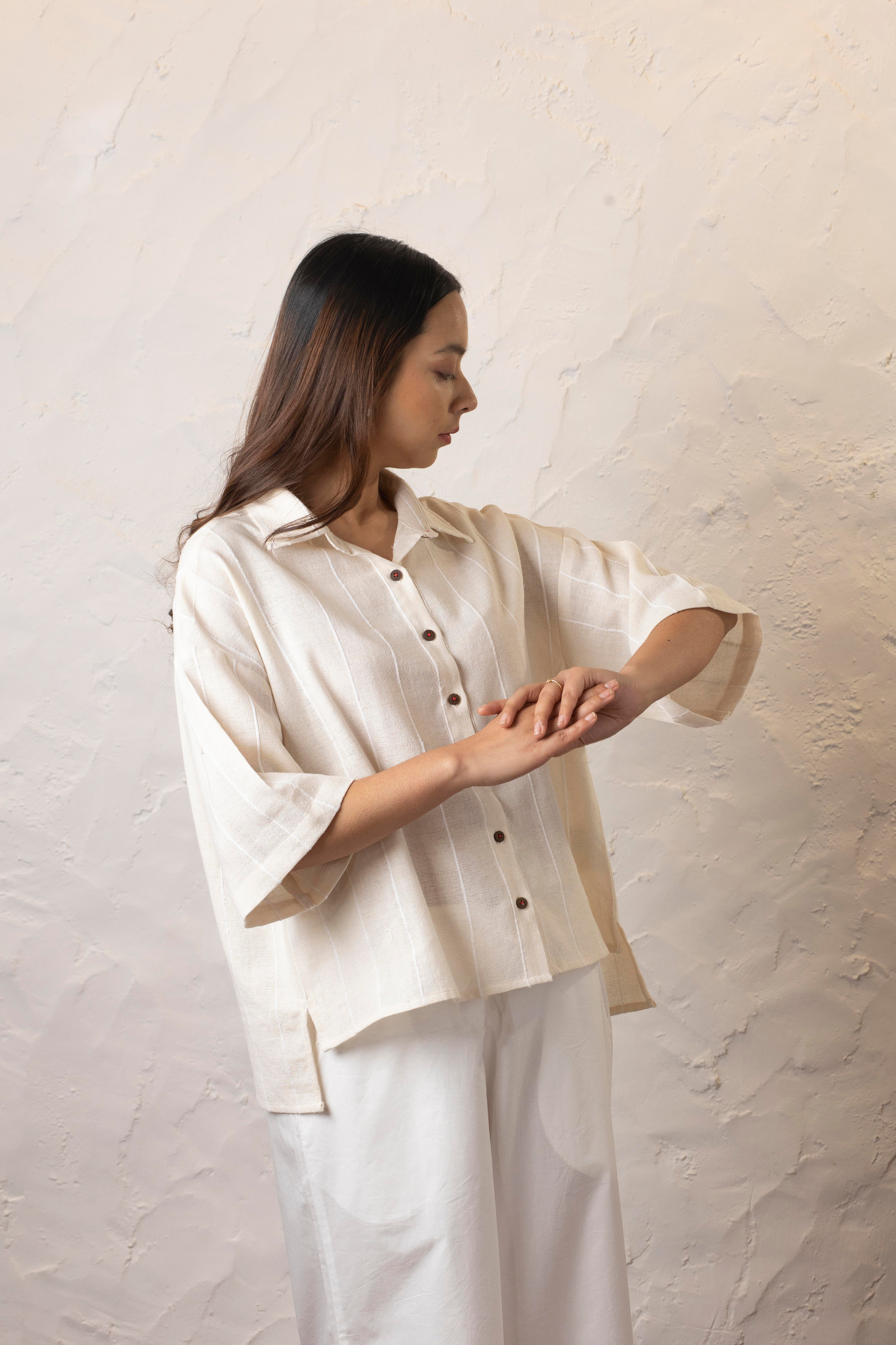 Designed for ease and movement, the Reao Shirt is a modern oversized staple with subtle self-stripes and a straight-cut hem with side slits. The slightly longer back ensures effortless coverage, making it both stylish and practical. An elevated essential for the conscious, modern wardrobe.