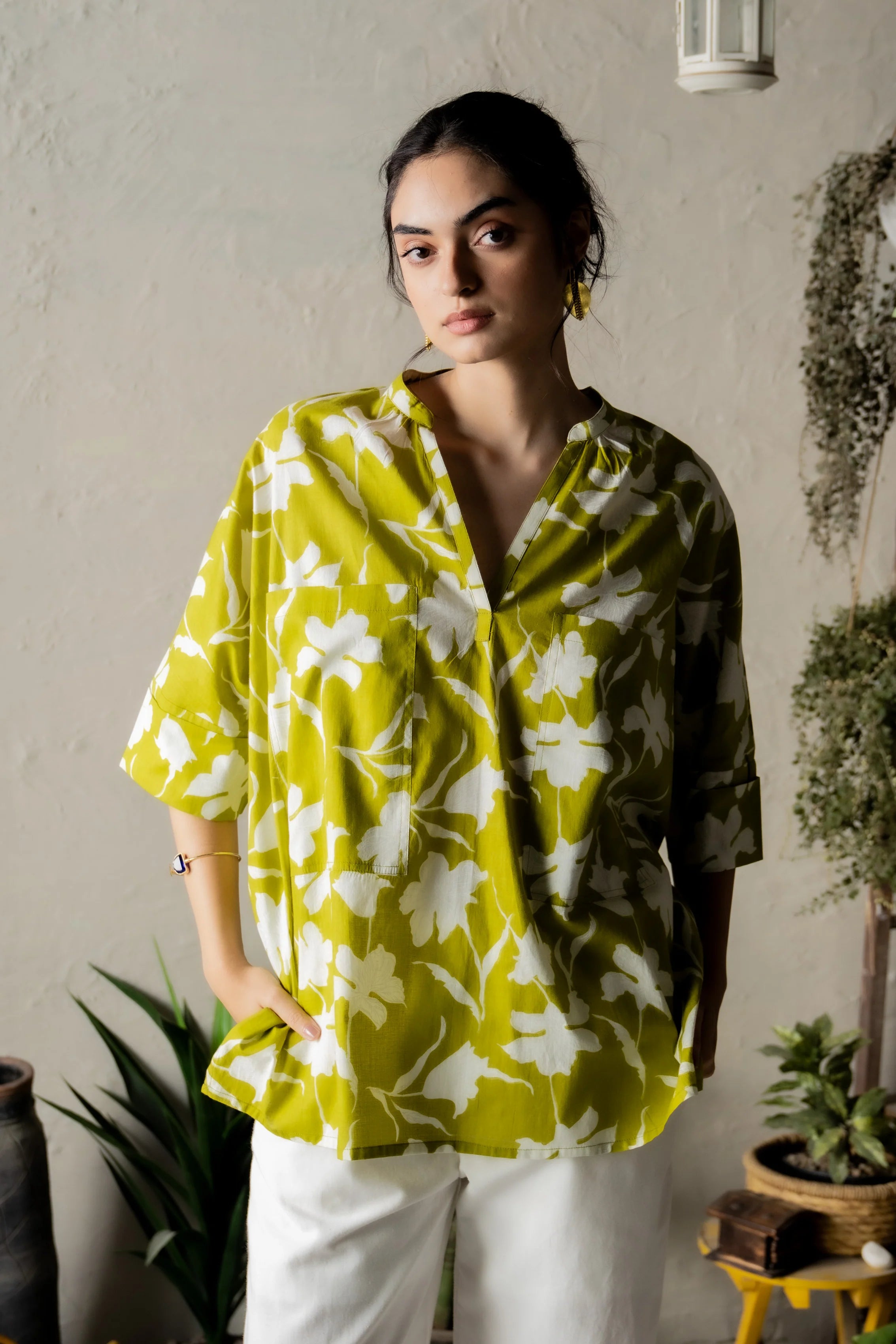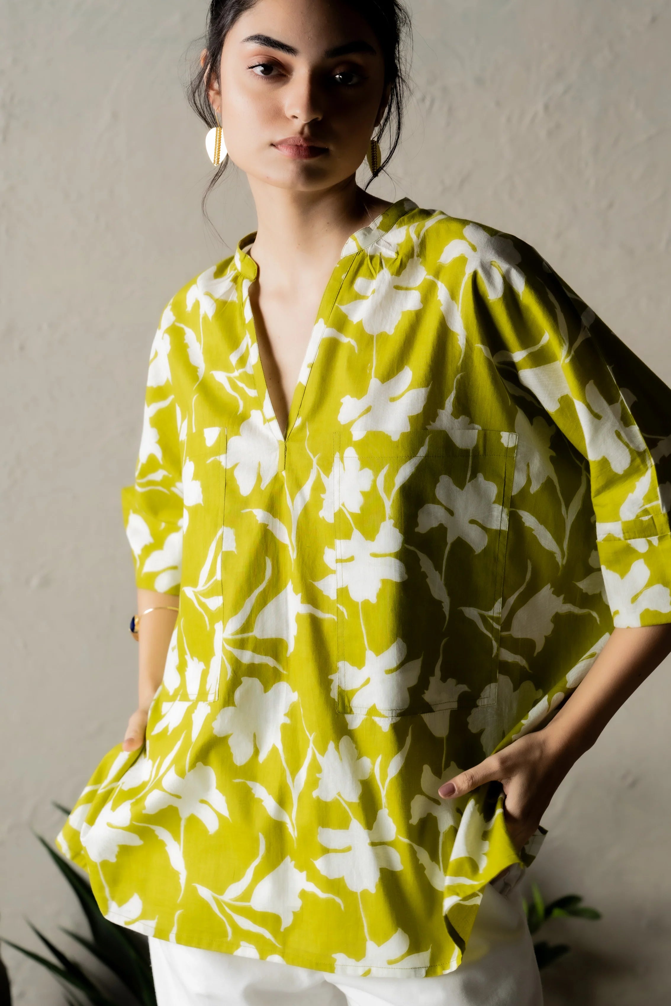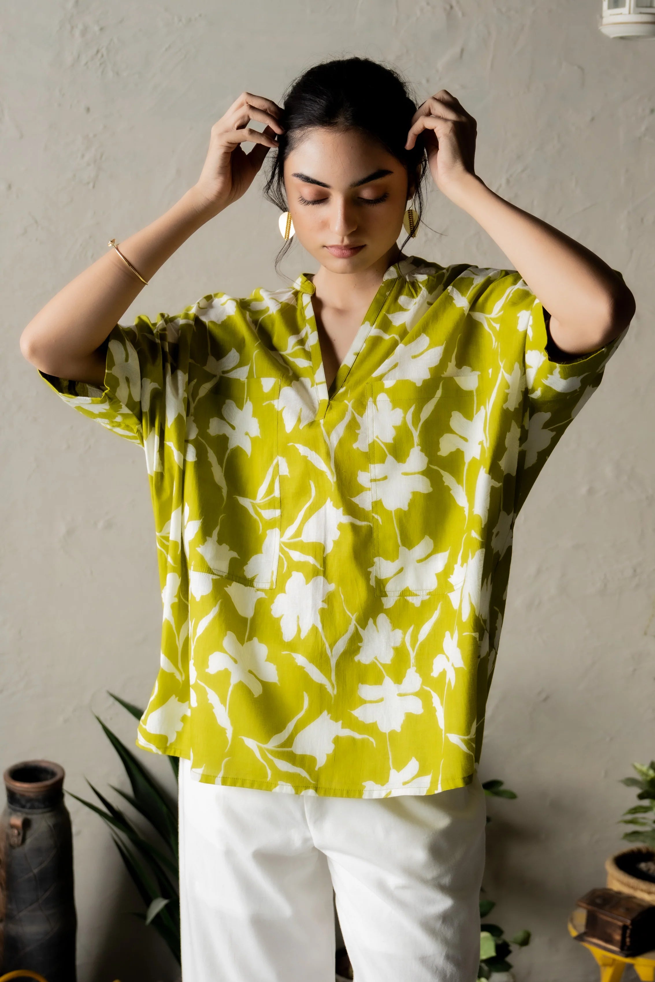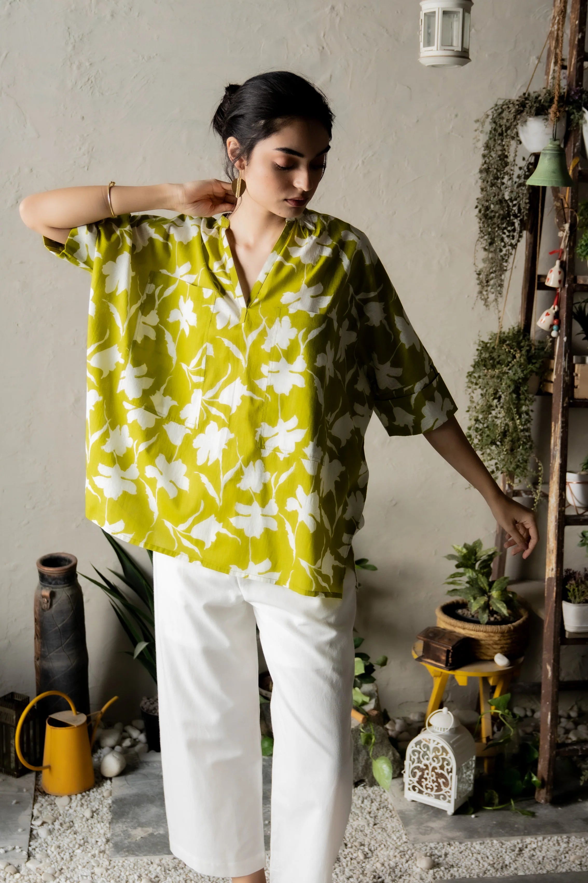 Discover the carefree charm of the Pergola Charm Set, featuring a lime green top and classic white pants. The top is designed with a relaxed silhouette, a flattering V-neckline, and bold front pockets for a blend of style and functionality. Crafted from lightweight cotton, it provides a barely-there feel, ensuring comfort throughout the day.