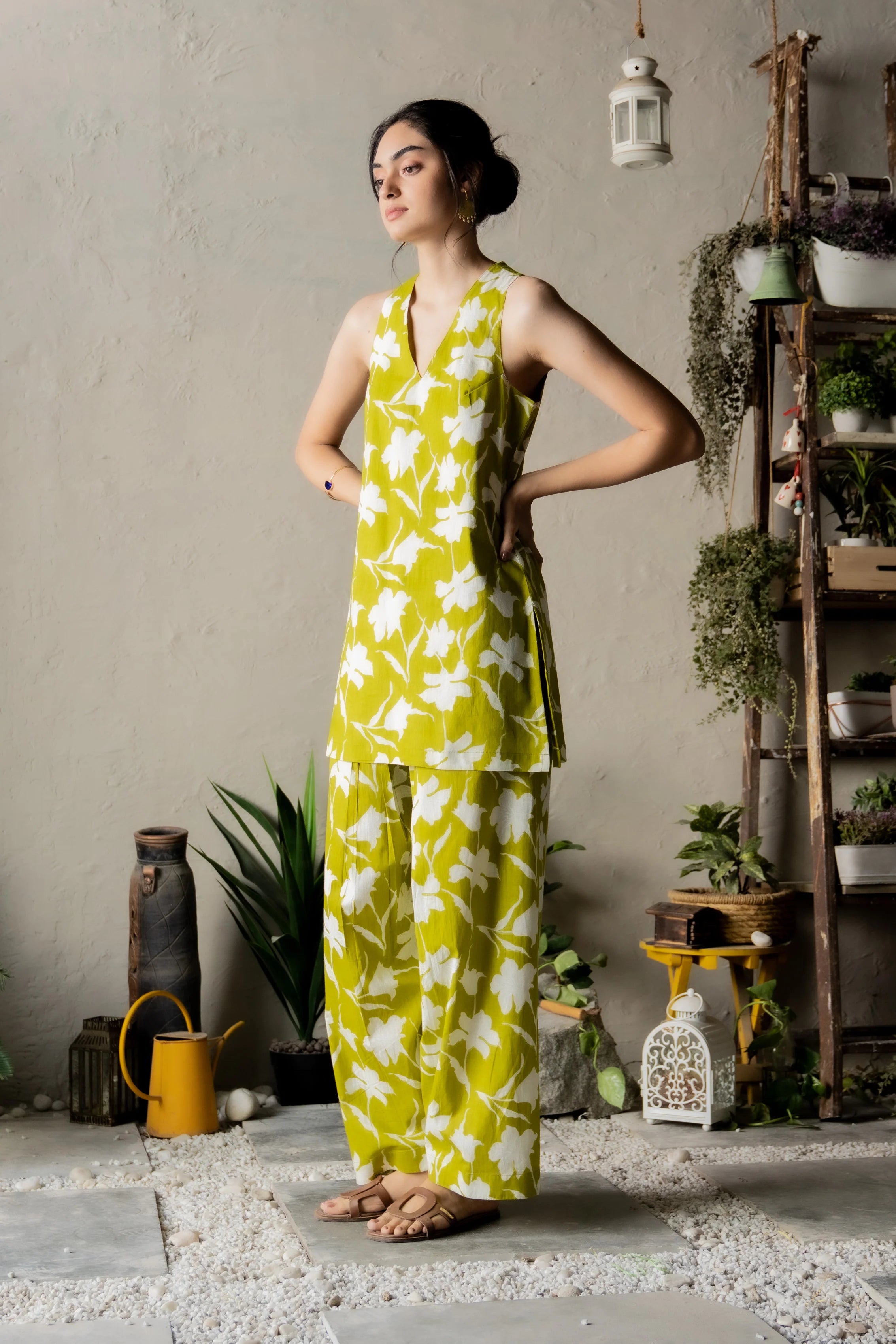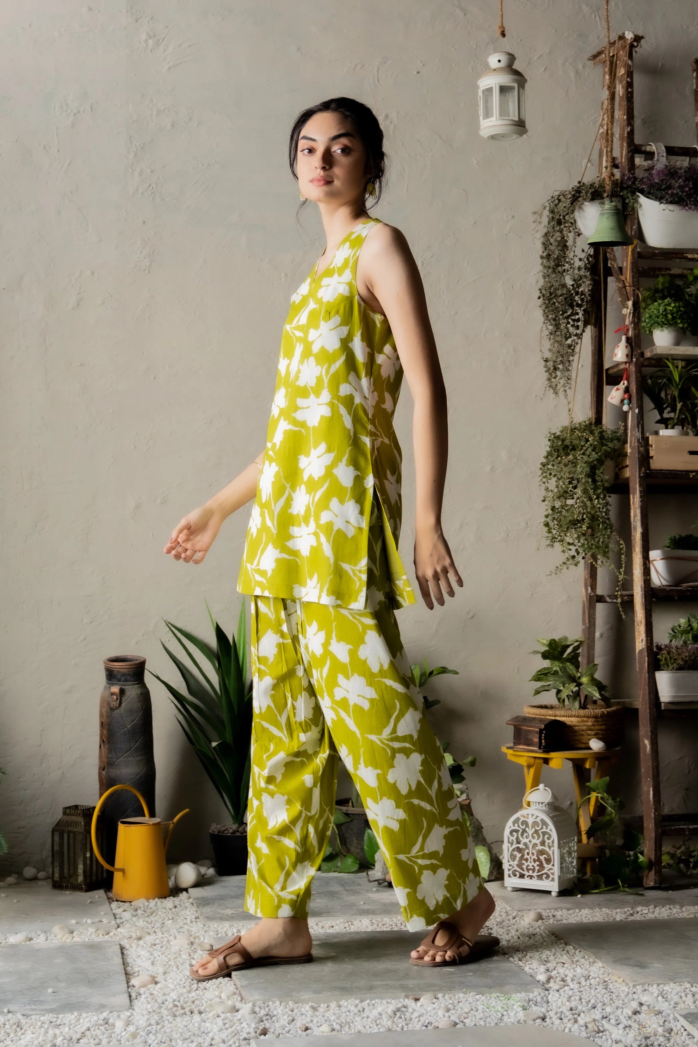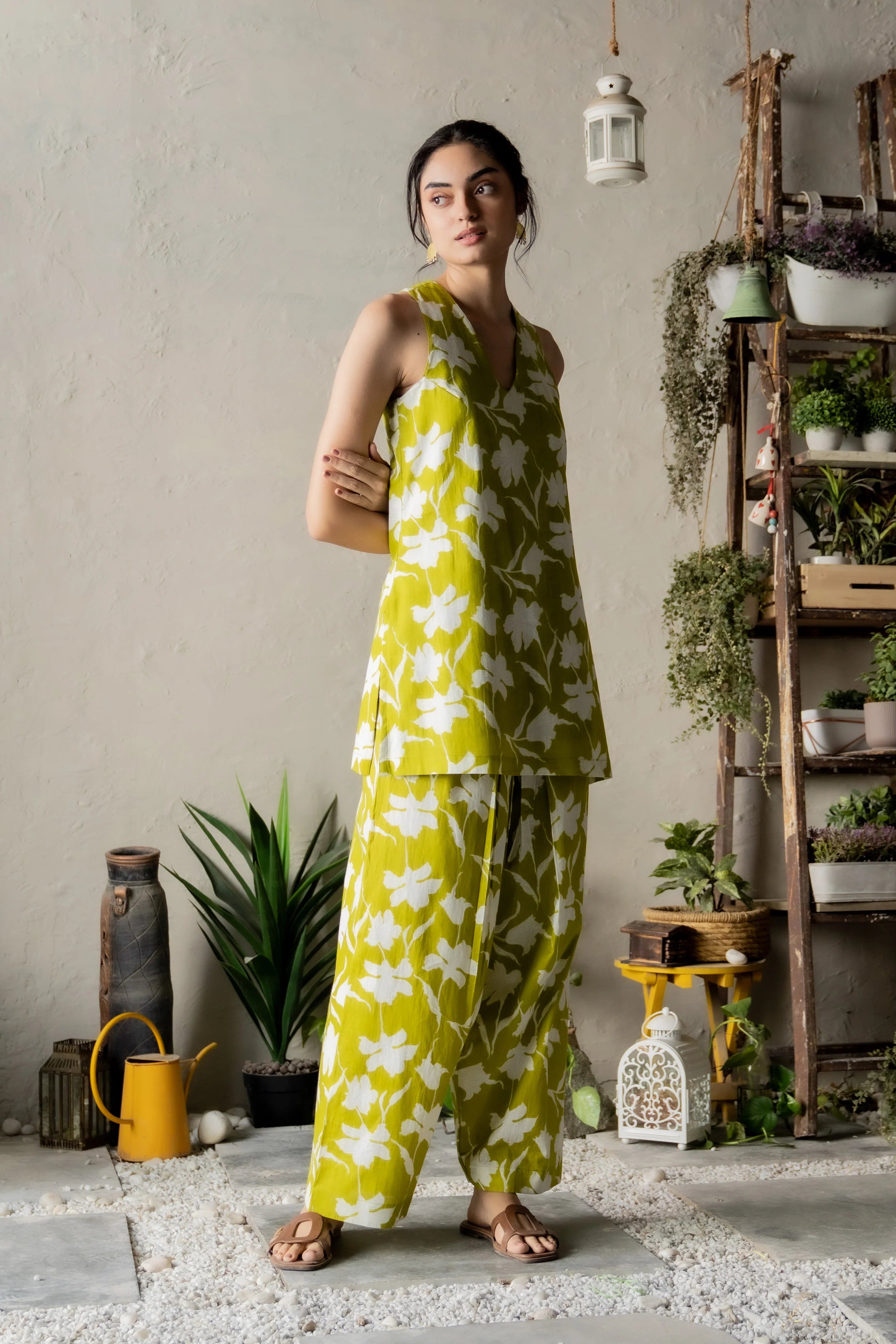 Step into contemporary elegance with the Street Song Set. This ensemble features a crisp, sleeveless short kurti, exuding modern sophistication while maintaining a relaxed vibe. Paired with a contemporary-styled salwar, designed for ultimate comfort with an elasticated waistband and adjustable drawstring, this set is a must-have for effortless chic.